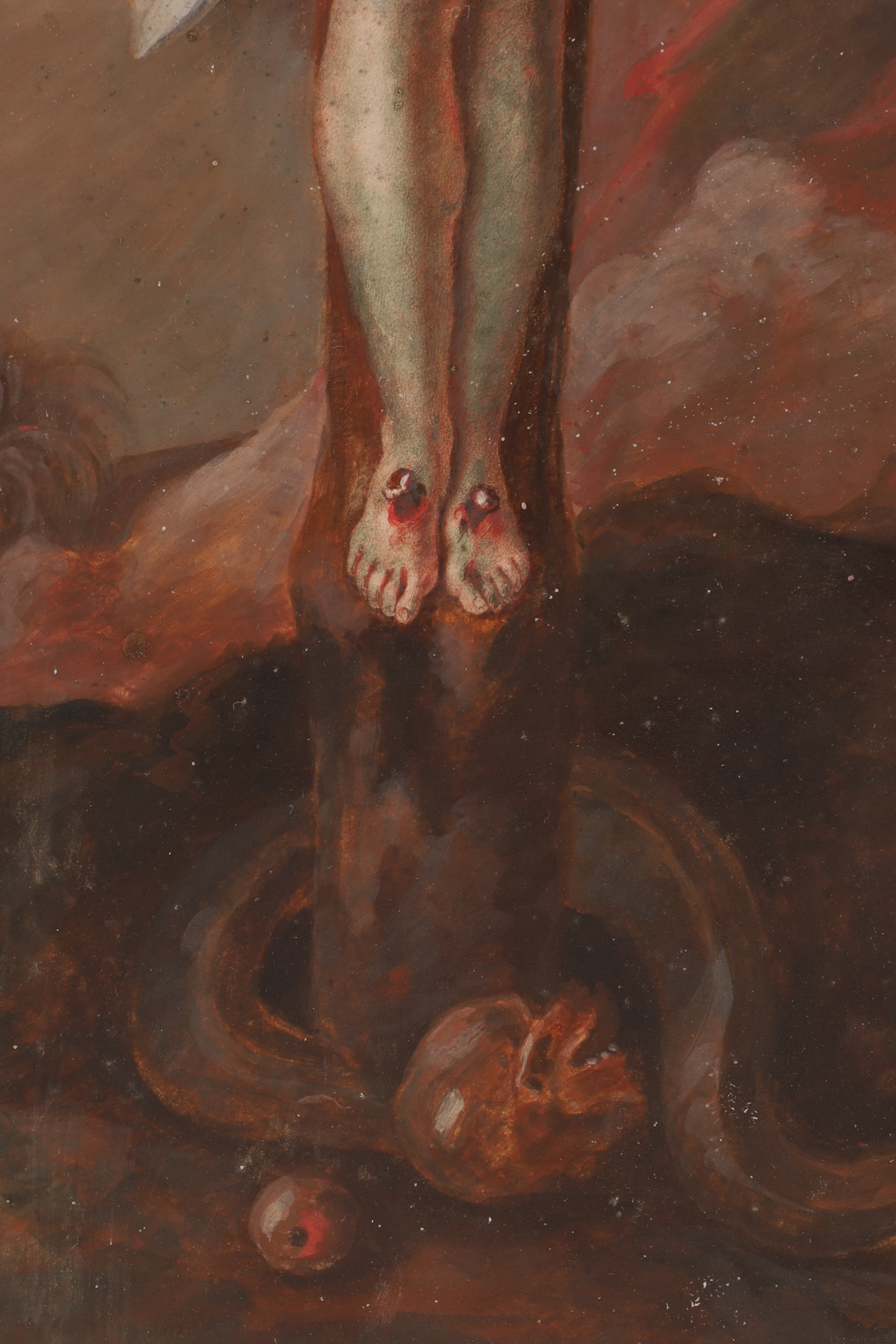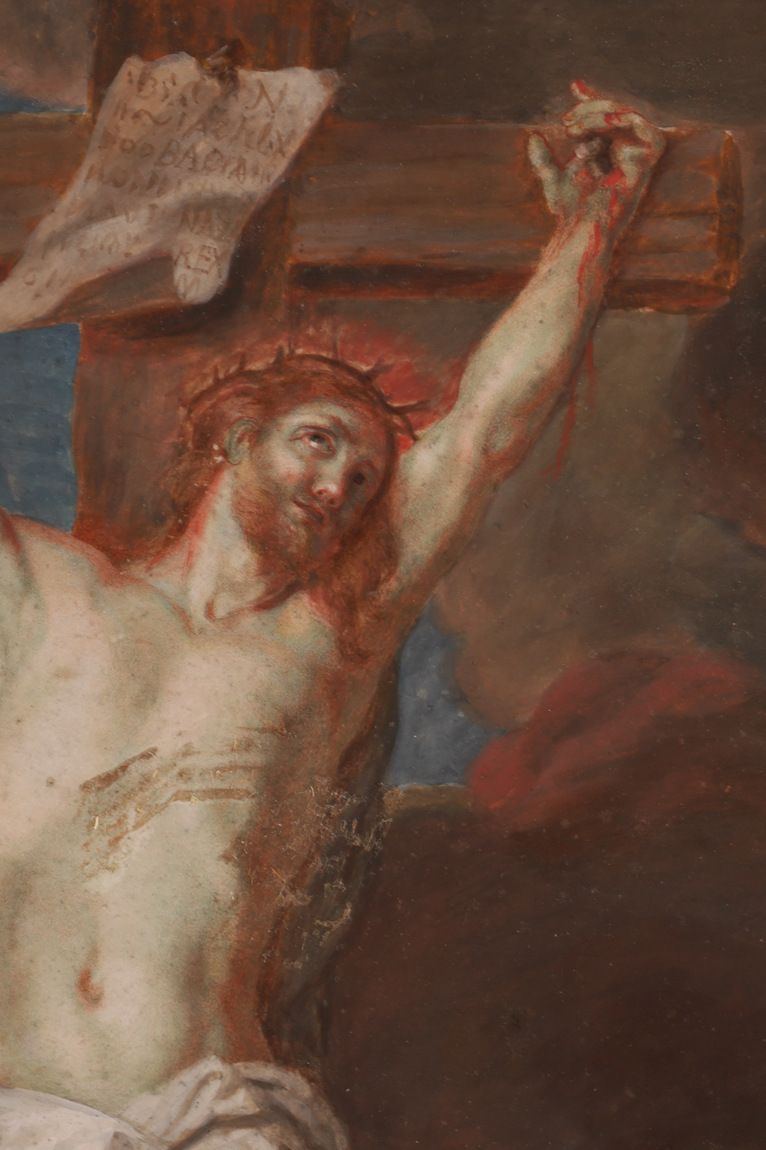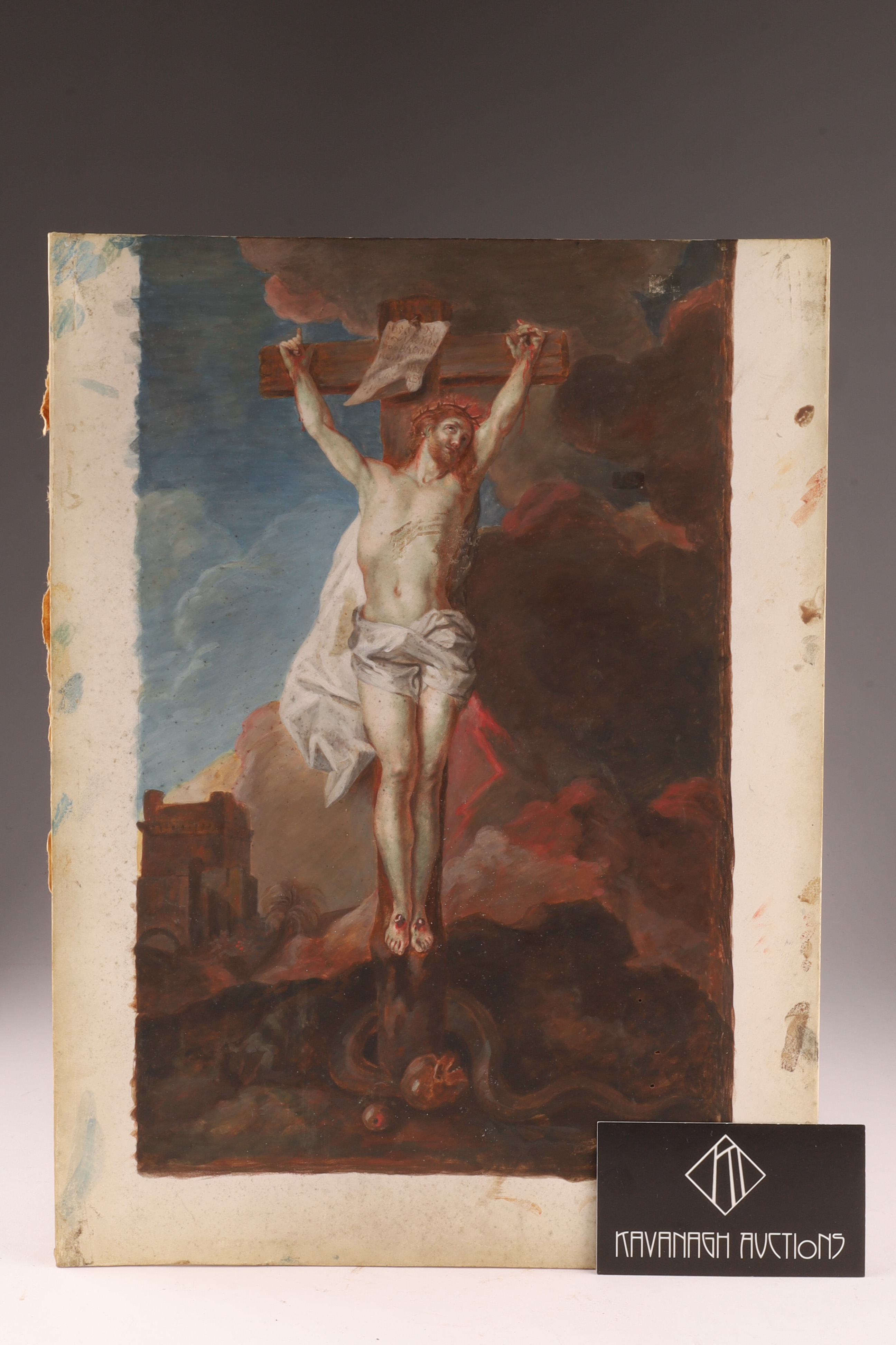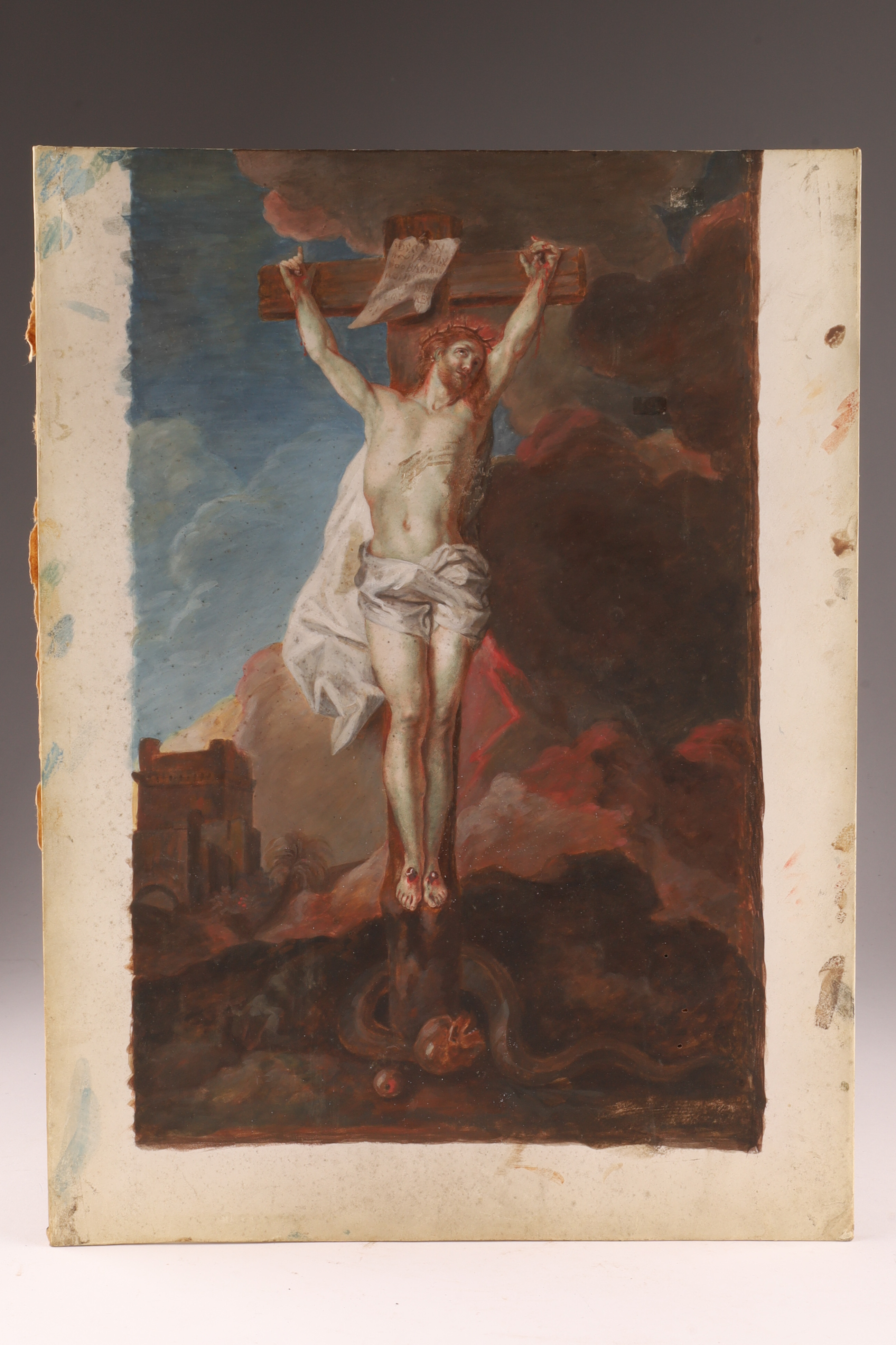 De La Fosse after Eustache Le Sueur - 18th C. Oil painting on Vellum, “The Crucifixion”