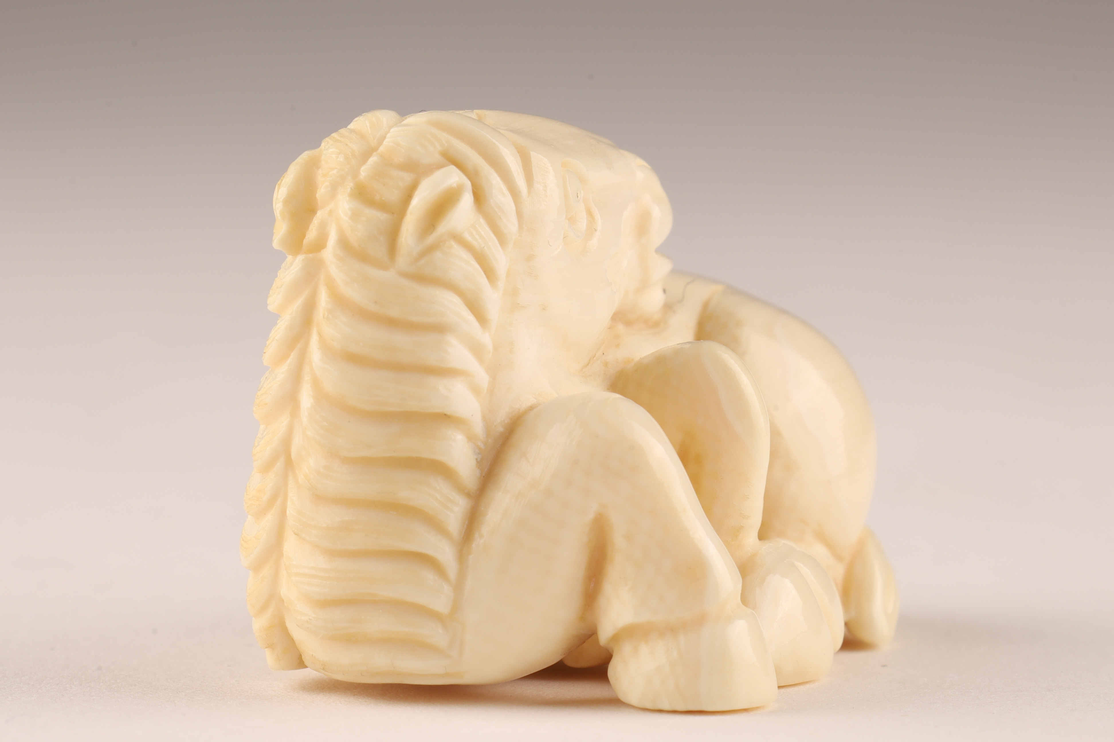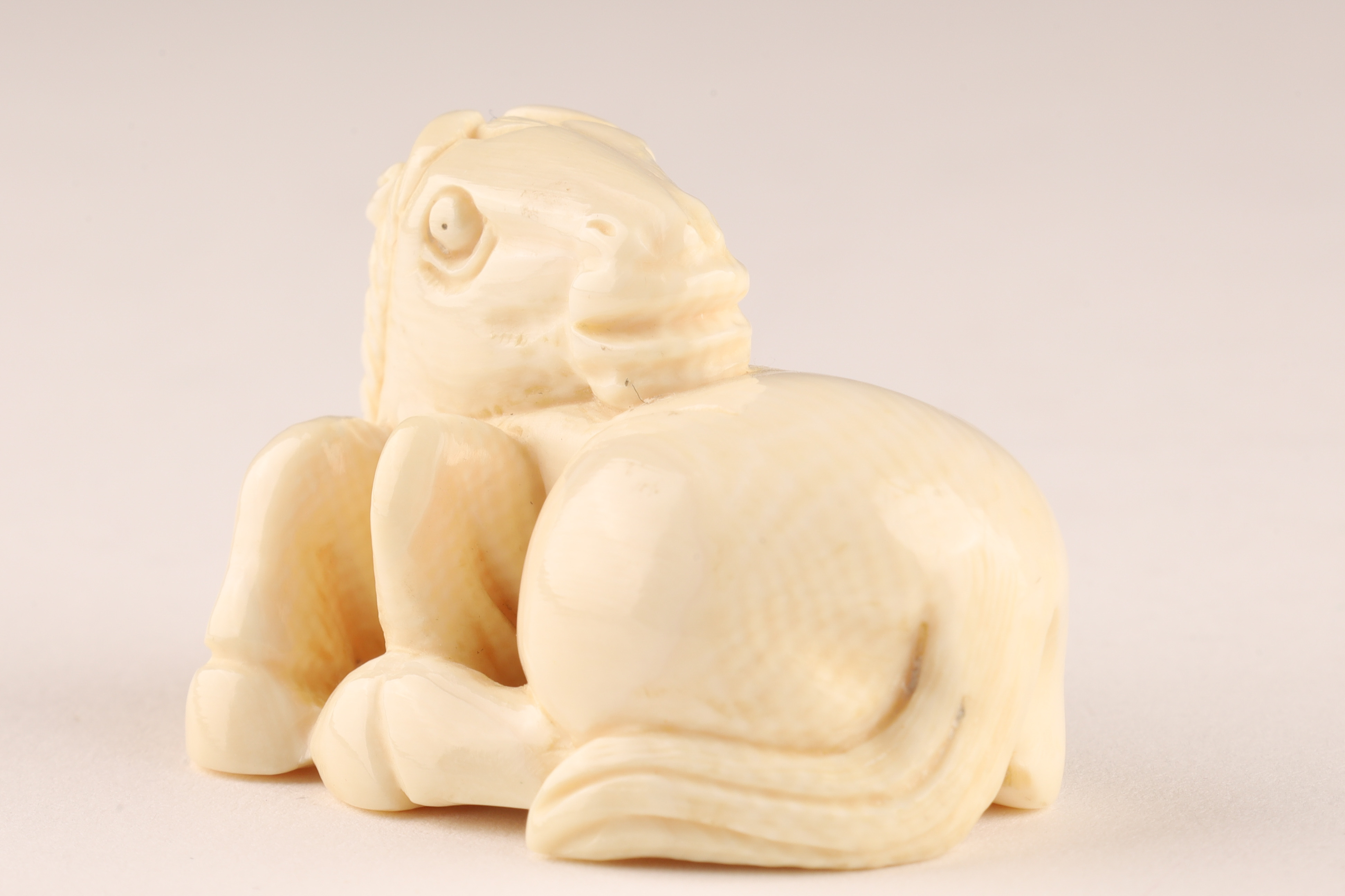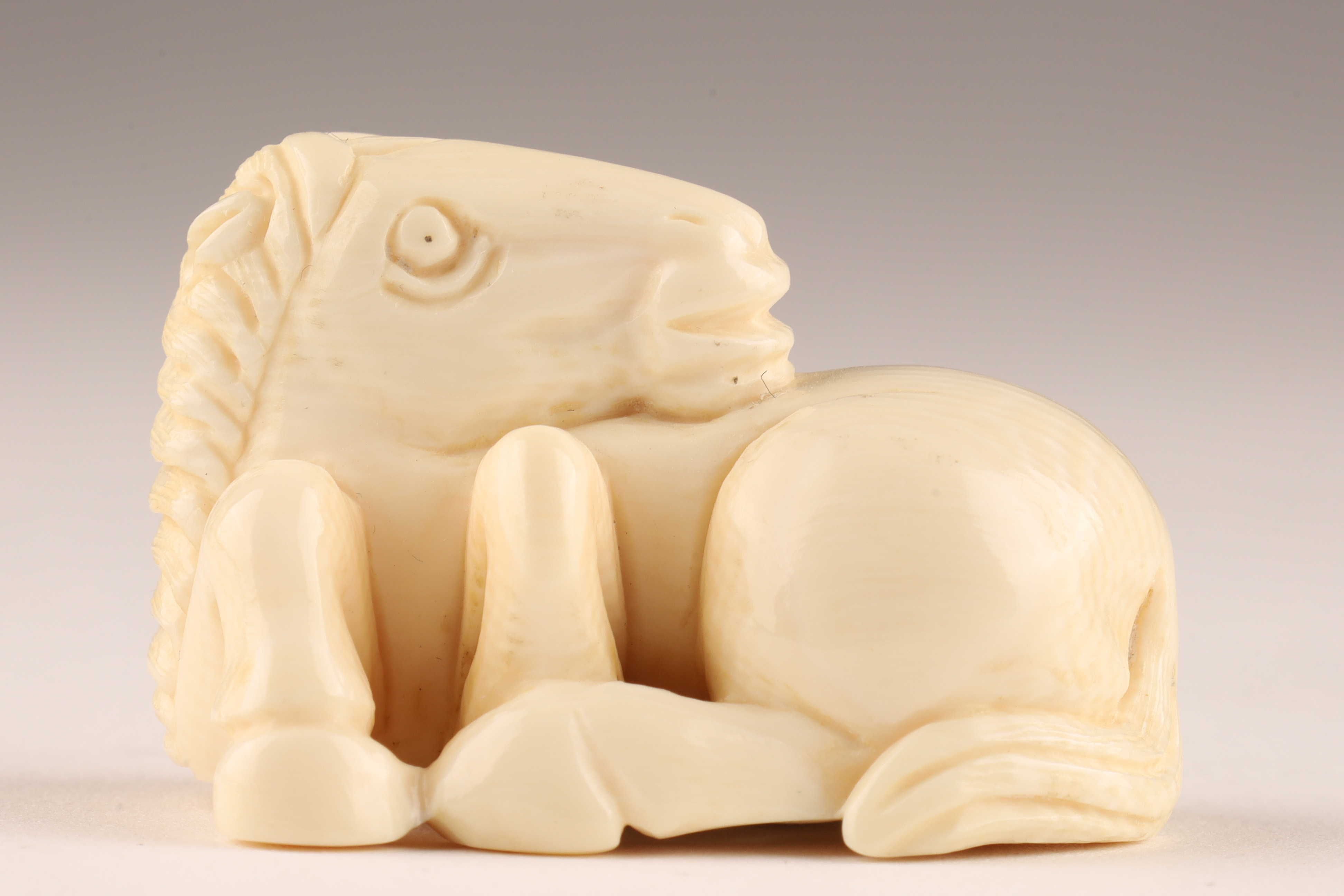 Antique Japanese Netsuke Carved Recumbent Horse Signed