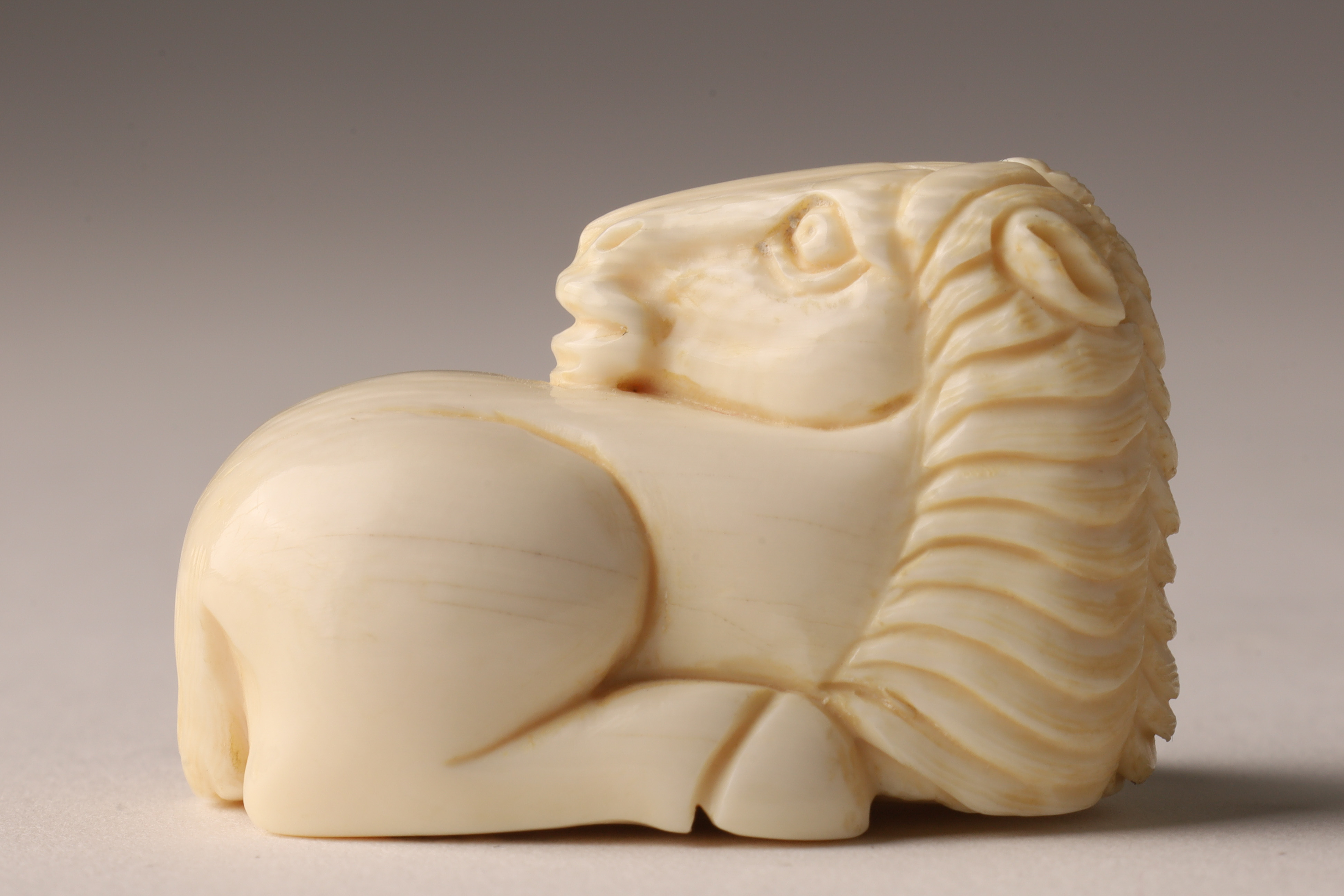 Antique Japanese Netsuke Carved Recumbent Horse Signed. 1 inches x 1.5 inches. THIS ITEM CANNOT BE EXPORTED FROM CANADA.