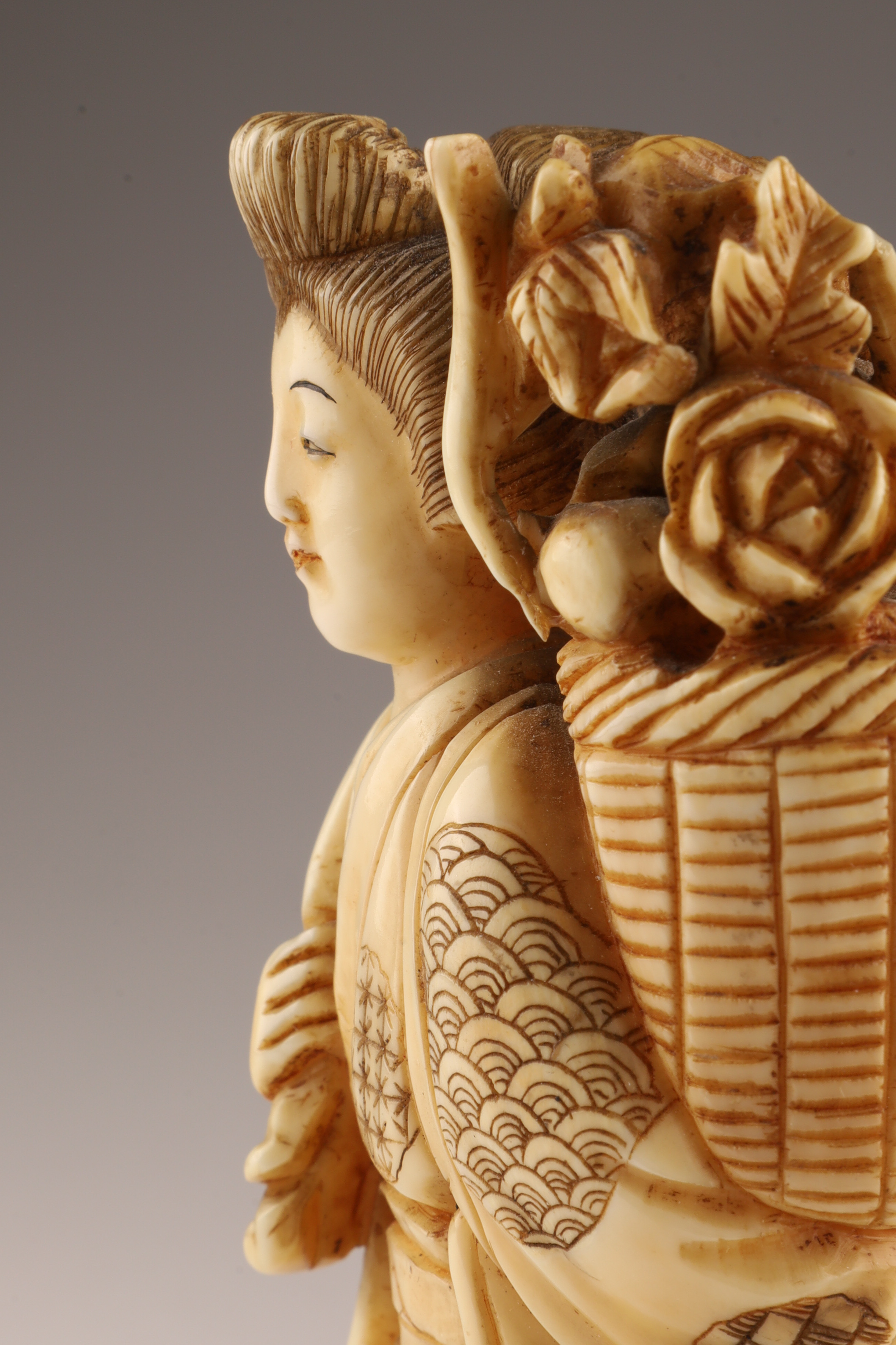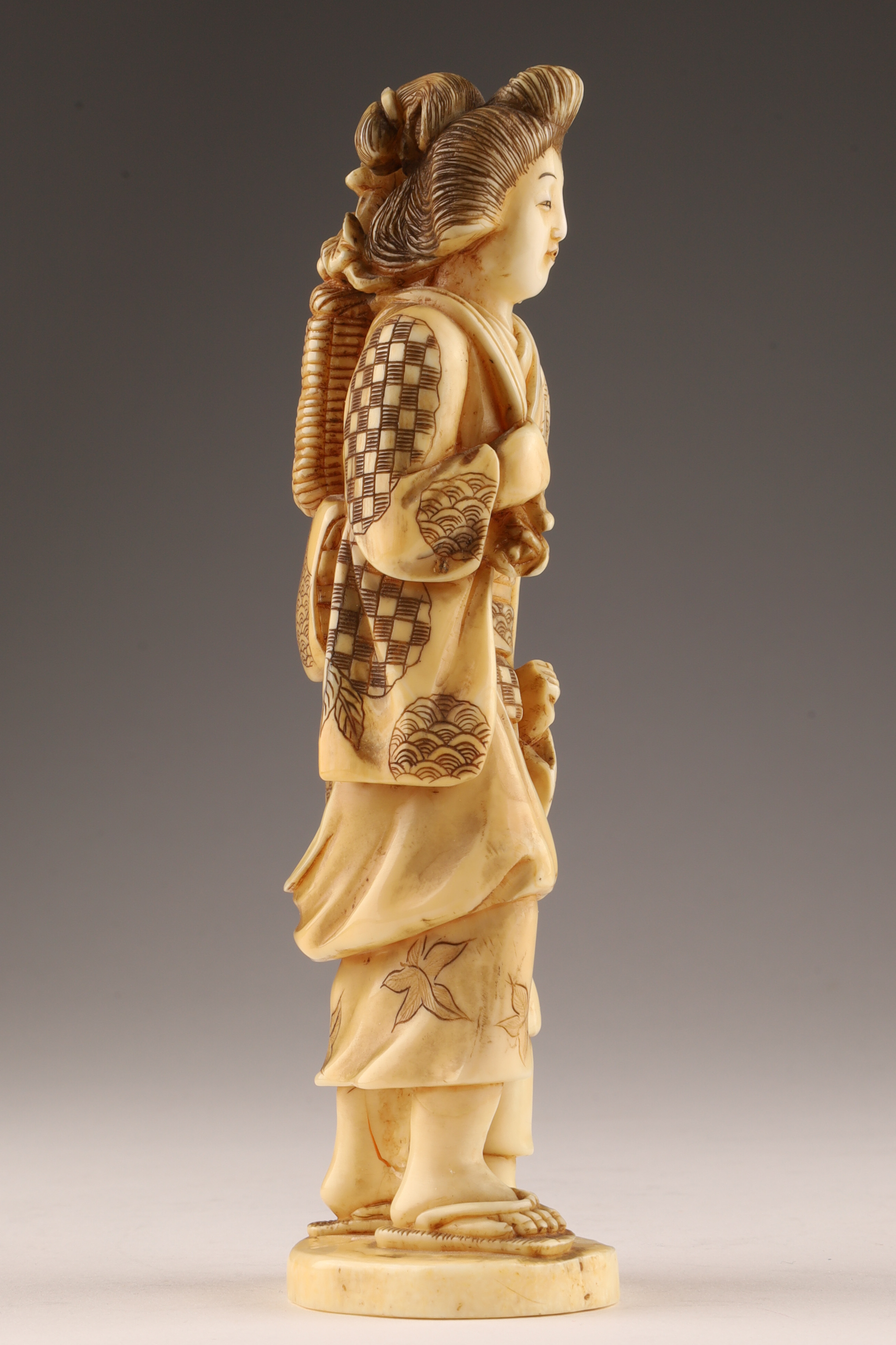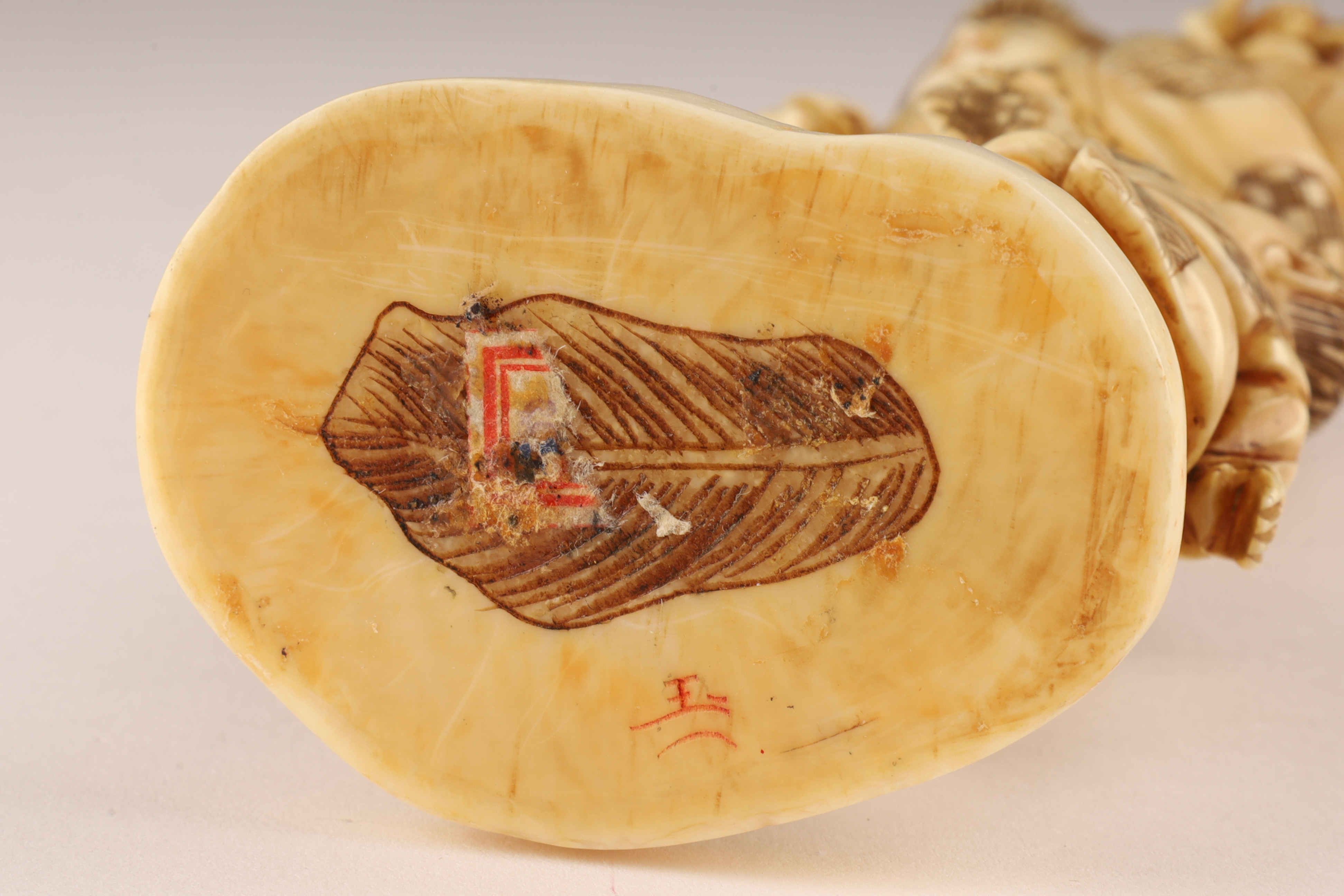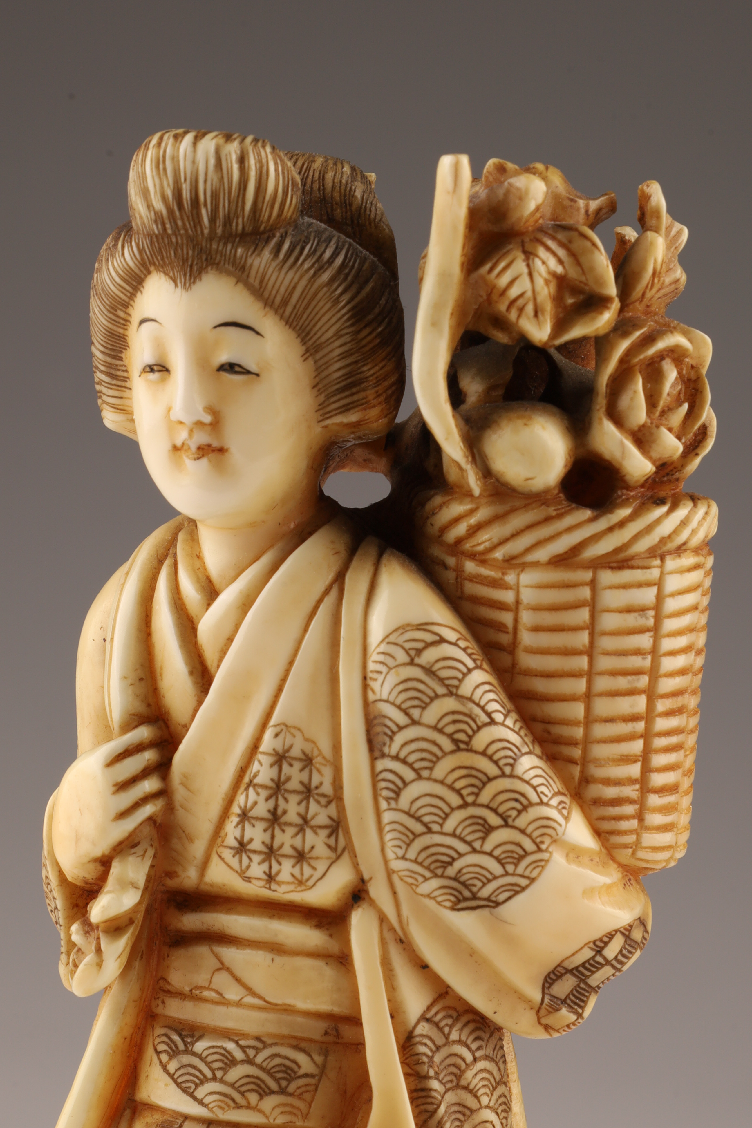 Antique Japanese Okimono Signed Figure, Woman Farmer with Child