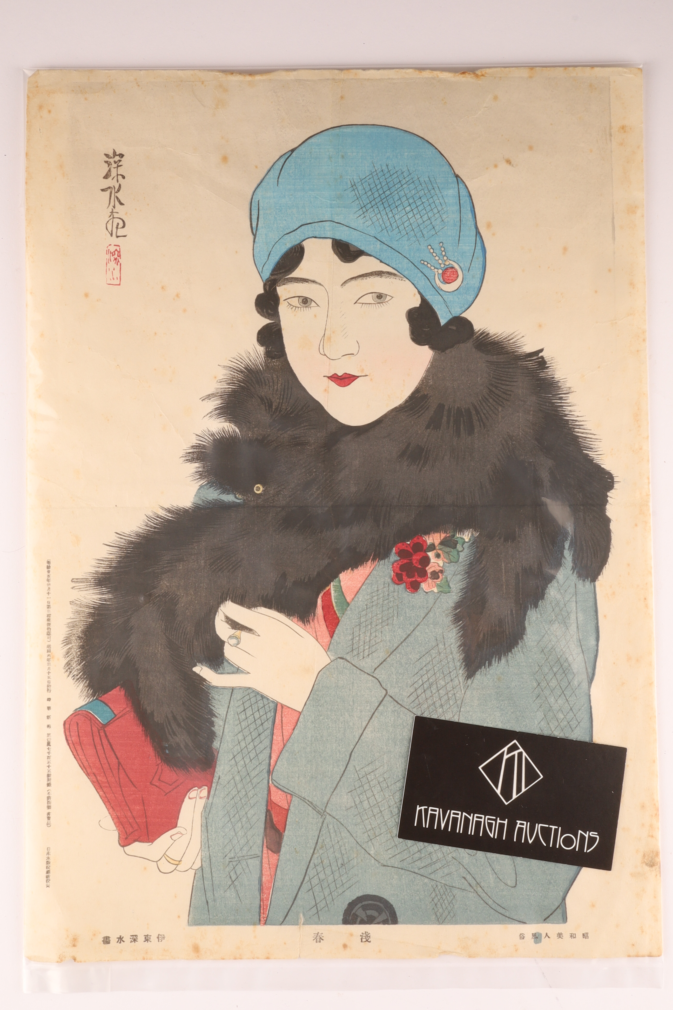 Ito Shinsui, one of the foremost artists of the Shin-Hanga movement, was celebrated for his portrayals of “modern beauties.” Early Spring is among his most iconic early 1930s designs, blending traditional woodblock technique with contemporary fashion influence.