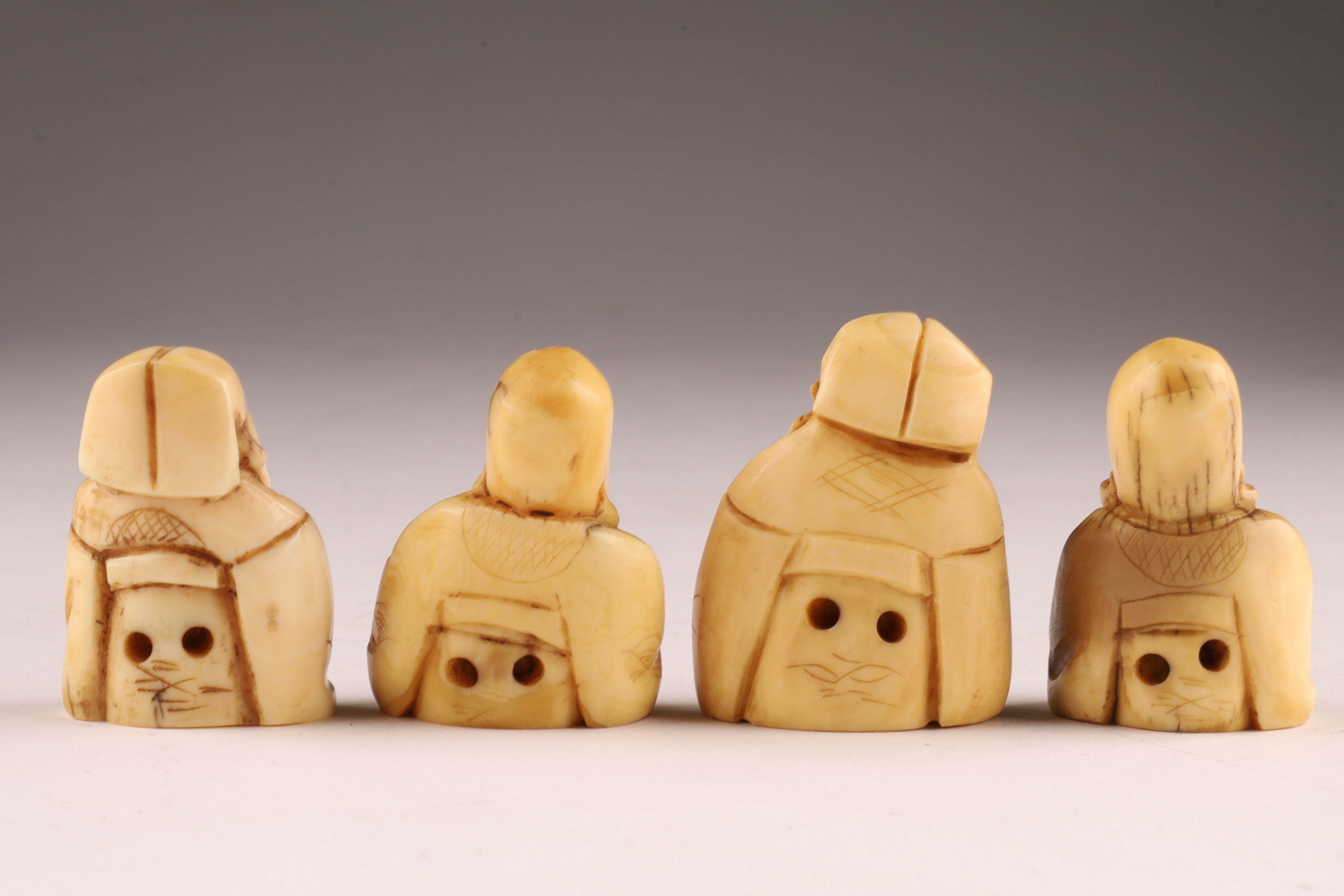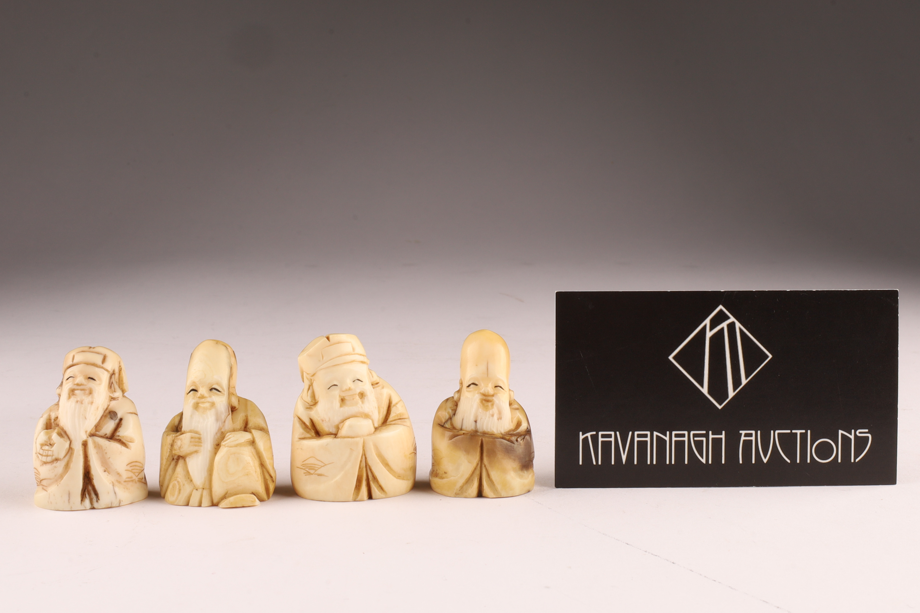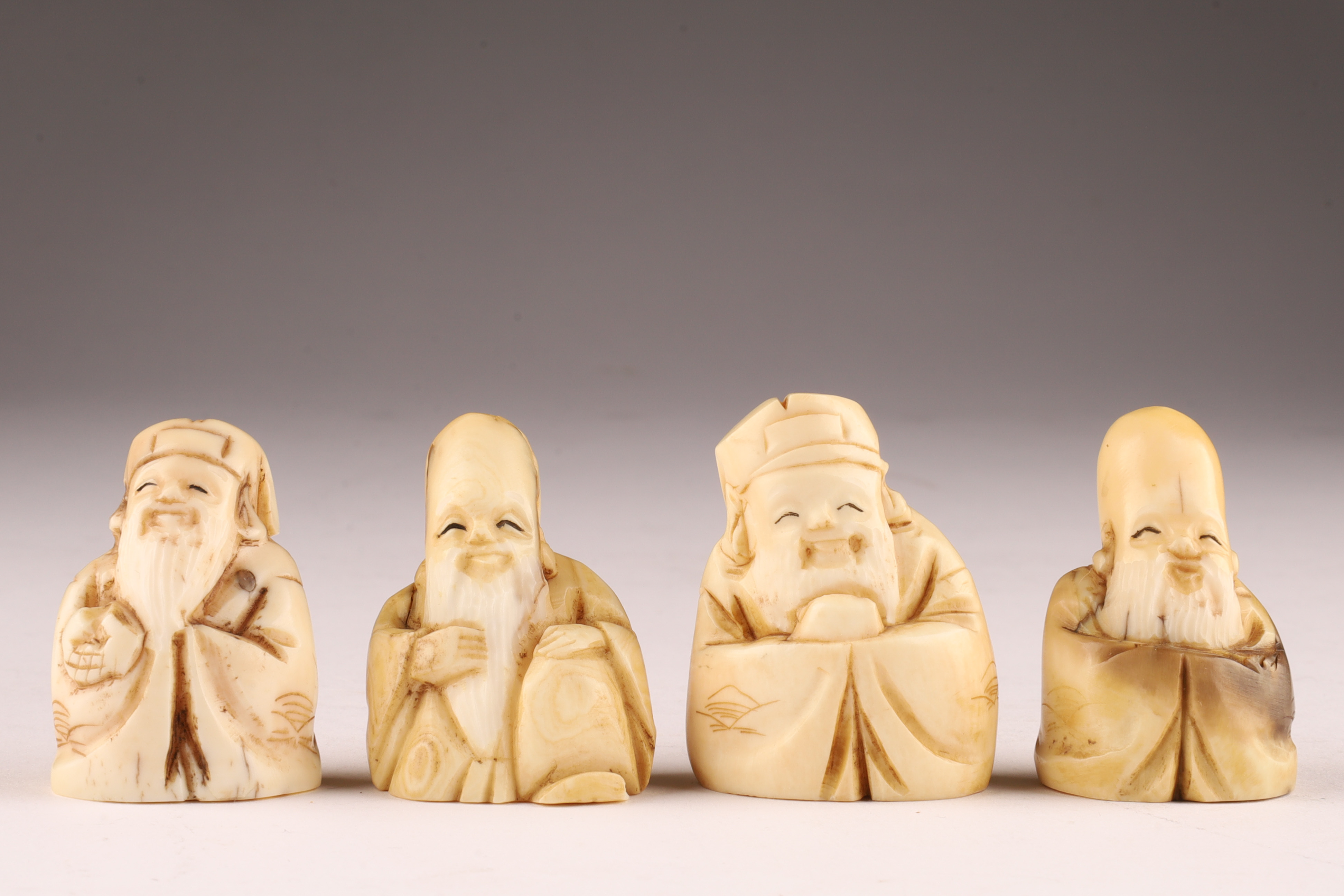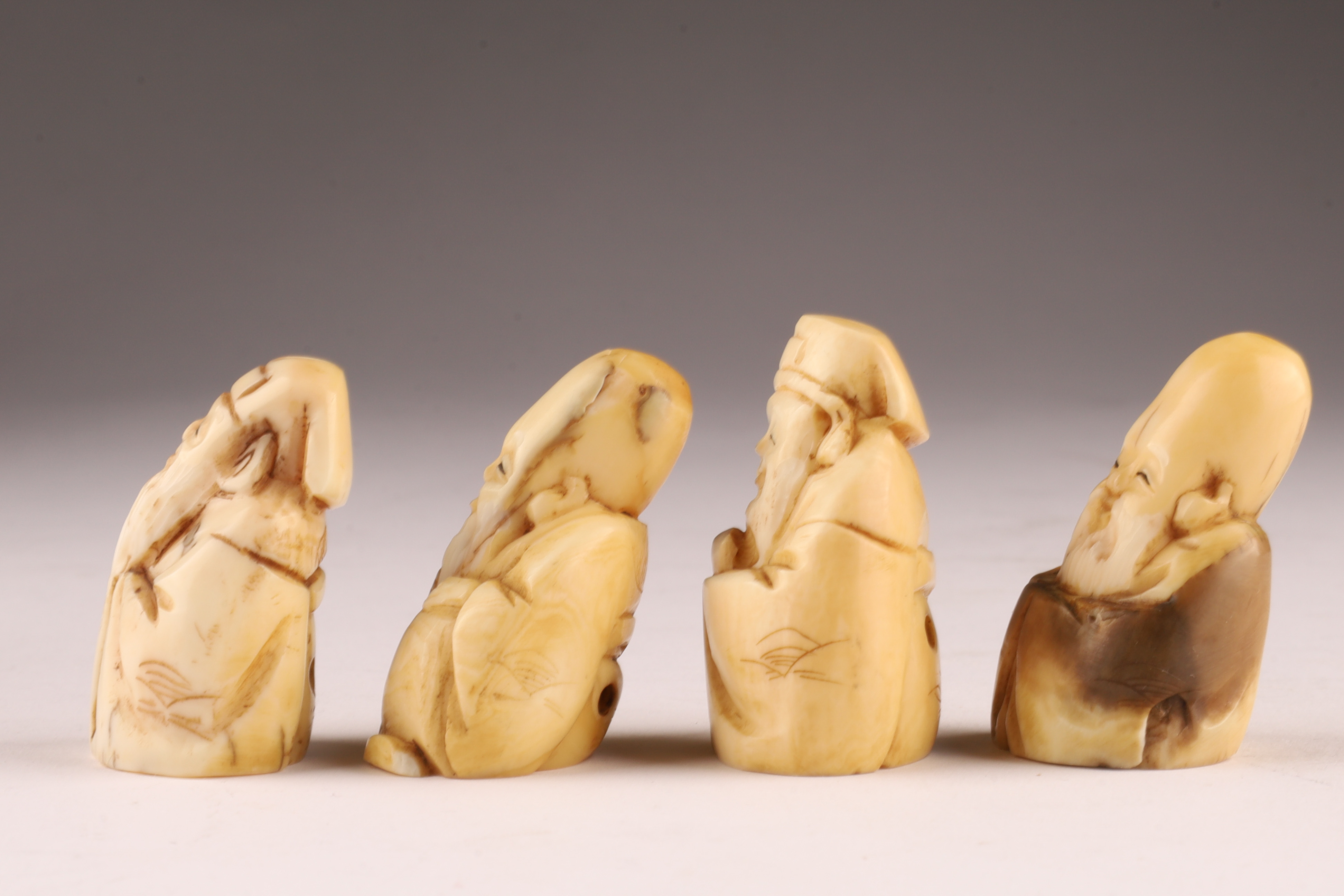 Lot of Four Carved Japanese Figural Netsuke, Wise Men, Signed