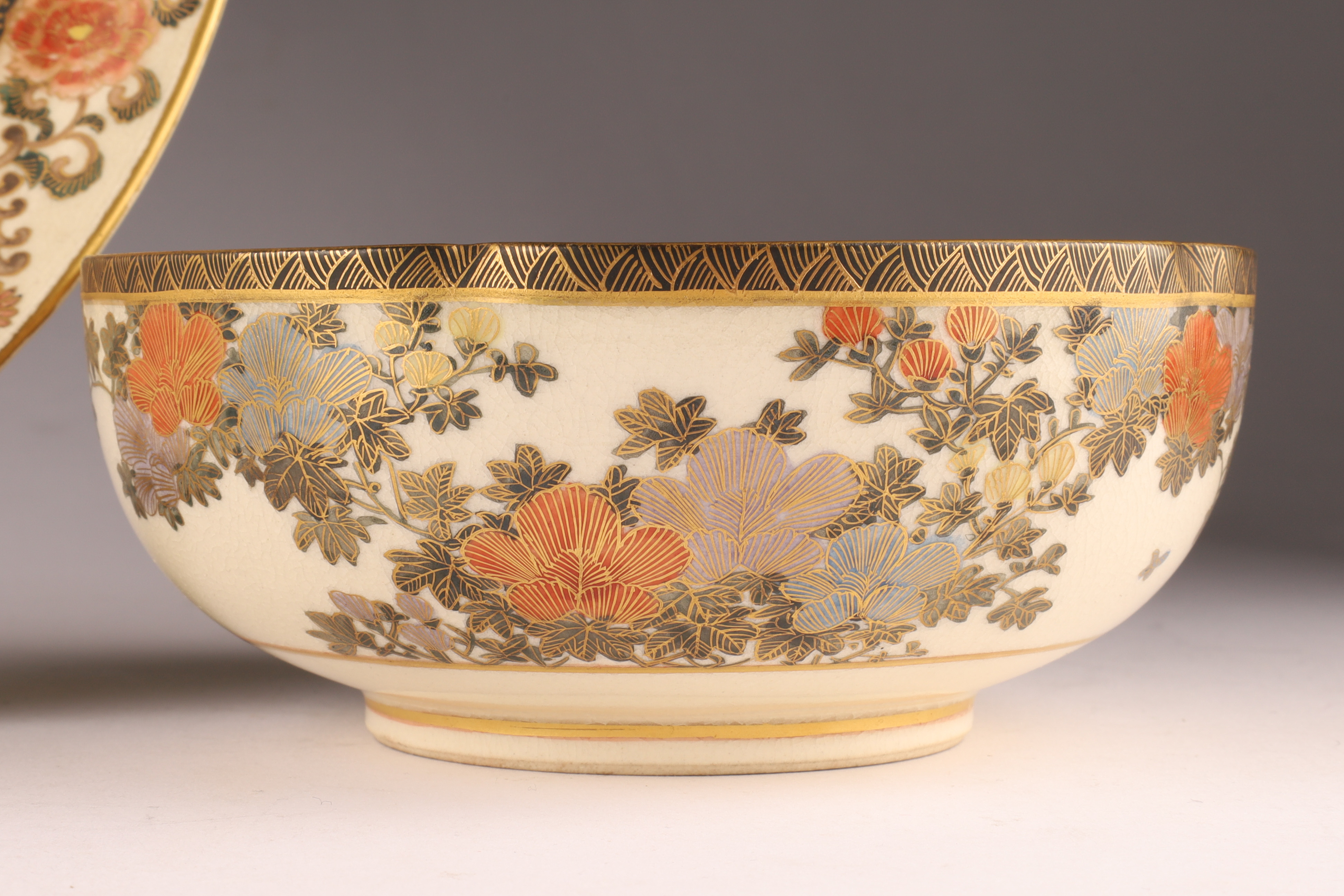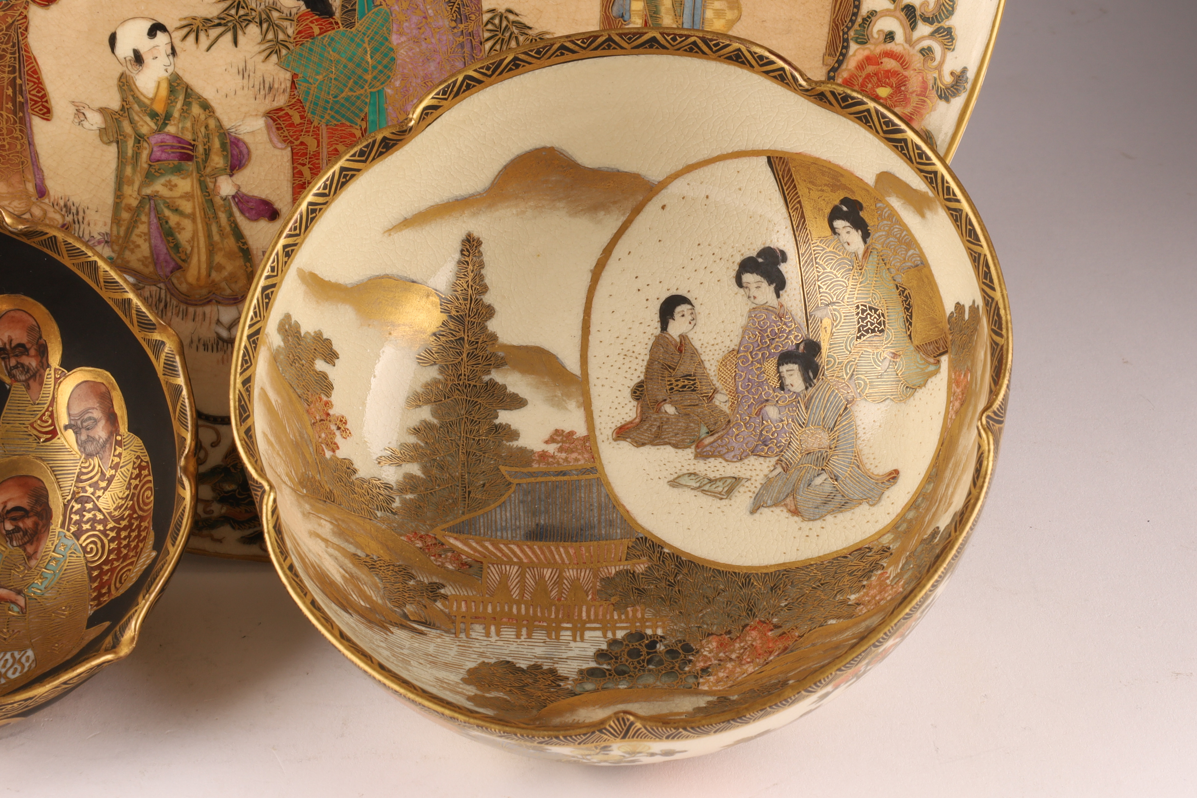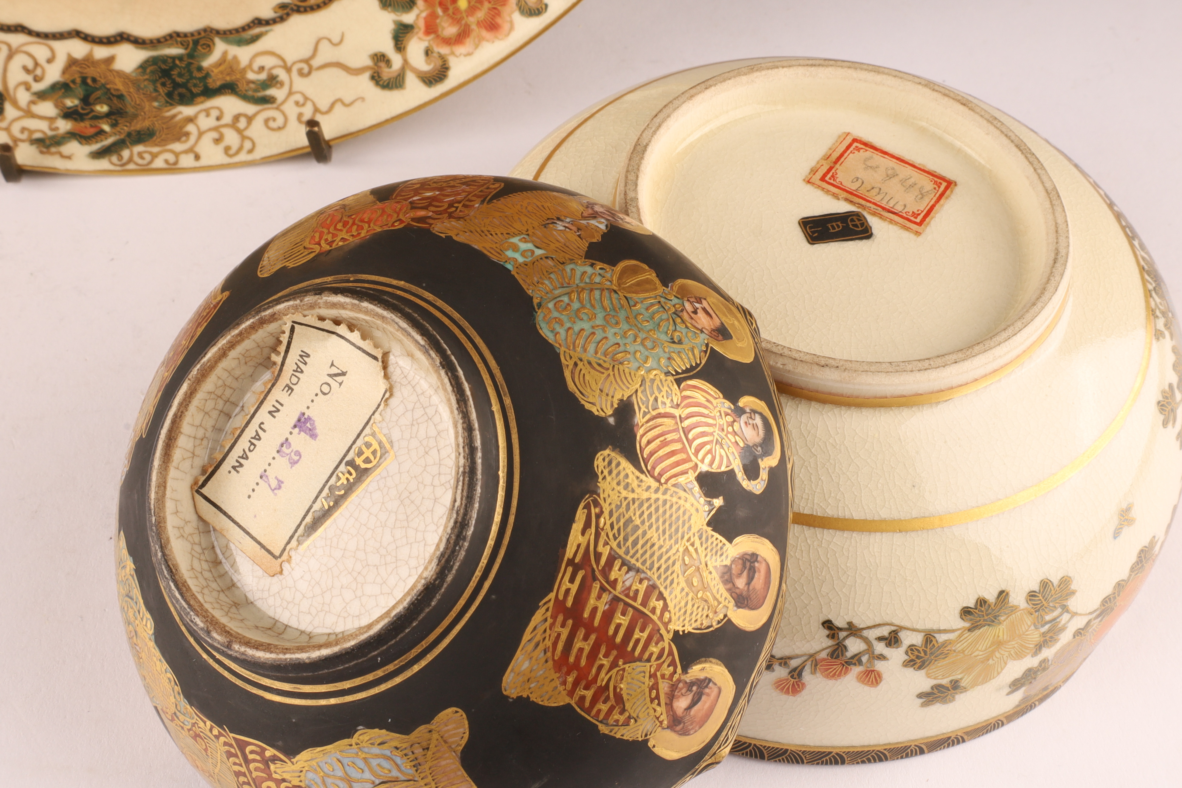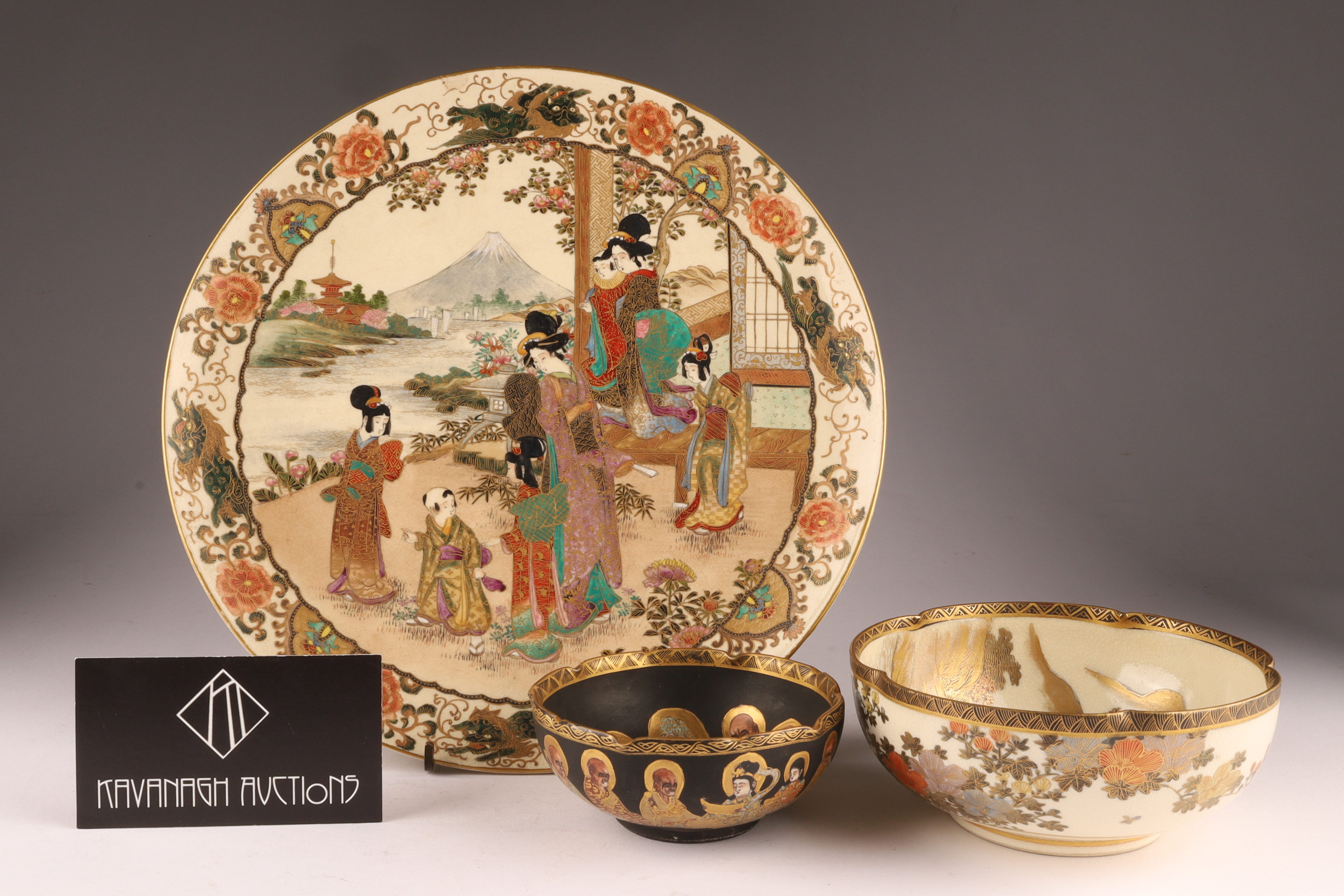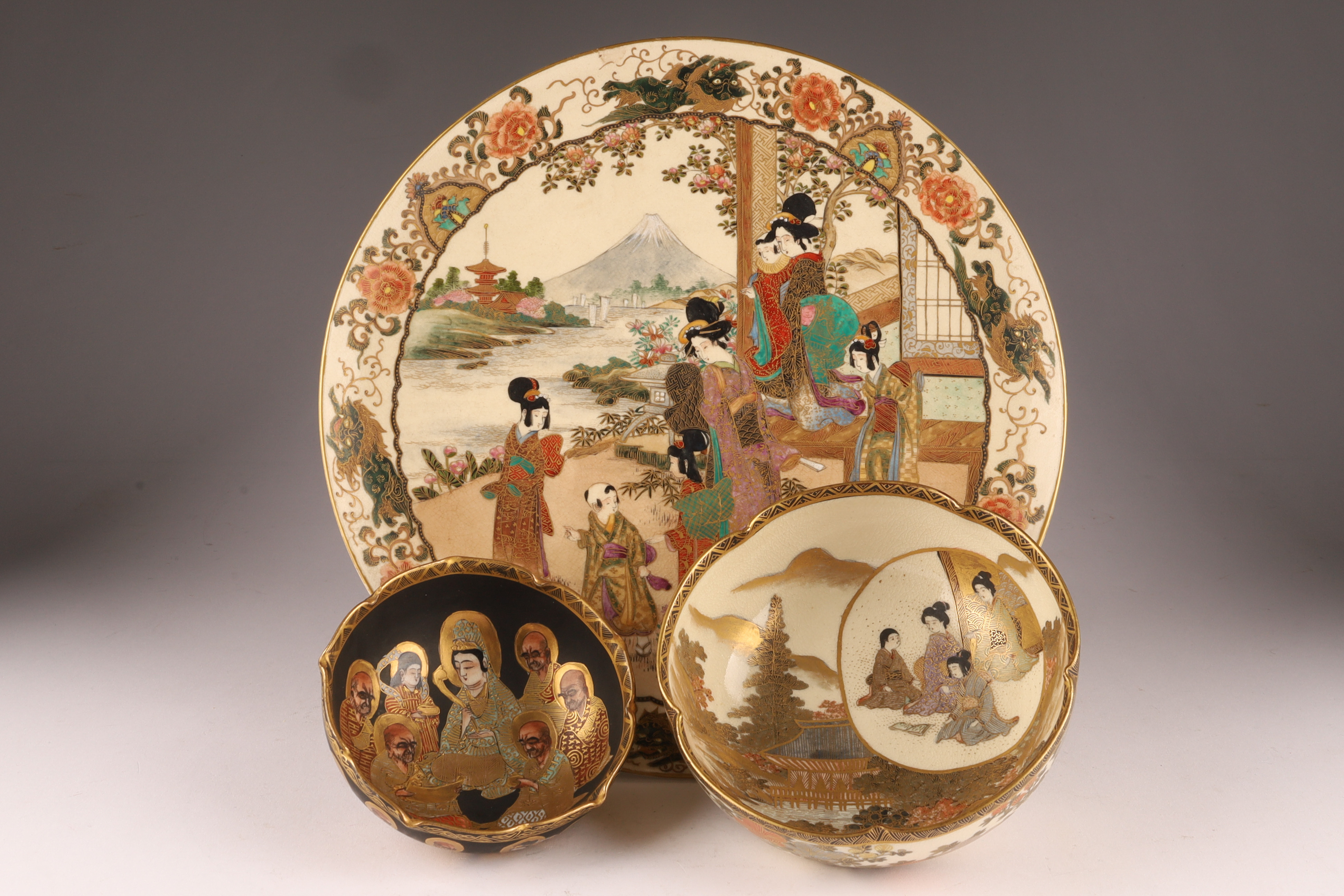 Japanese Satsuma Ware, Three-Piece Lot (Plate & Bowls), c. 1910-1930