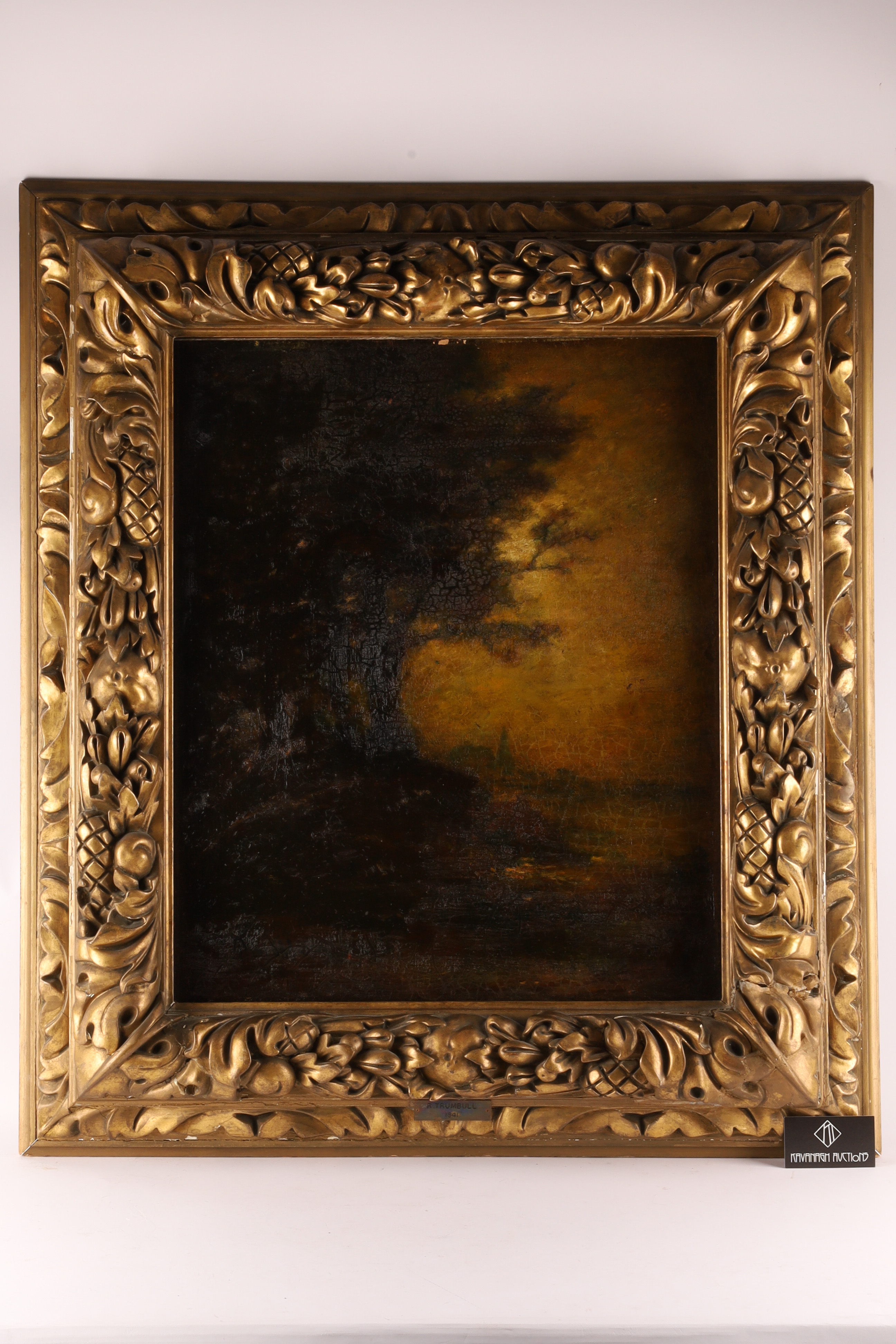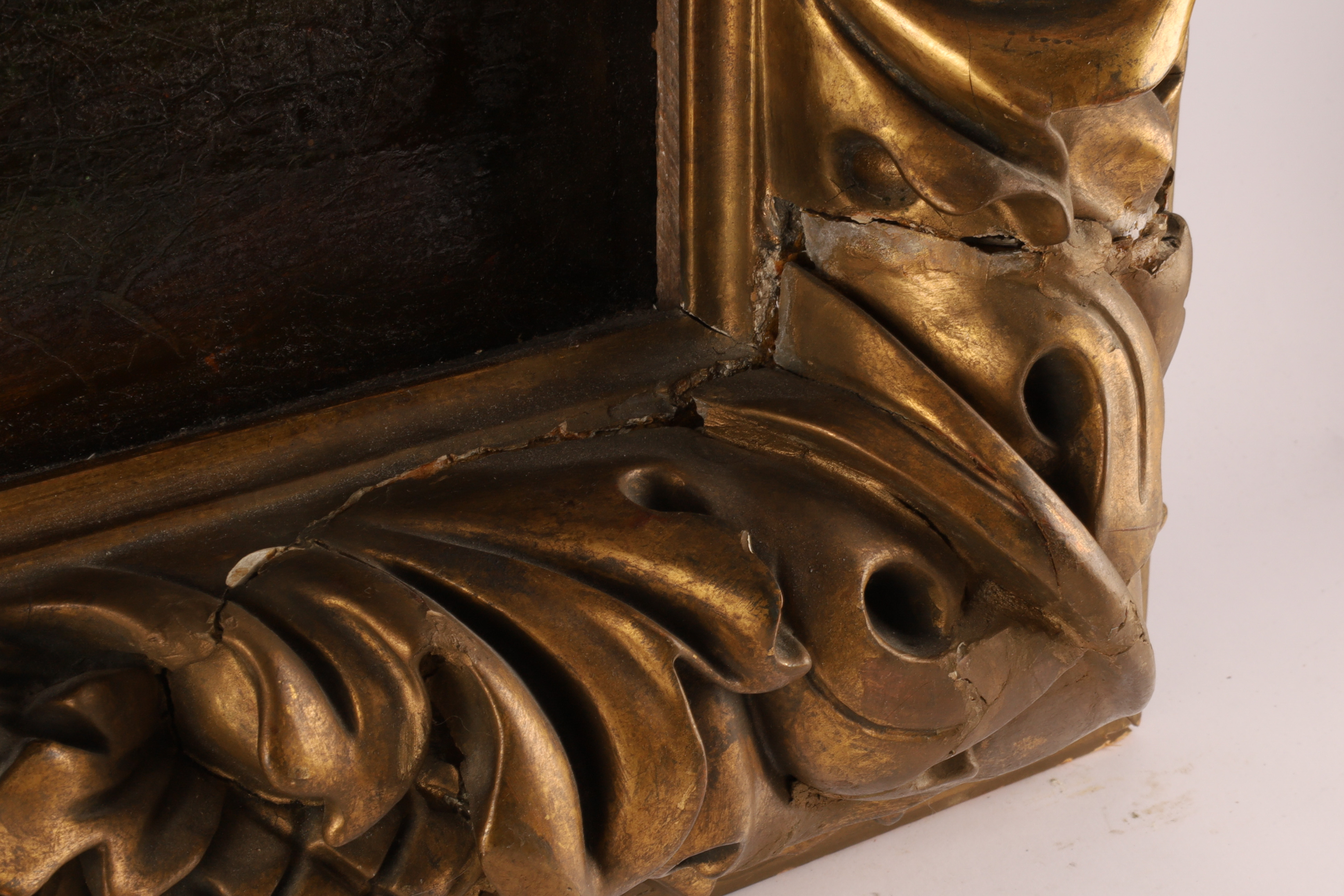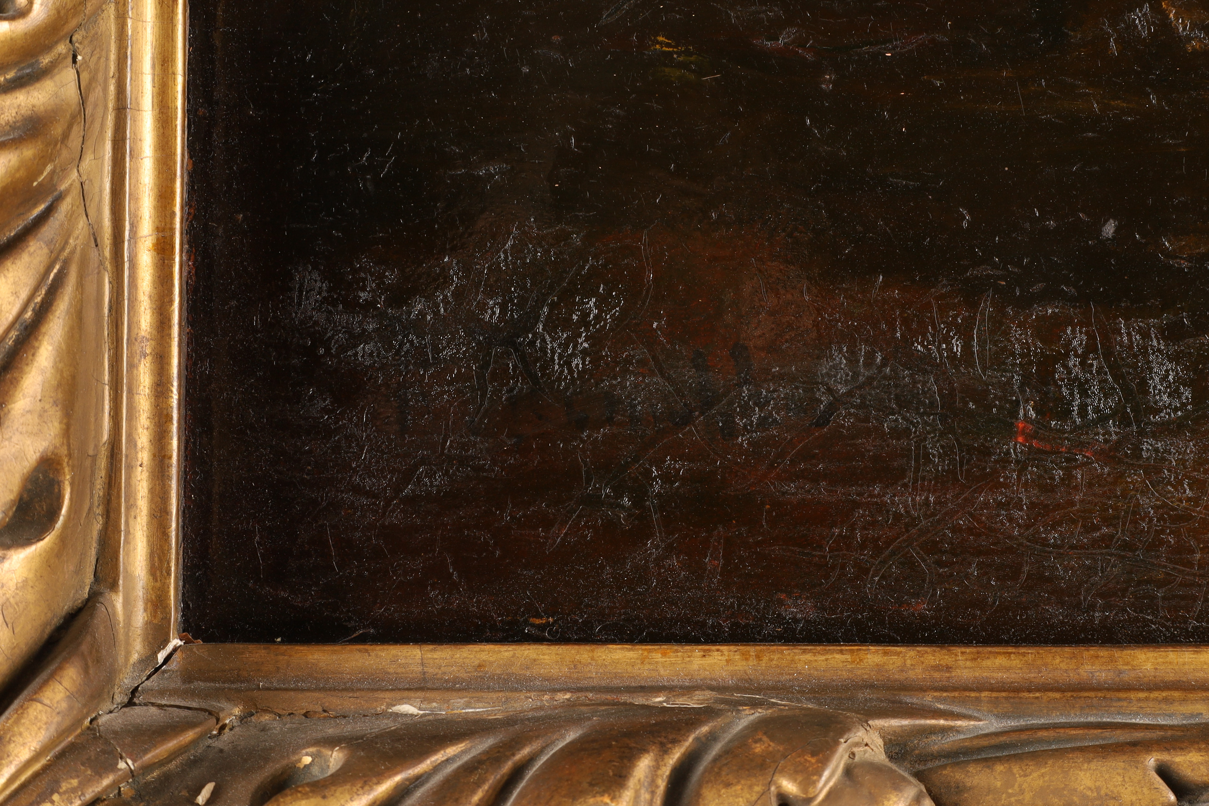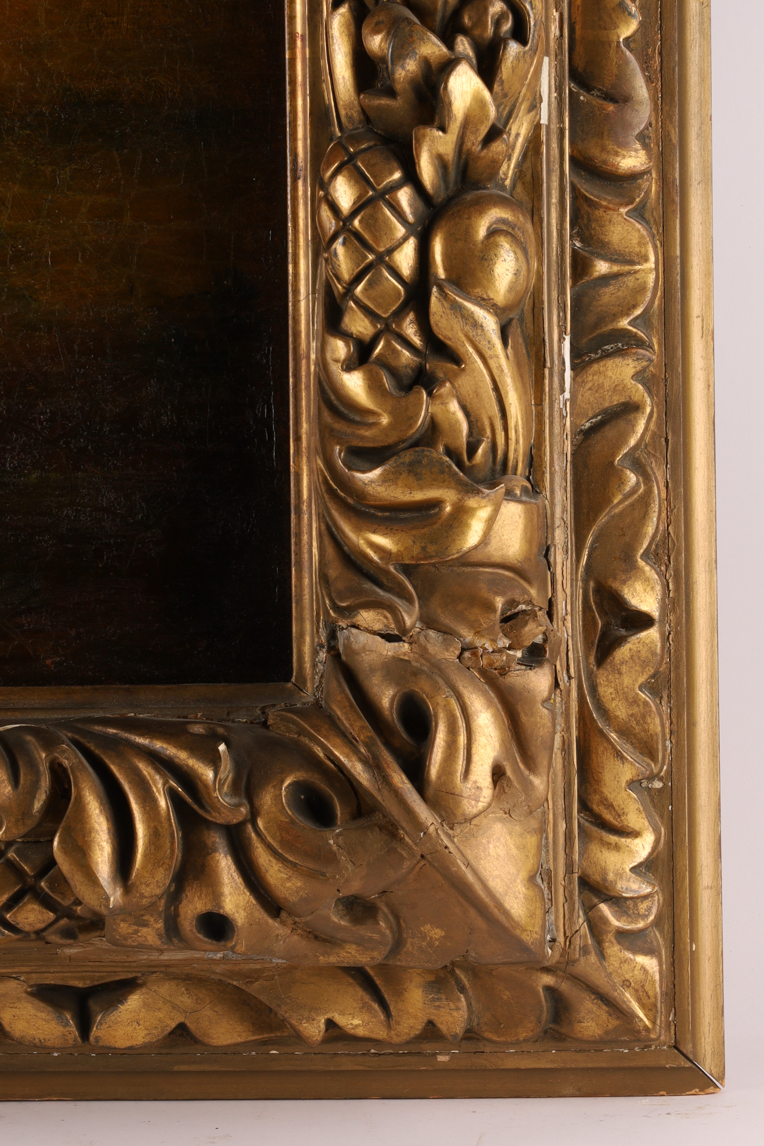 Frame: Ornate carved-and-gilded 19th-century frame with foliate and fruit motifs.