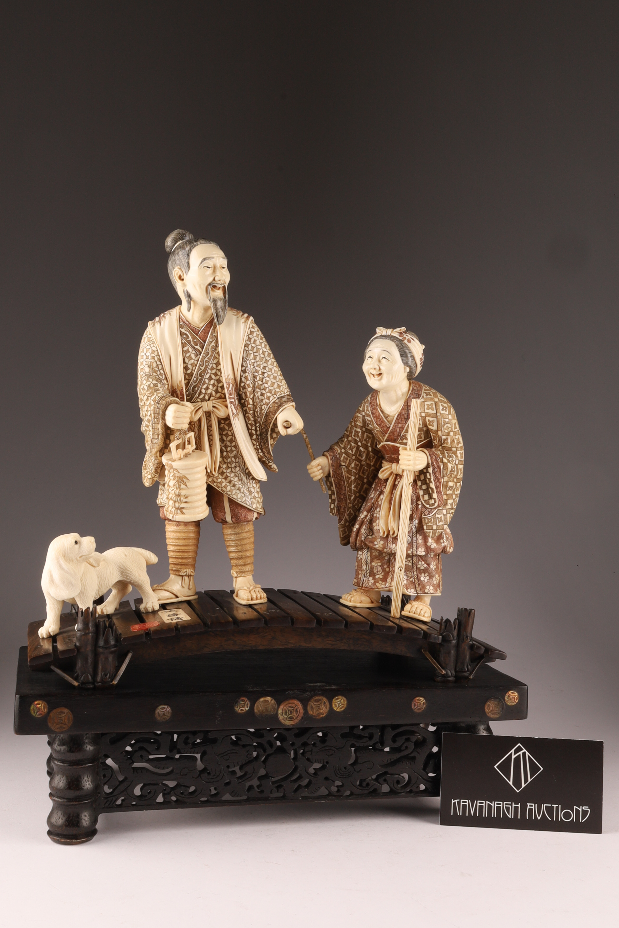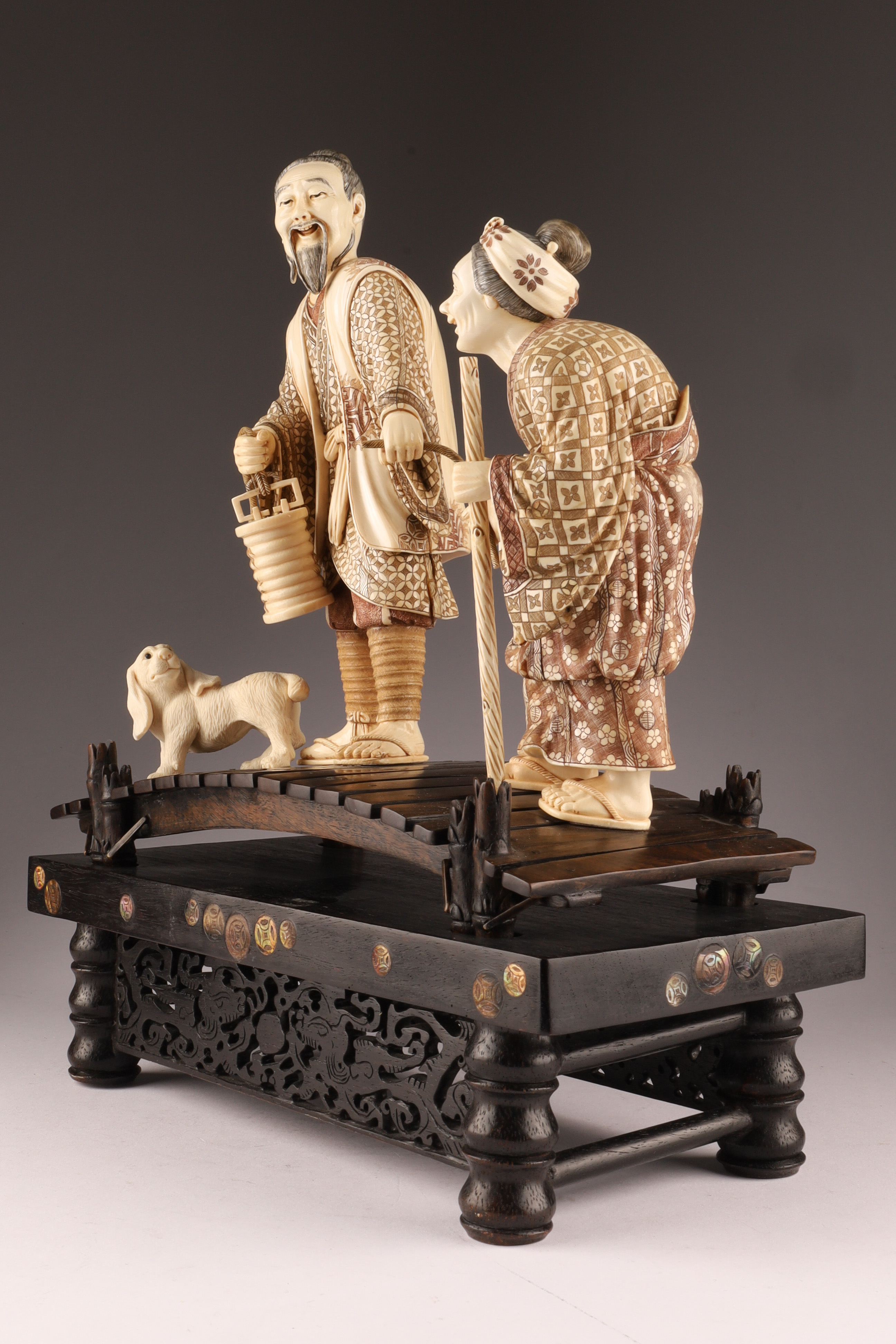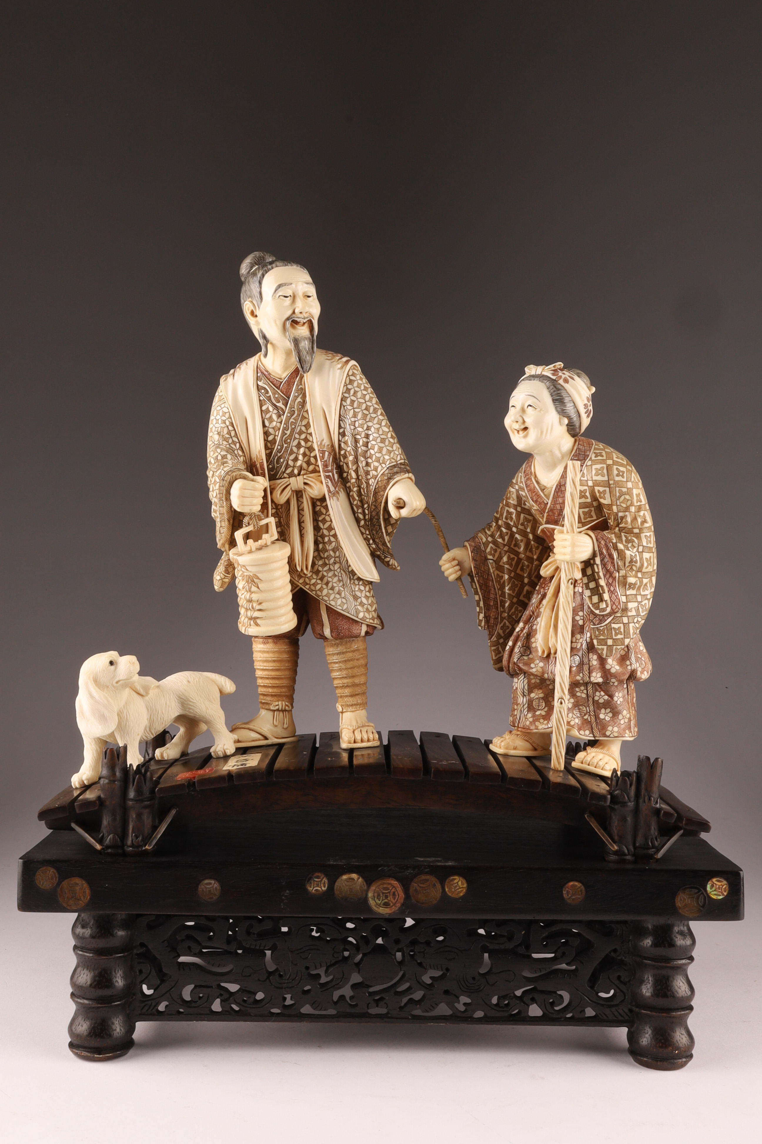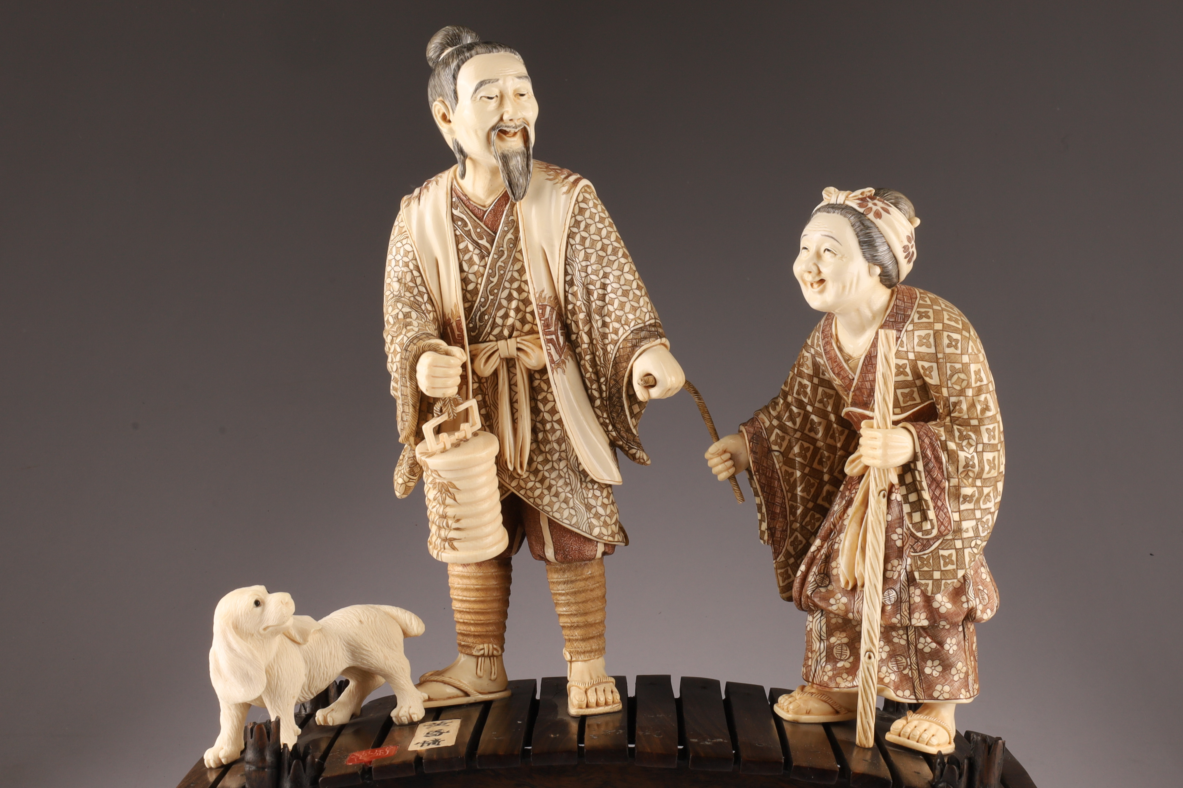 Large Figural Japanese Okimono Grouping. 13 x 11 x 5 inches. THIS LOT CANNOT BE EXPORTED FROM CANADA.