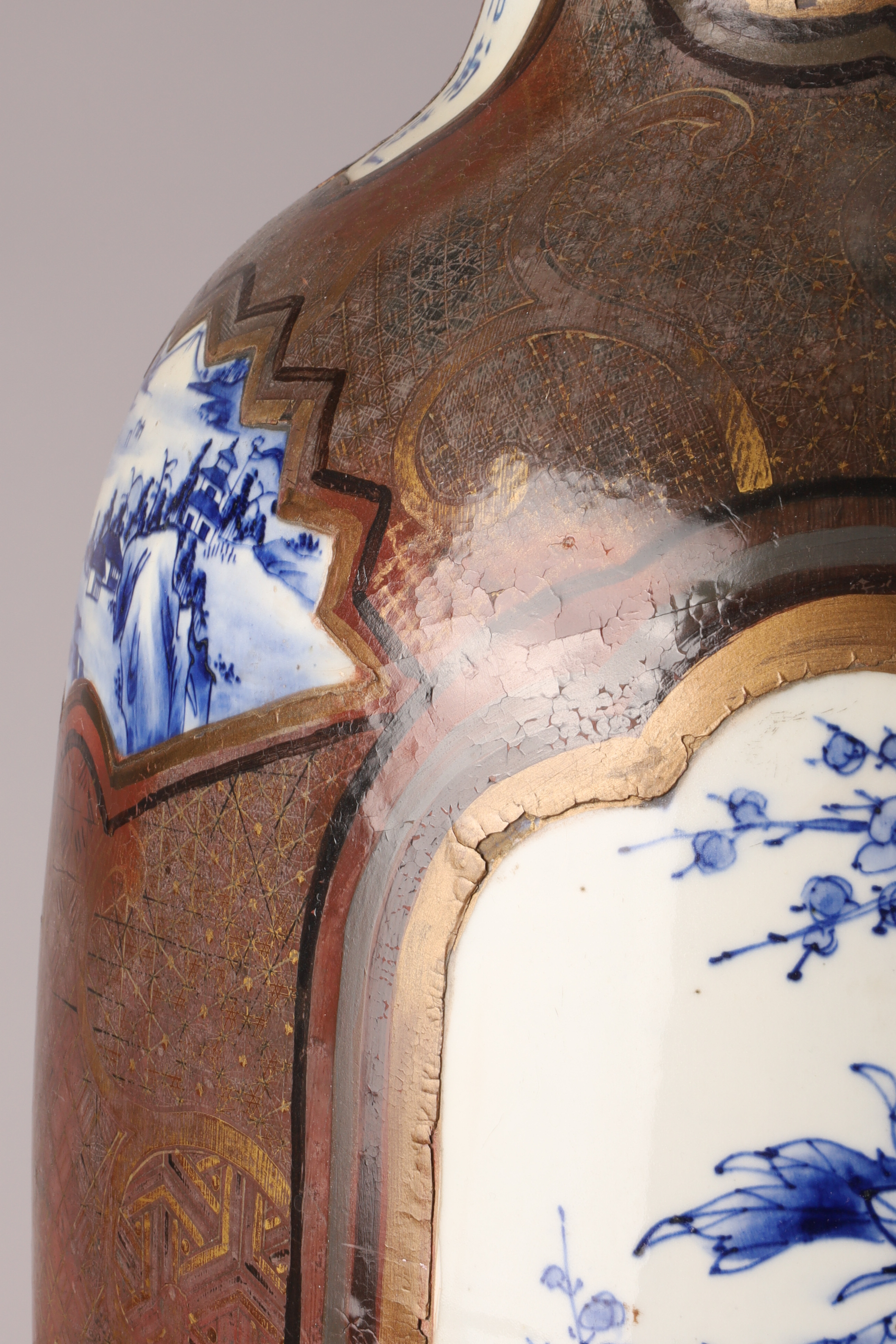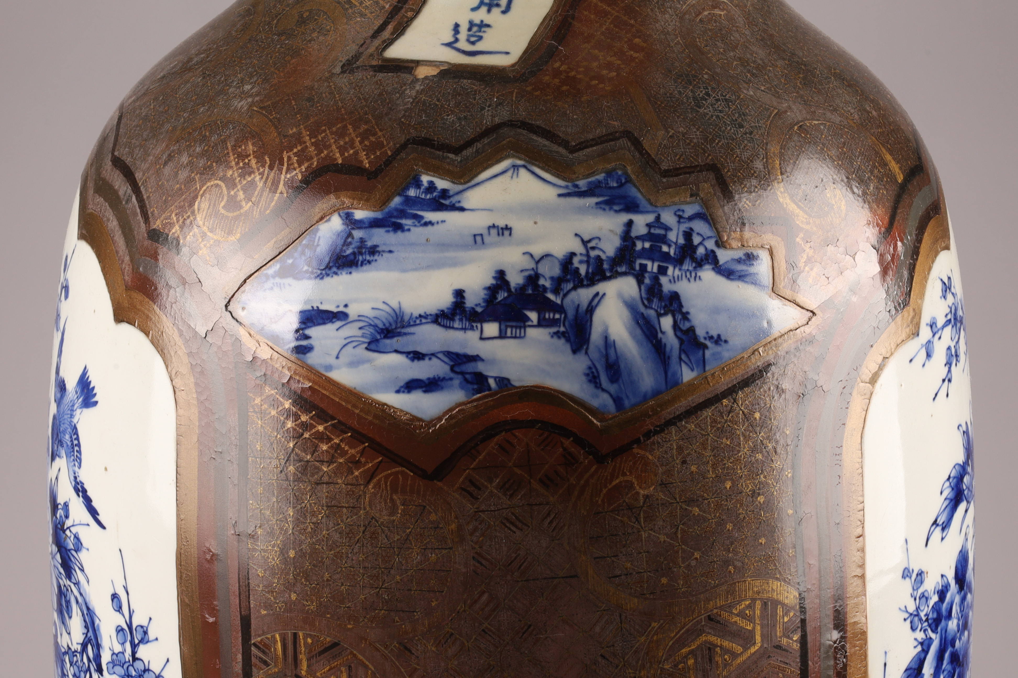Very Large Antique Japanese Blue and White Floor Vase, Brown and Gilt Decoration