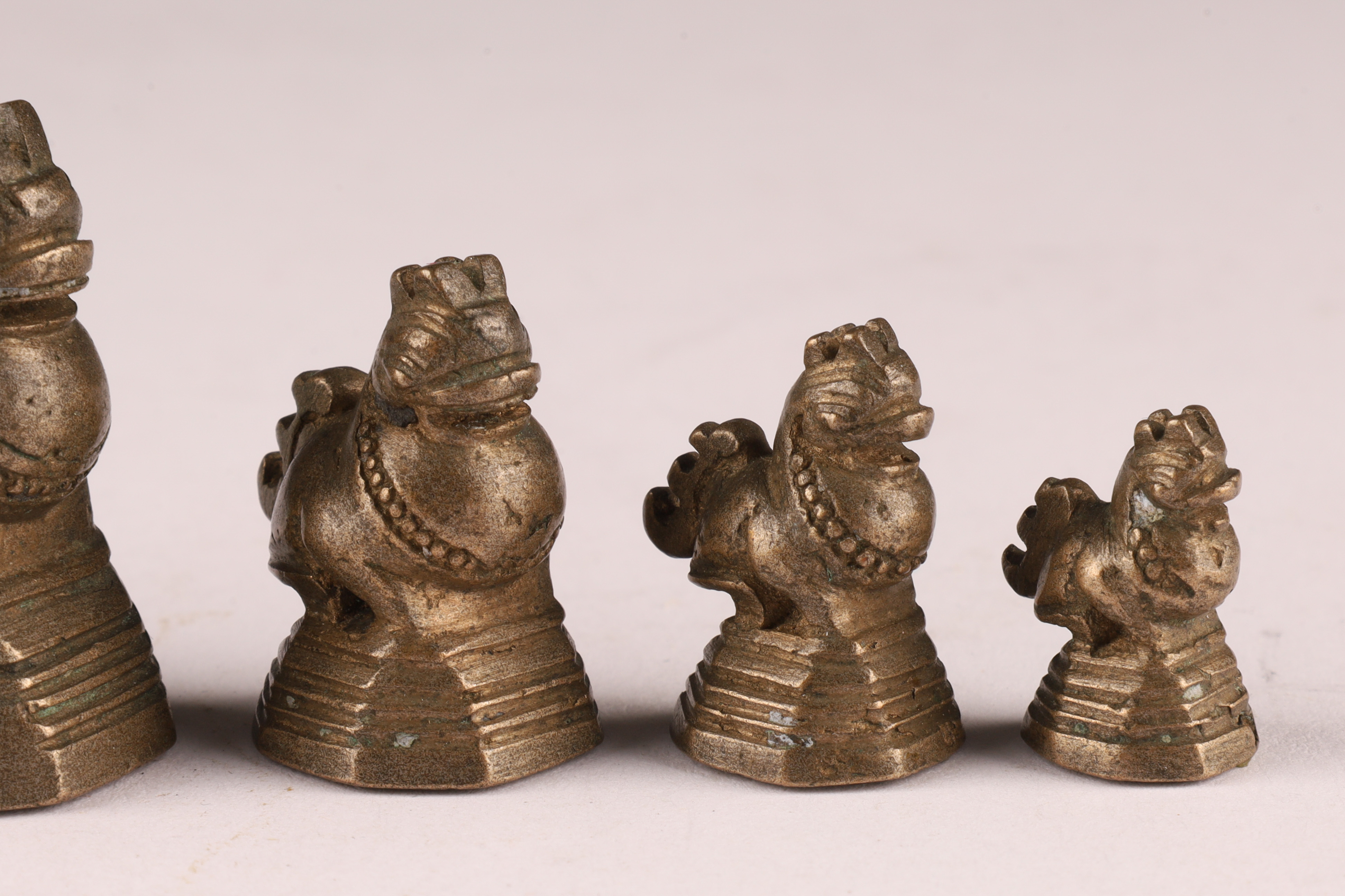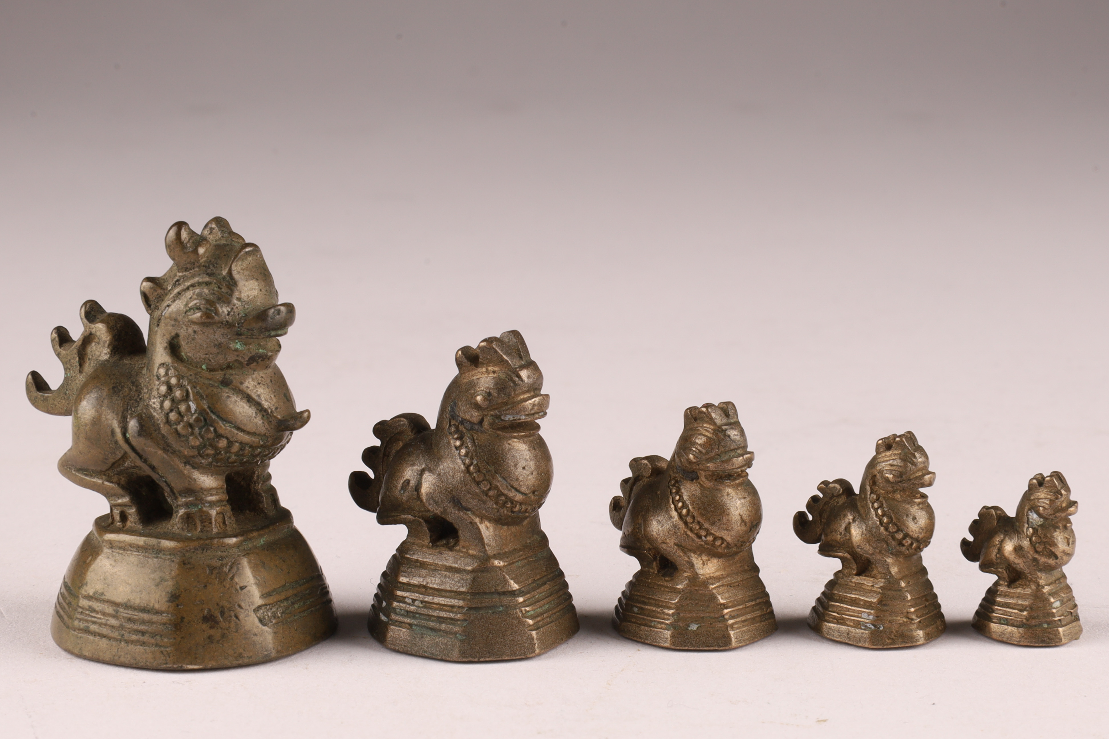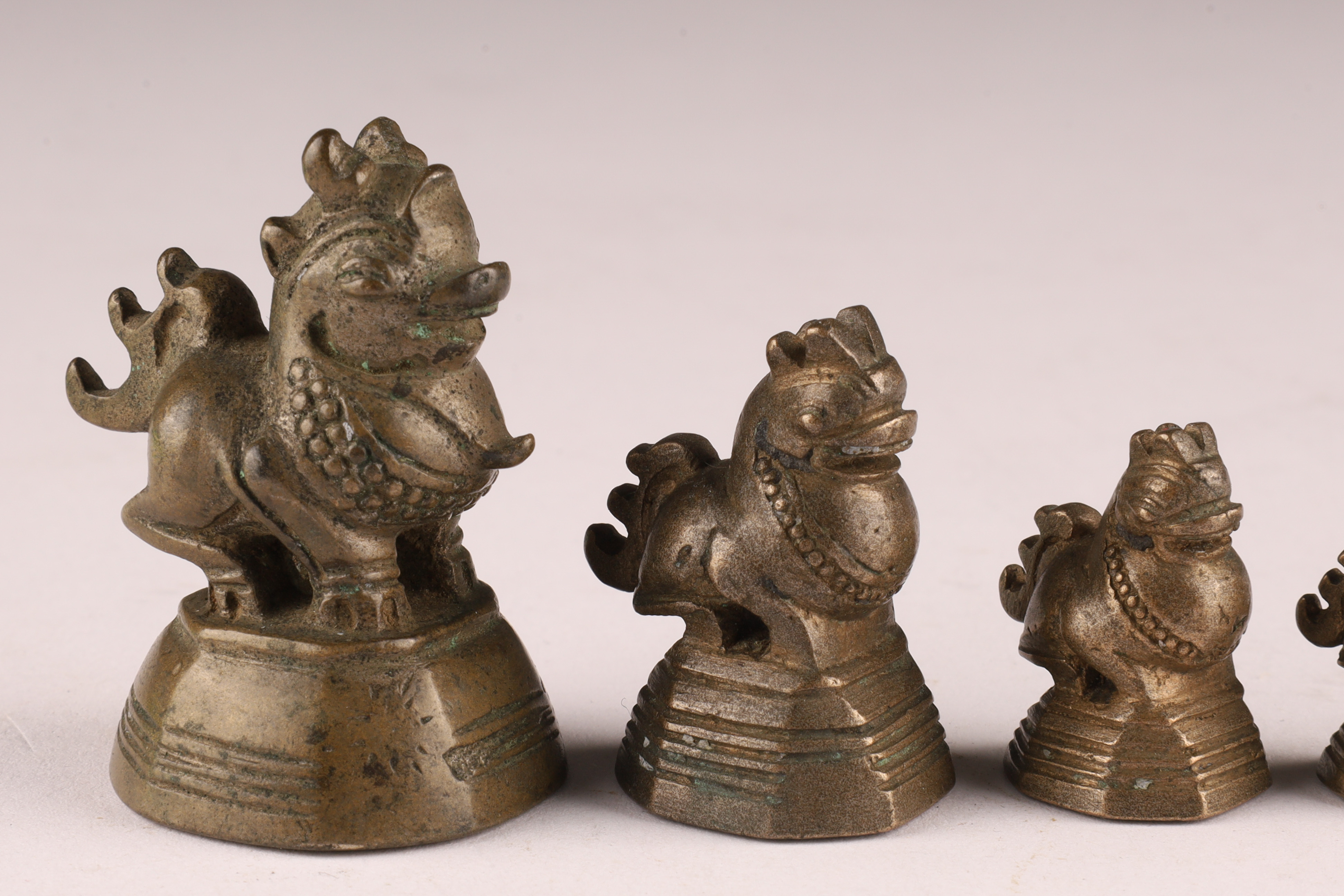 Set Antique Burmese Bronze Opium or Gold Weights Foo Lions