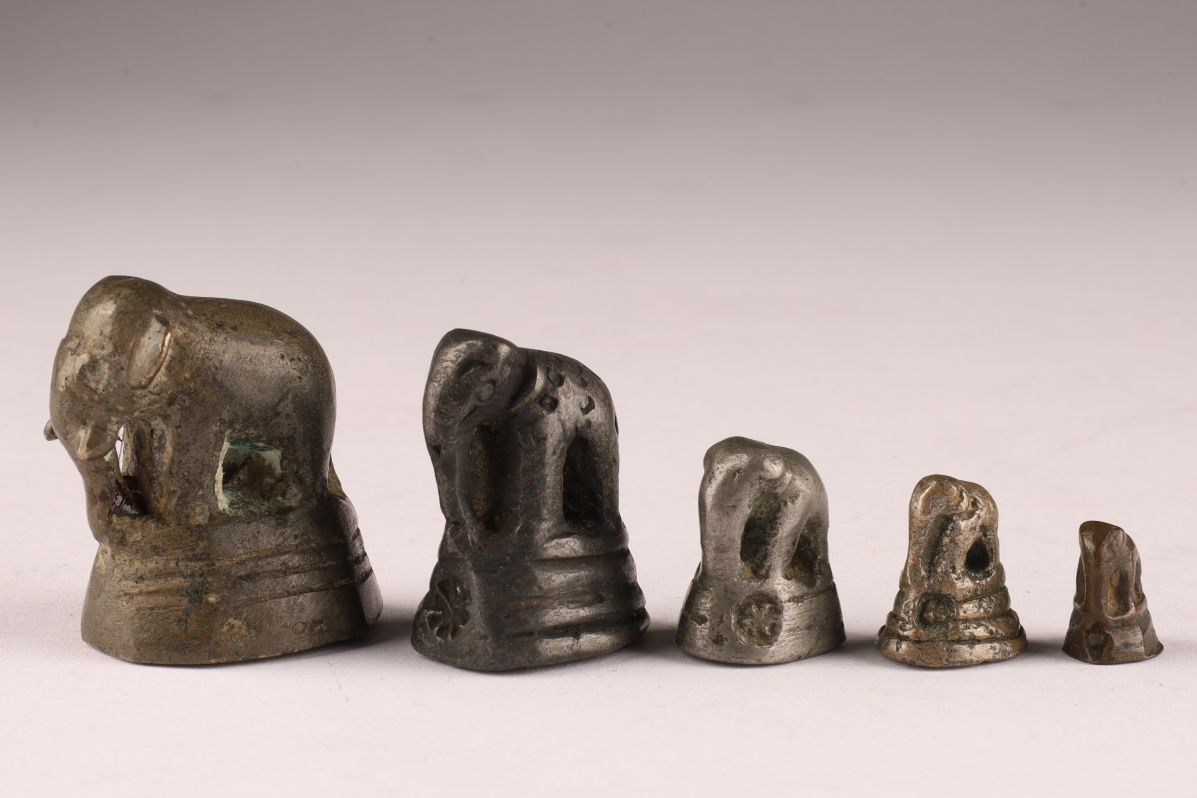 Set Antique Burmese Bronze Opium or Gold Weights Elephants