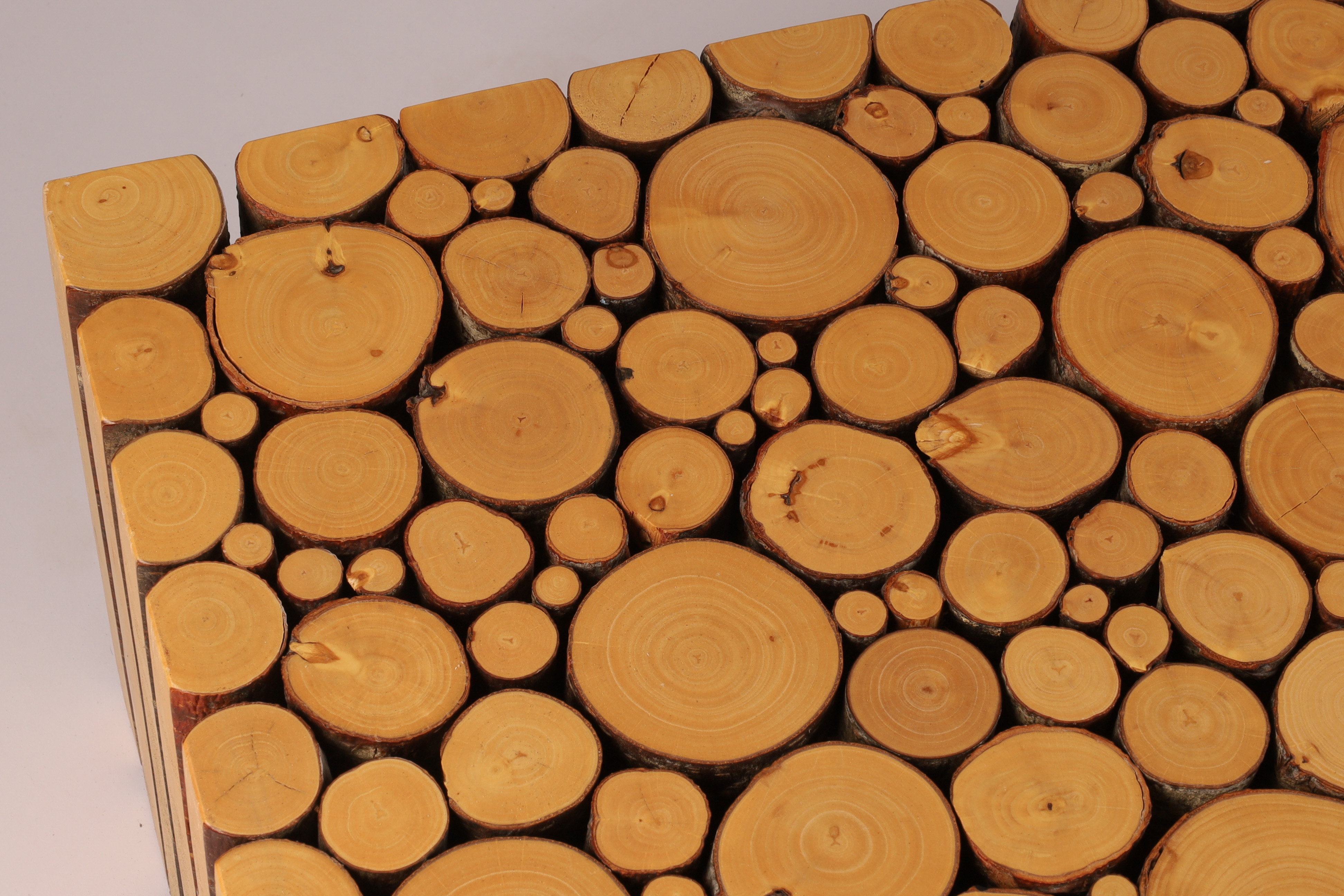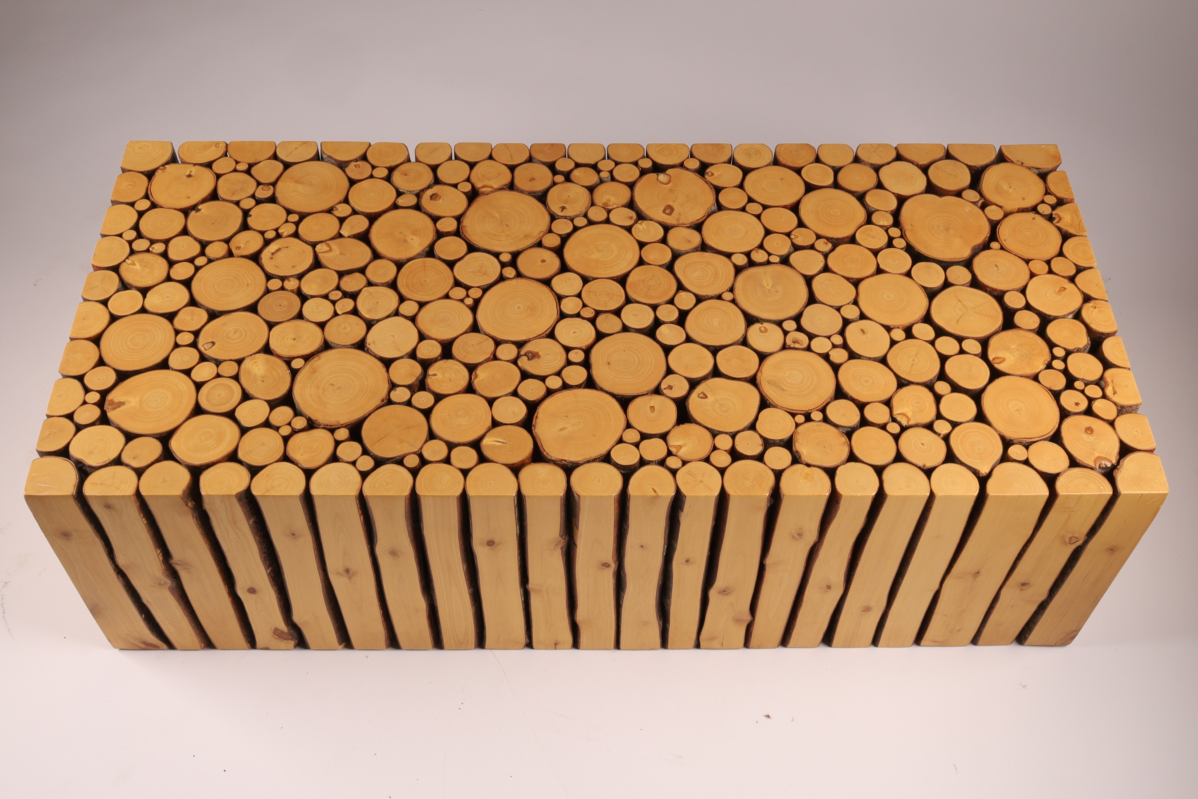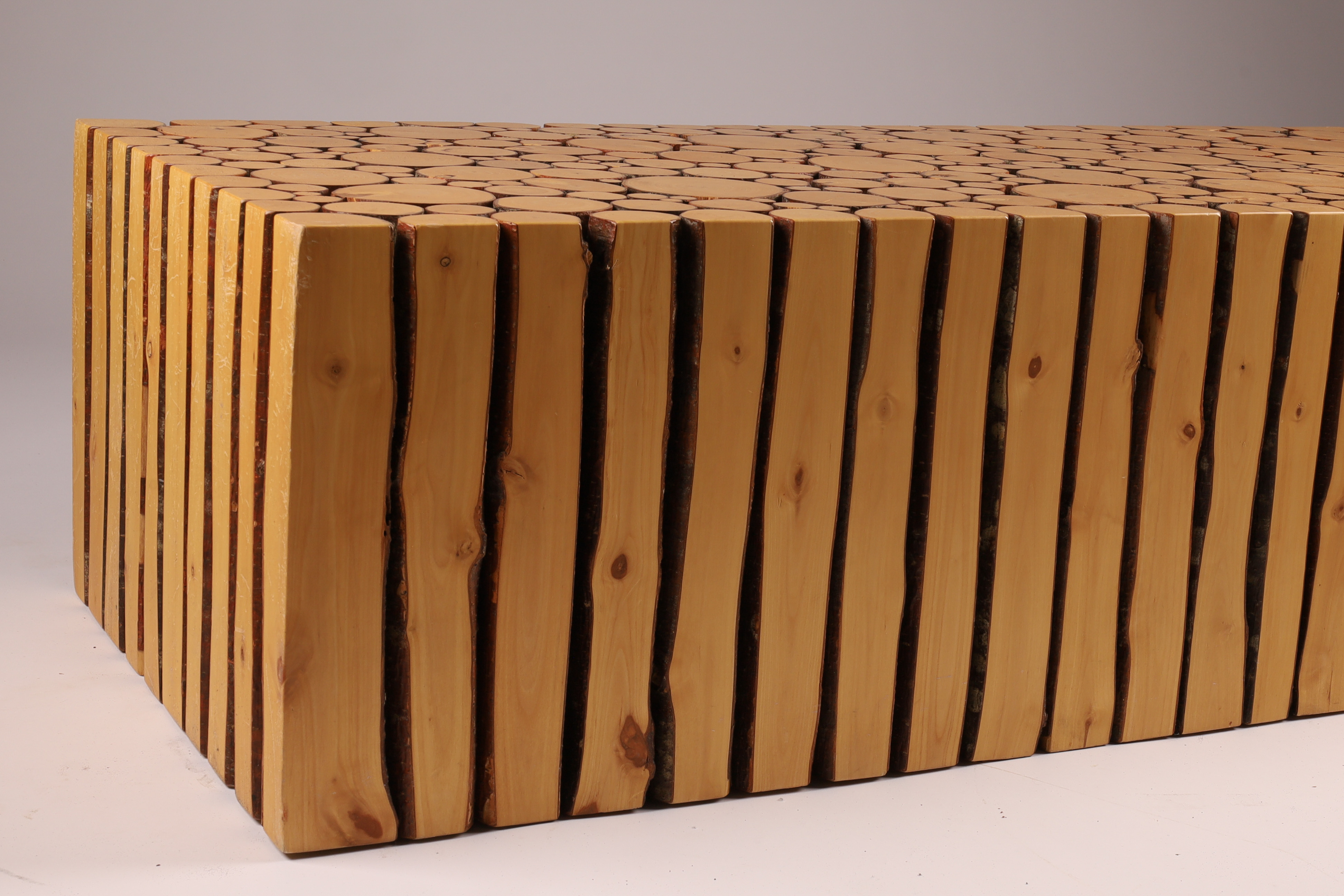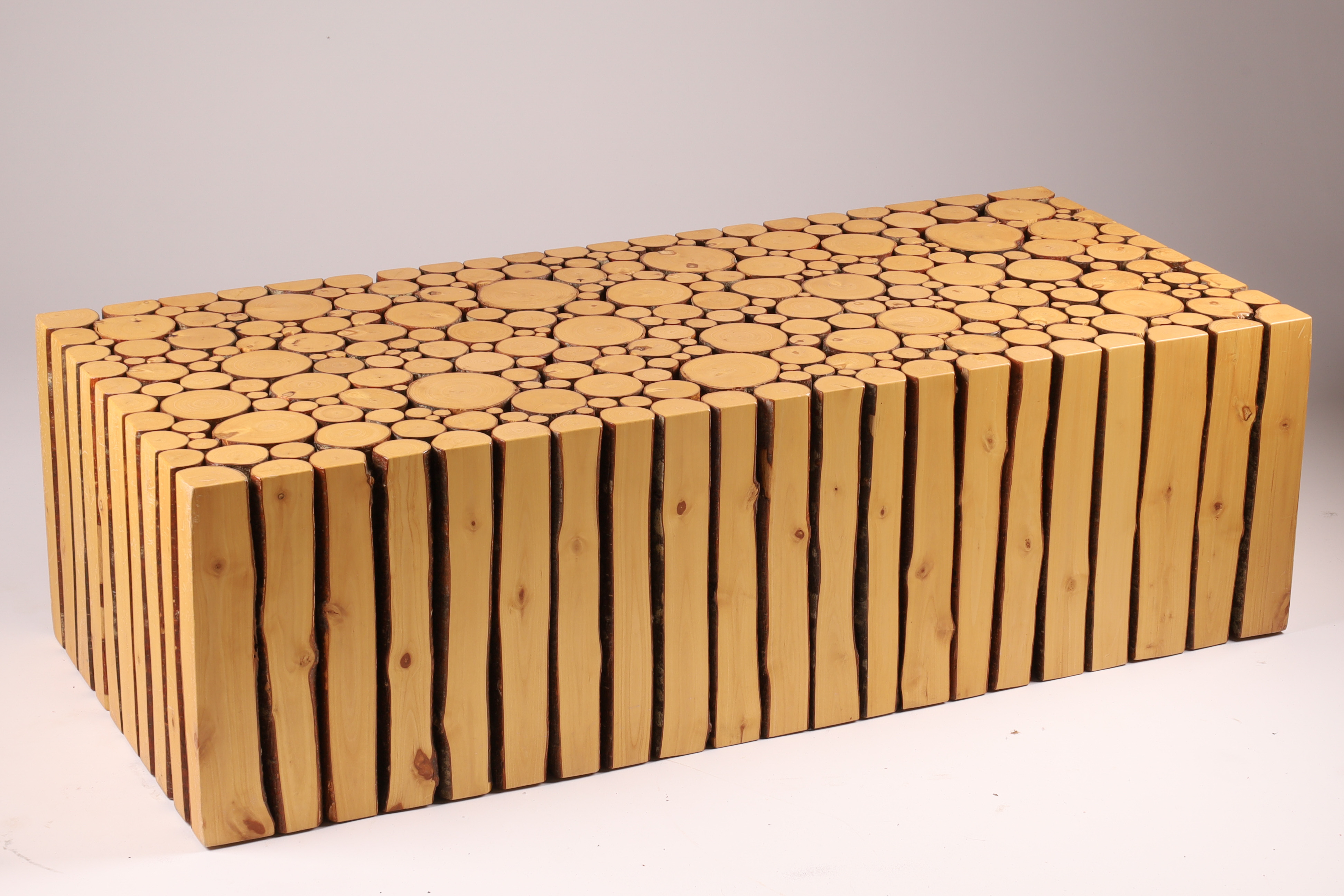 Coffee table by Canadian artist Brent Comber (Vancouver, BC). Plinth made from alder wood. Heavy. High quality. Purchased it in 2006 from Inform Interiors – a high end furniture store in Seattle and Vancouver. 40″L x 18″W x 12”H.