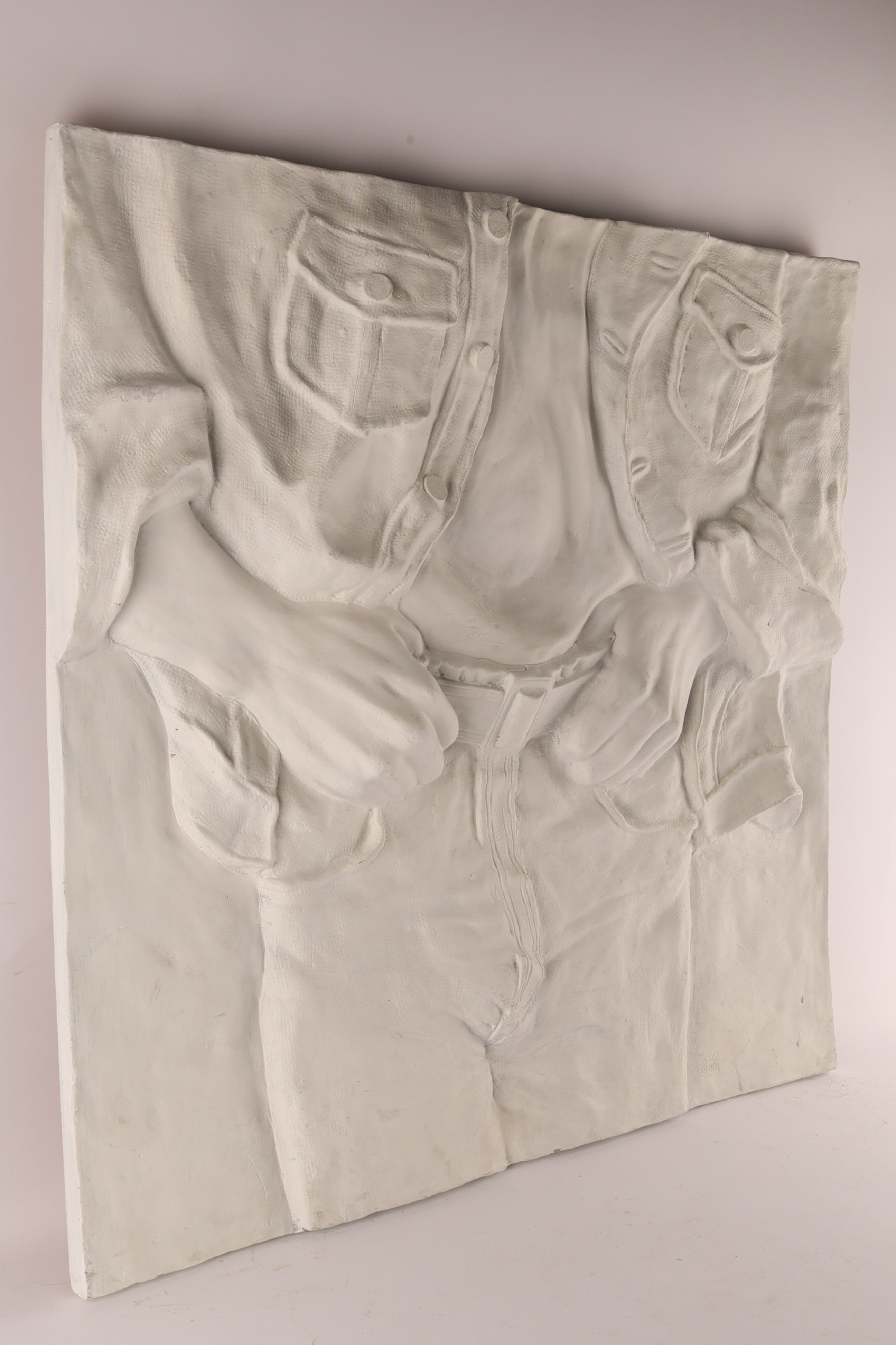 Large 1988 Pyrofoam Bas-Relief “Jeans – Crotch Shot”, Studio Mark AGD/88, Post-Modern Fashion Sculpture, 33 in.