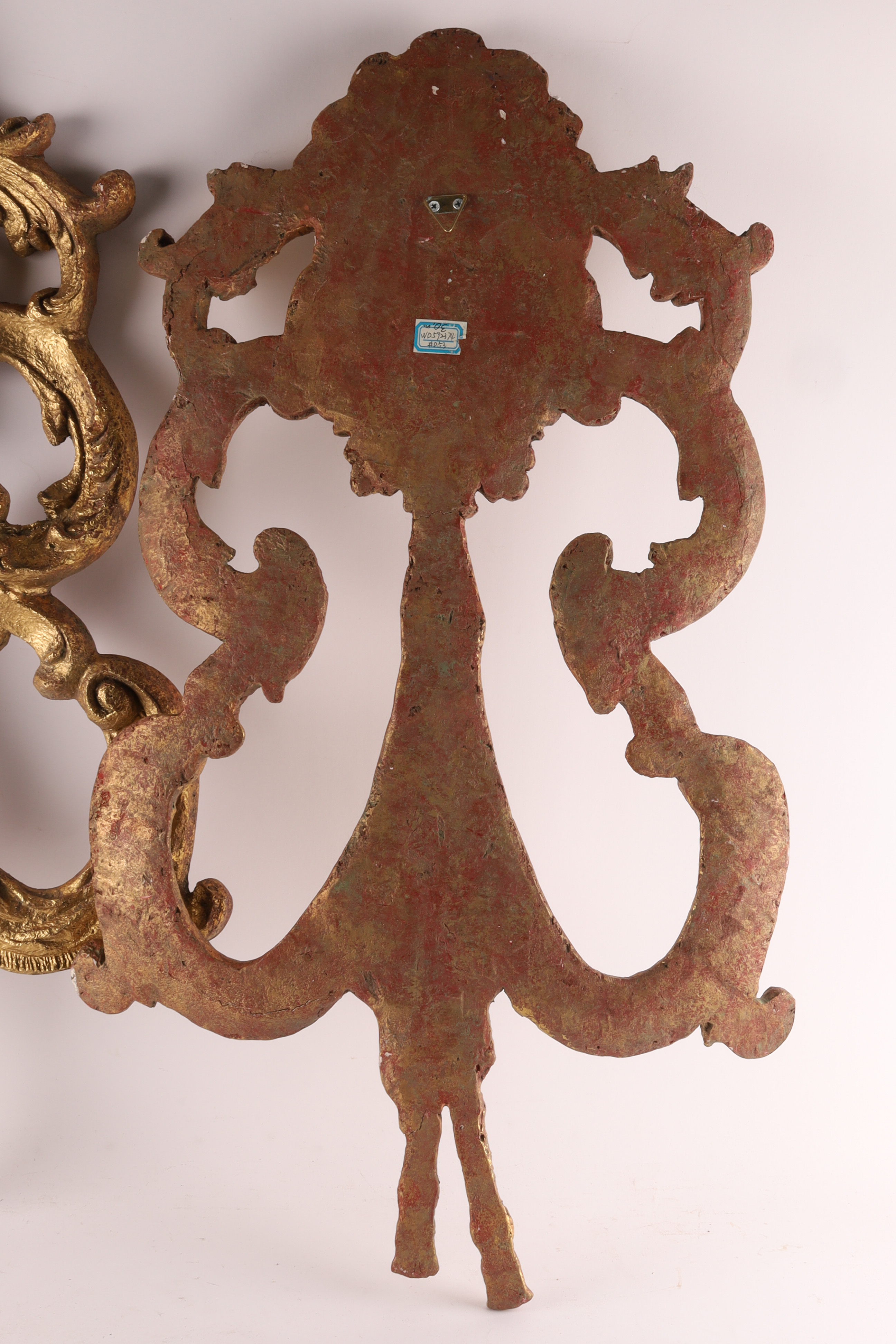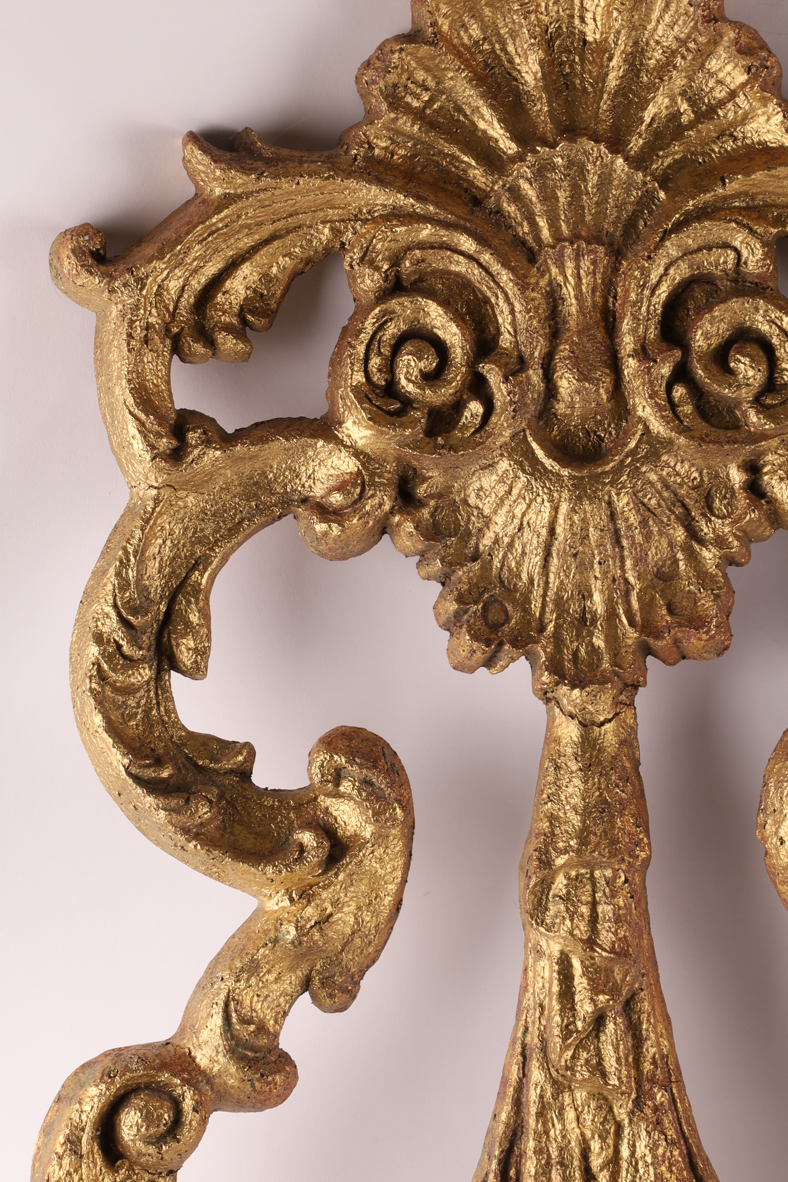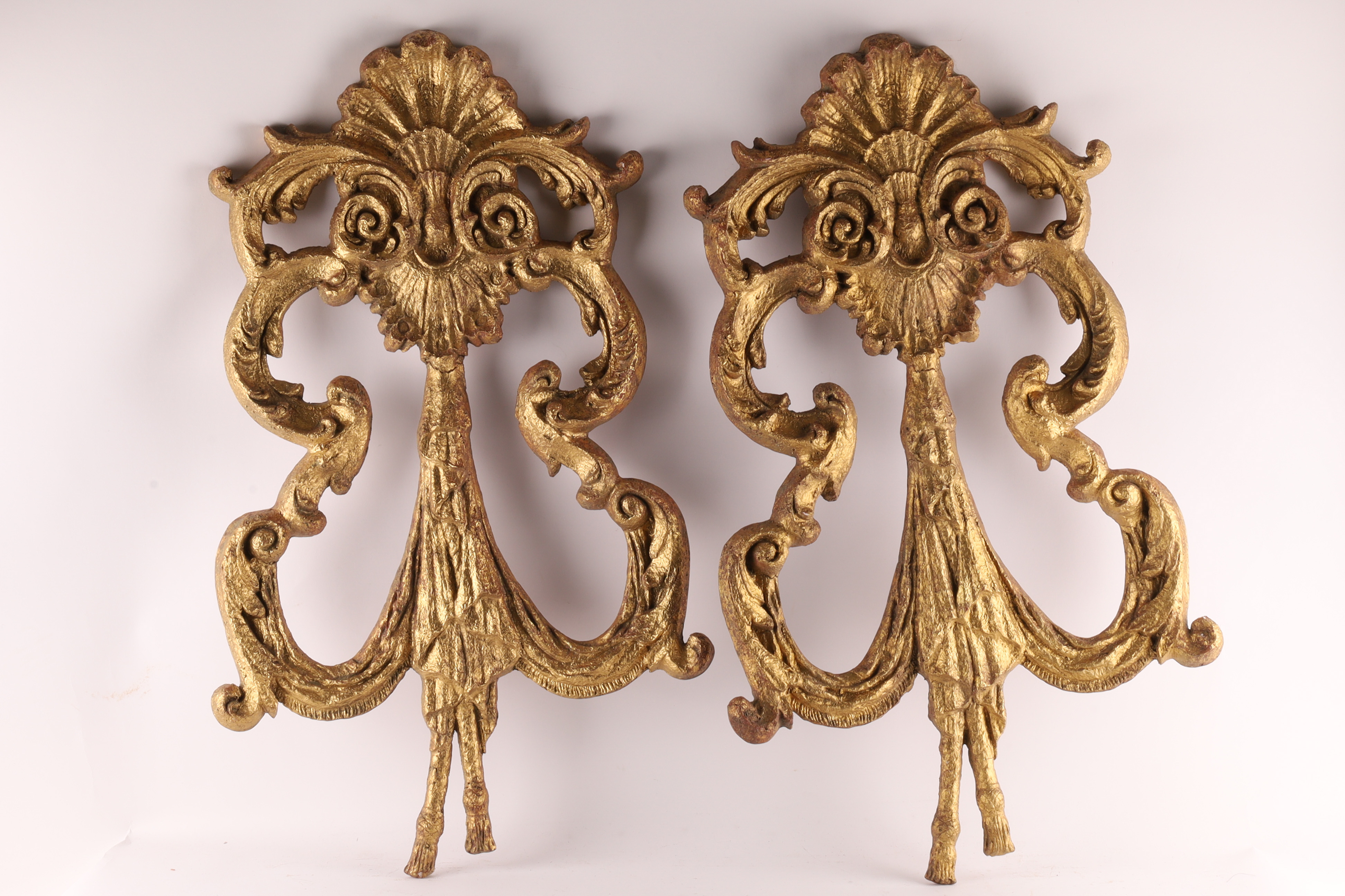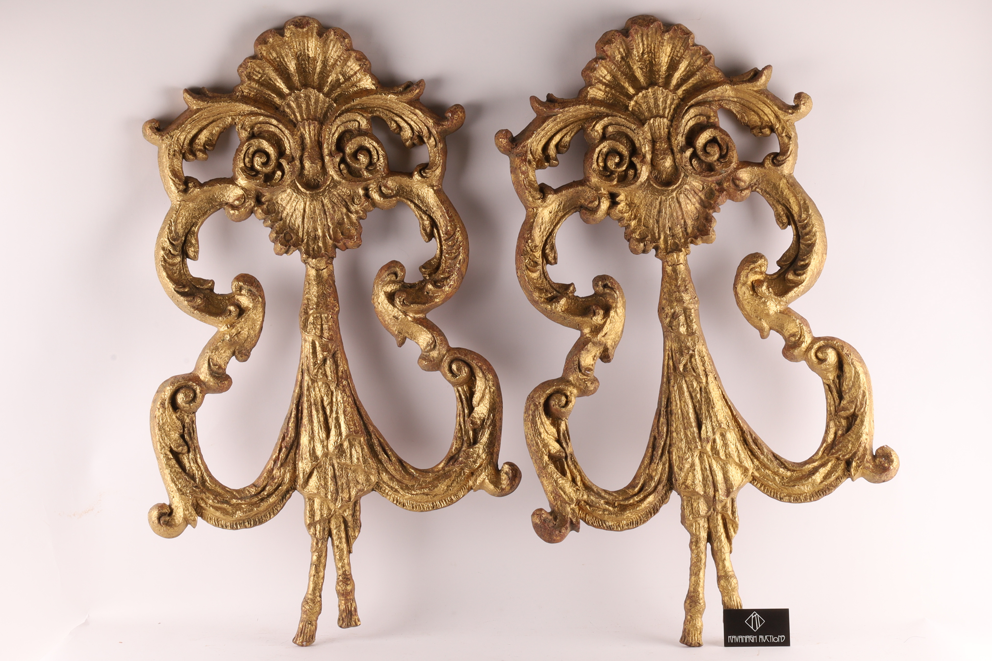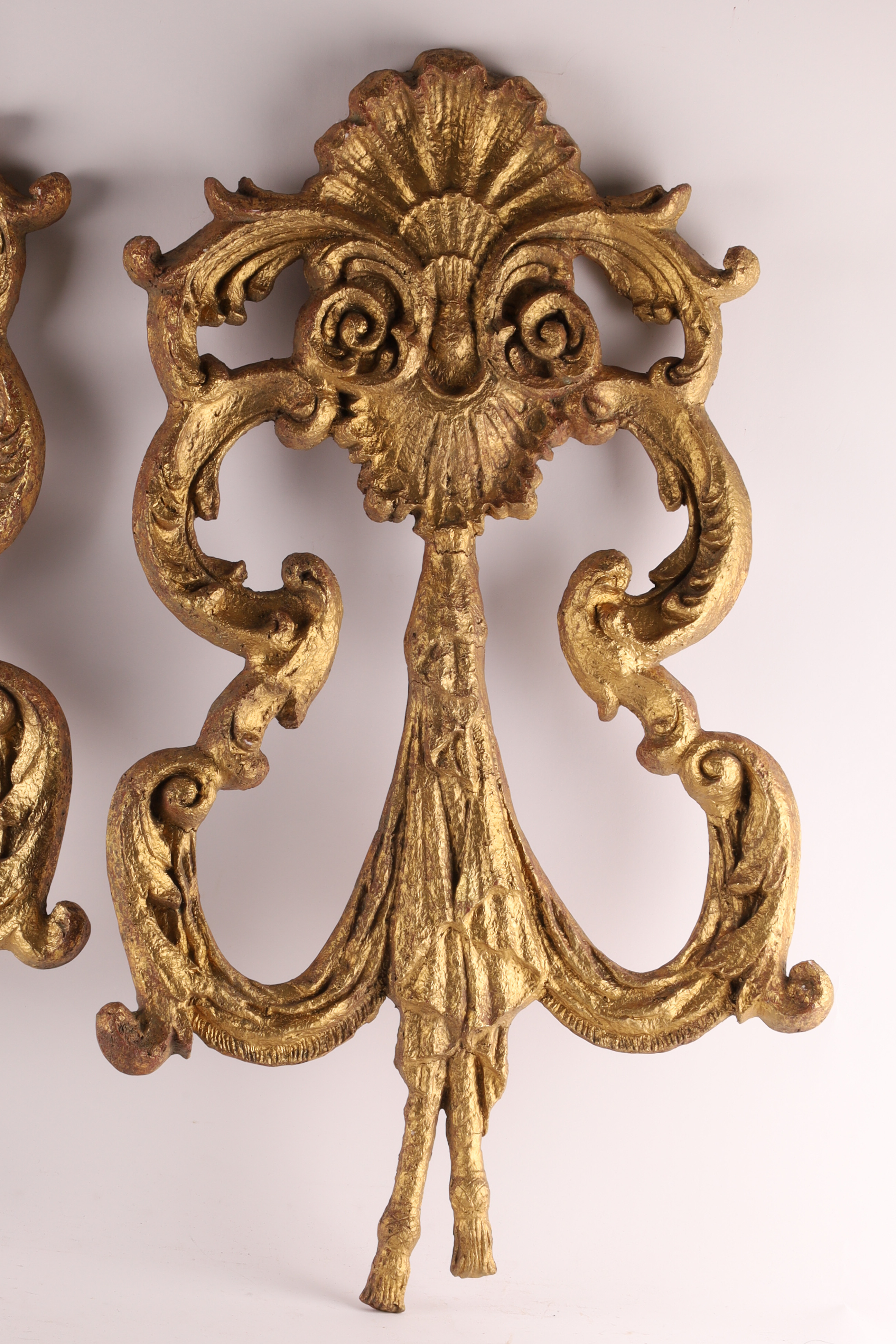 Pair of Hollywood Regency Rococo Style Ornate Gilt Wall Decorations