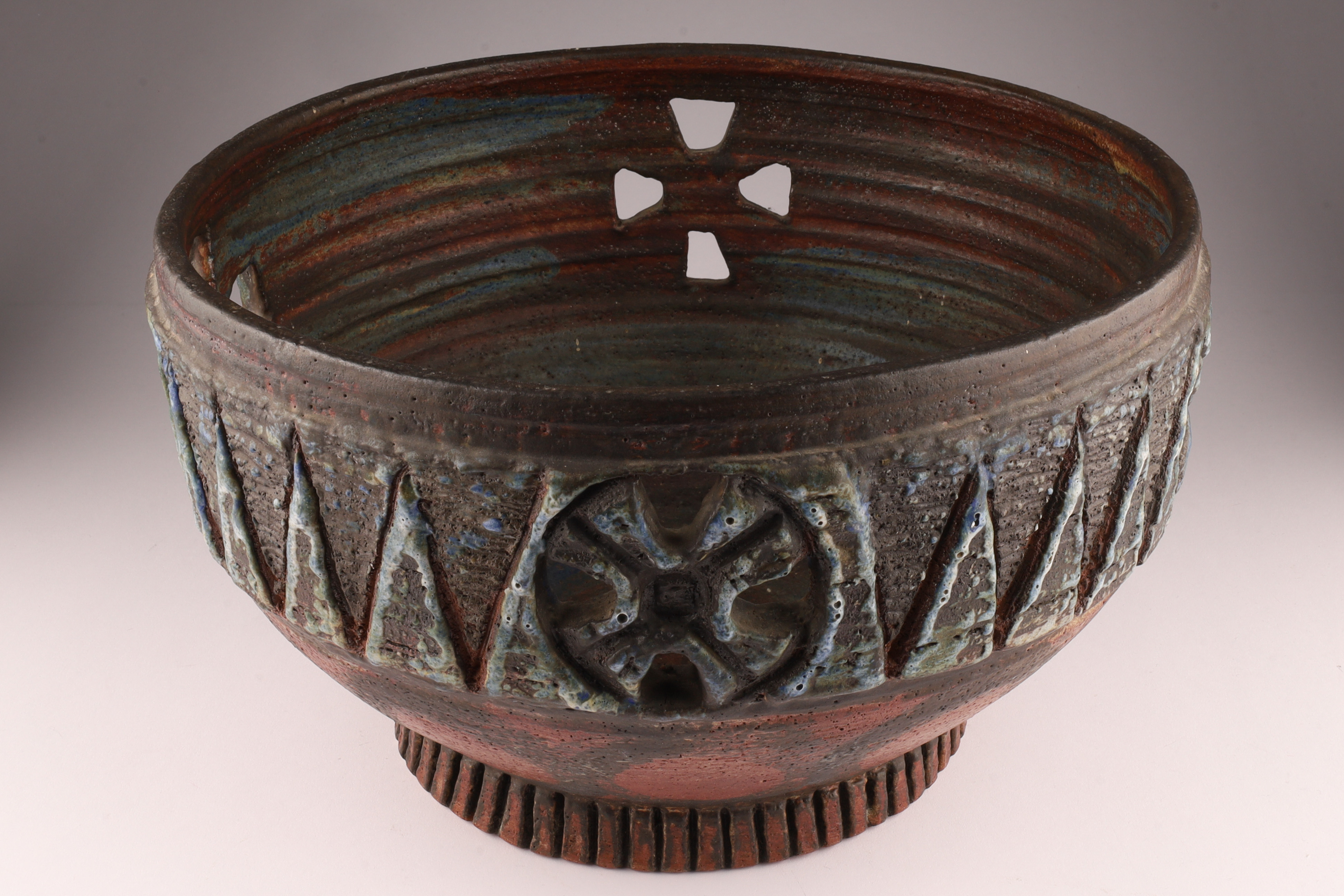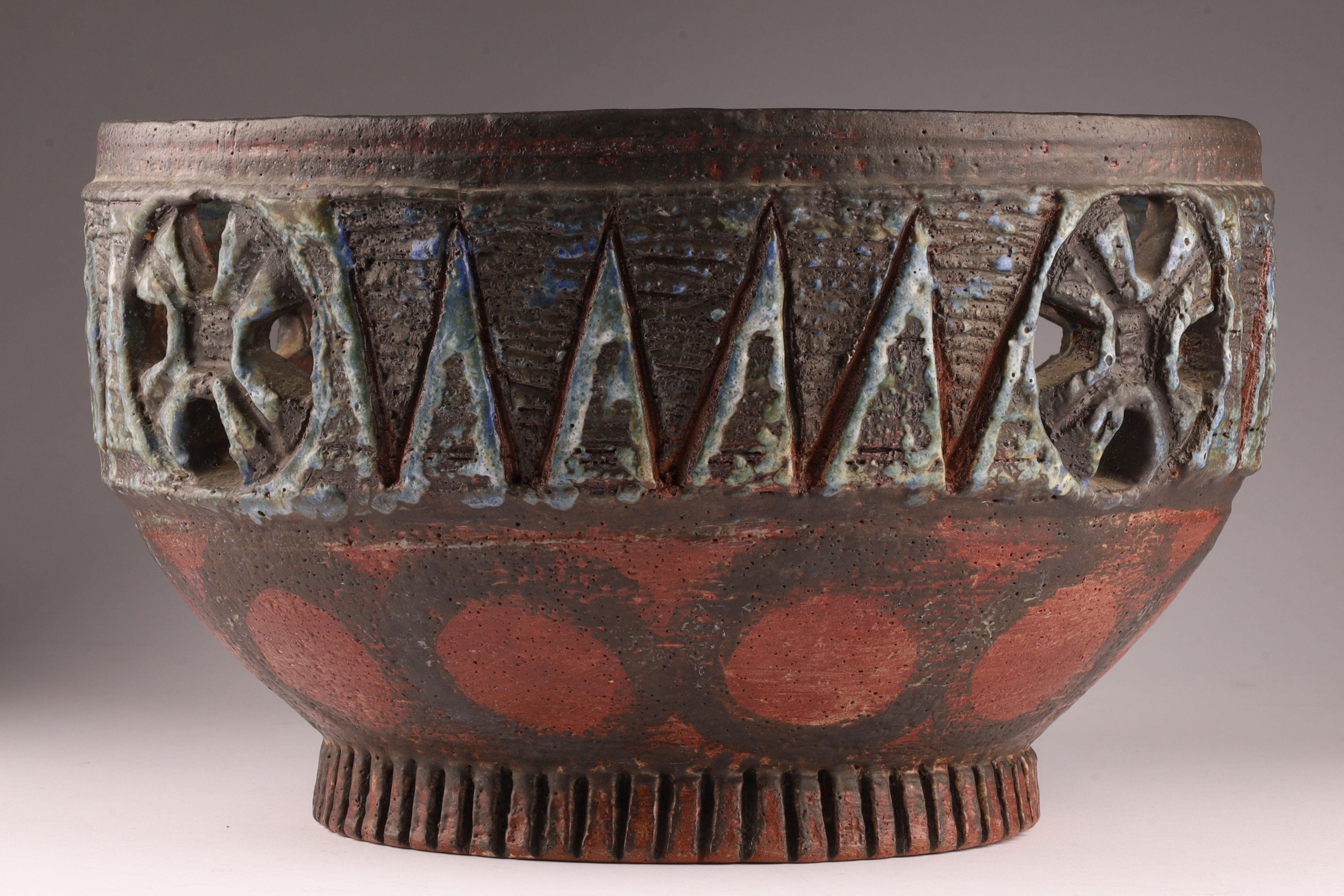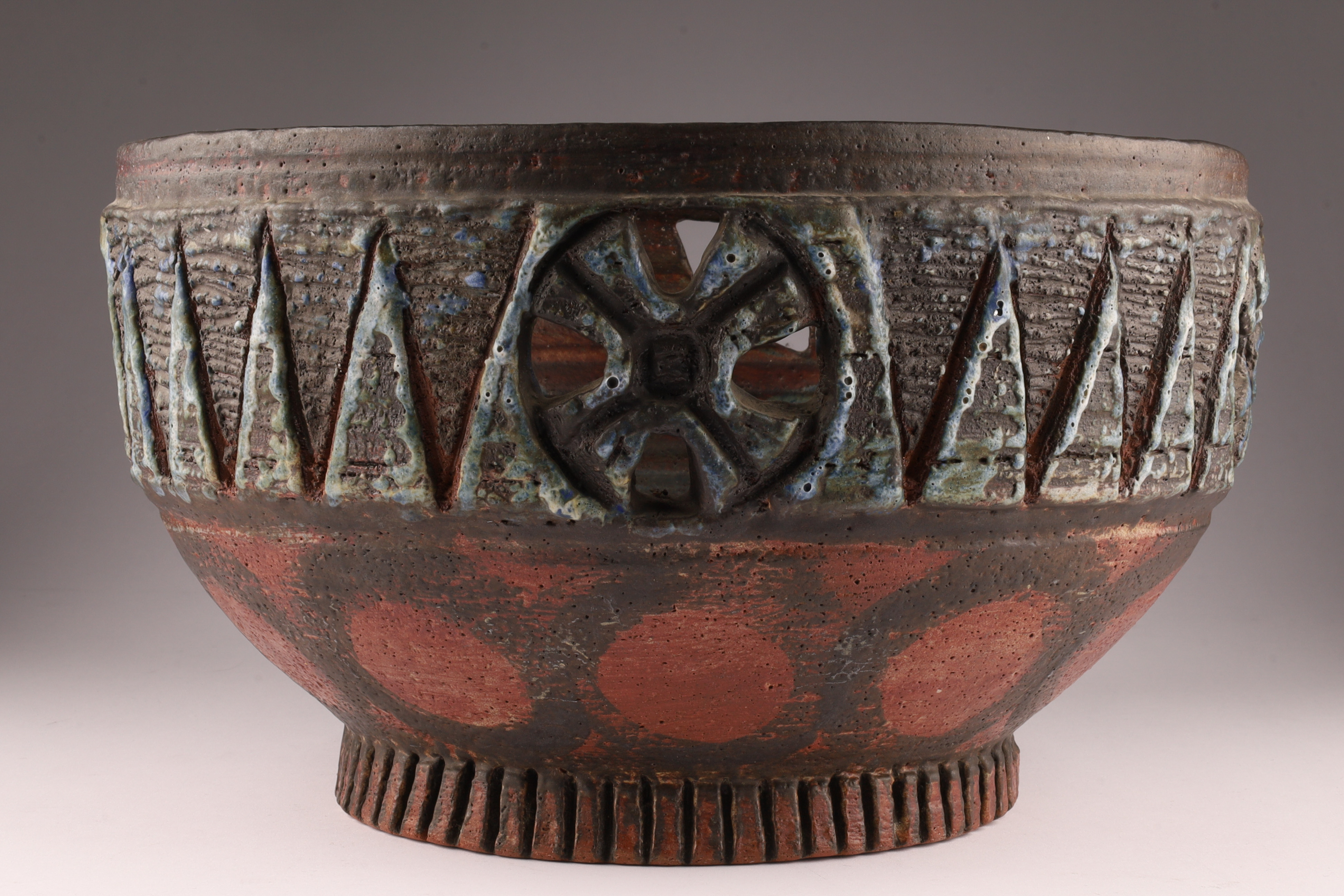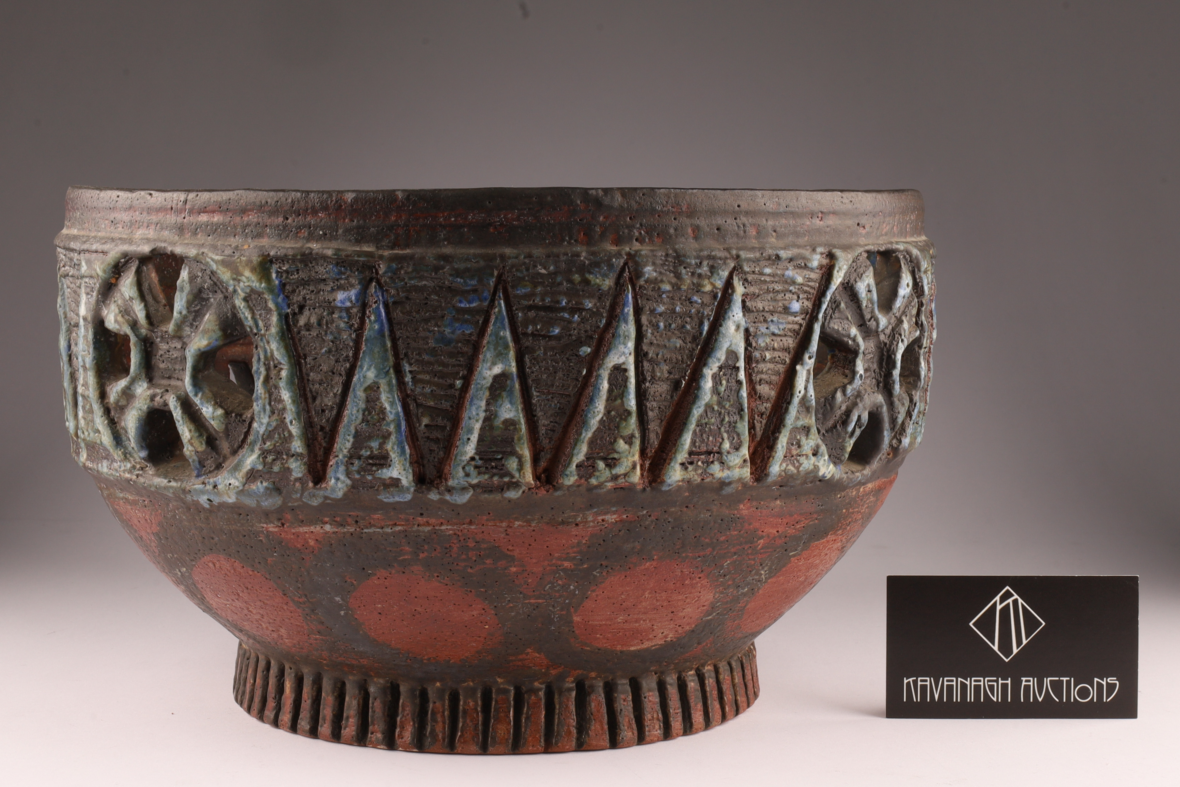 Mid Century Large Art Pottery Bowl Signed Broadbeck