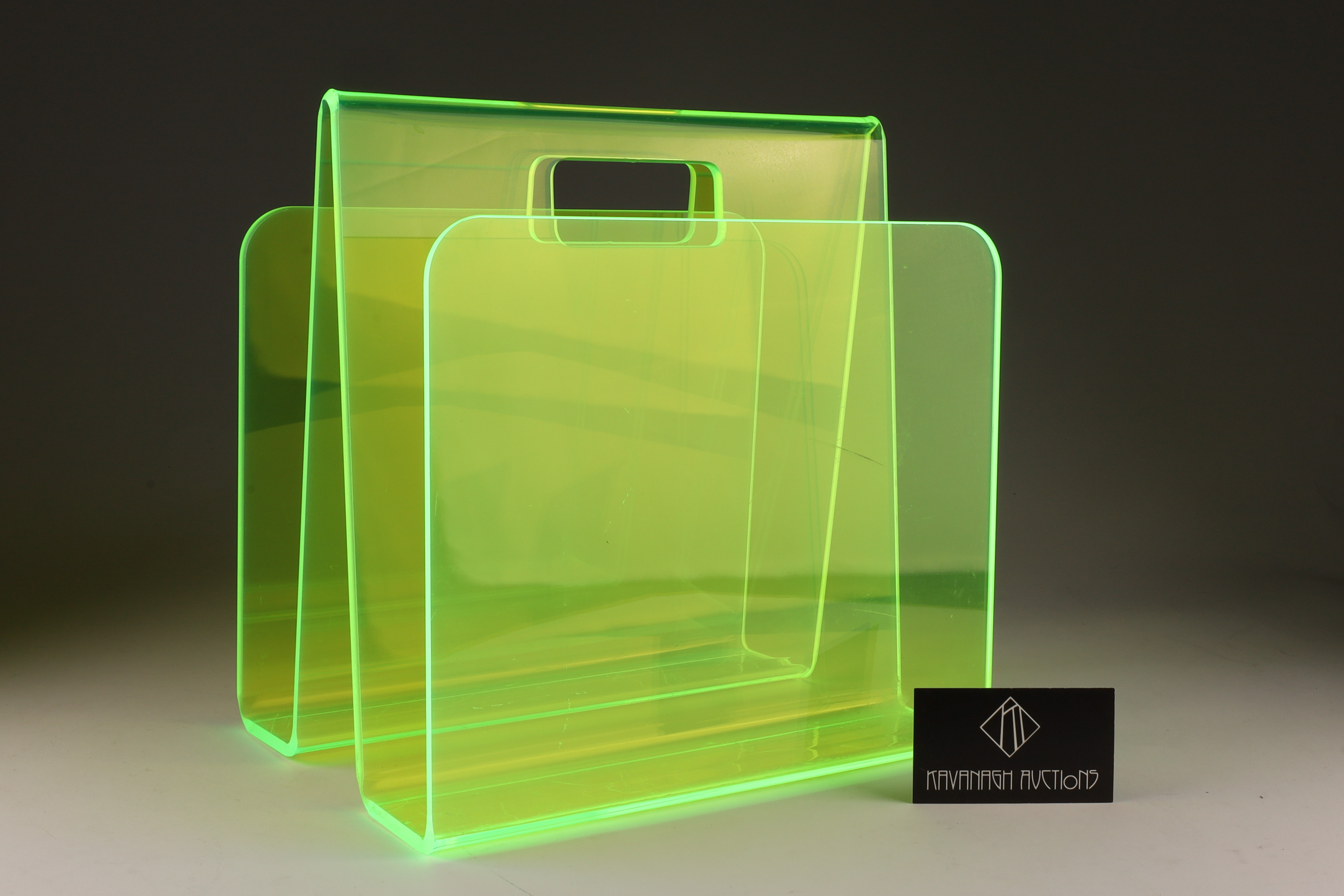 Mid Century Glow Lime Lucite Magazine Rack