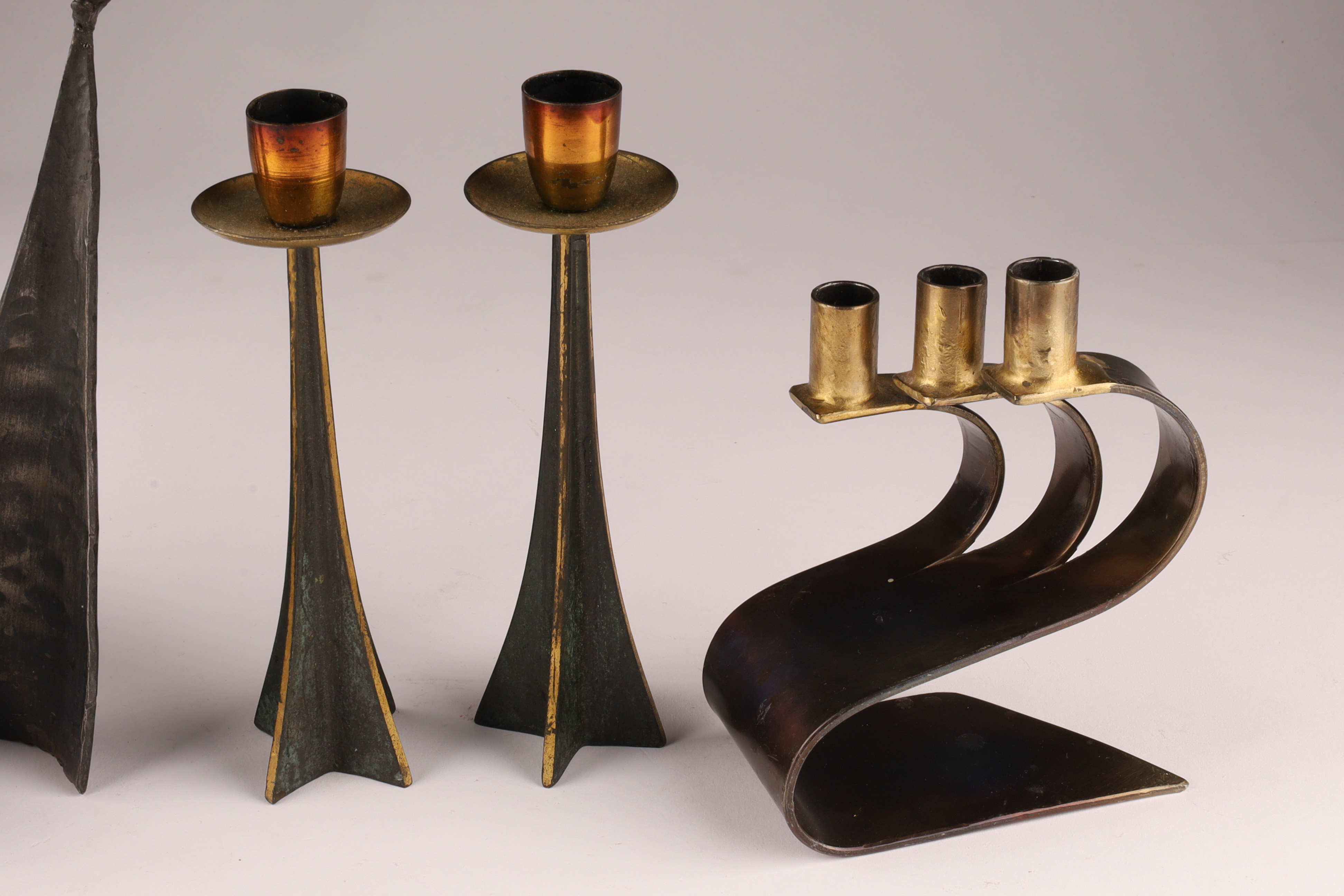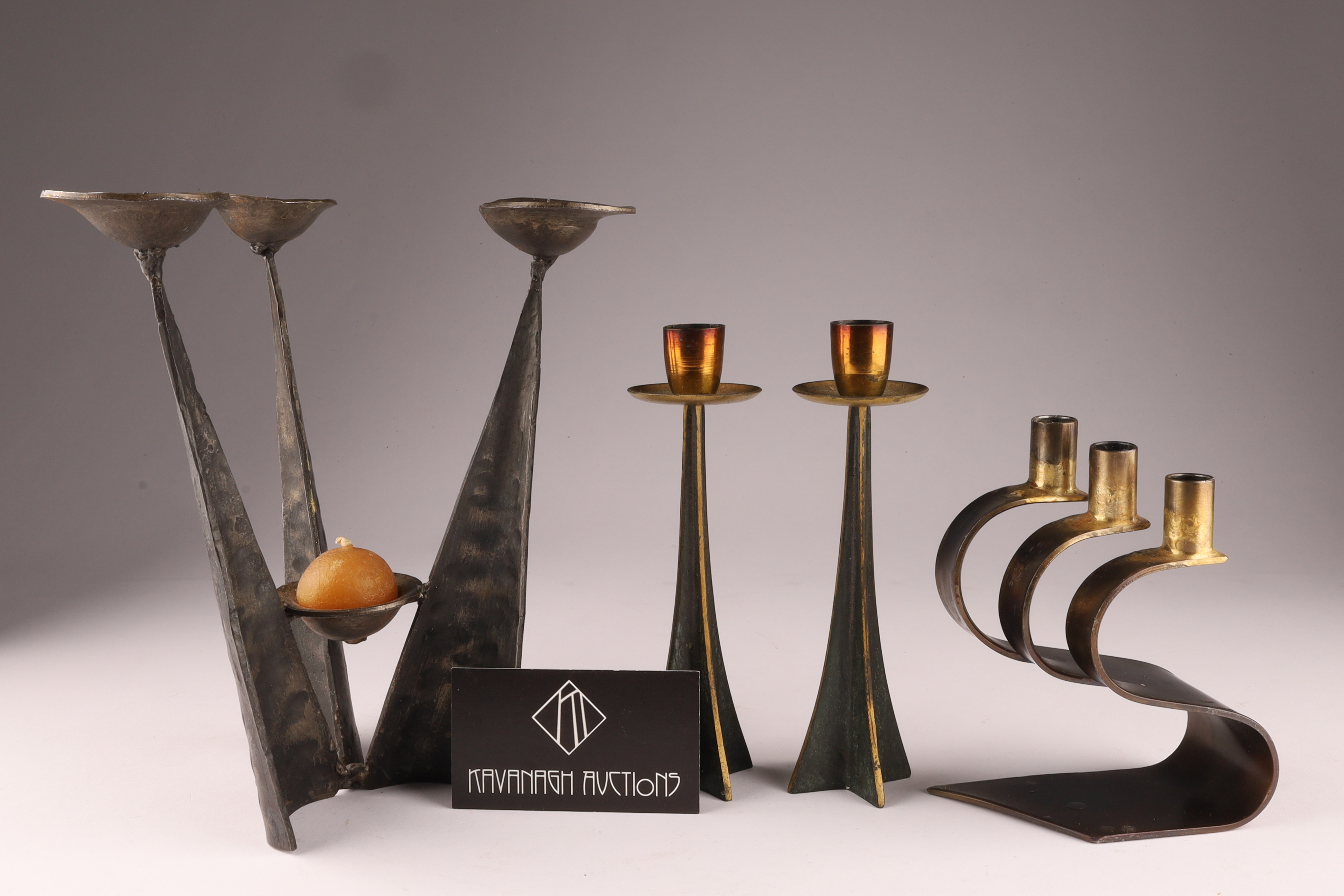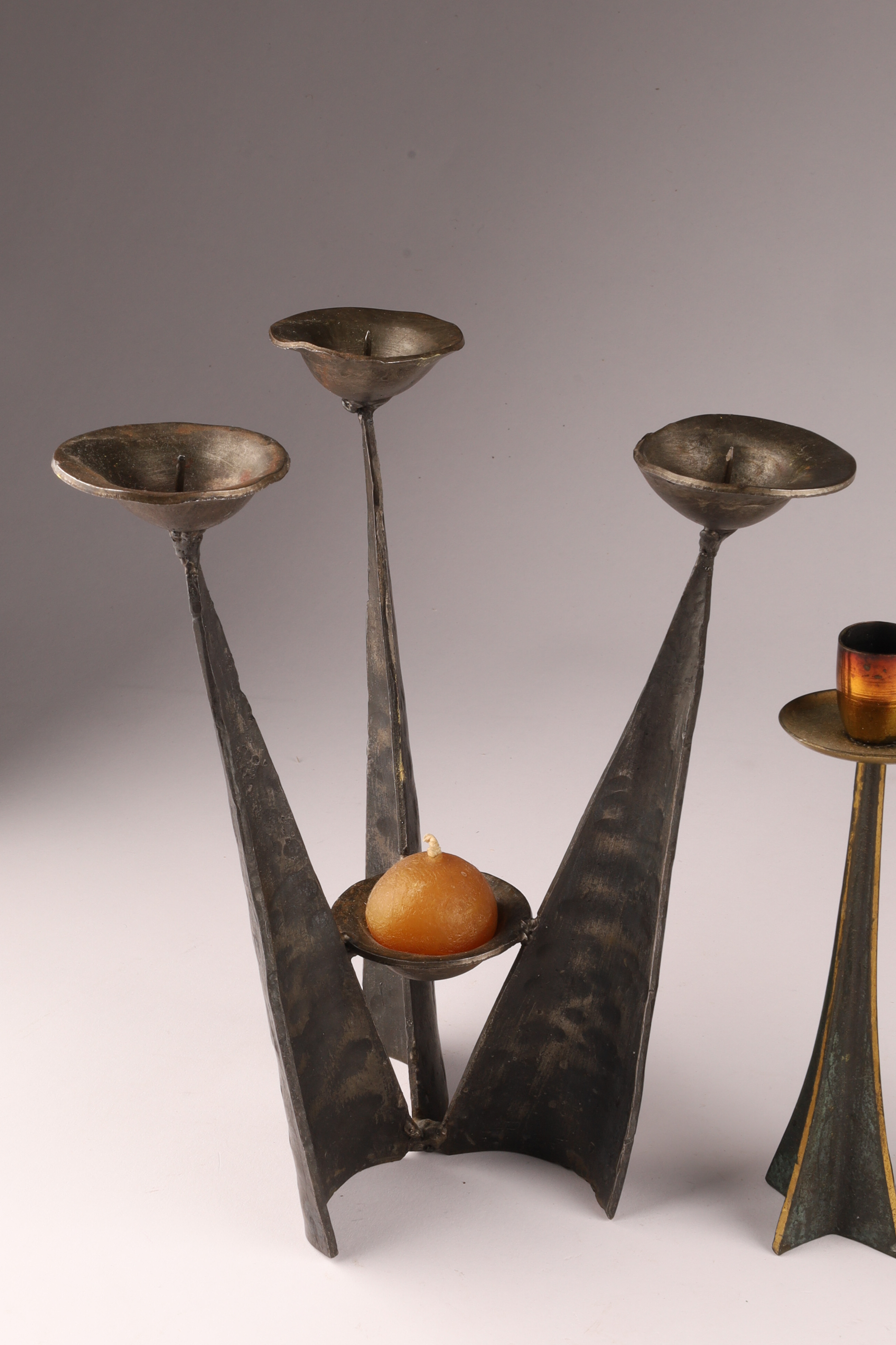 Lot of Brutalist Brass and Iron Candelabras Candlesticks