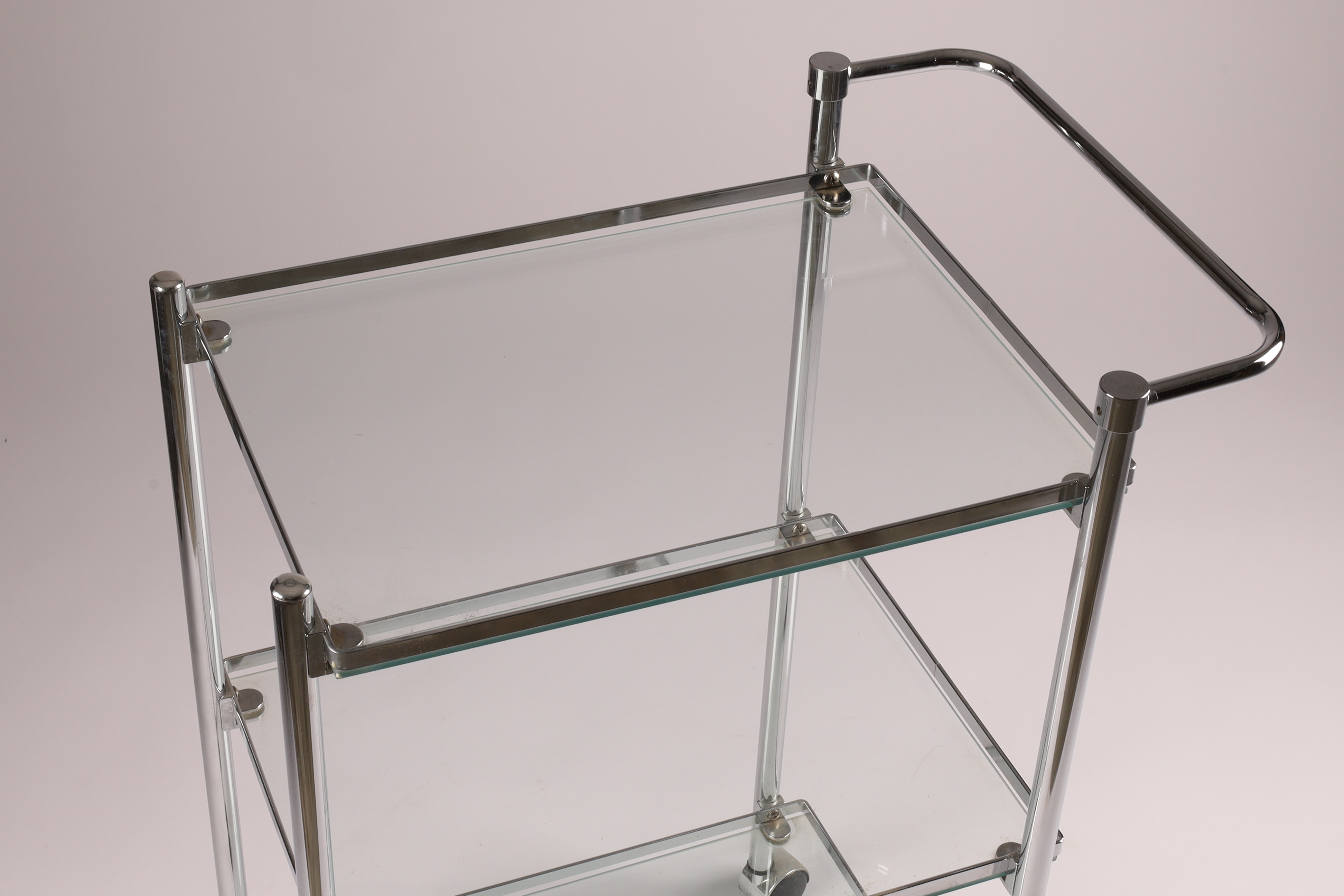Mid Century Chrome and Glass Tiered Rolling Bar Cart