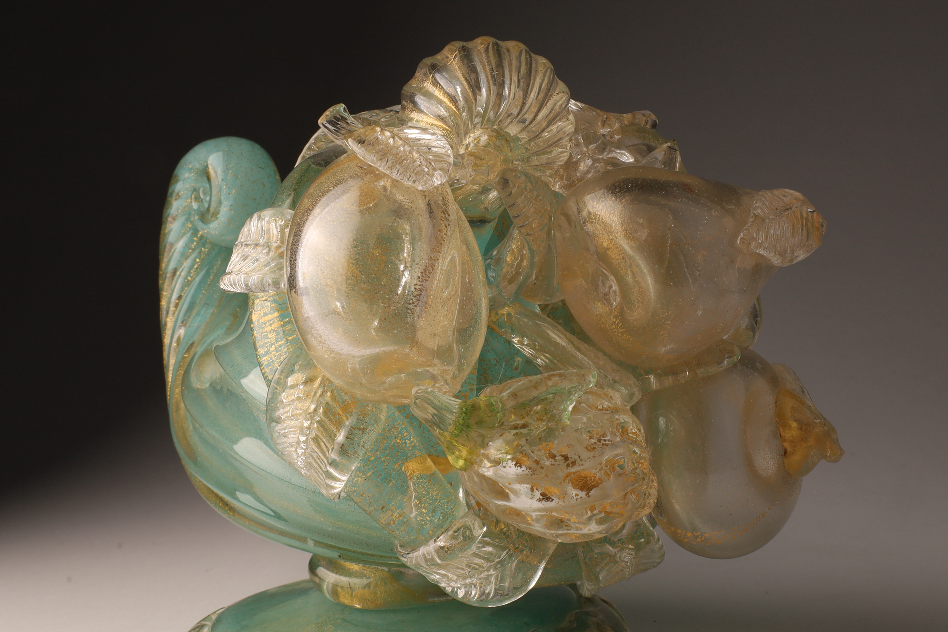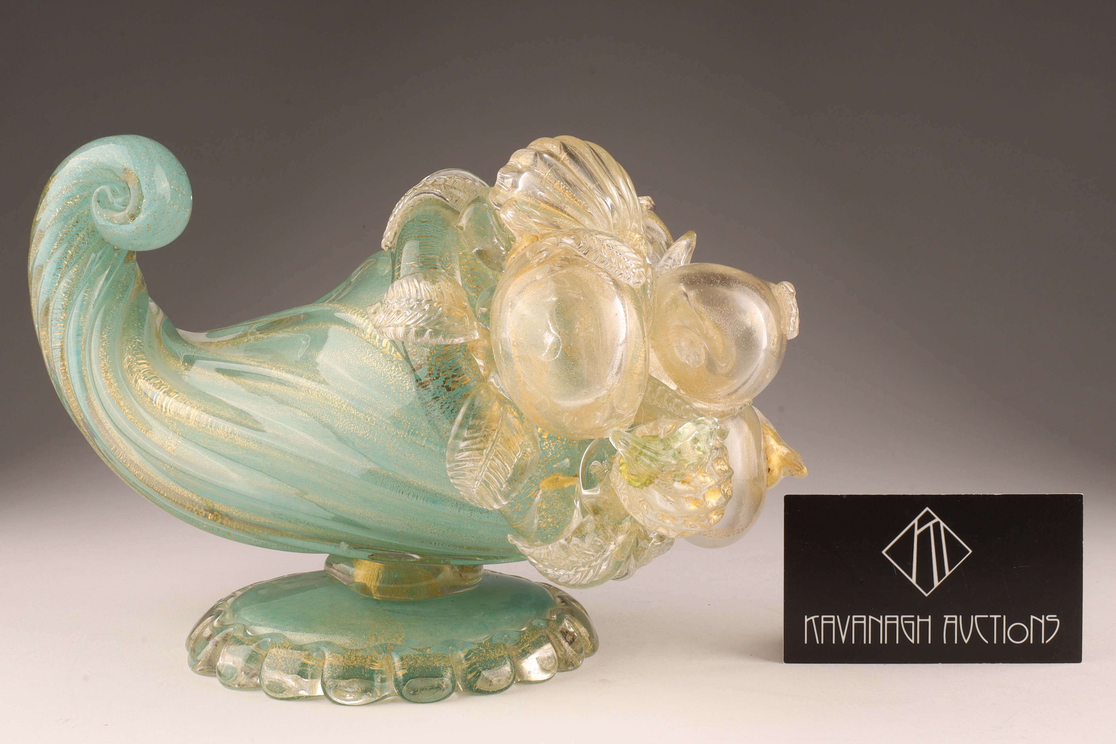 Vintage Art Glass Attr. Ercole Barovier Murano Cornucopia Gold Flecks