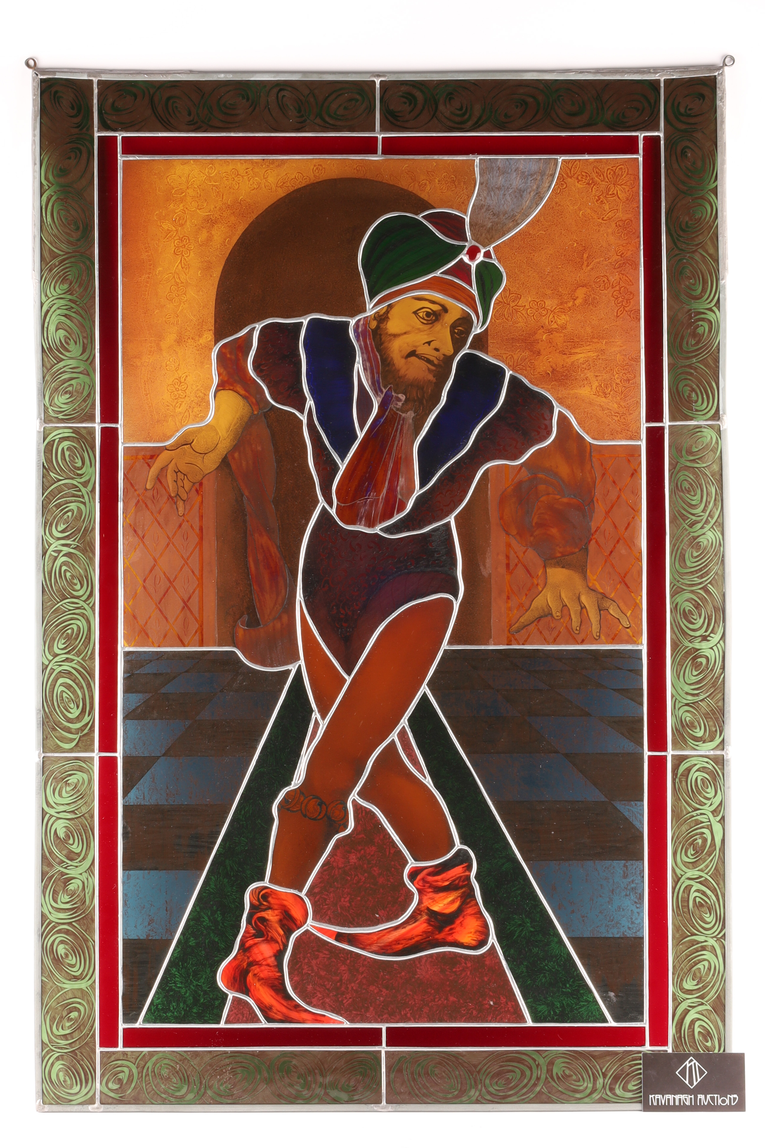 Stained Glass Panel “The Court Jester, ” French Renaissance Revival Style