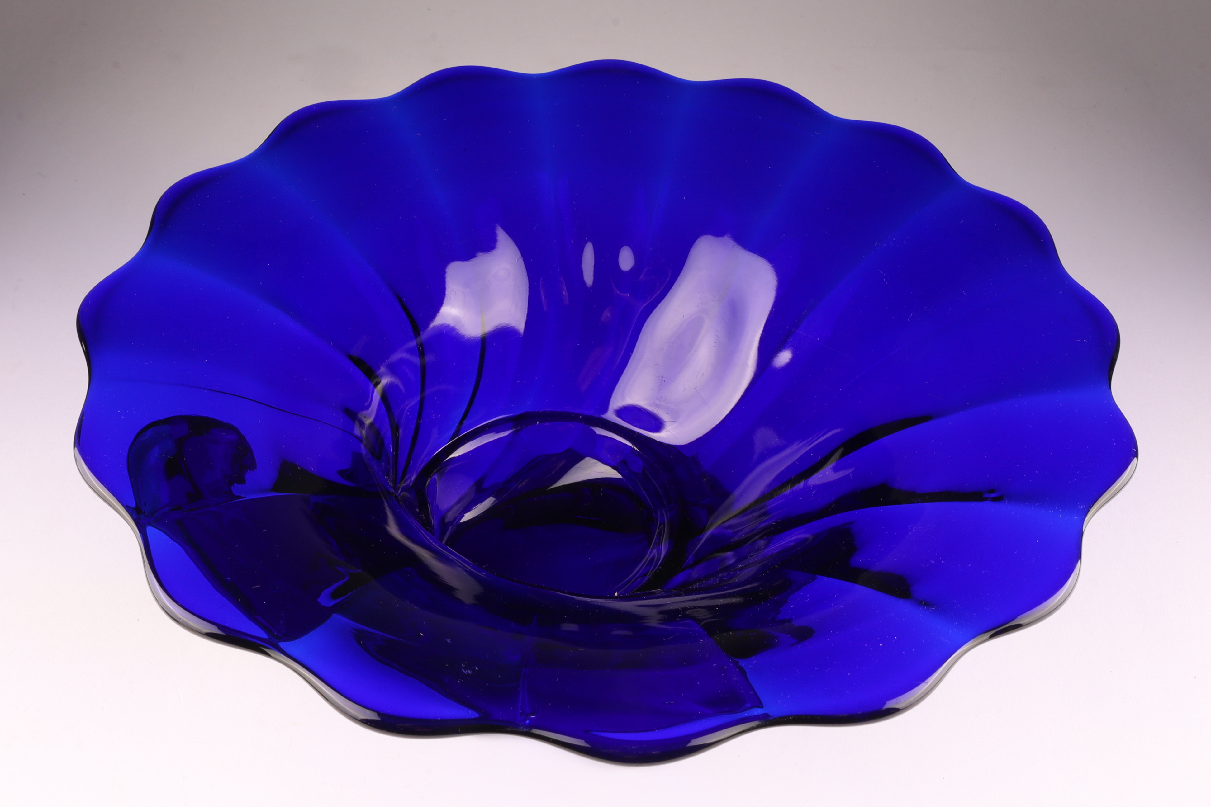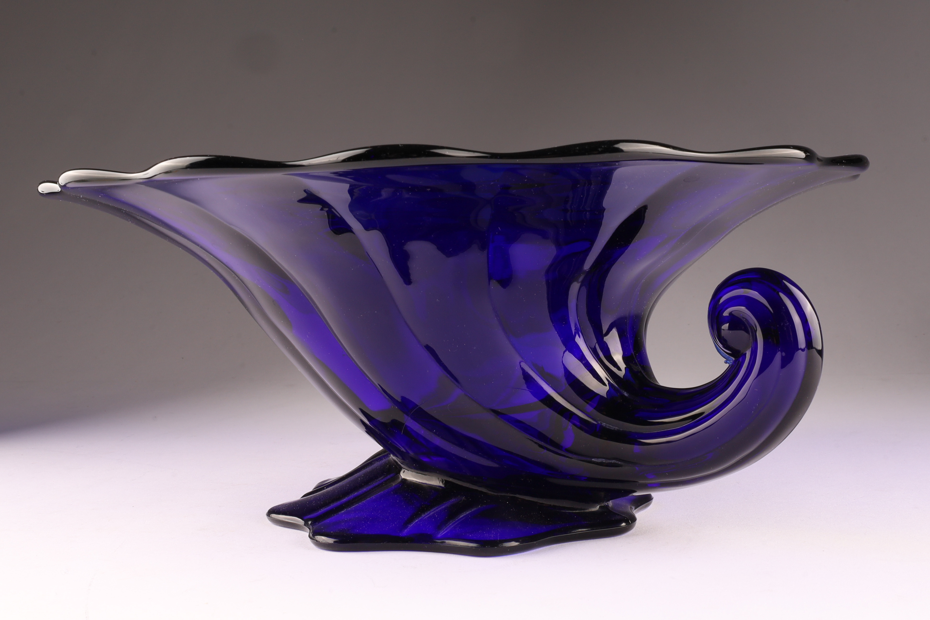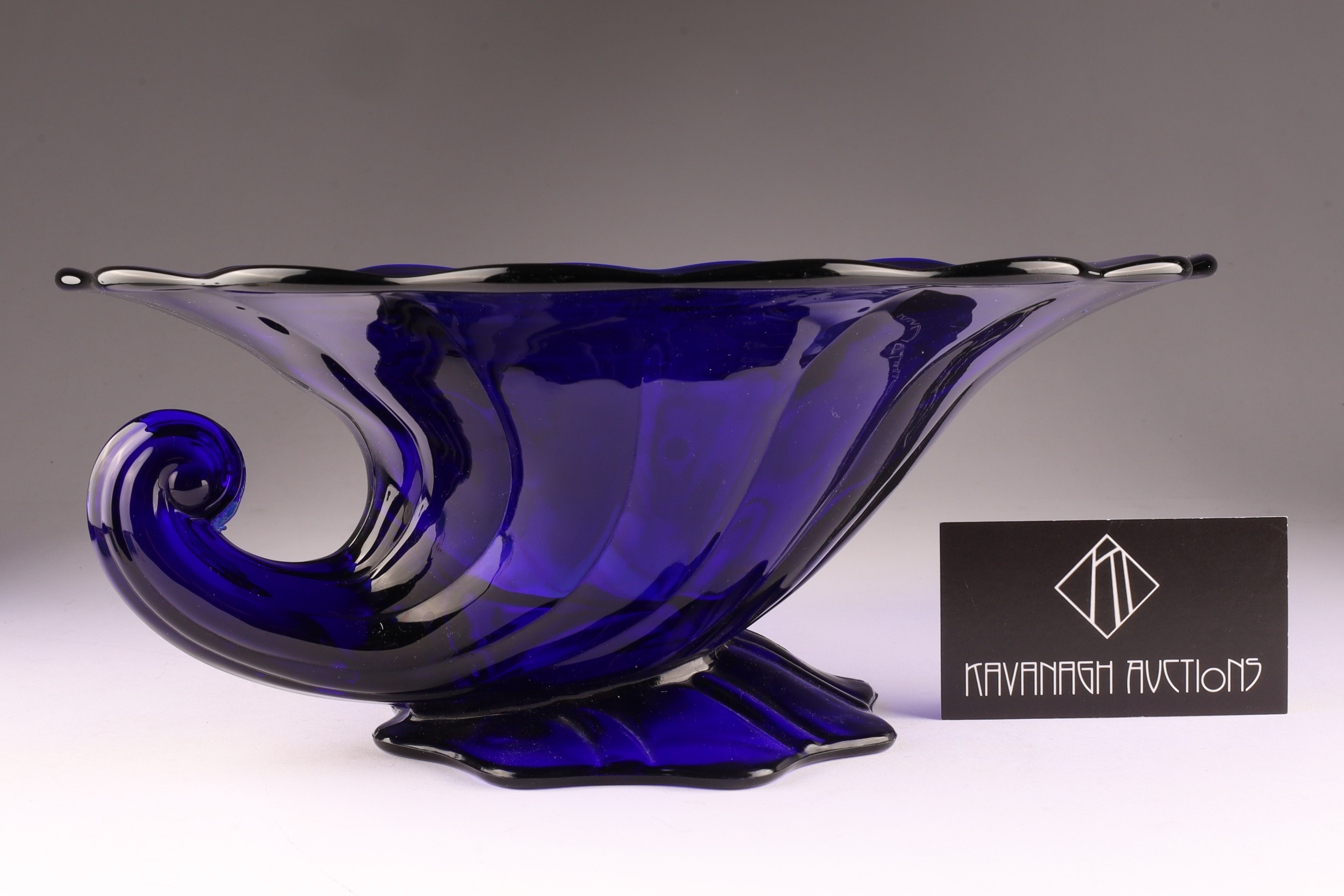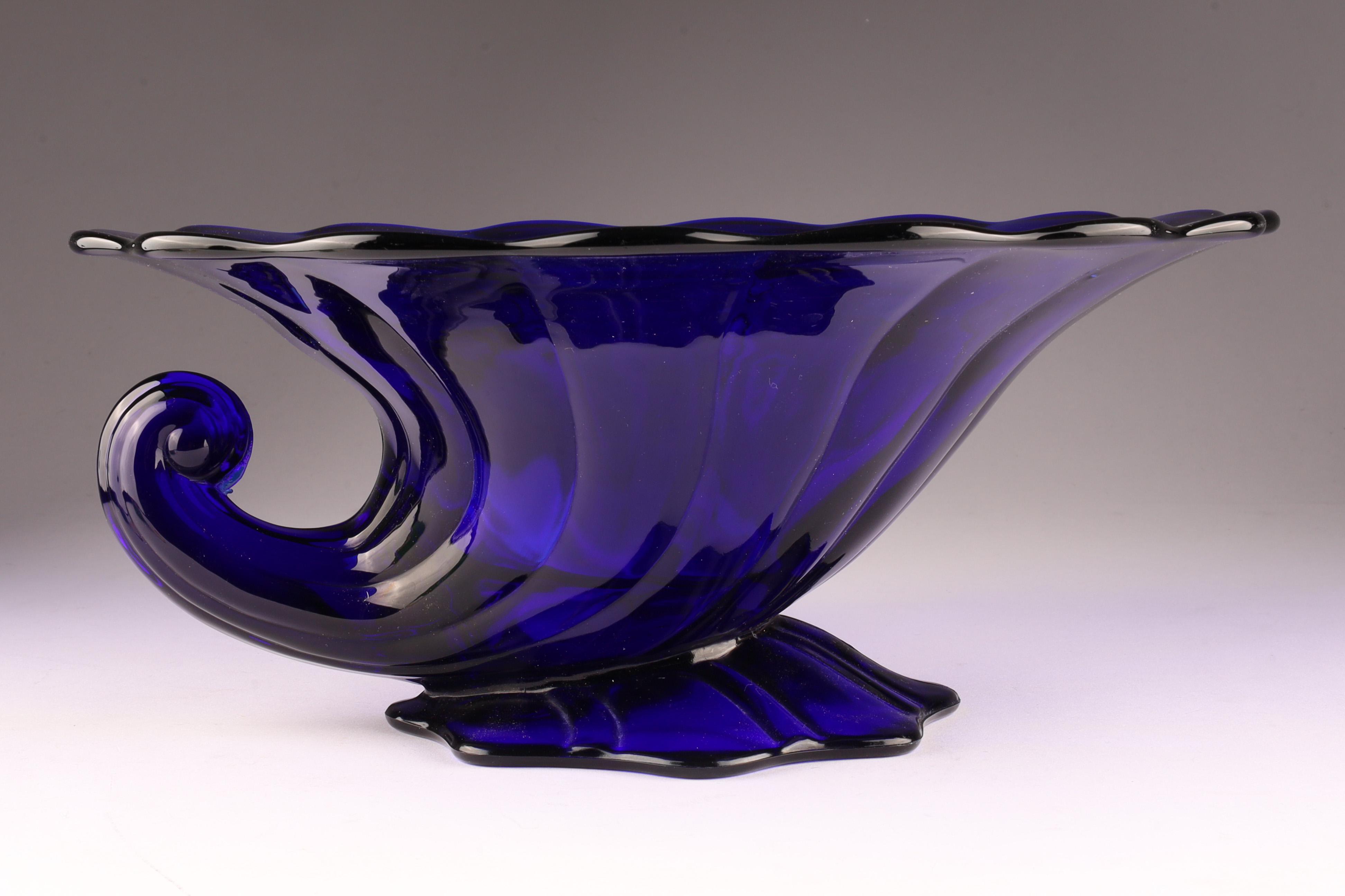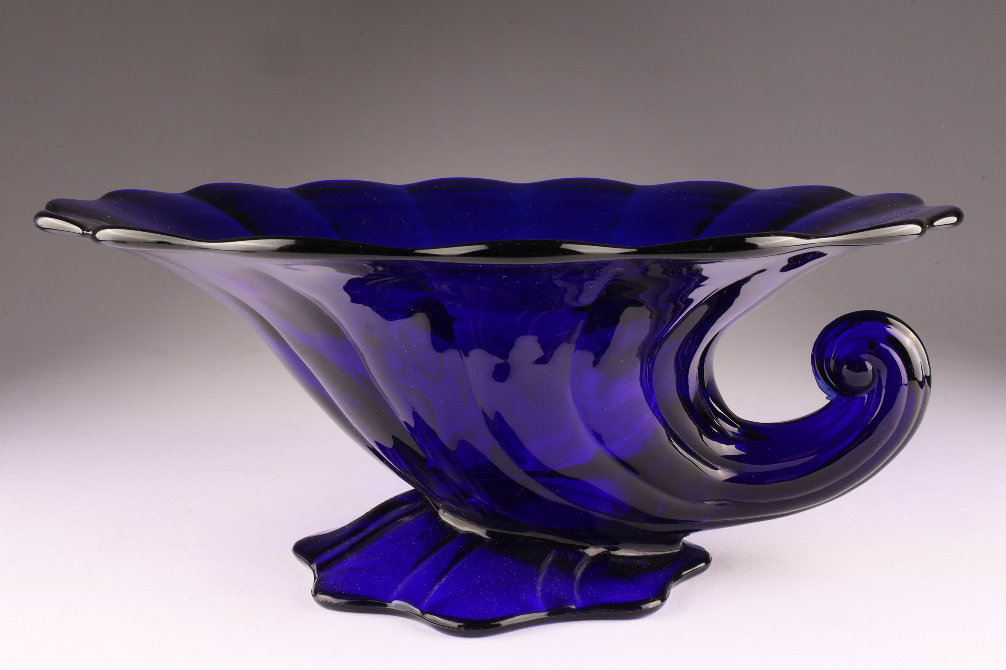 Heisey Cobalt / Stiegel Warwick Blue Glass Cornucopia Horn of Plenty Vase. 11 inches W x 4.5 H.