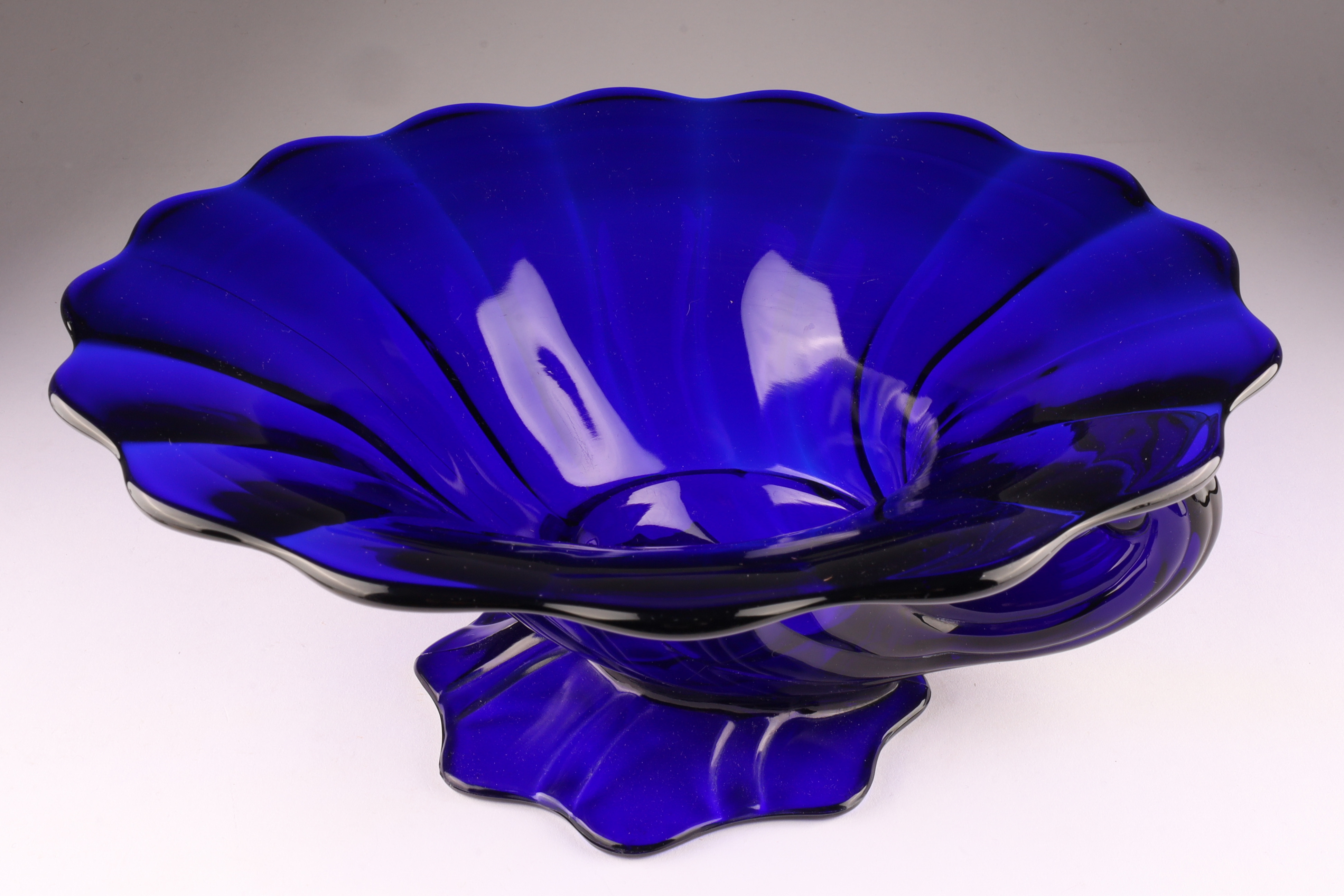 Heisey Cobalt / Stiegel Warwick Blue Glass Cornucopia Horn of Plenty Vase