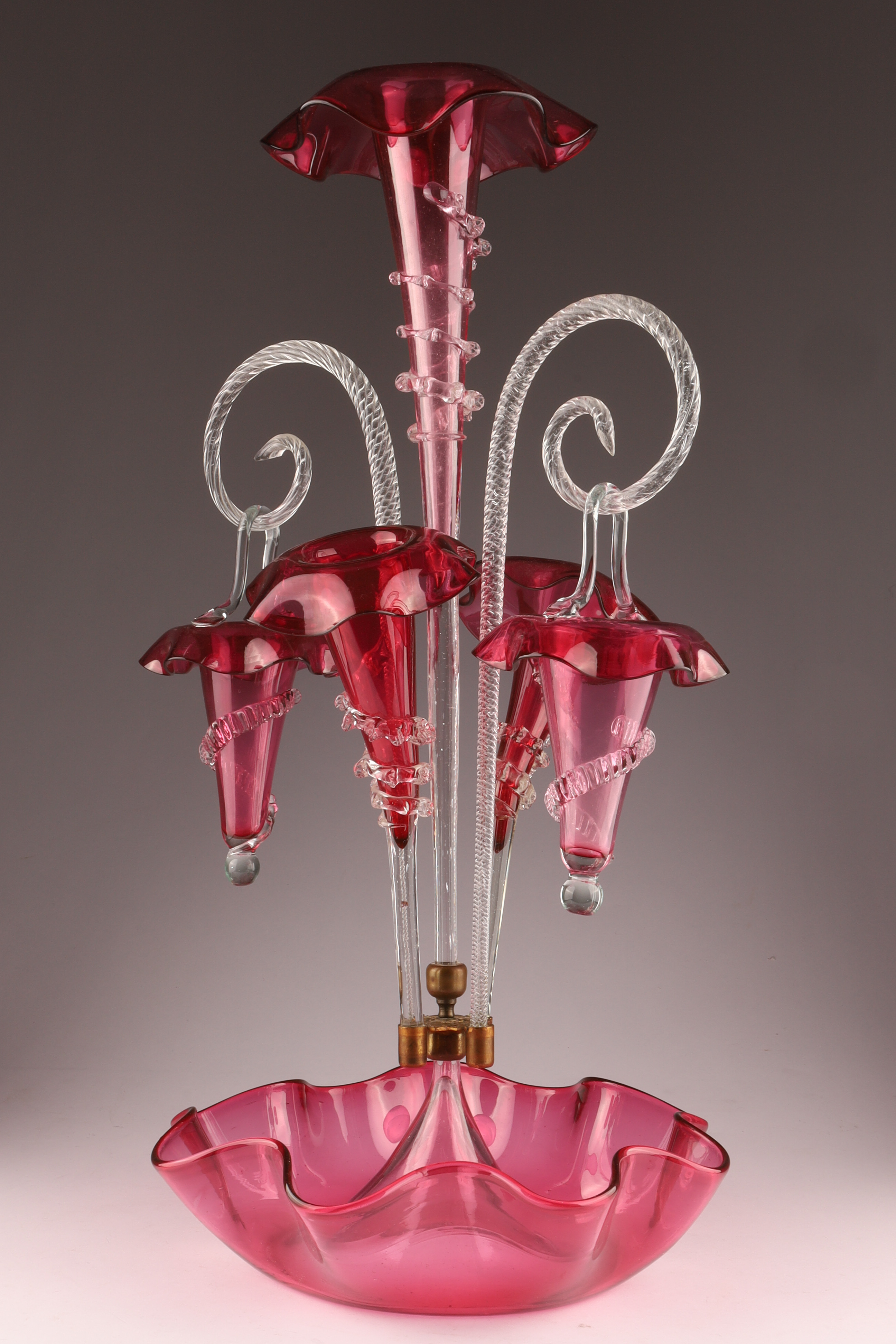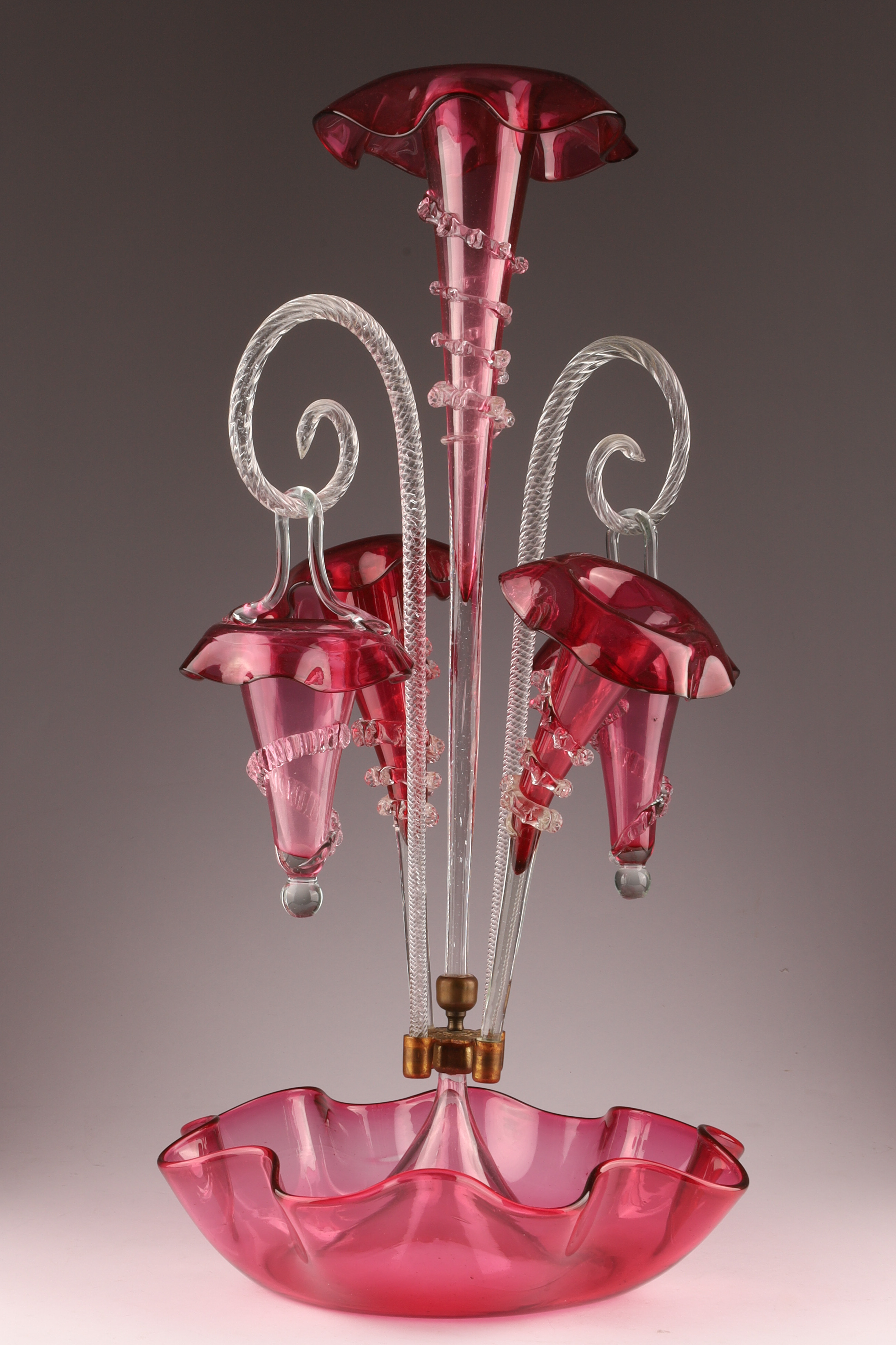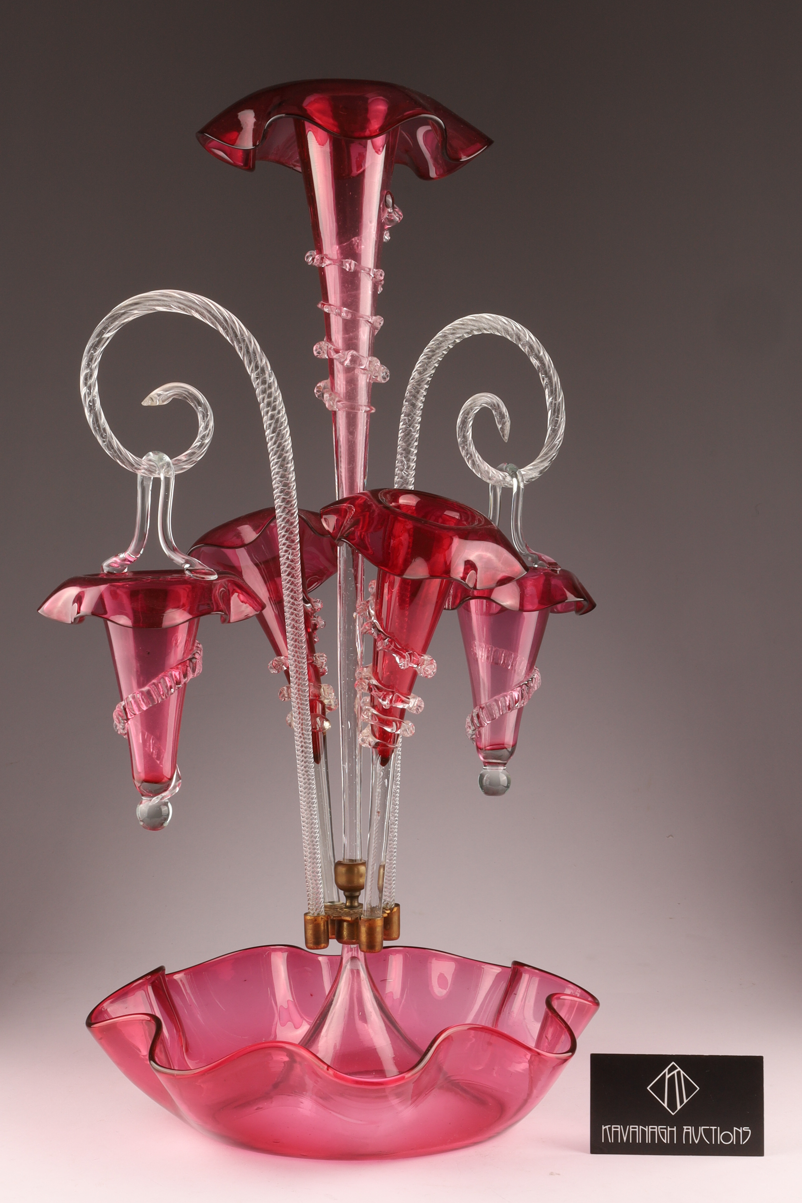 Antique Victorian Cranberry Glass Epergne Centrepiece