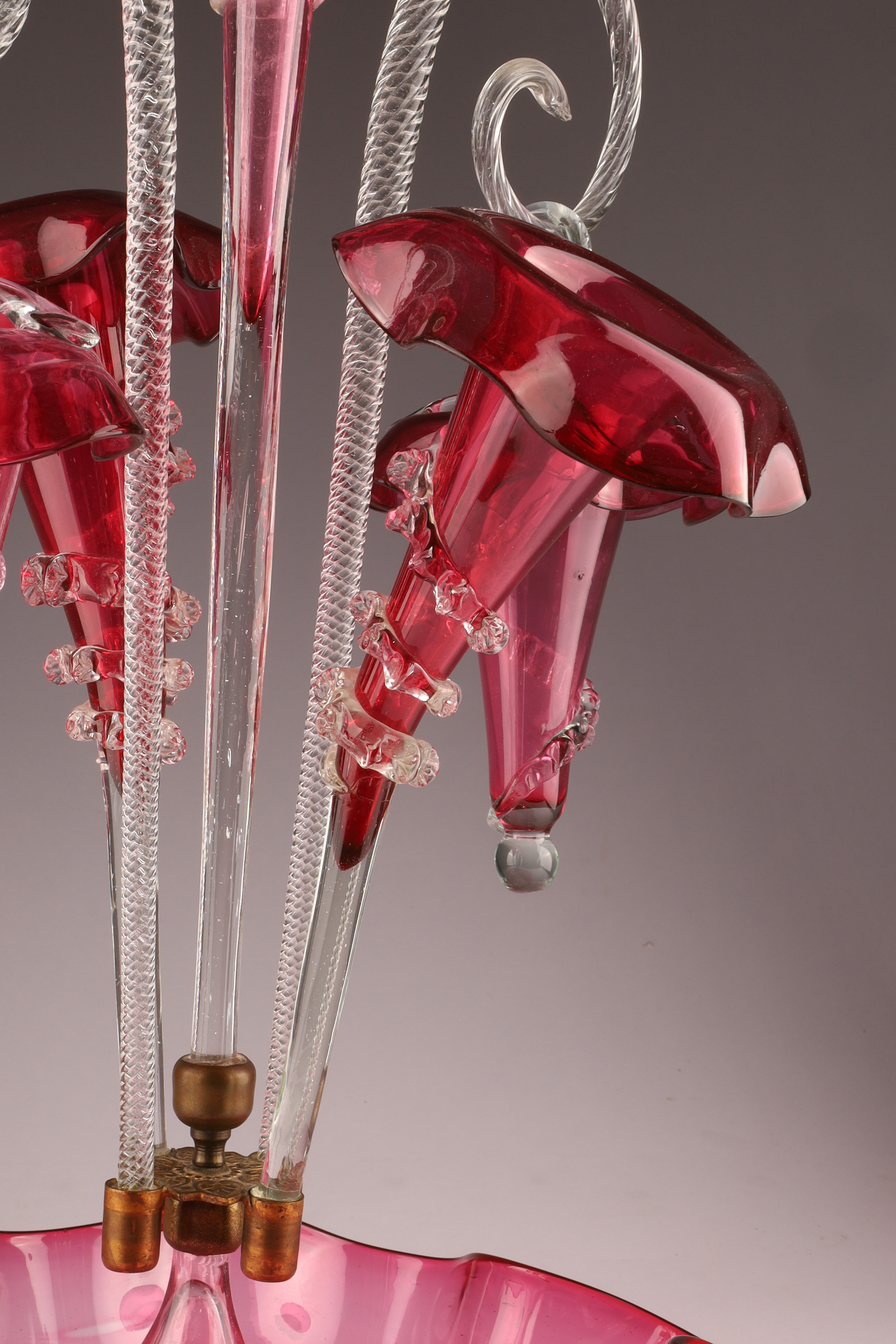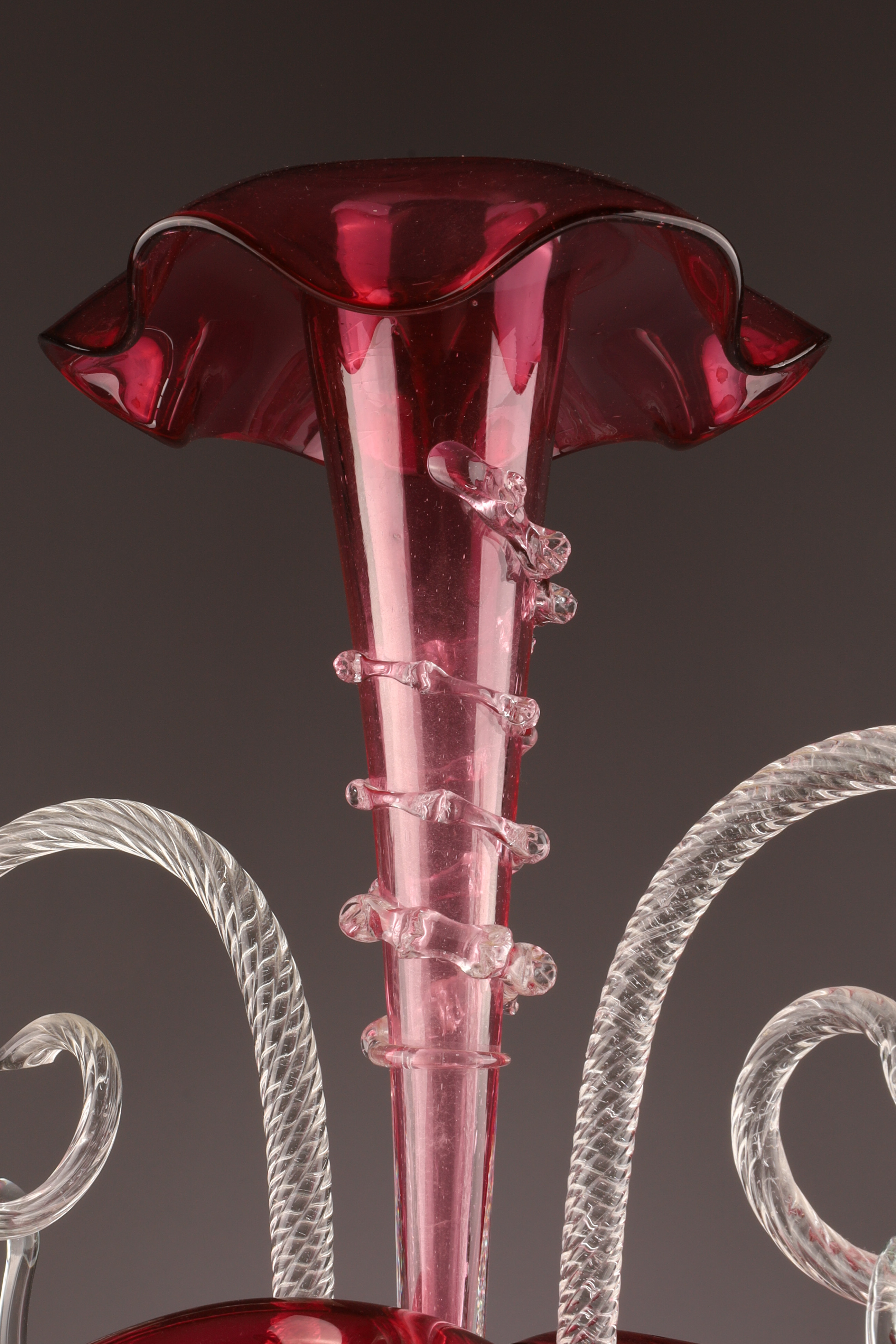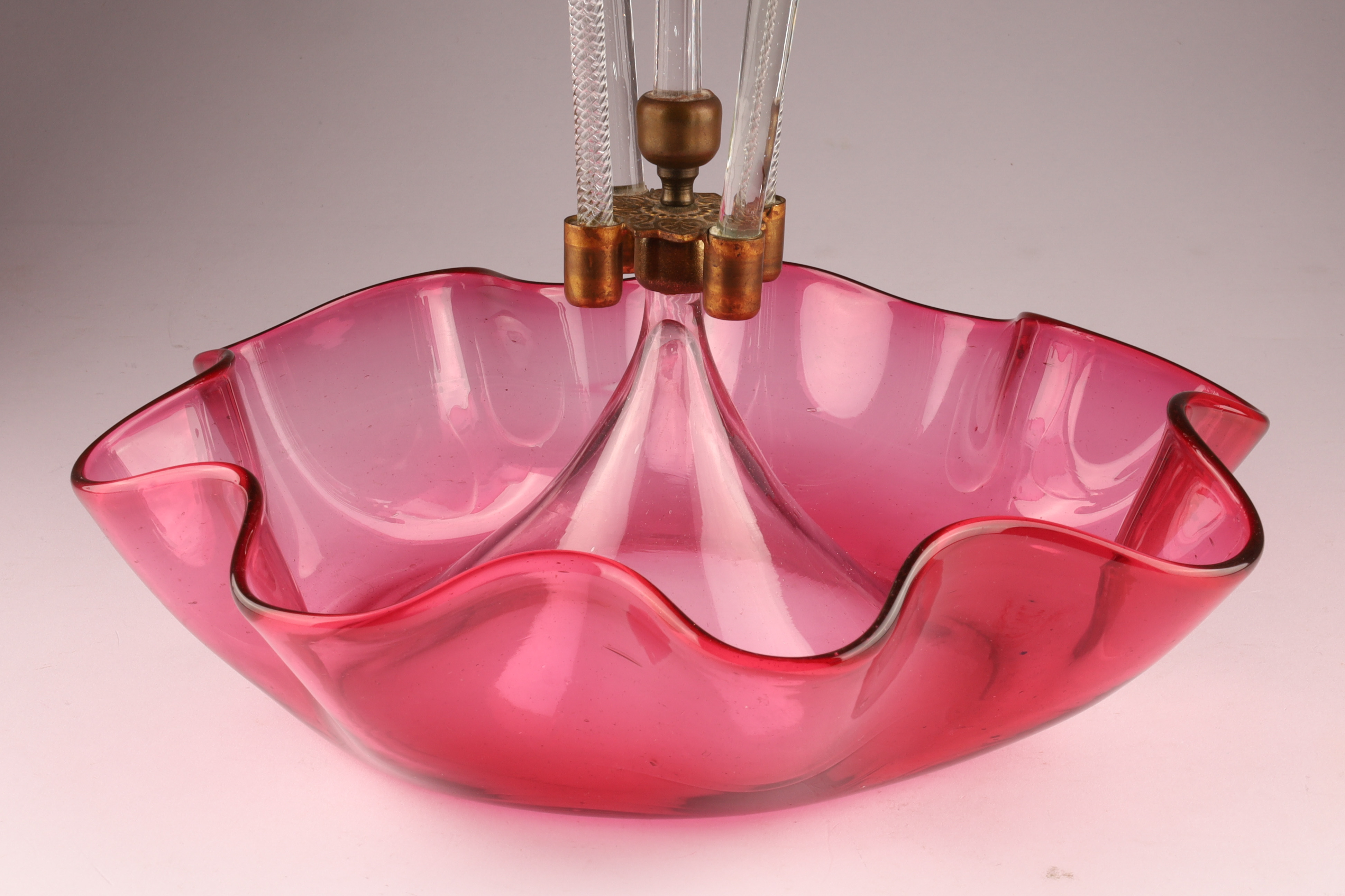 Antique Victorian Cranberry Glass Epergne Centrepiece
