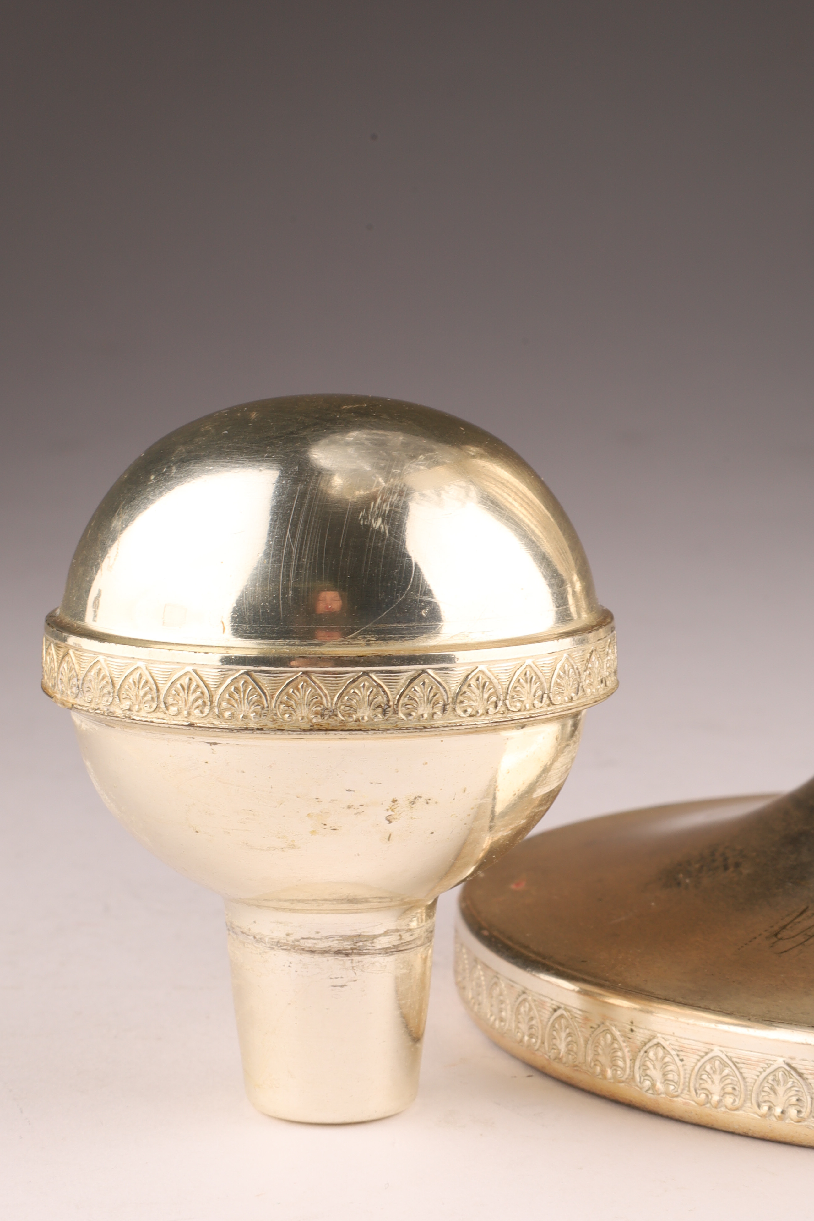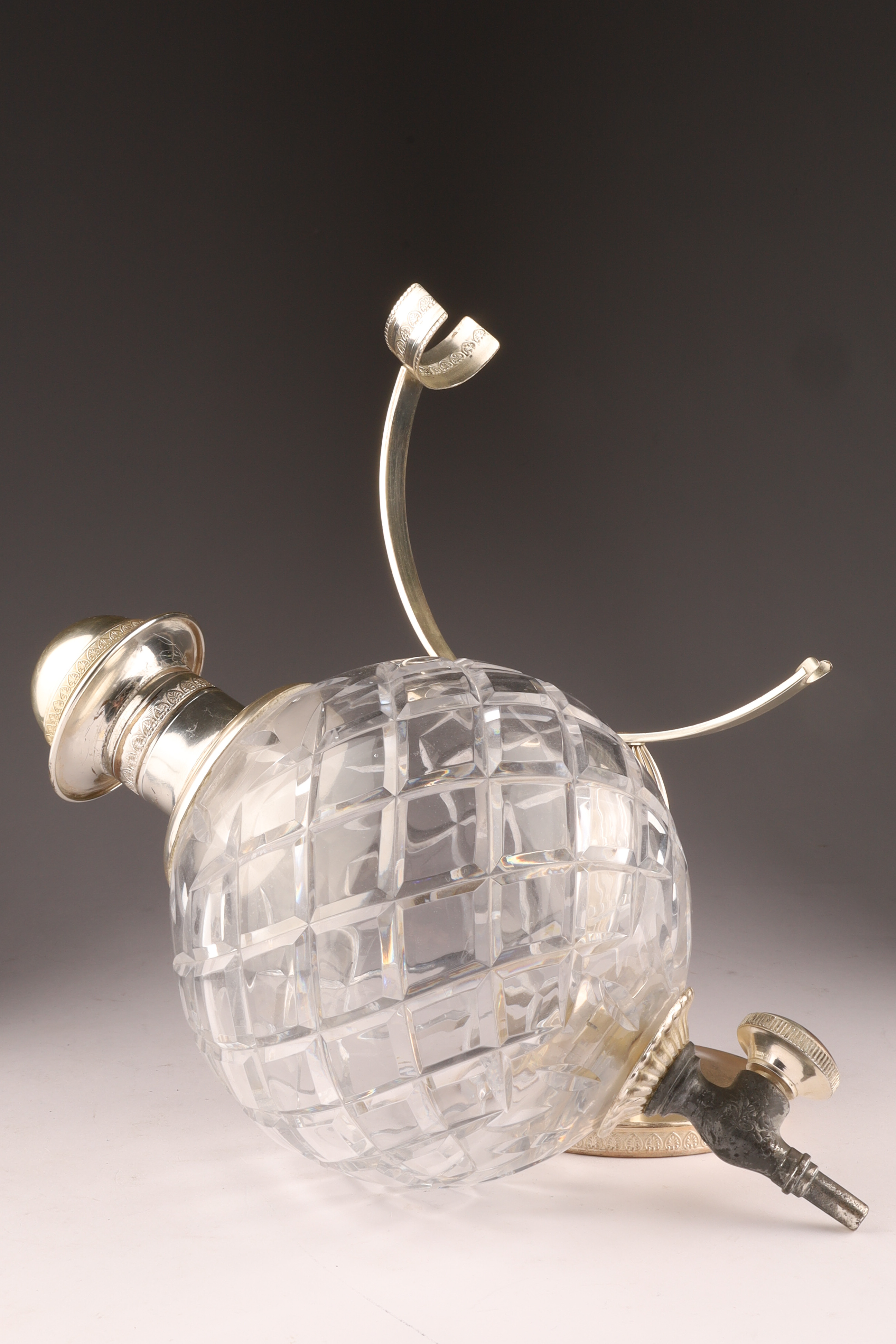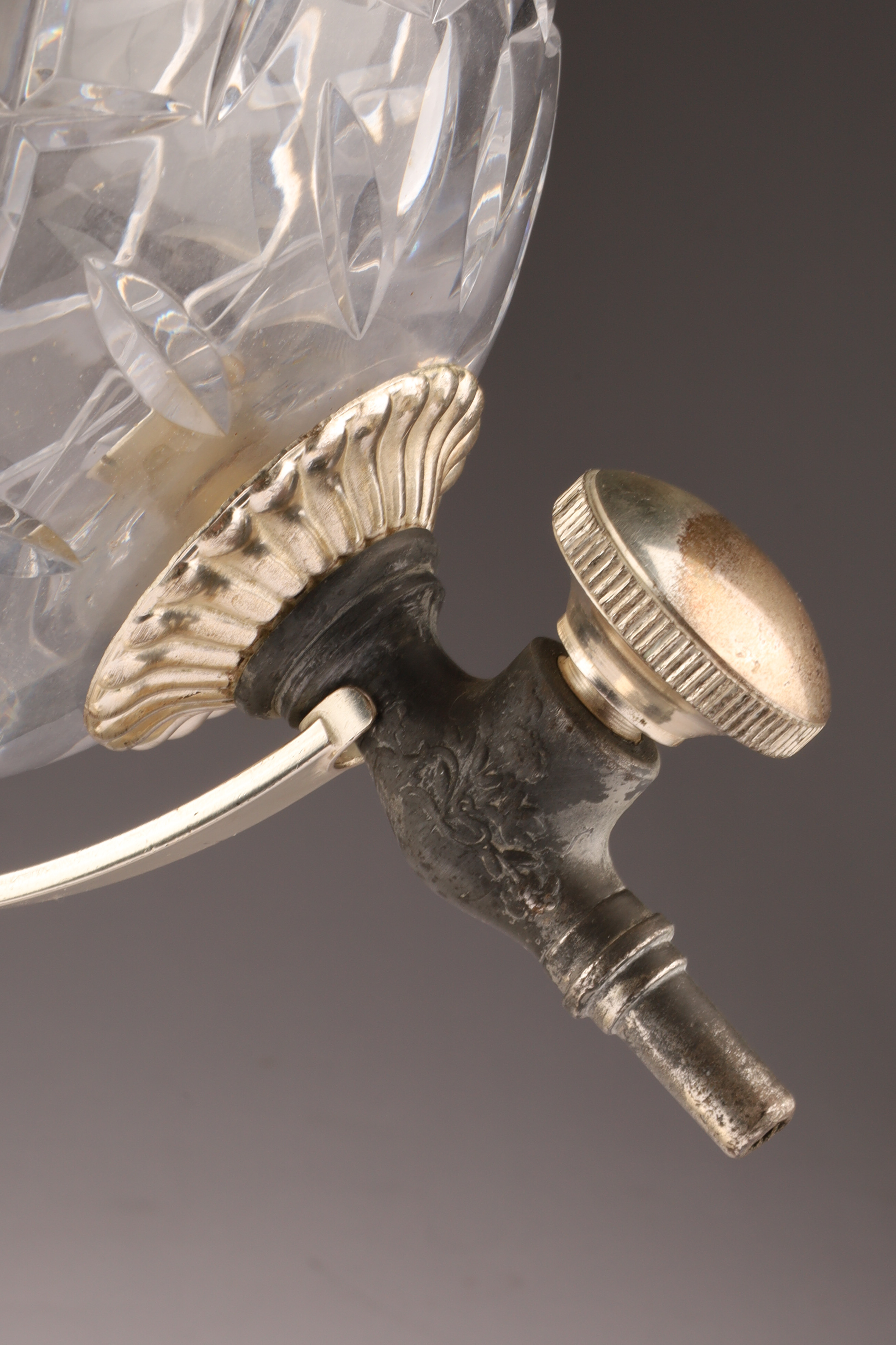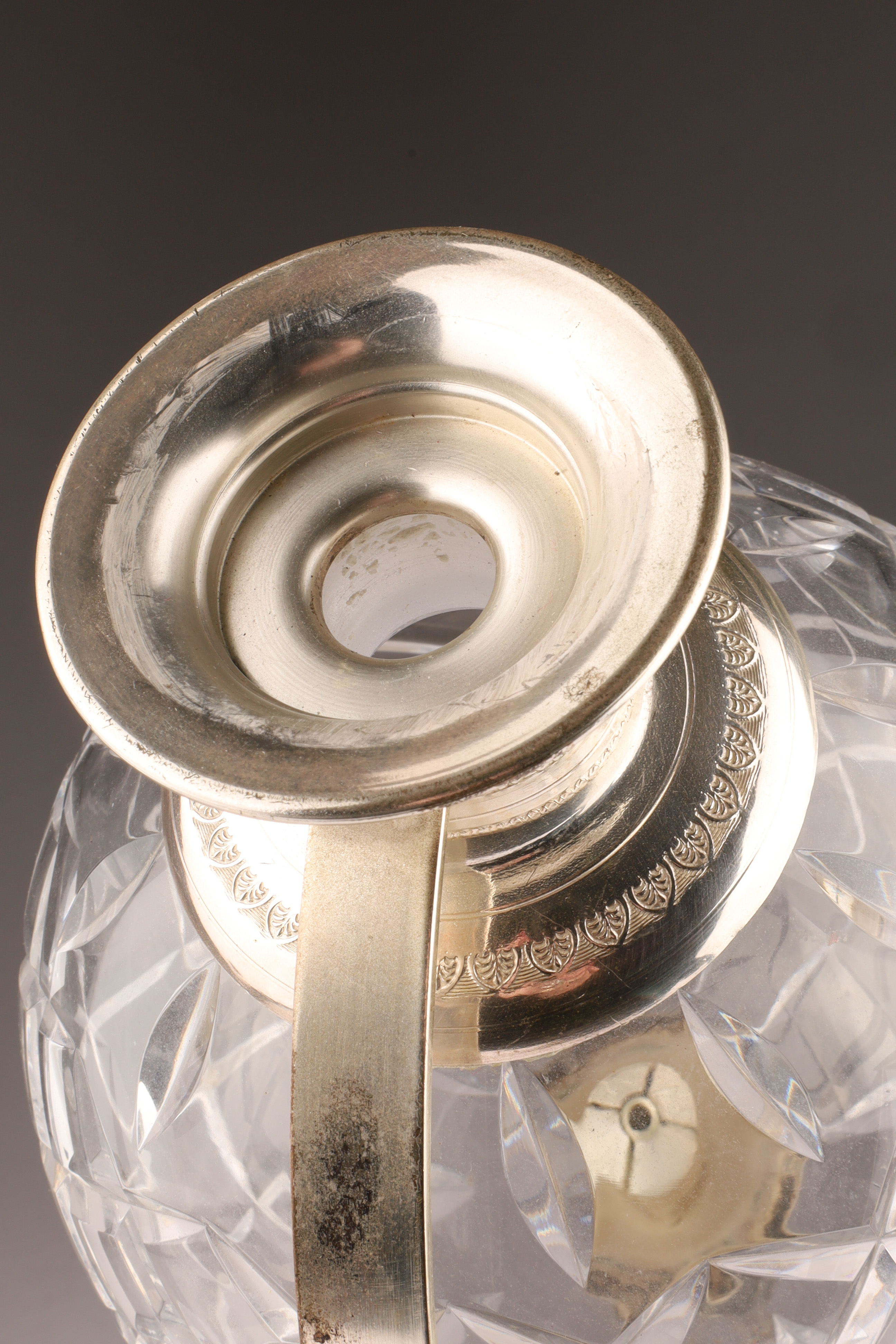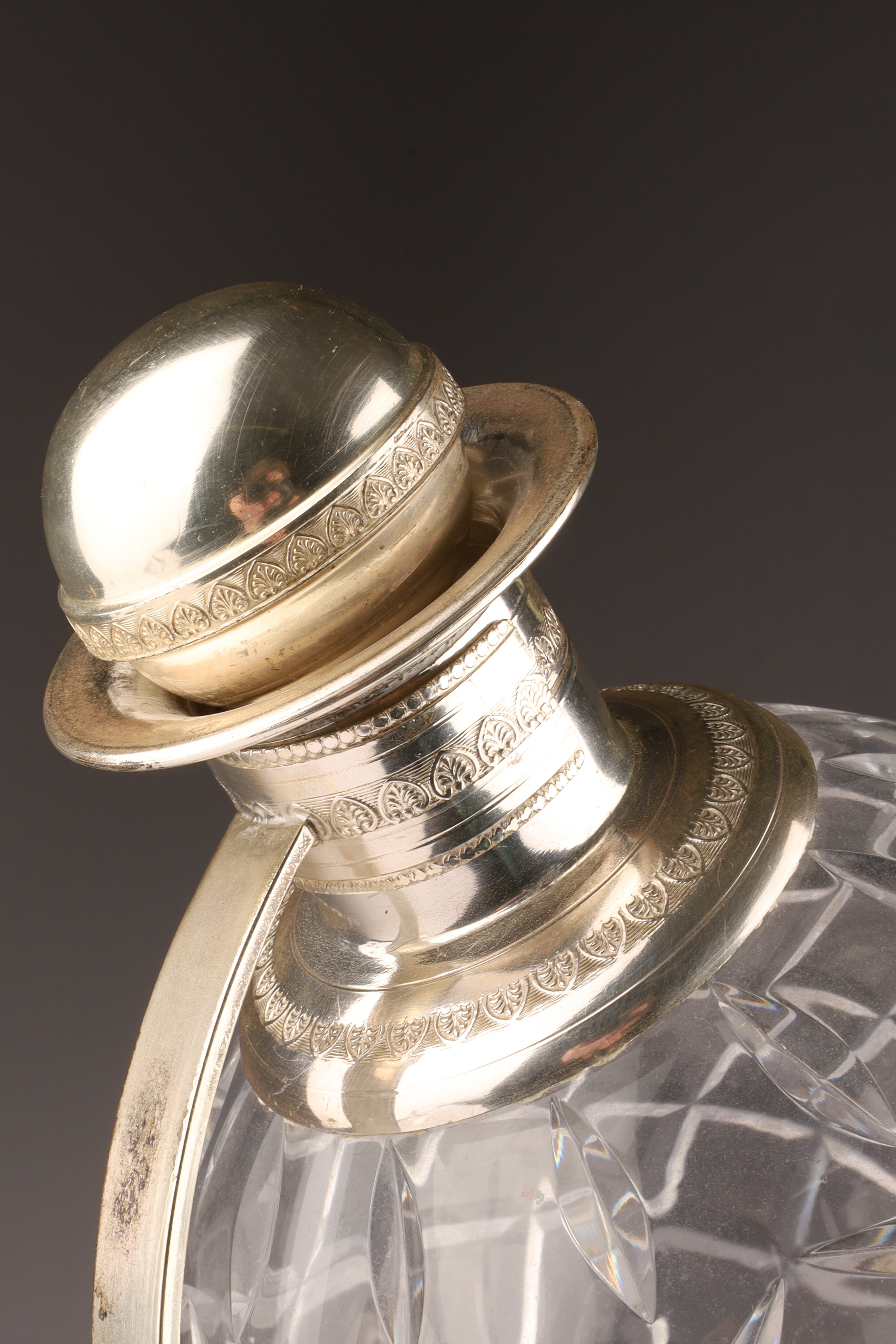 Art Deco Cut Crystal Silver Globe Decanter with Stand