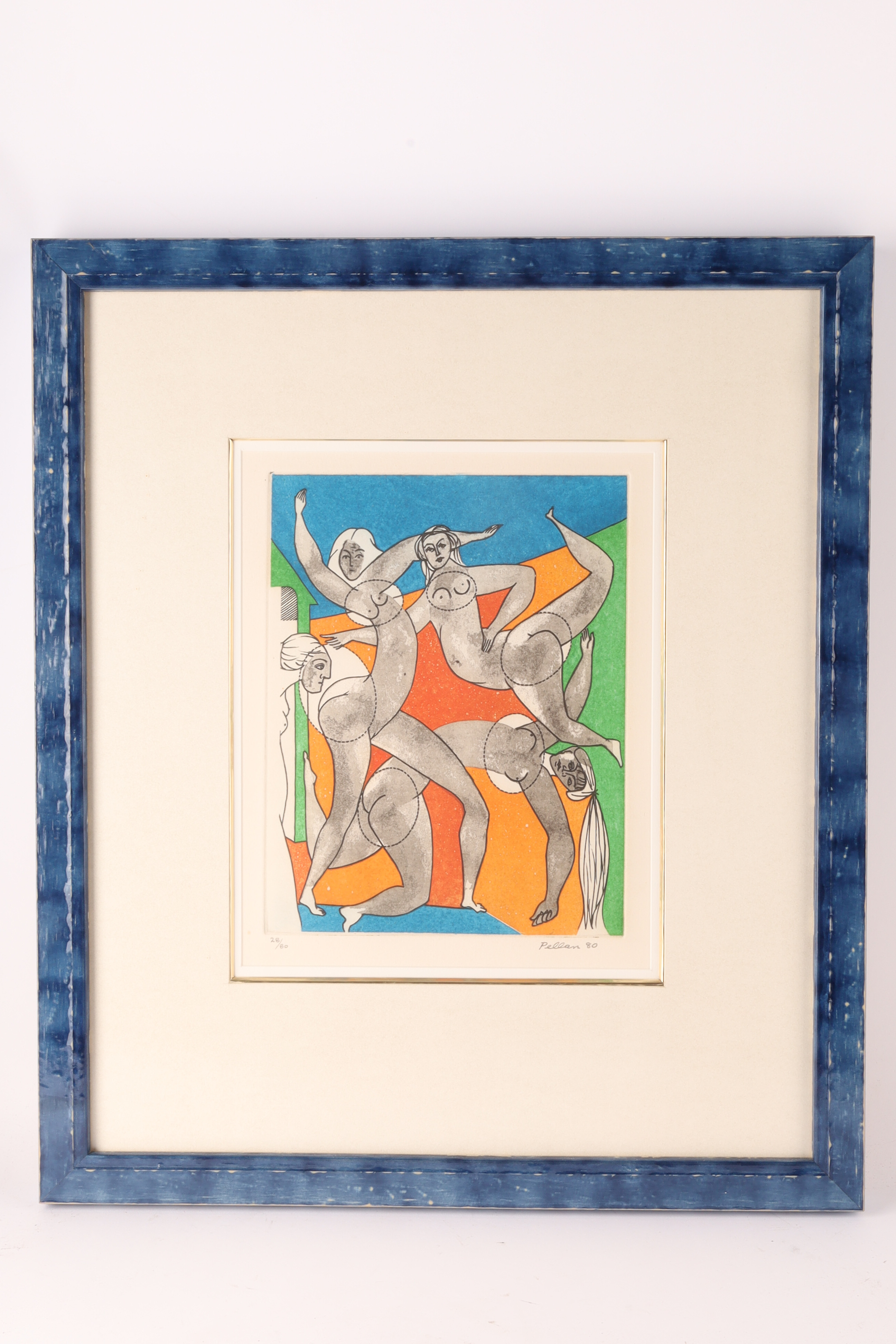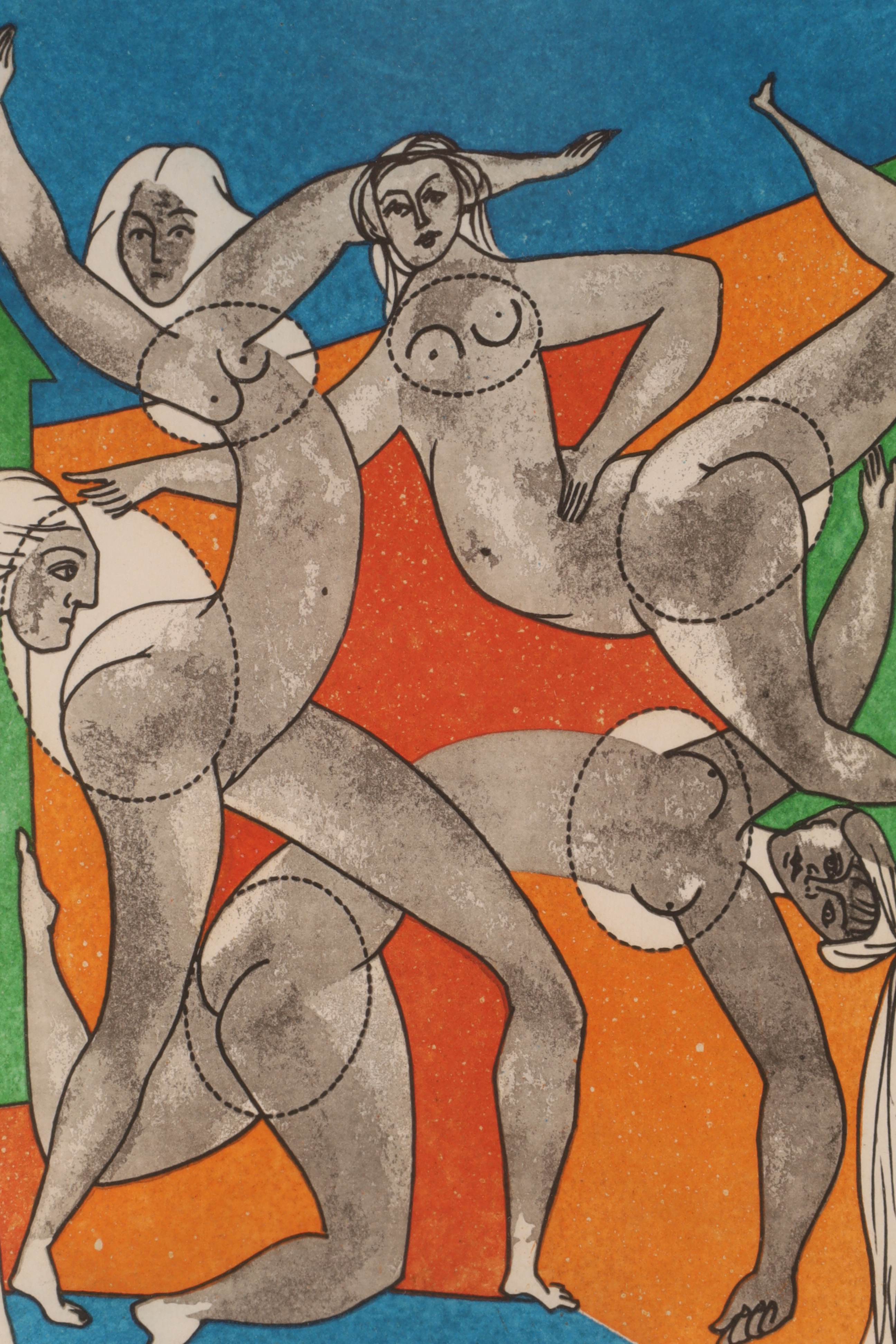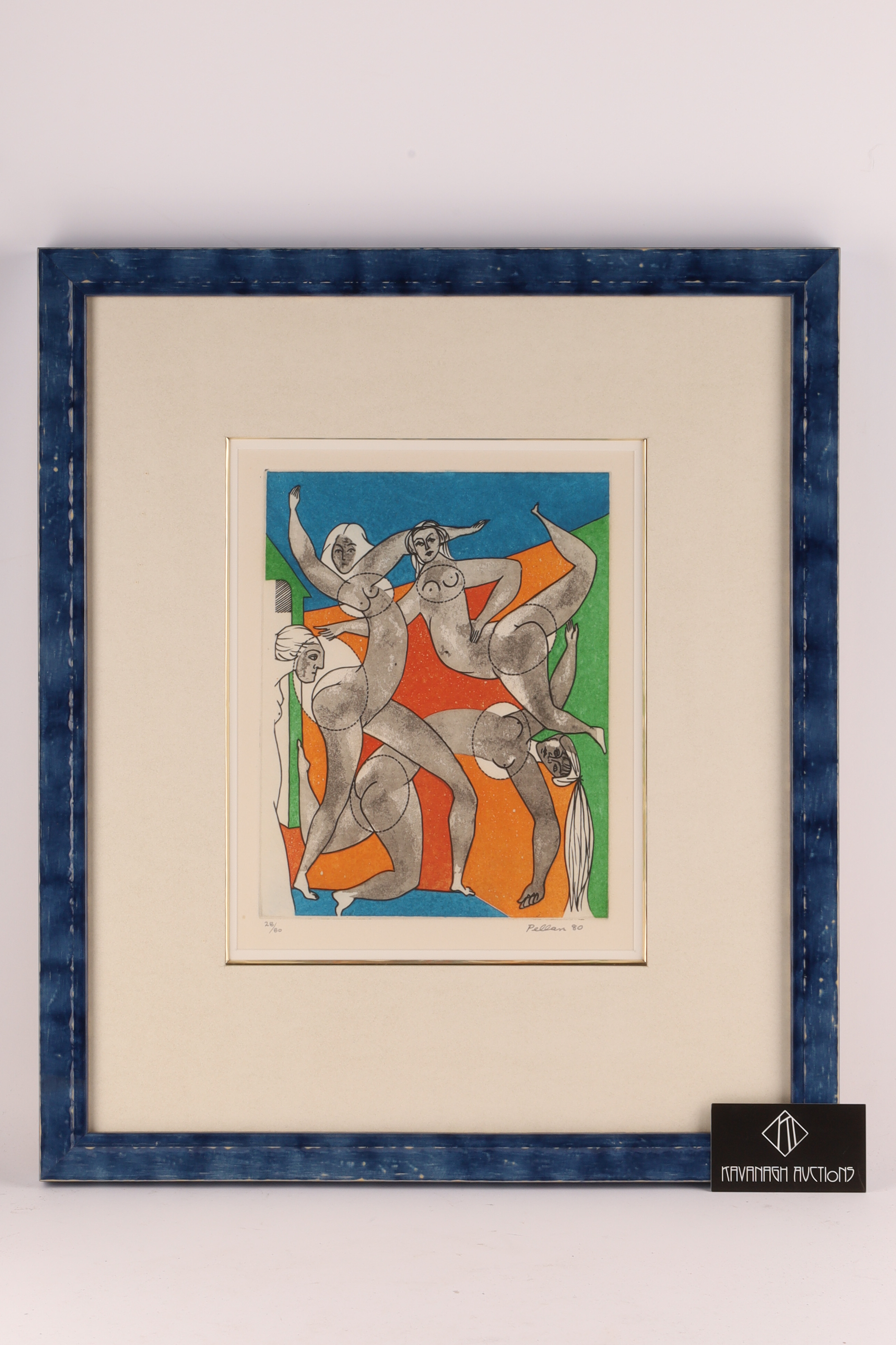 Alfred Pellan (Canadian, 1906-1988) Que le fruit de cette union – extrait du livre d’artiste “Le Cirque Sacré”, 1980 Eau-Forte en couleur sur papier signé et daté / Color etching on paper, signed and dated. Image measures 11.75 inches H x 9.5 W, frame measures 21.25 inches x 18.