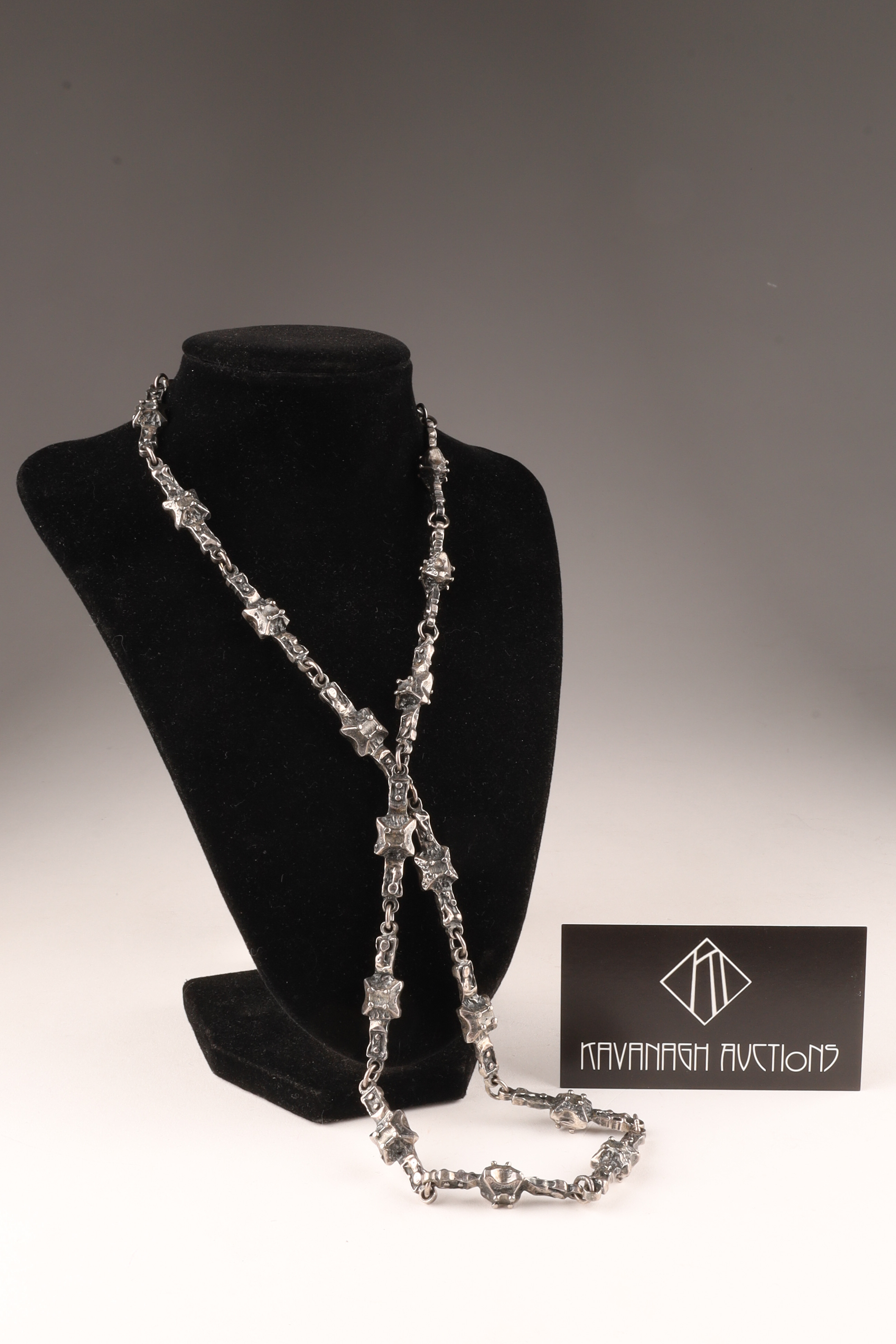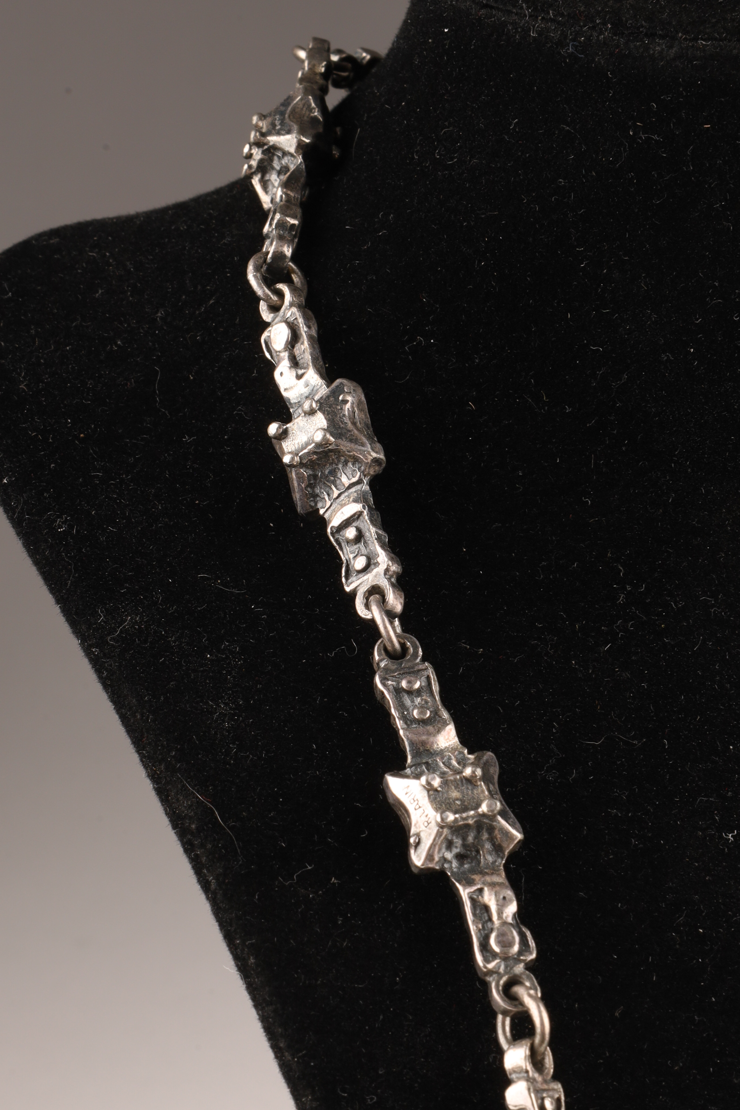 Mid Century Canadian 1960s Robert Larin Brutalist Geometric Pattern Pewter Necklace. Measuring 29 inches, links measure approximately 1.5 inches L.
