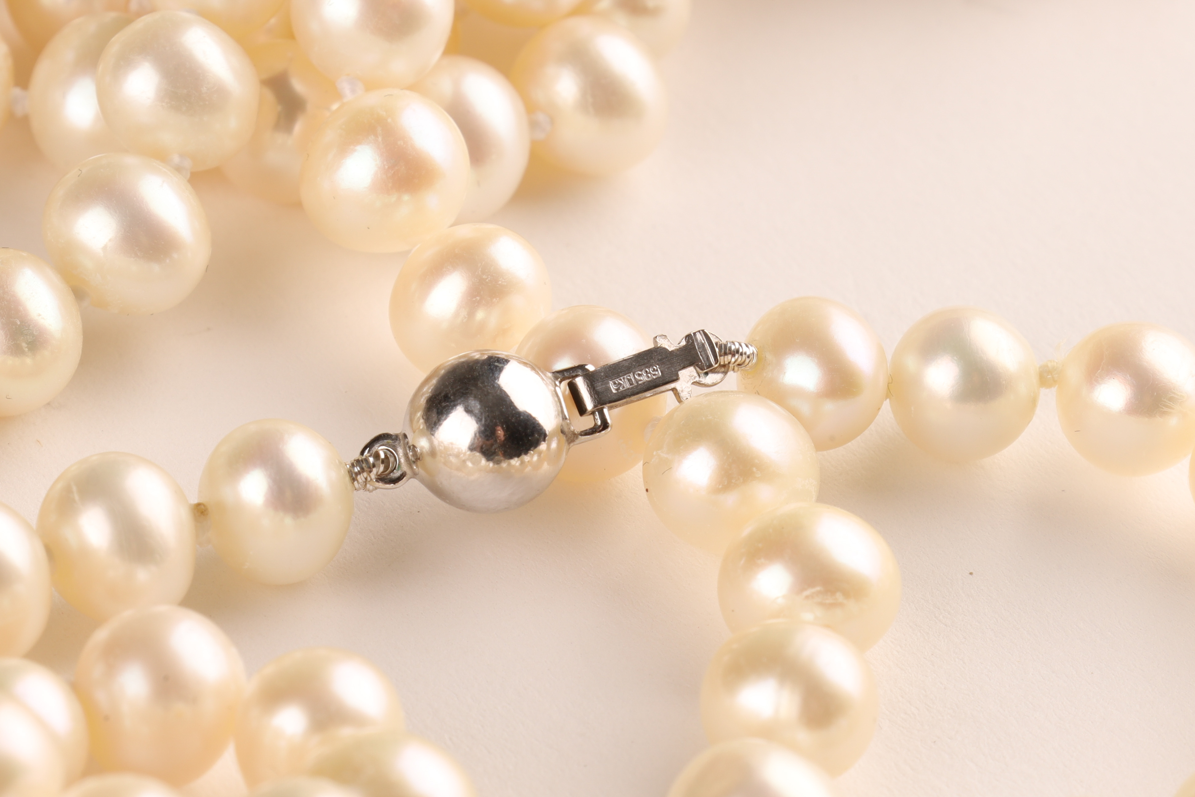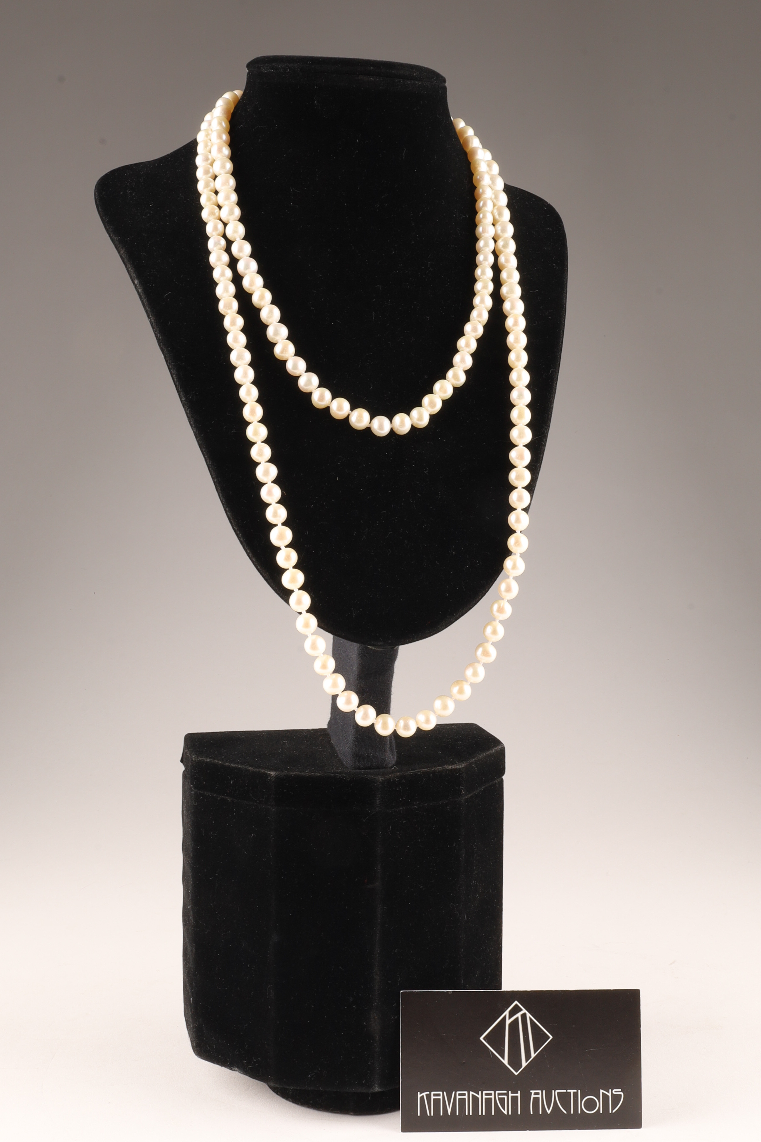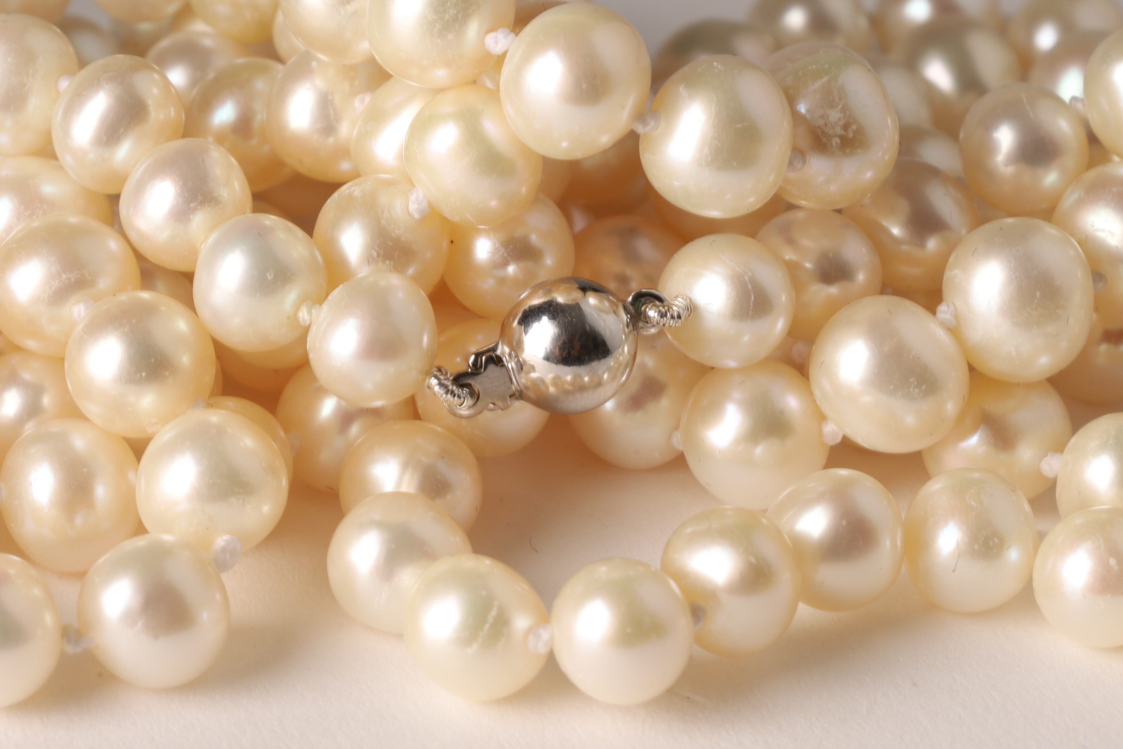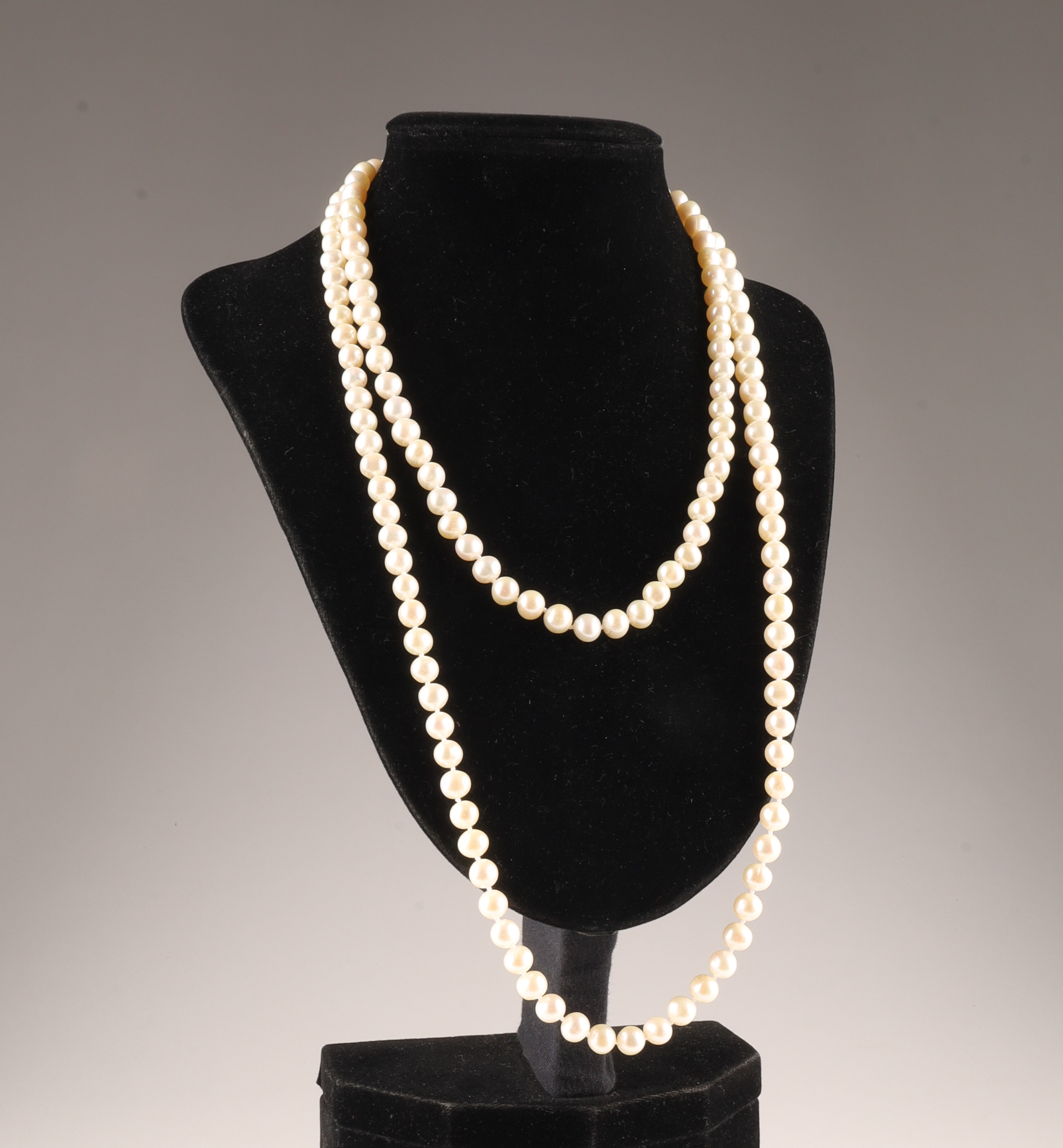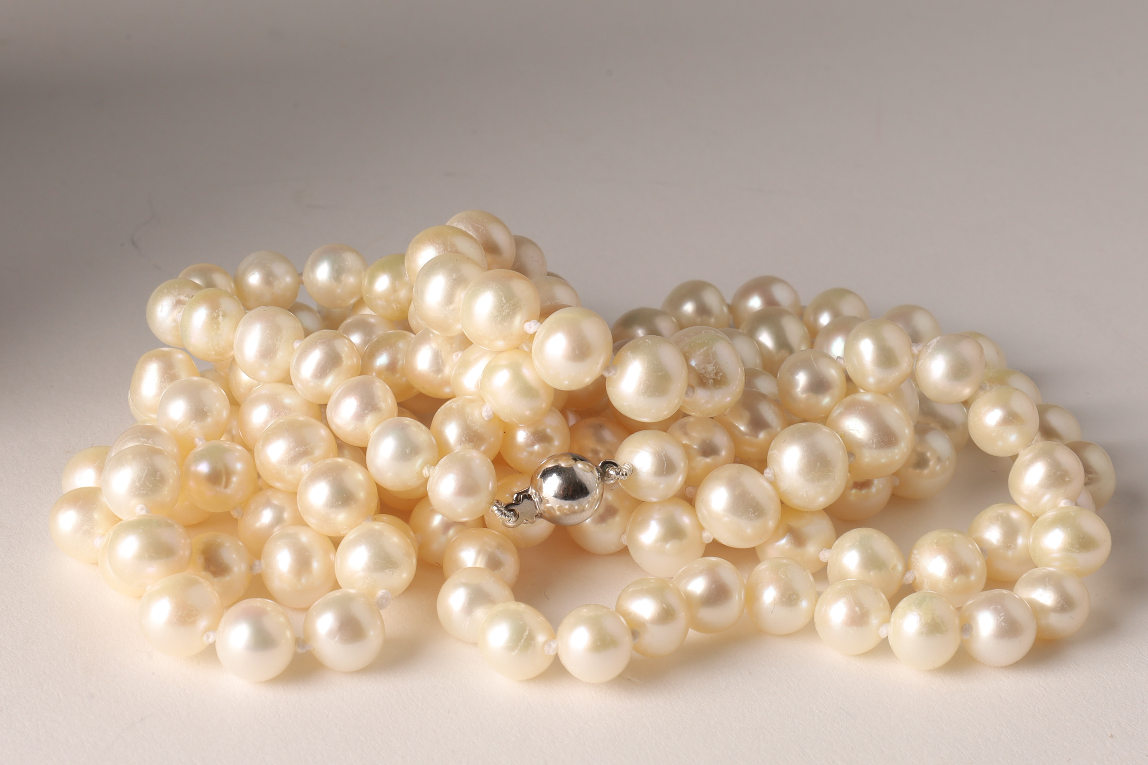 Long Opera Length 14K White Gold and Pearl Necklace. 46 inches L.
