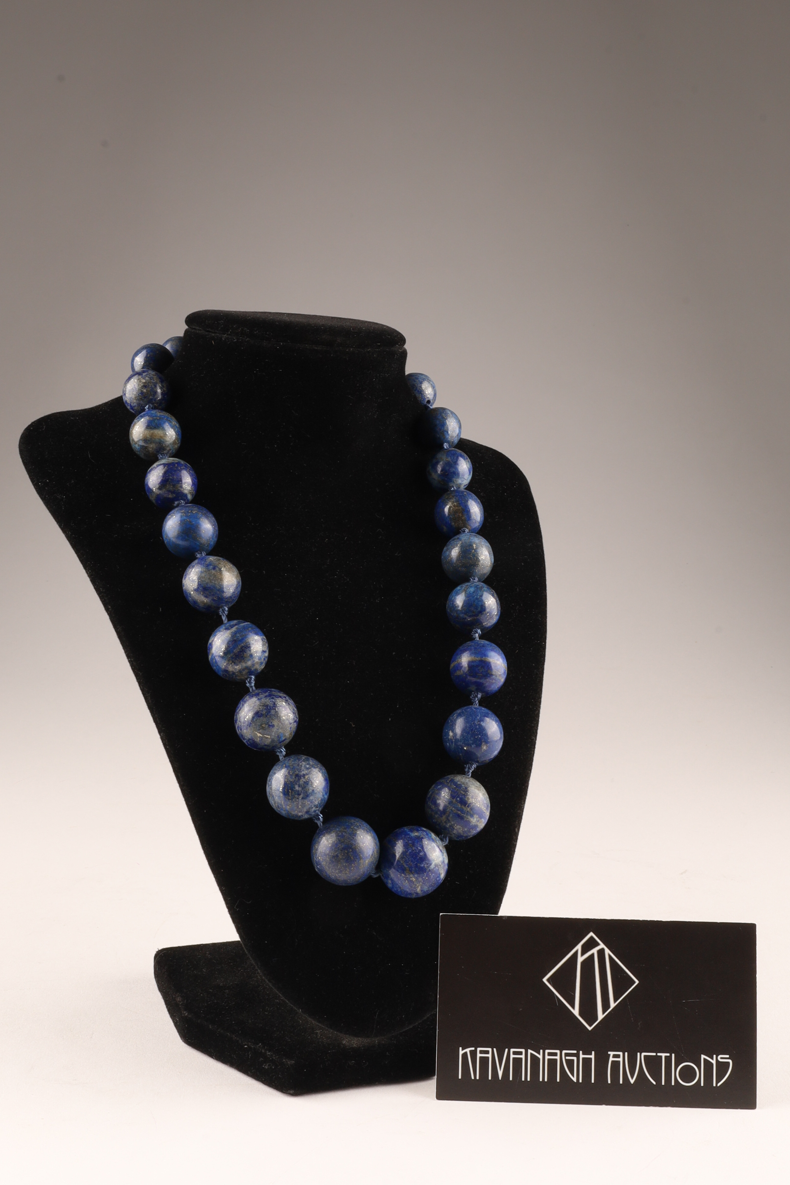 Large Graduated Lapis Lazuli Beads Necklace. 18 inches L, largest bead measures 20mm.
