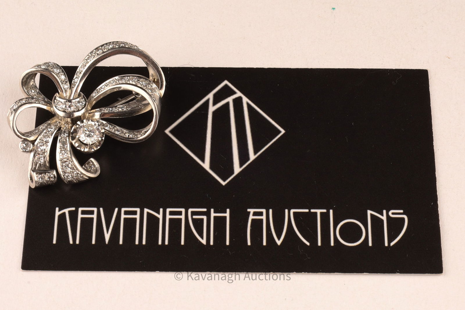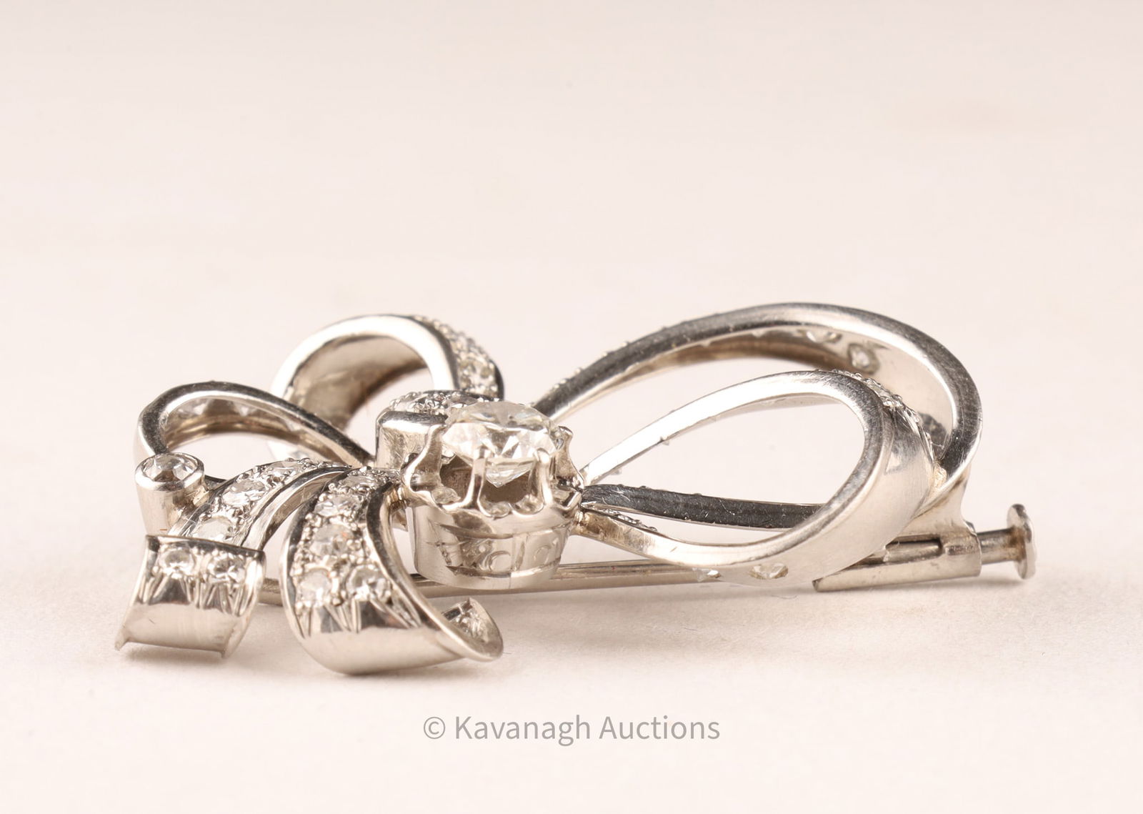 Vintage Mid-Century Platinum and Diamond Bow Brooch