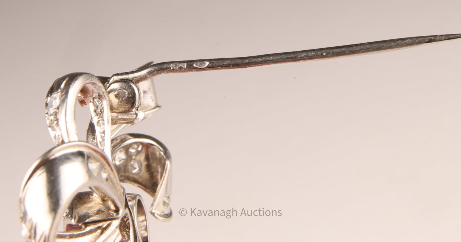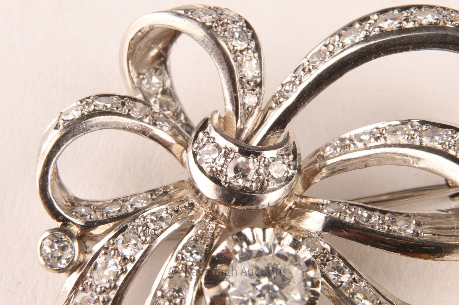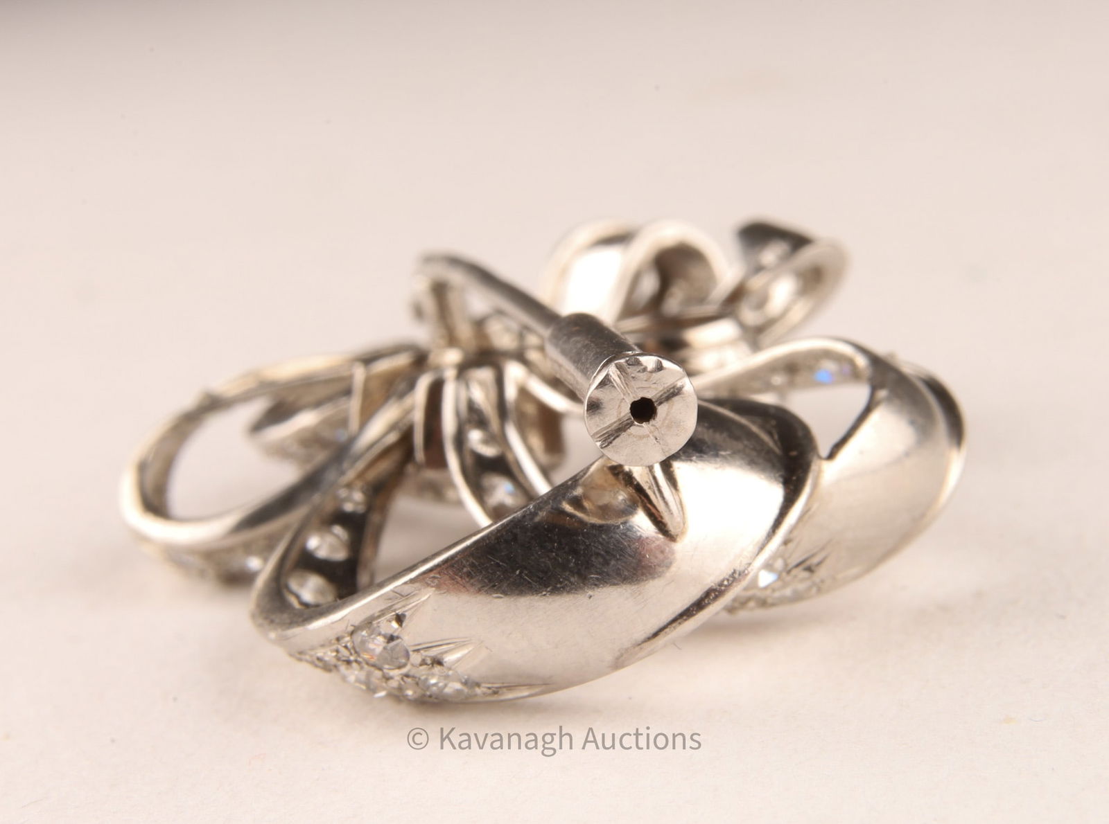 Vintage Mid-Century Platinum and Diamond Bow Brooch, E. Breton