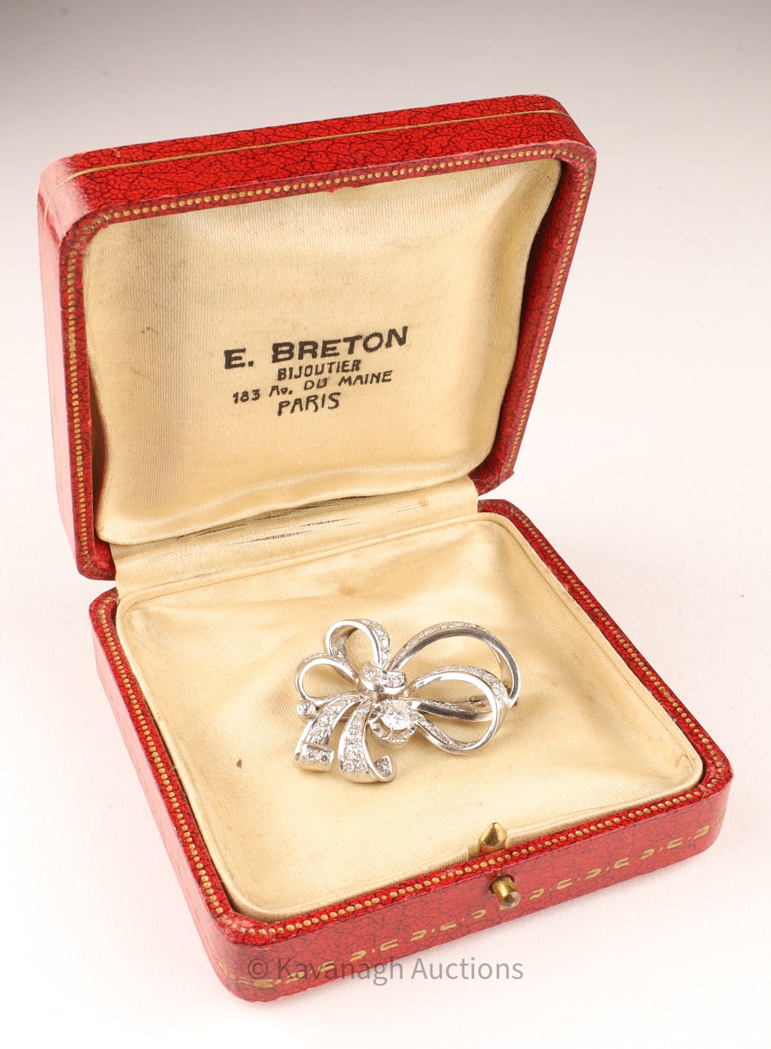 Markings: partial, illegible; accompanied by a fitted box from E. Breton Bijoutier, Paris.