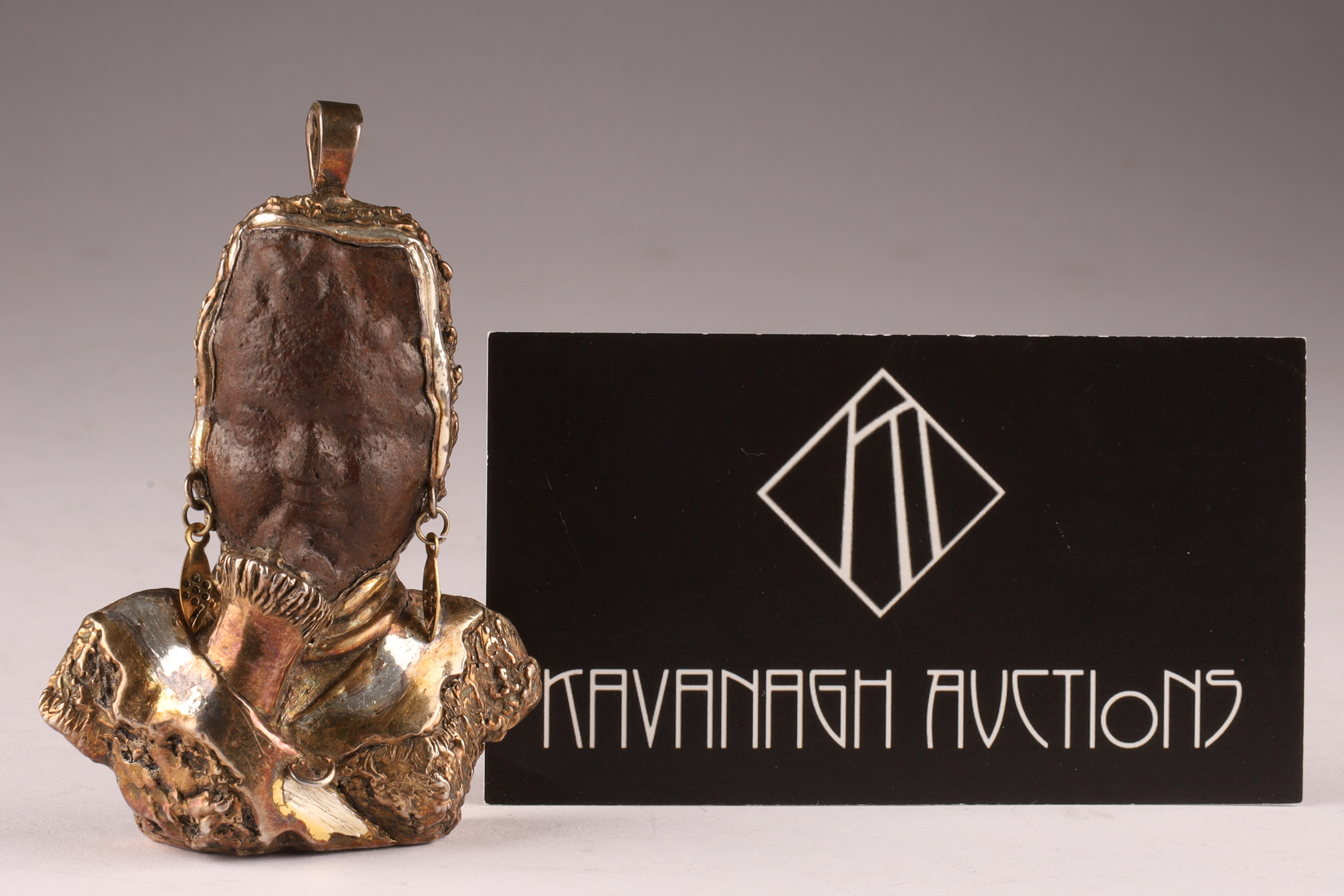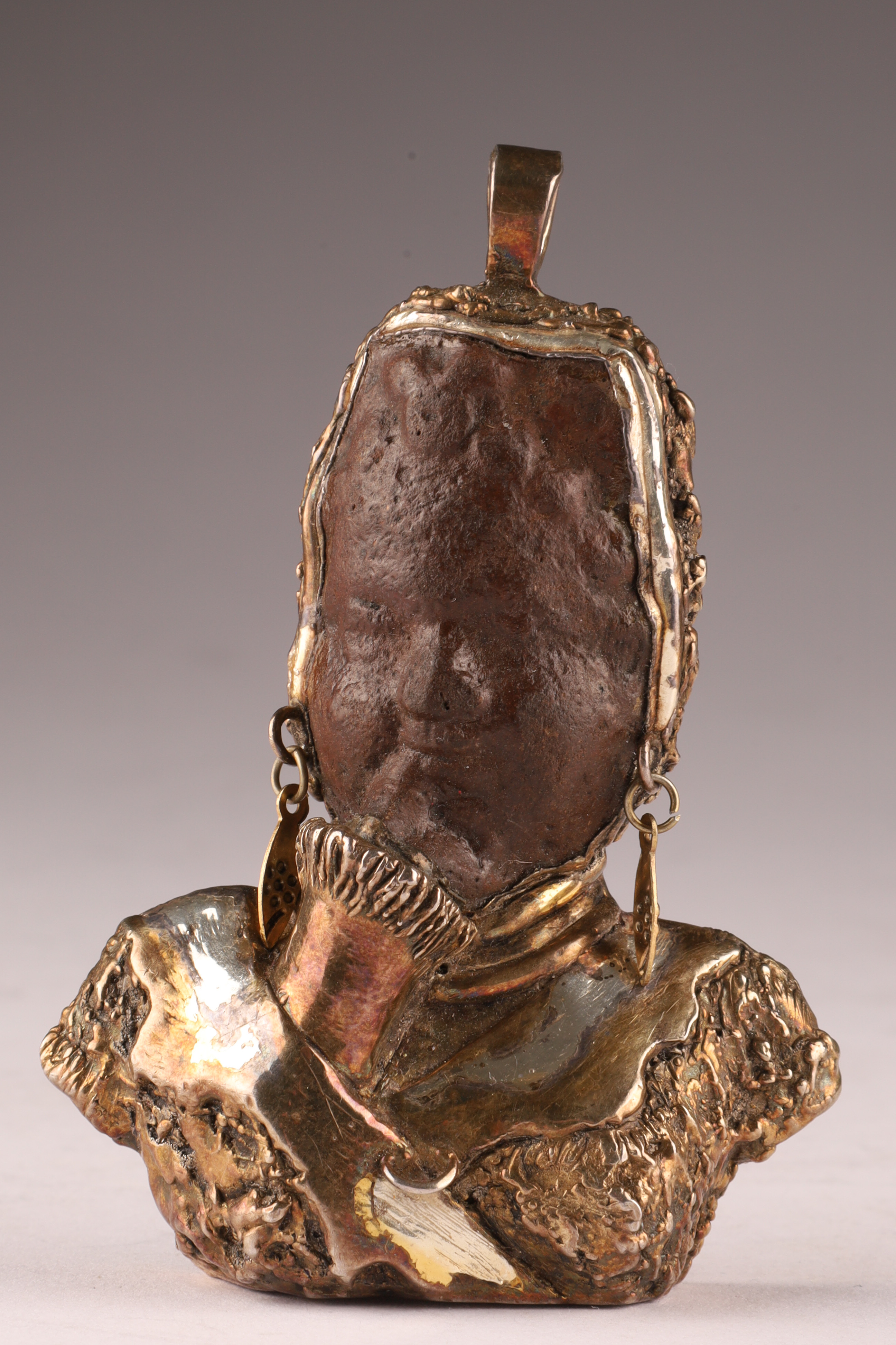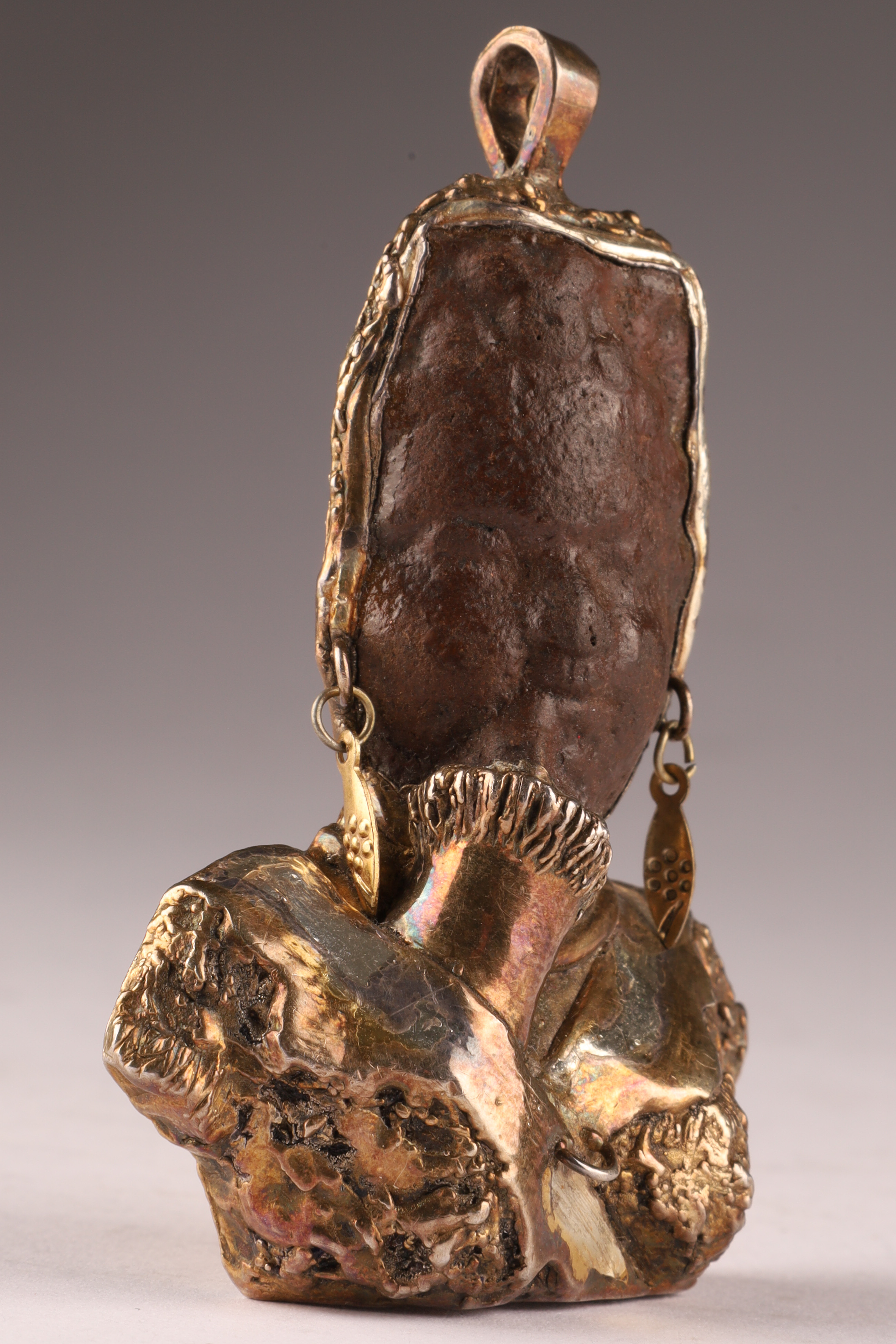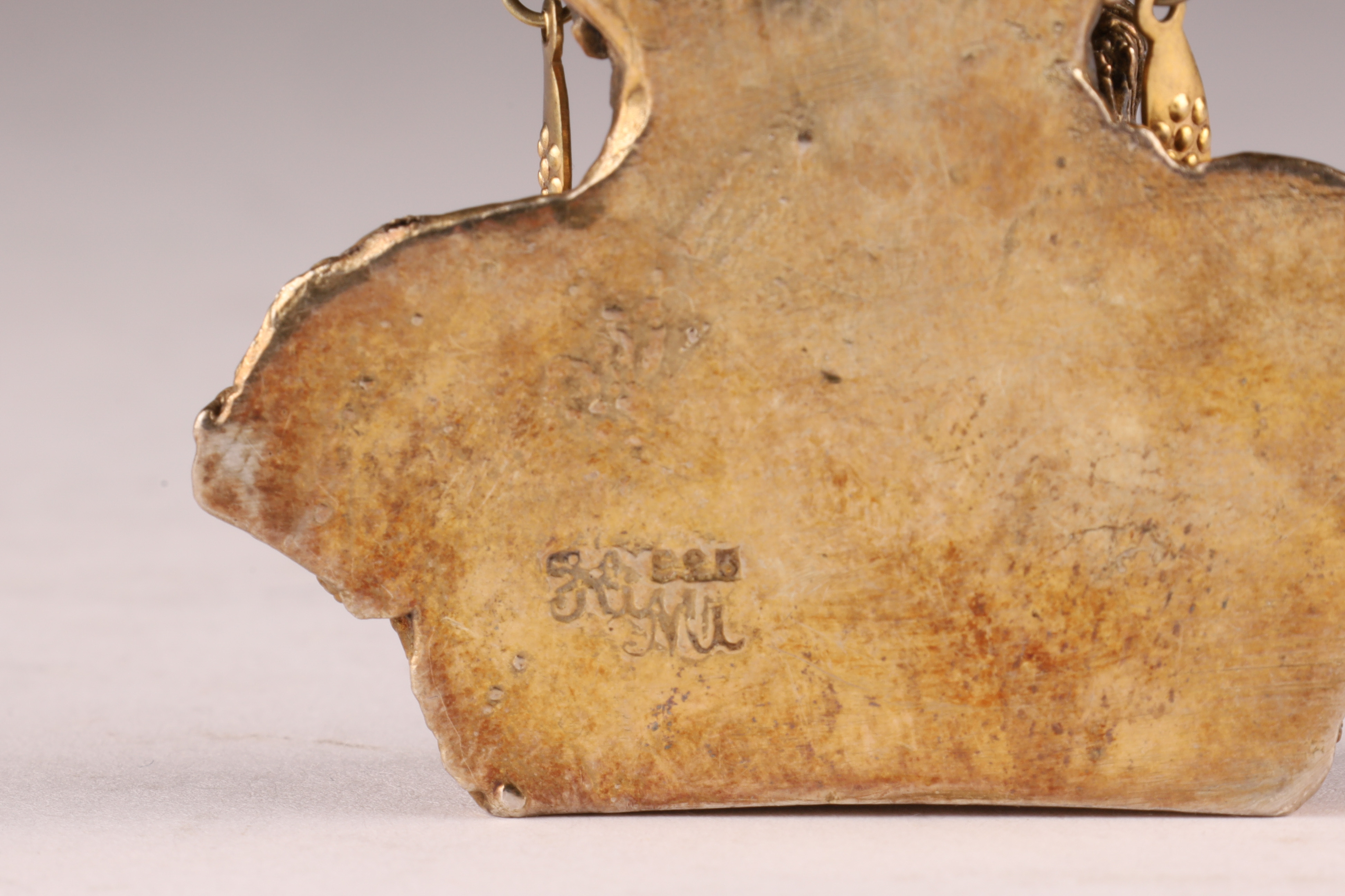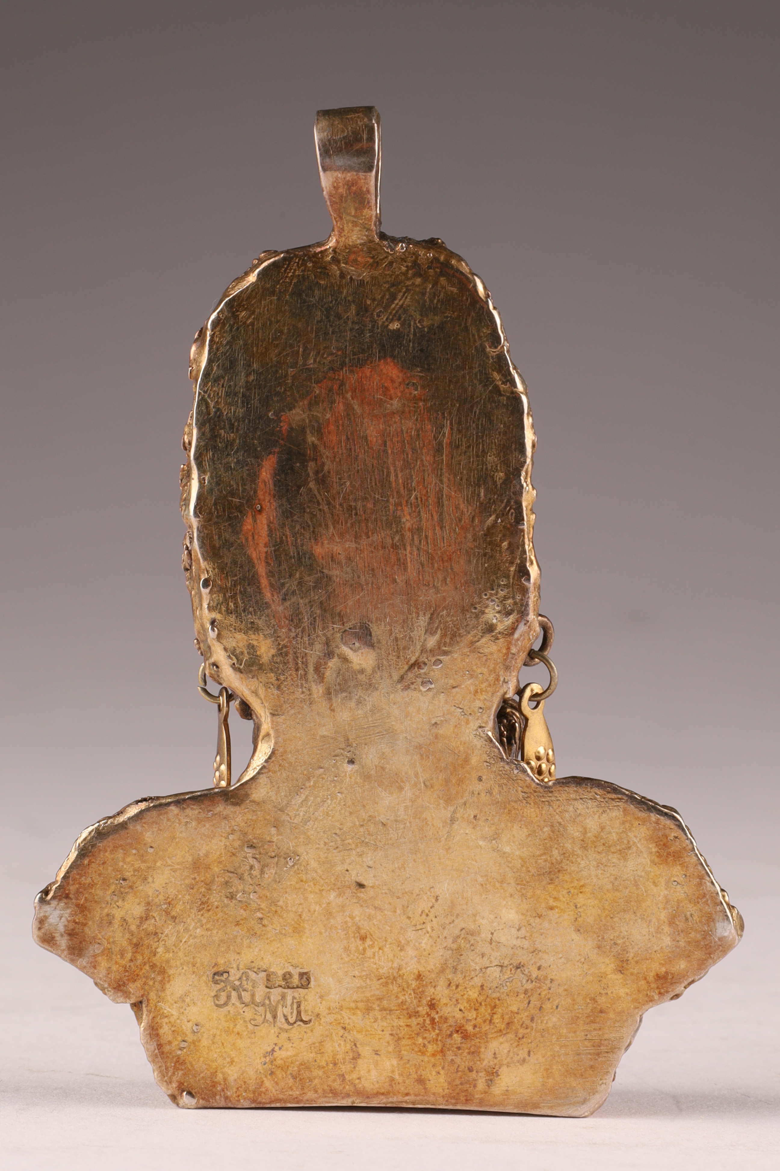 Signed Gilt Sterling Figural Pendant. 3 x 2 inches
