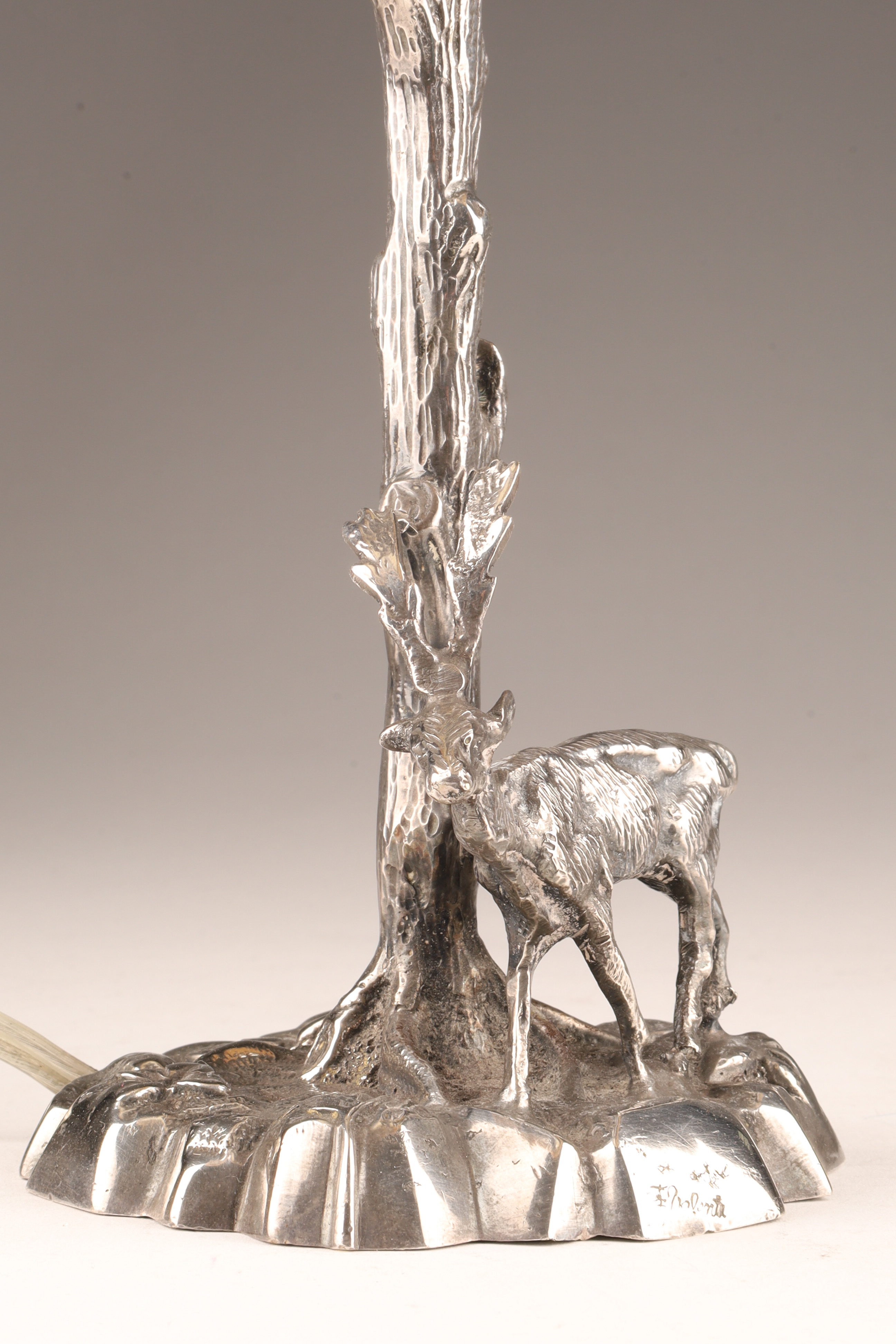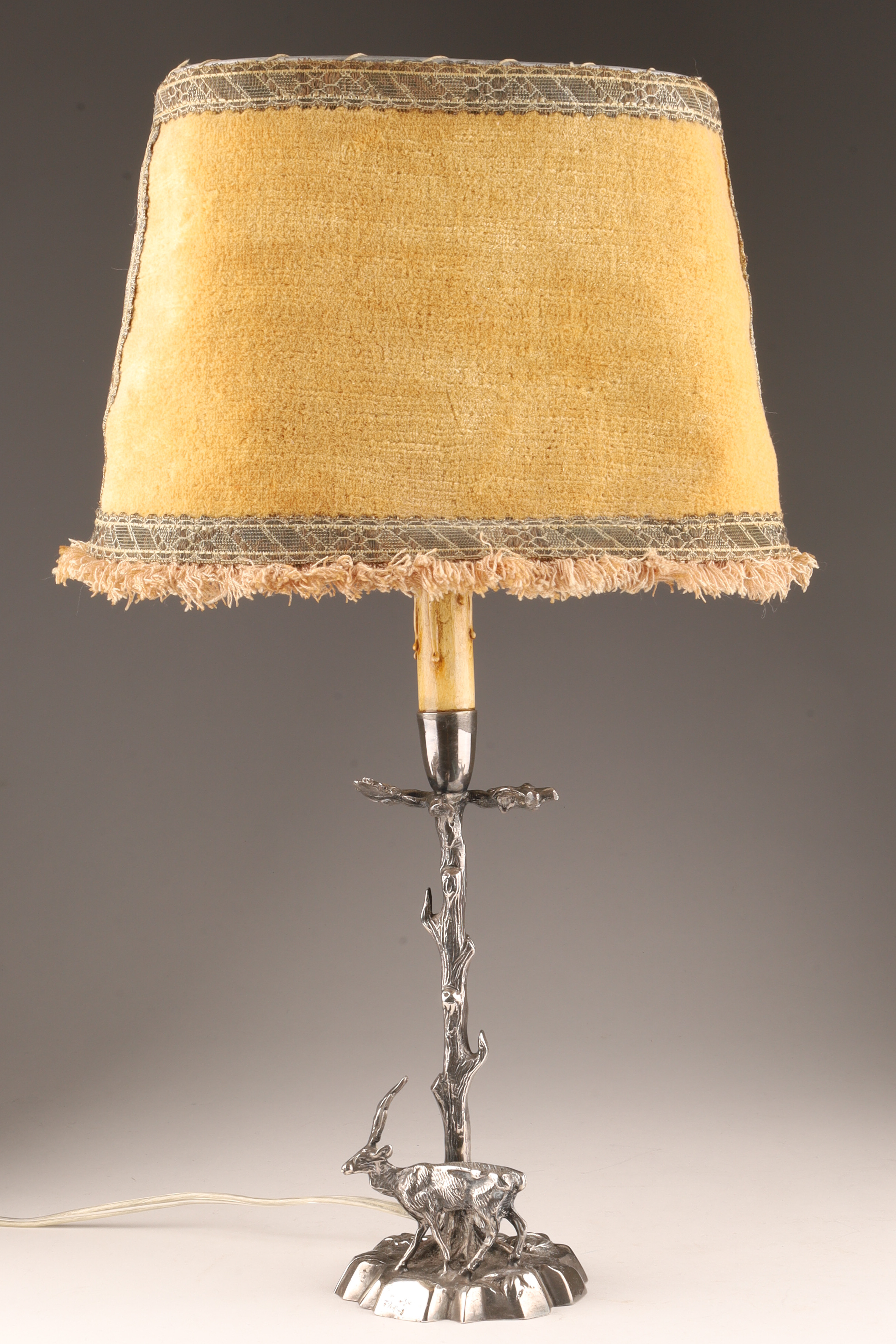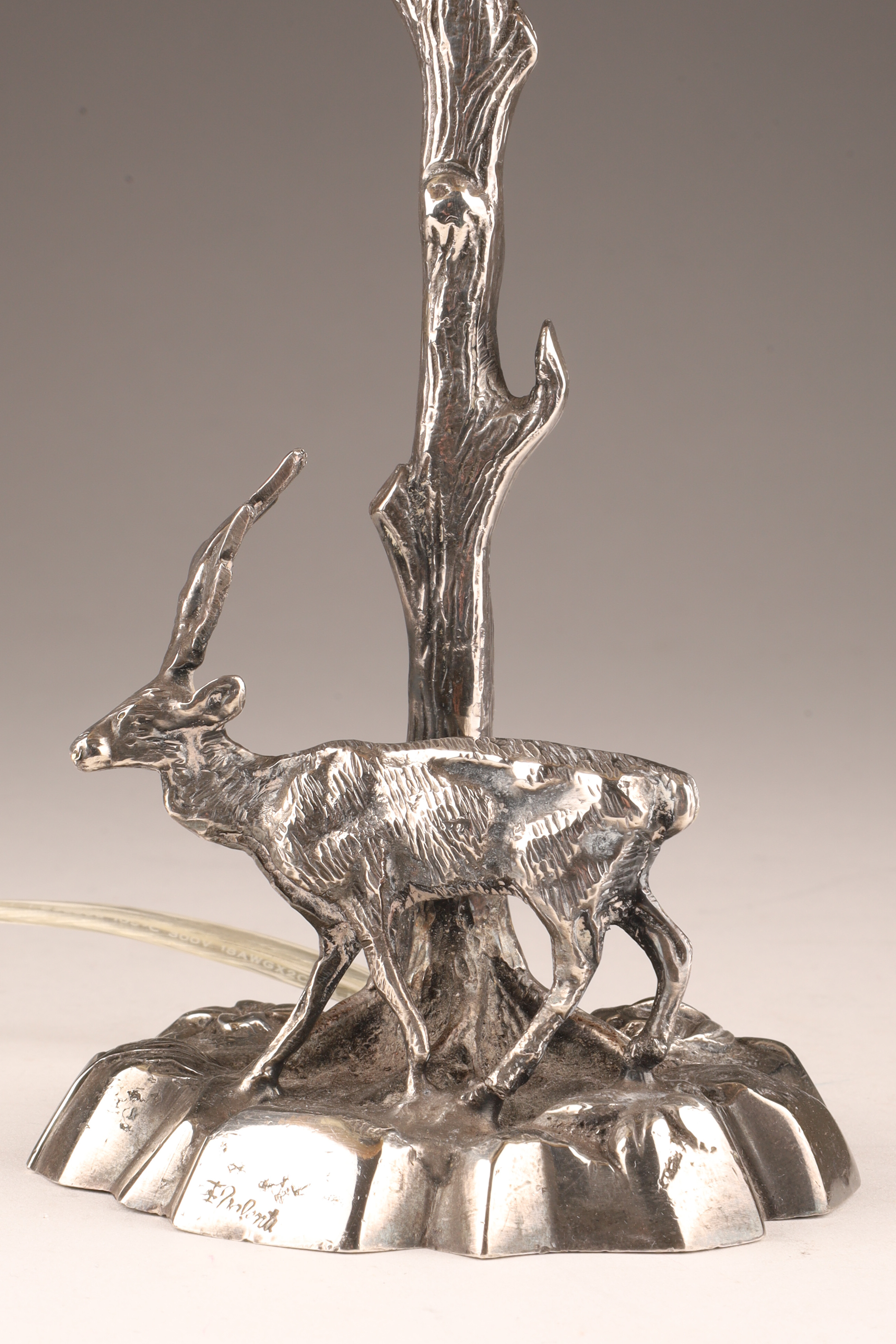 Silver Plated Bronze Deer Fine Sculpture Table Lamp Signed Valenti