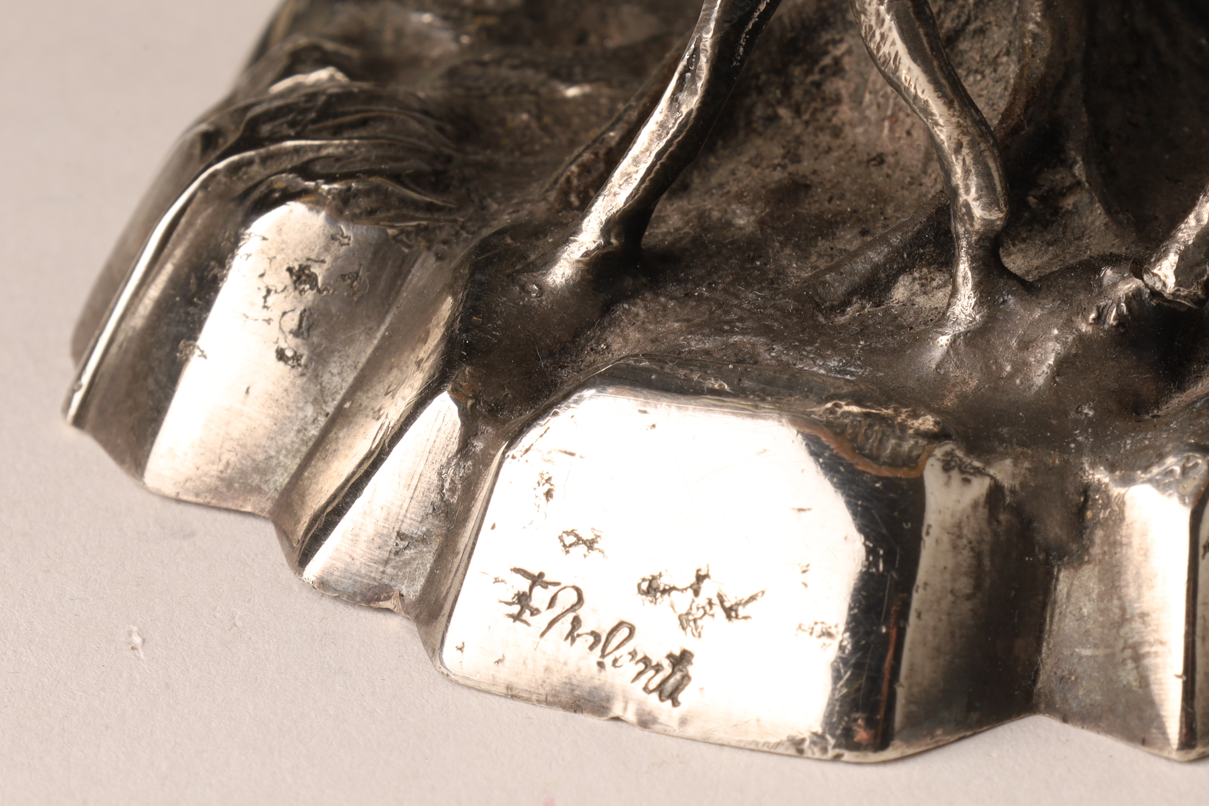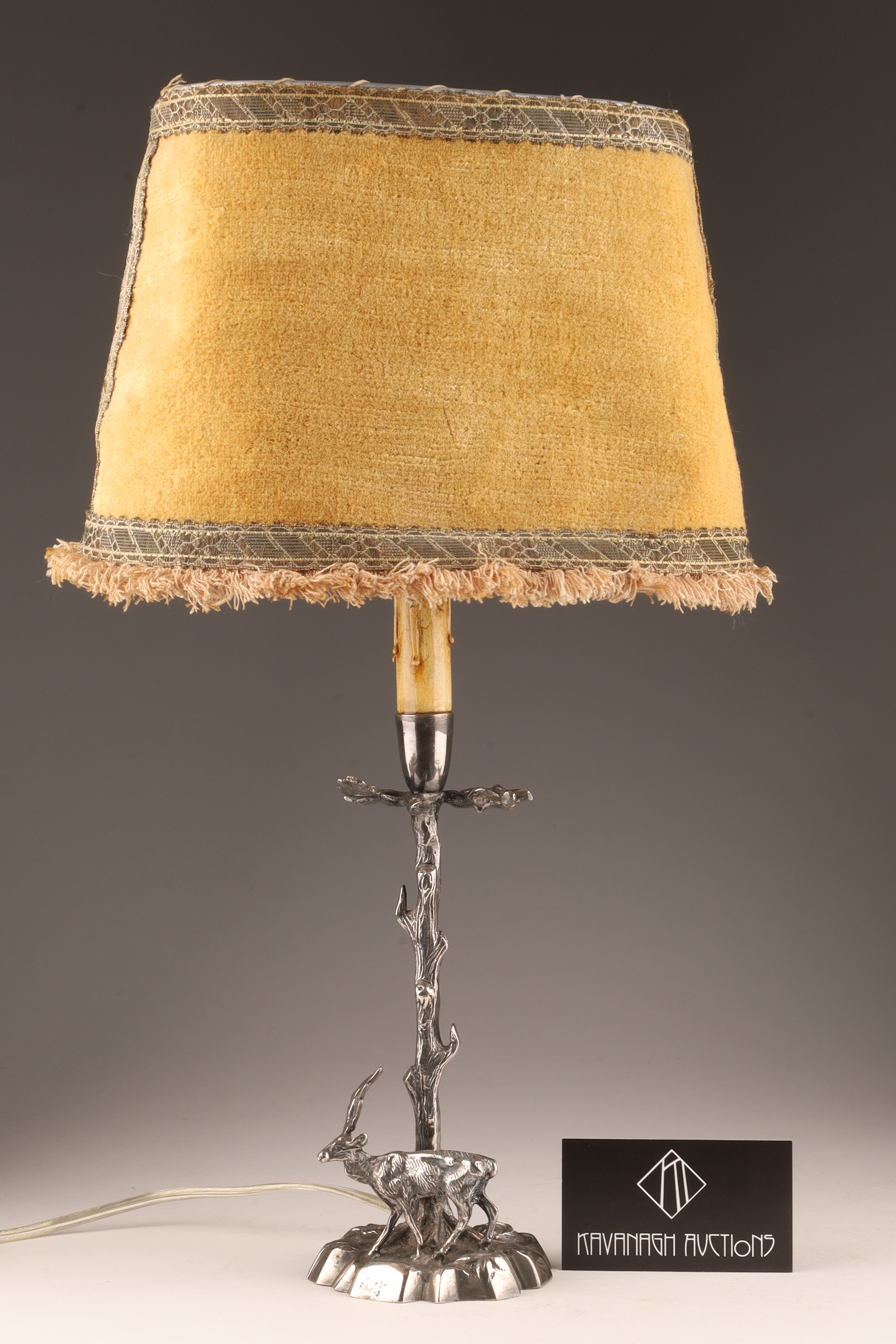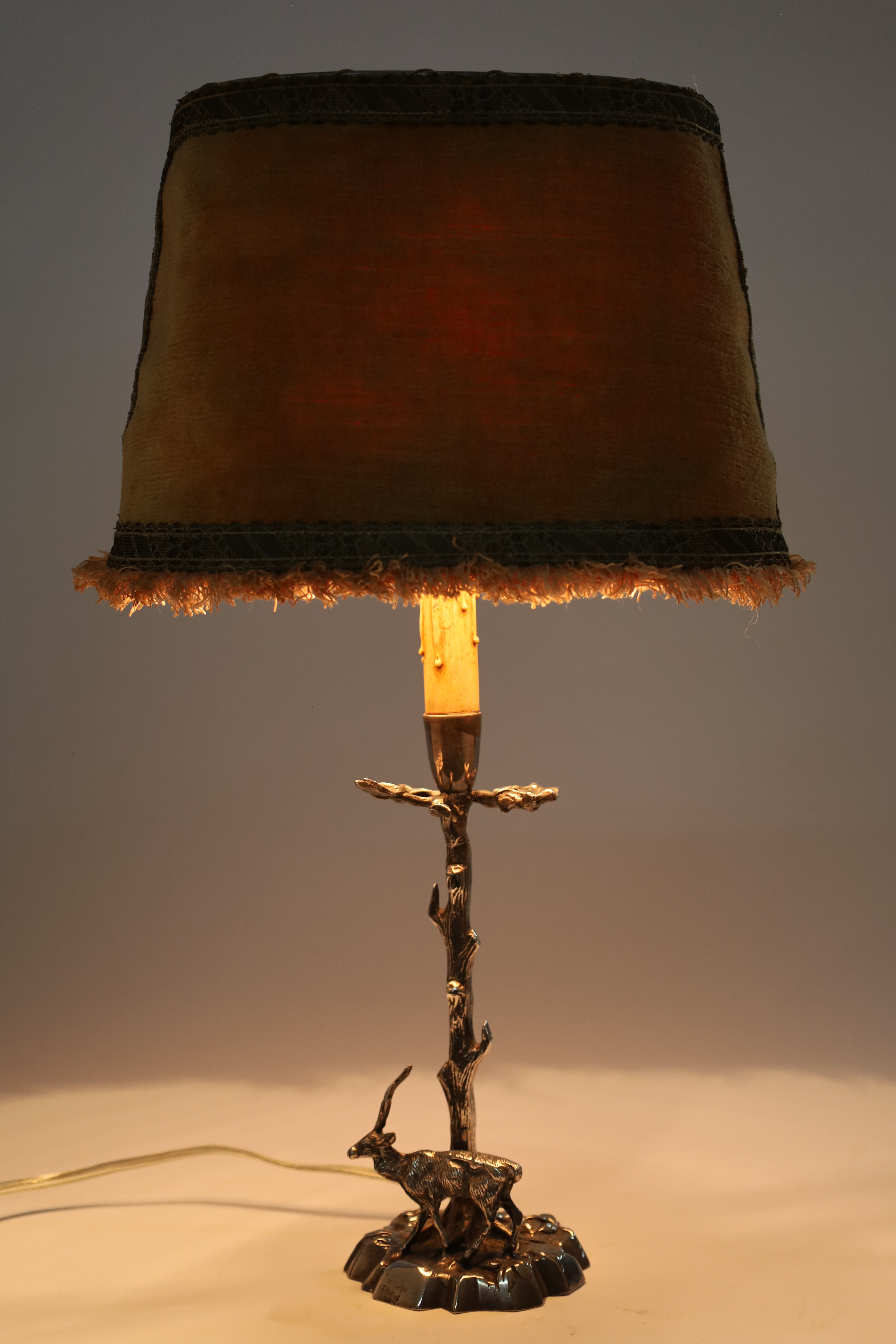 Silver Plated Bronze Deer Fine Sculpture Table Lamp Signed Valenti