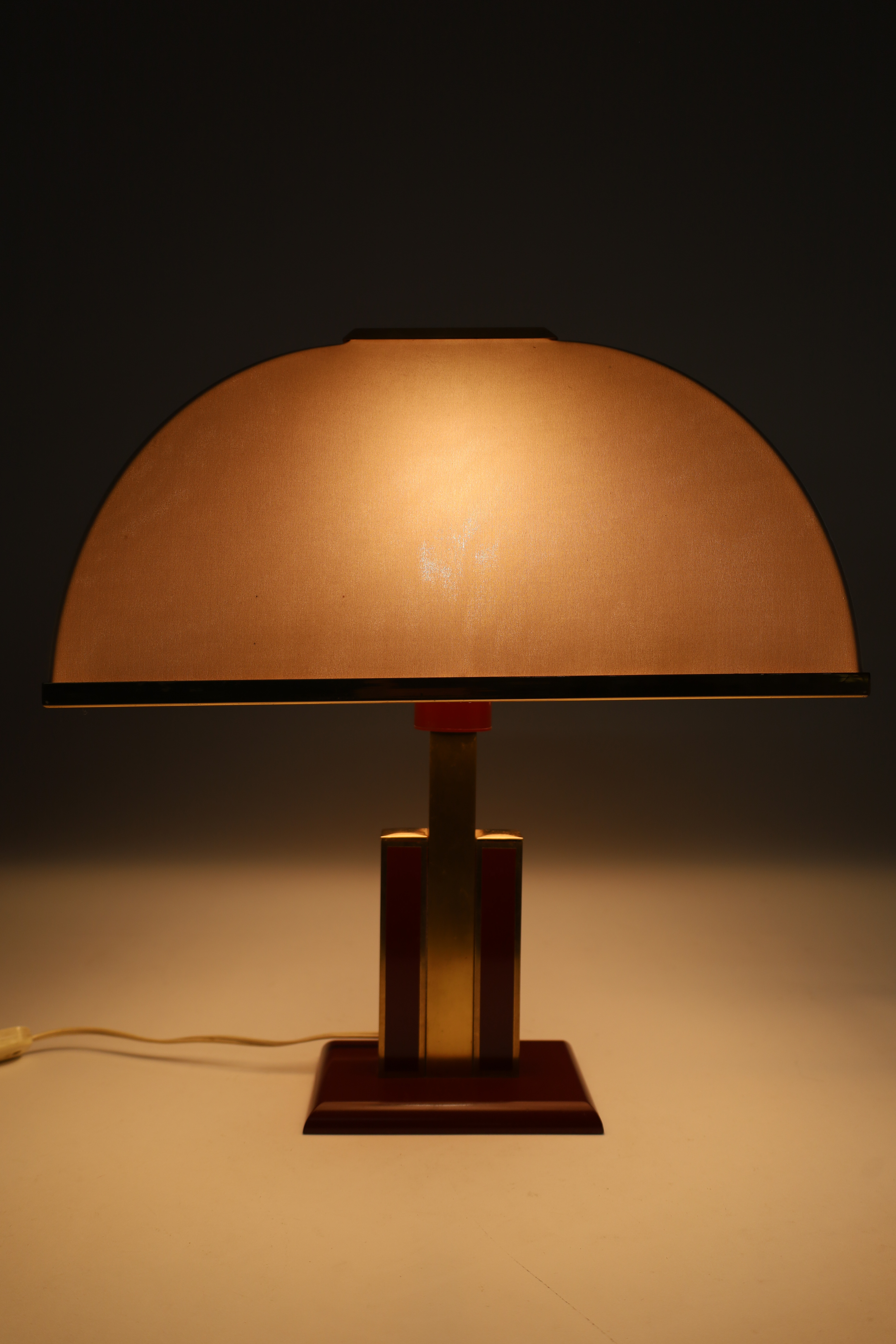 1960s Mid Century Romeo Rega Red Lacquered Brass Italian Table Lamp
