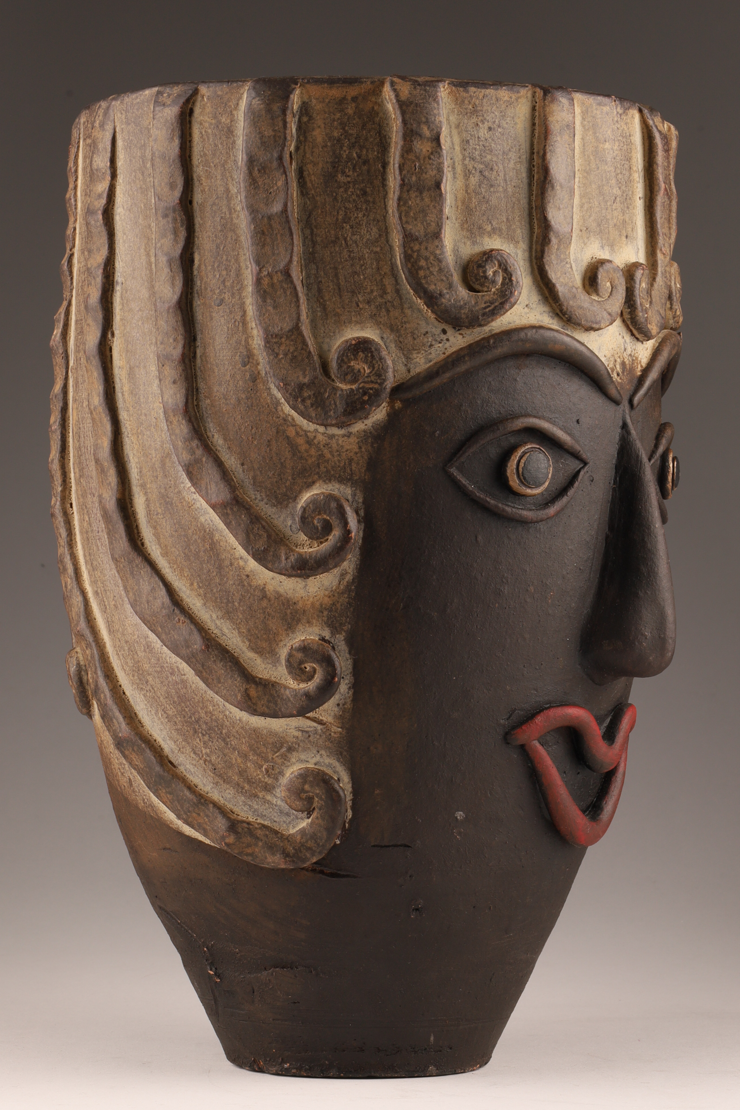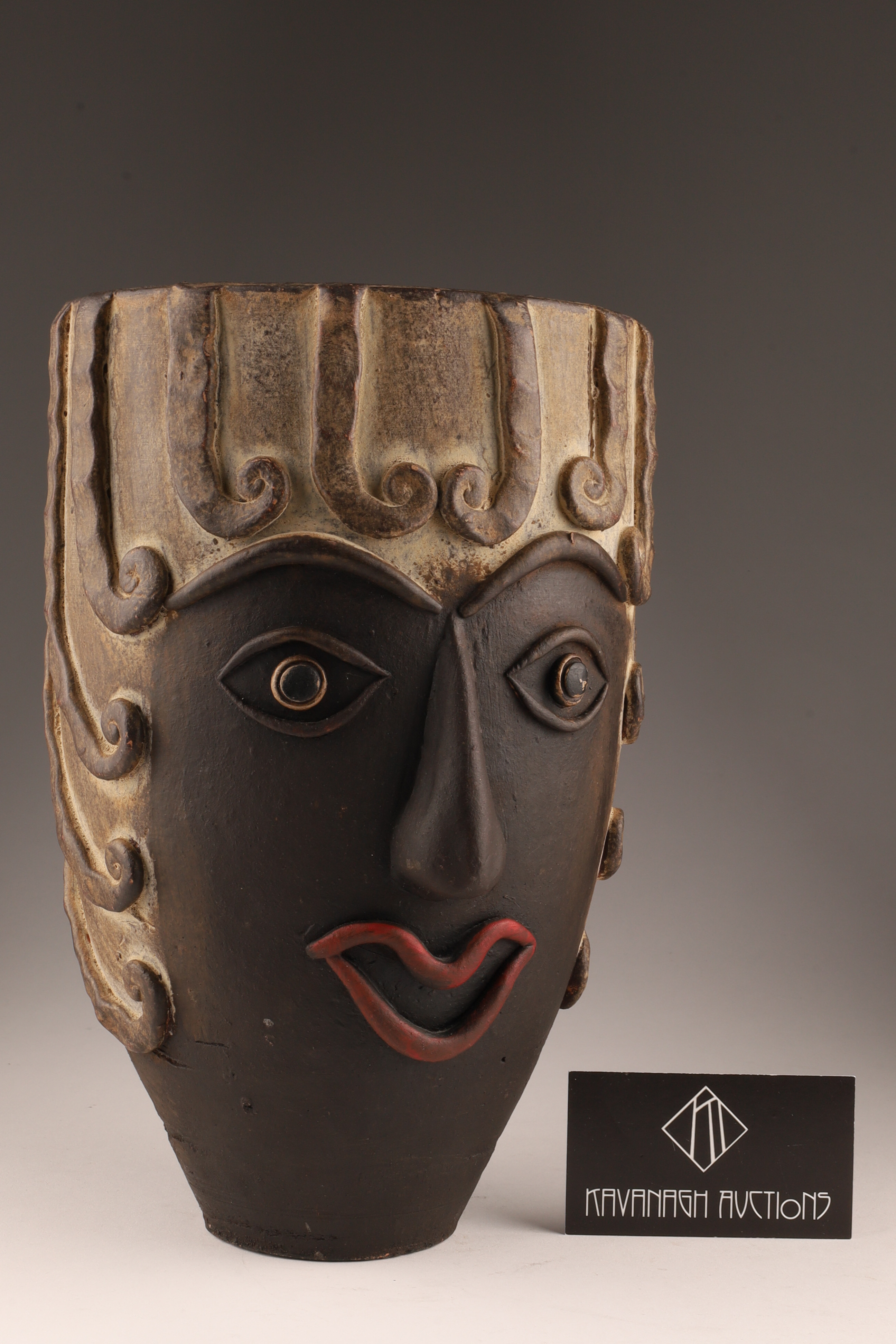 Vintage Mid-Century Mexican Terracotta Figural Face Planter Pot. 11 inches H x 7 inches W.