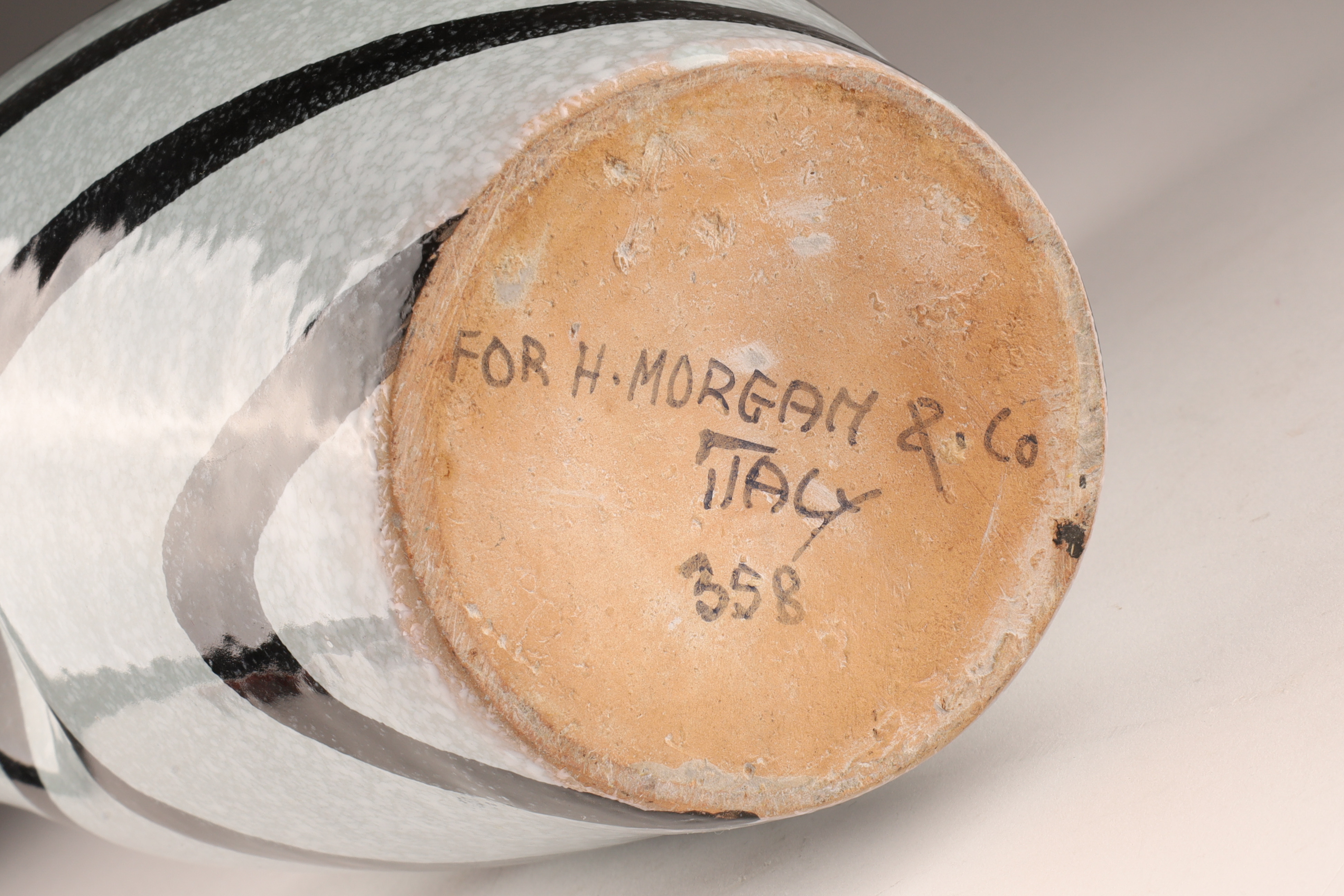 Mid Century Italy Gamboni Style Vase for Henry Morgan & Co. Marked on underside, 358. Measuring 9 inches H x 8.5 inches W.