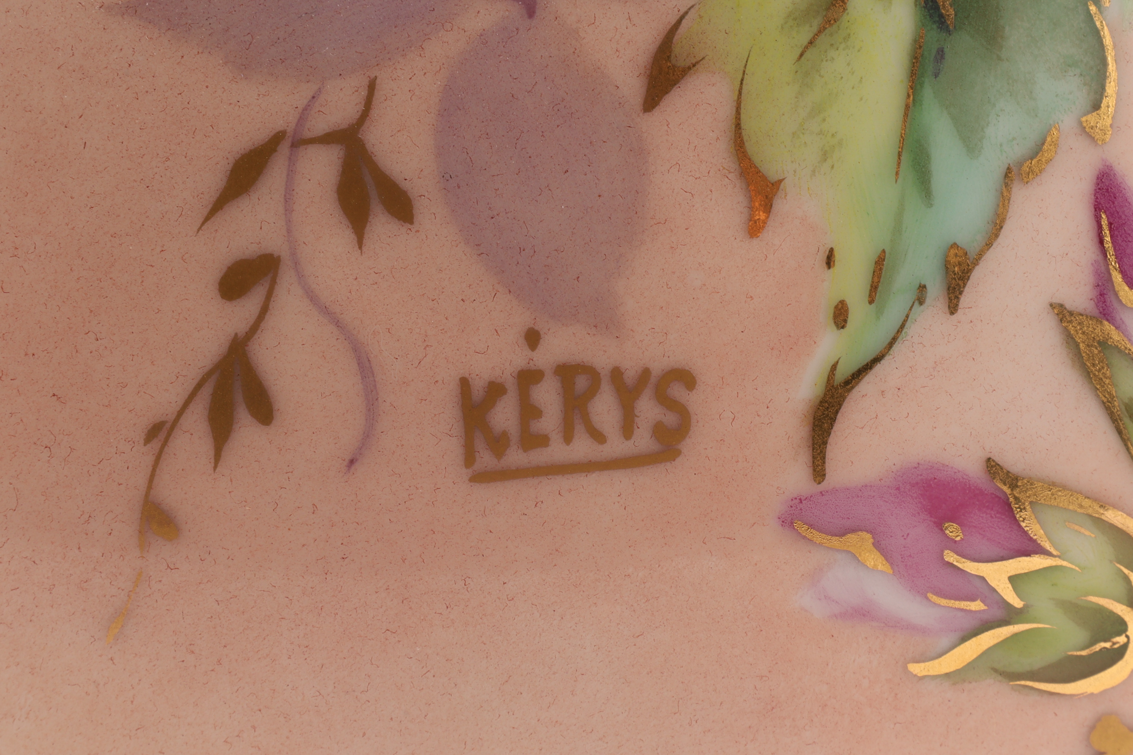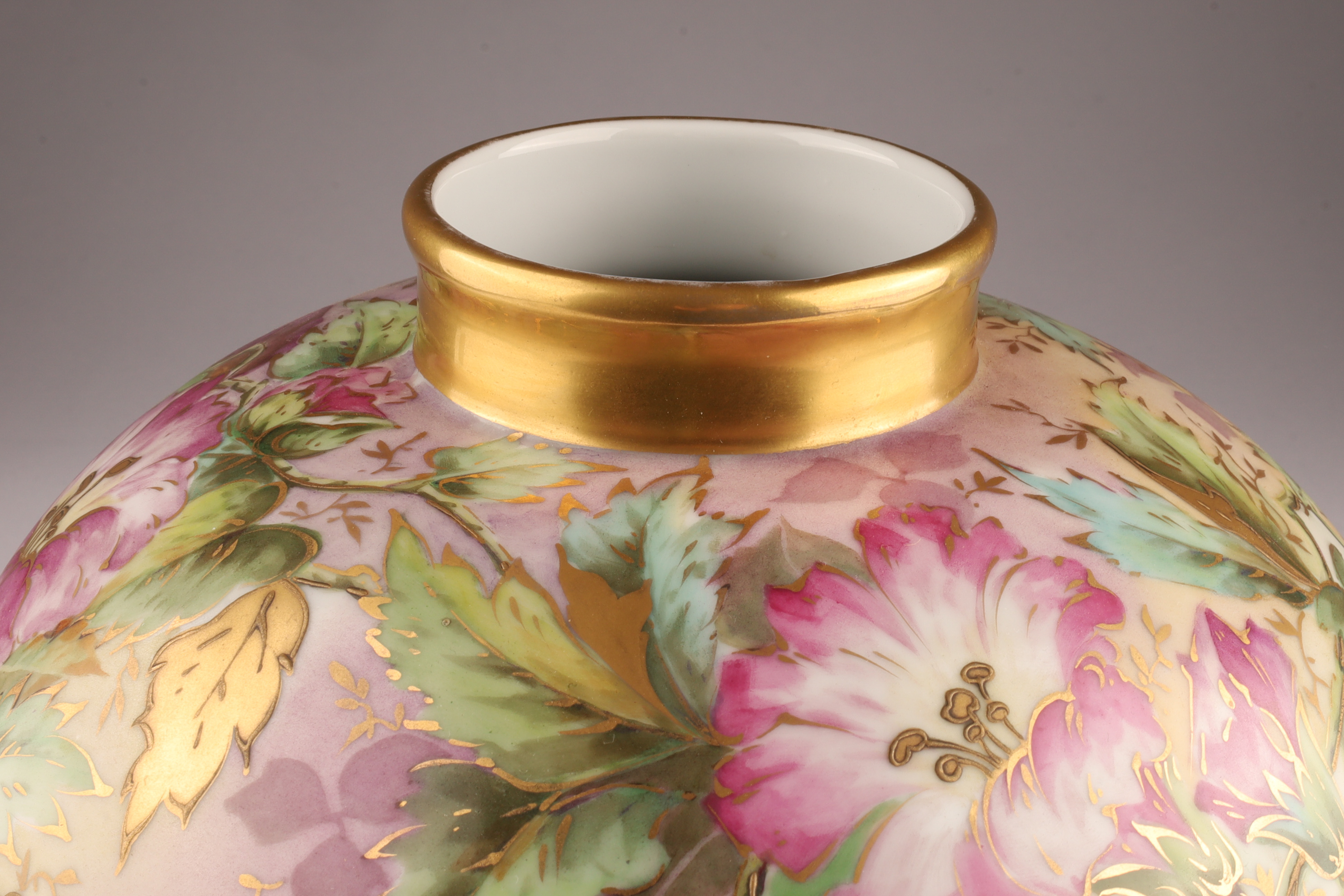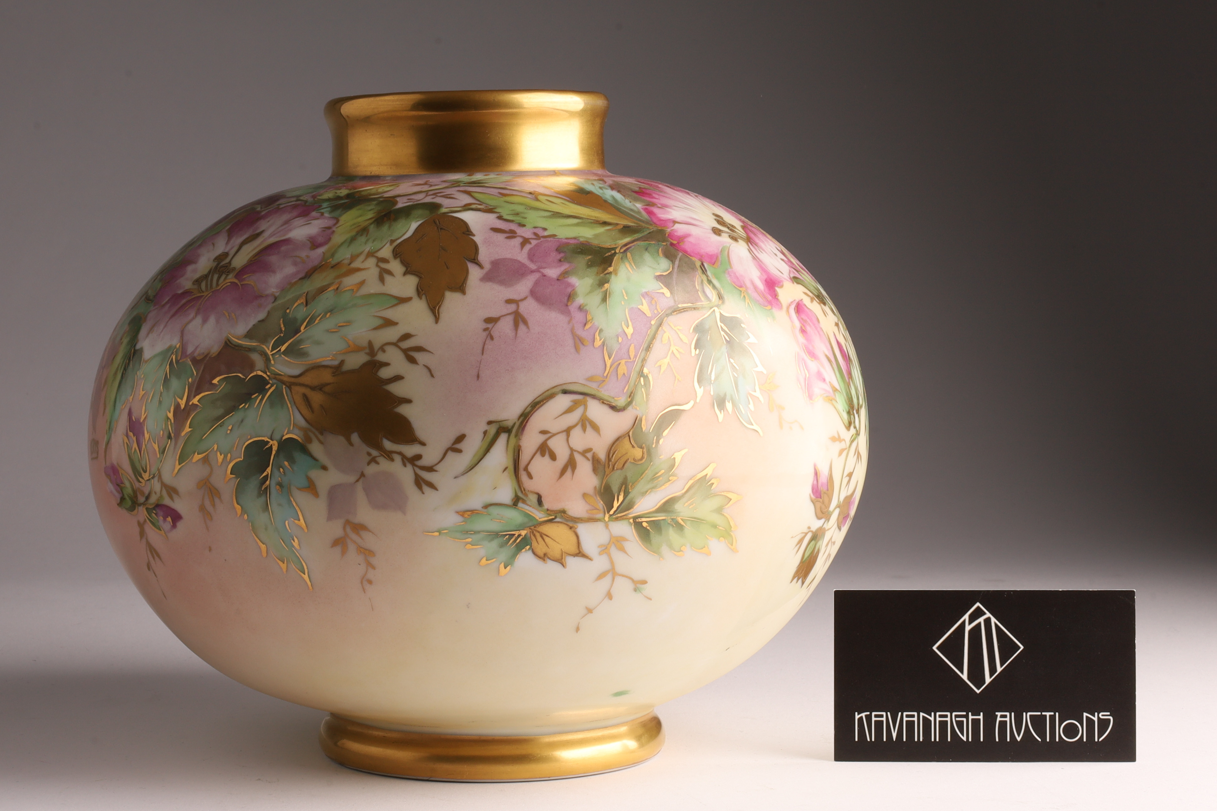 Antique French Porcelain Limoges Pillow Vase Signed decorated with floral sprays, measuring 8 inches H x 9 W, marked on underside.