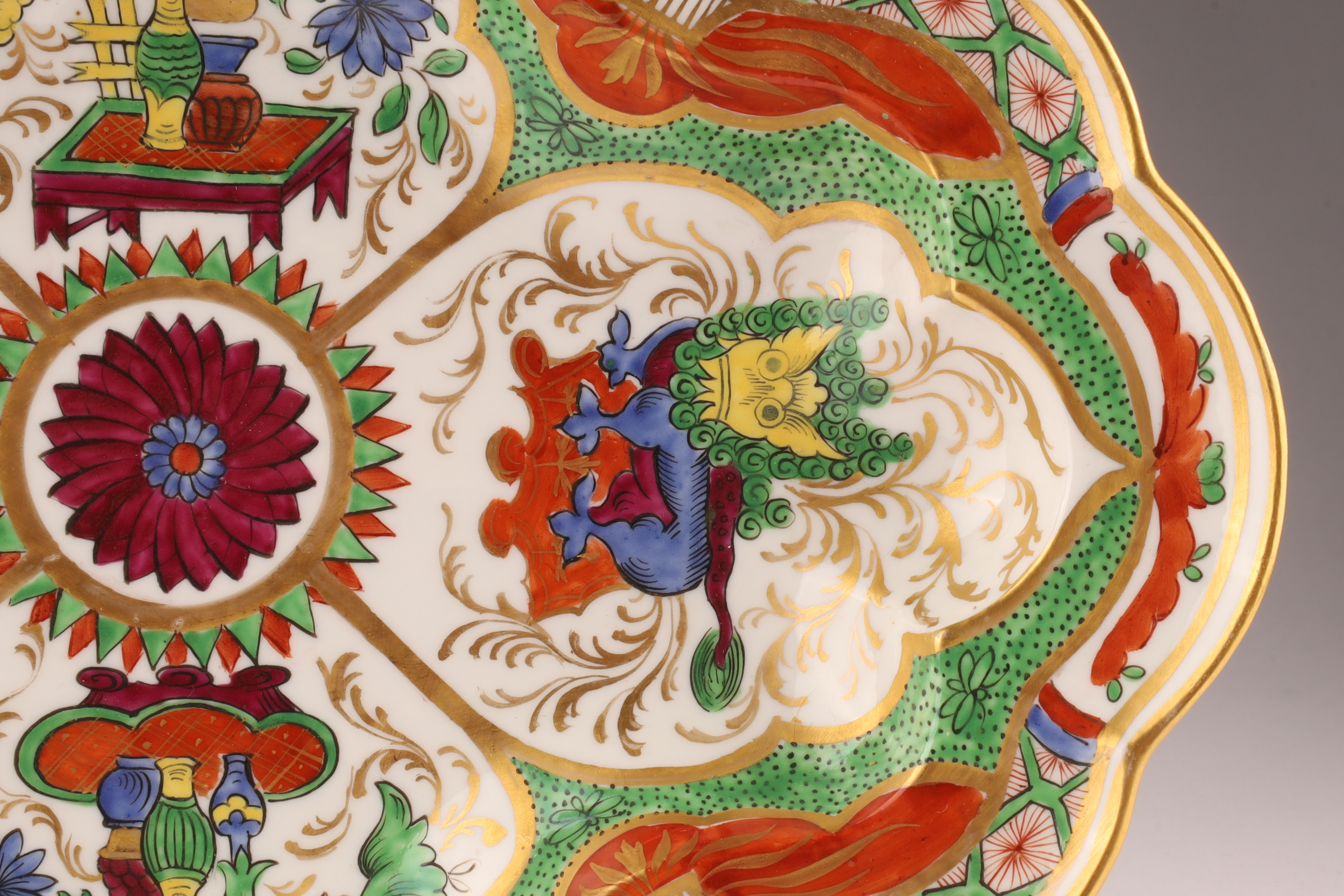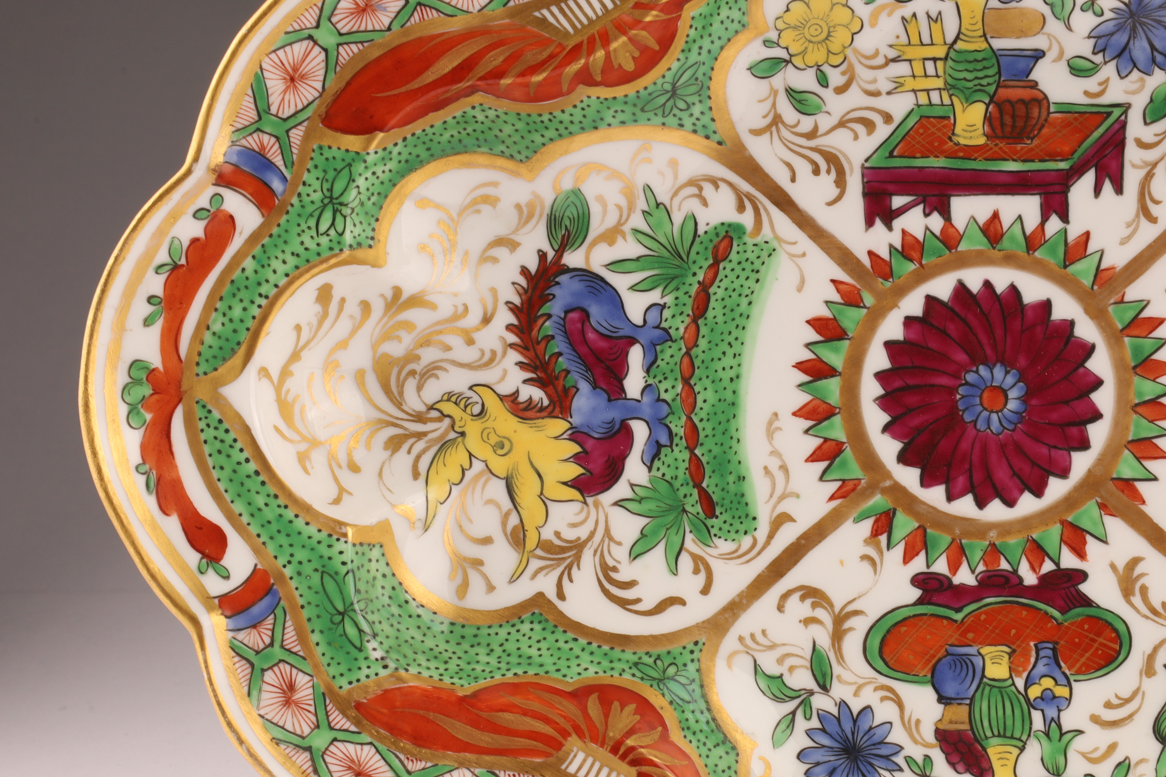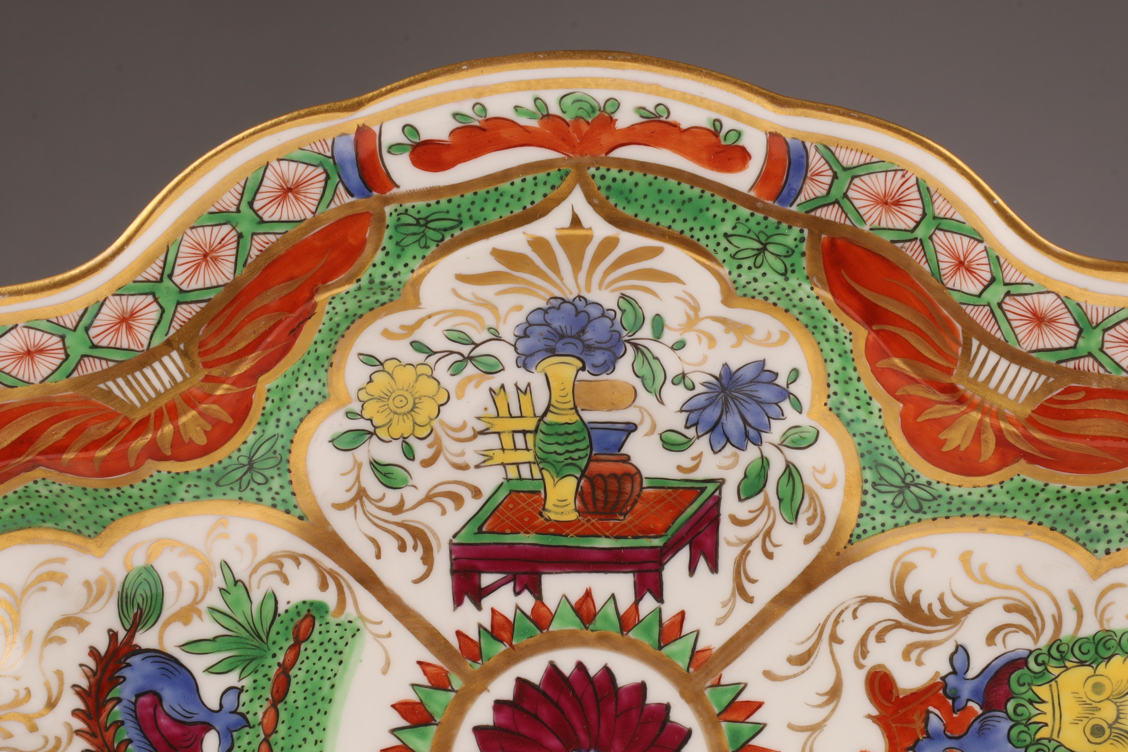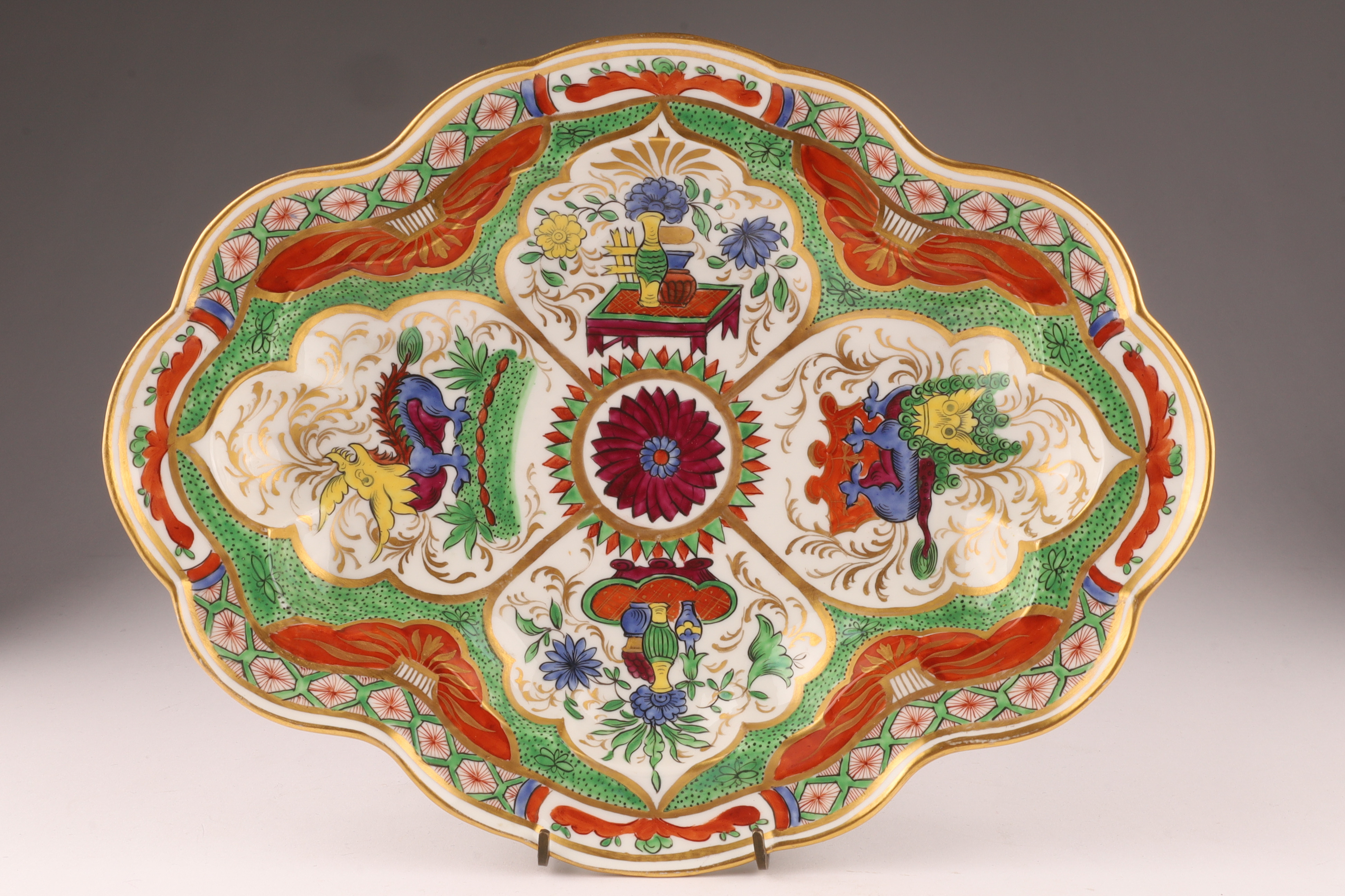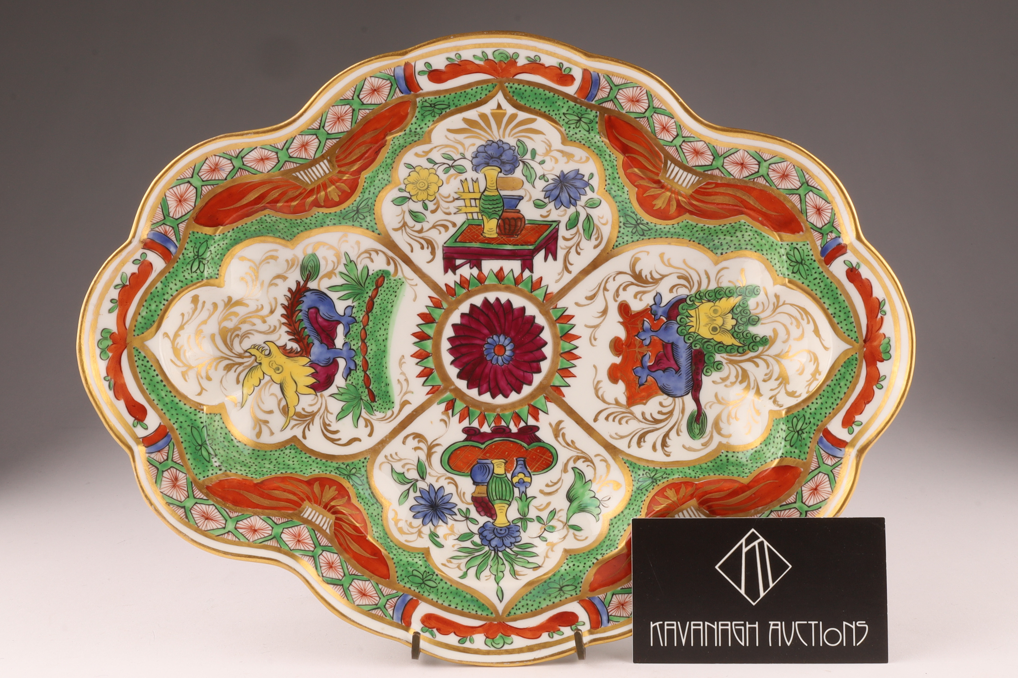 Antique English Ironstone Chinoiserie Serving Dish, Chamberlain’s Worcester porcelain dish, Dragons in Compartments Pattern, 1.75 x 11.5 x 9 inches deep.