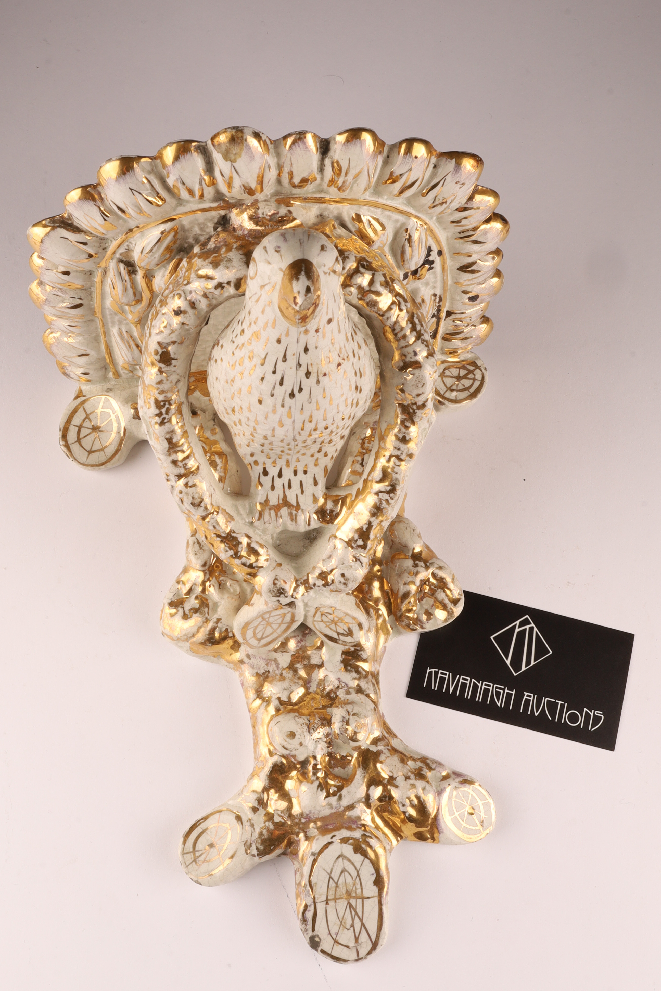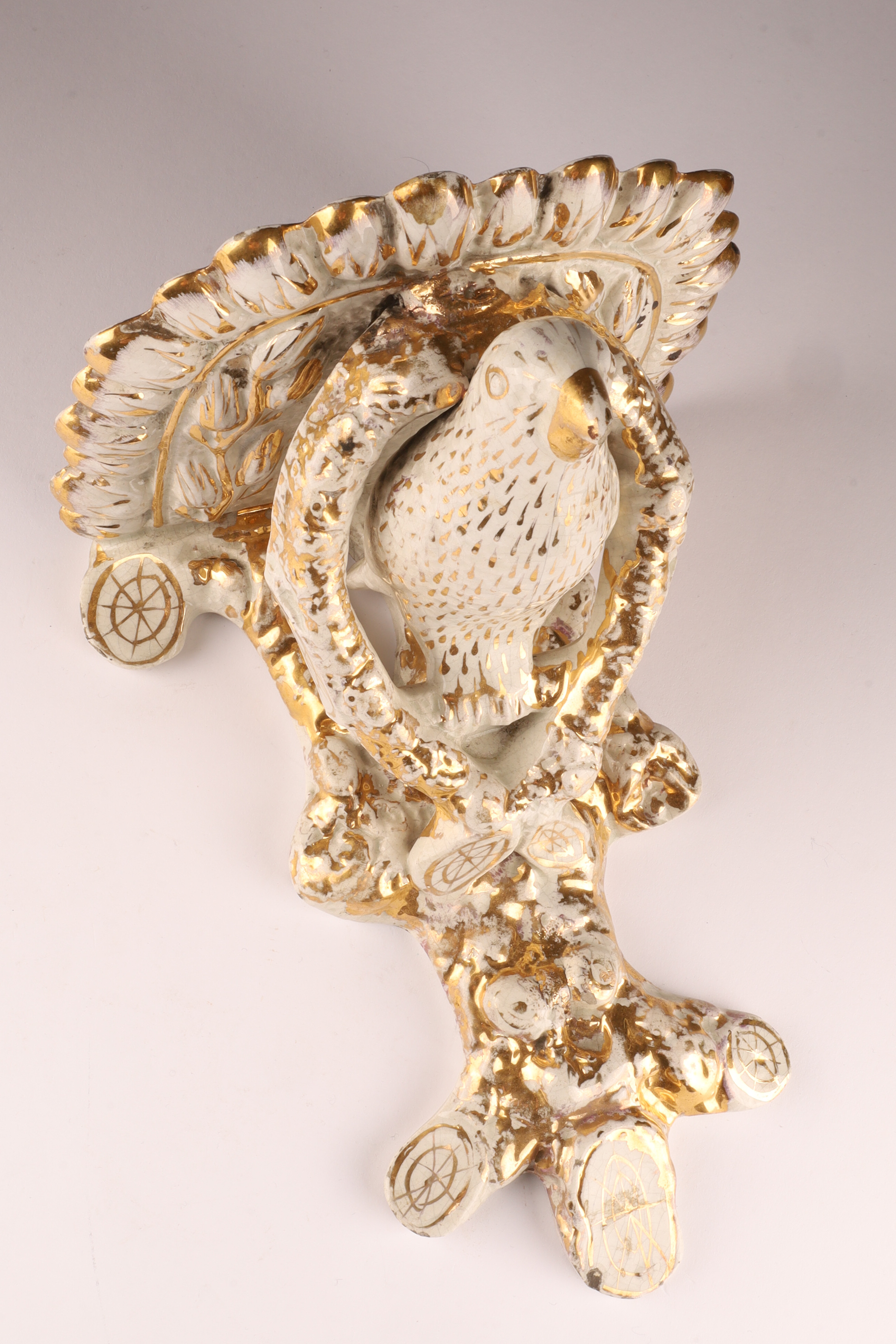 Staffordshire Creamware Porcelain Wall Bracket with Tree Branch and Bird