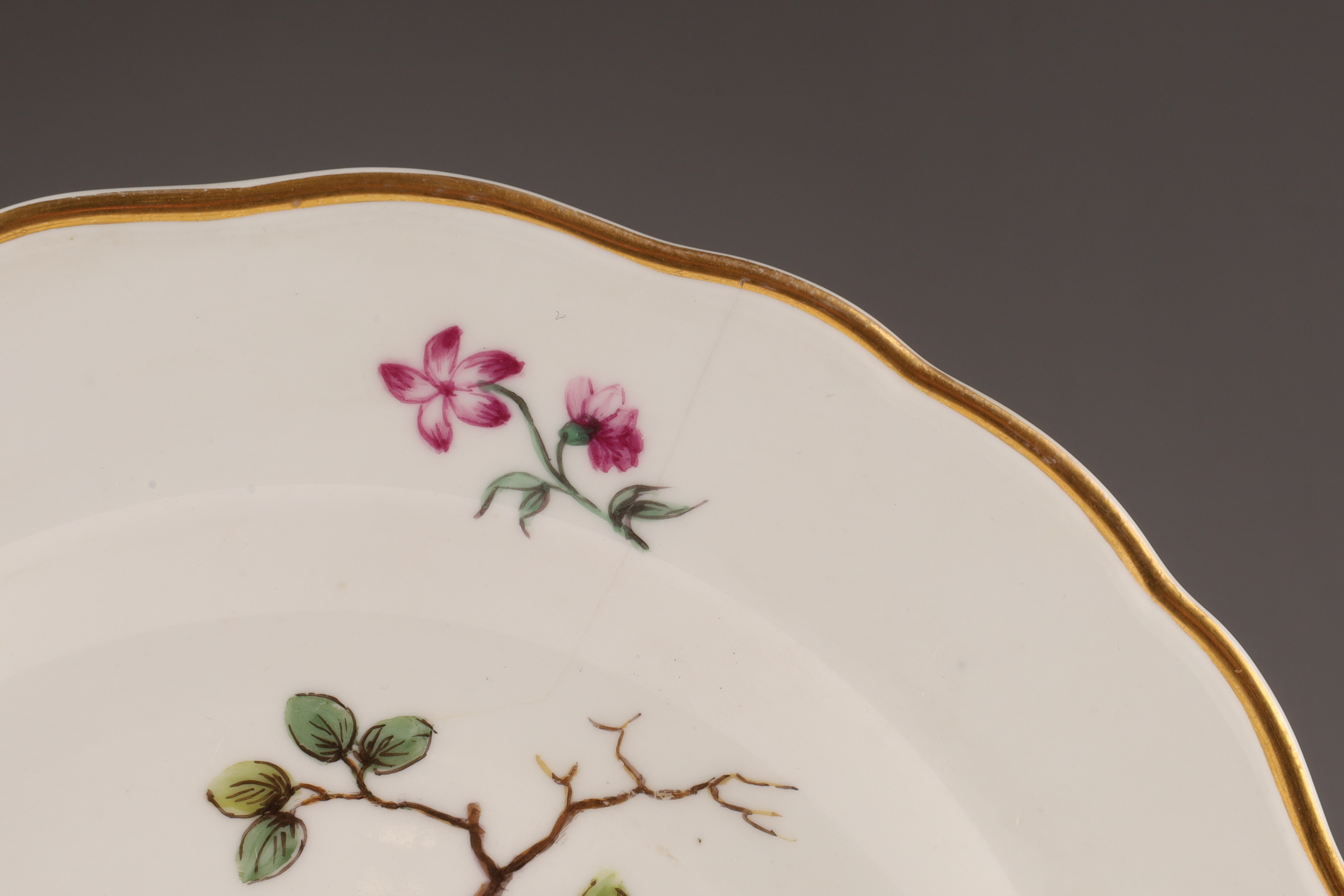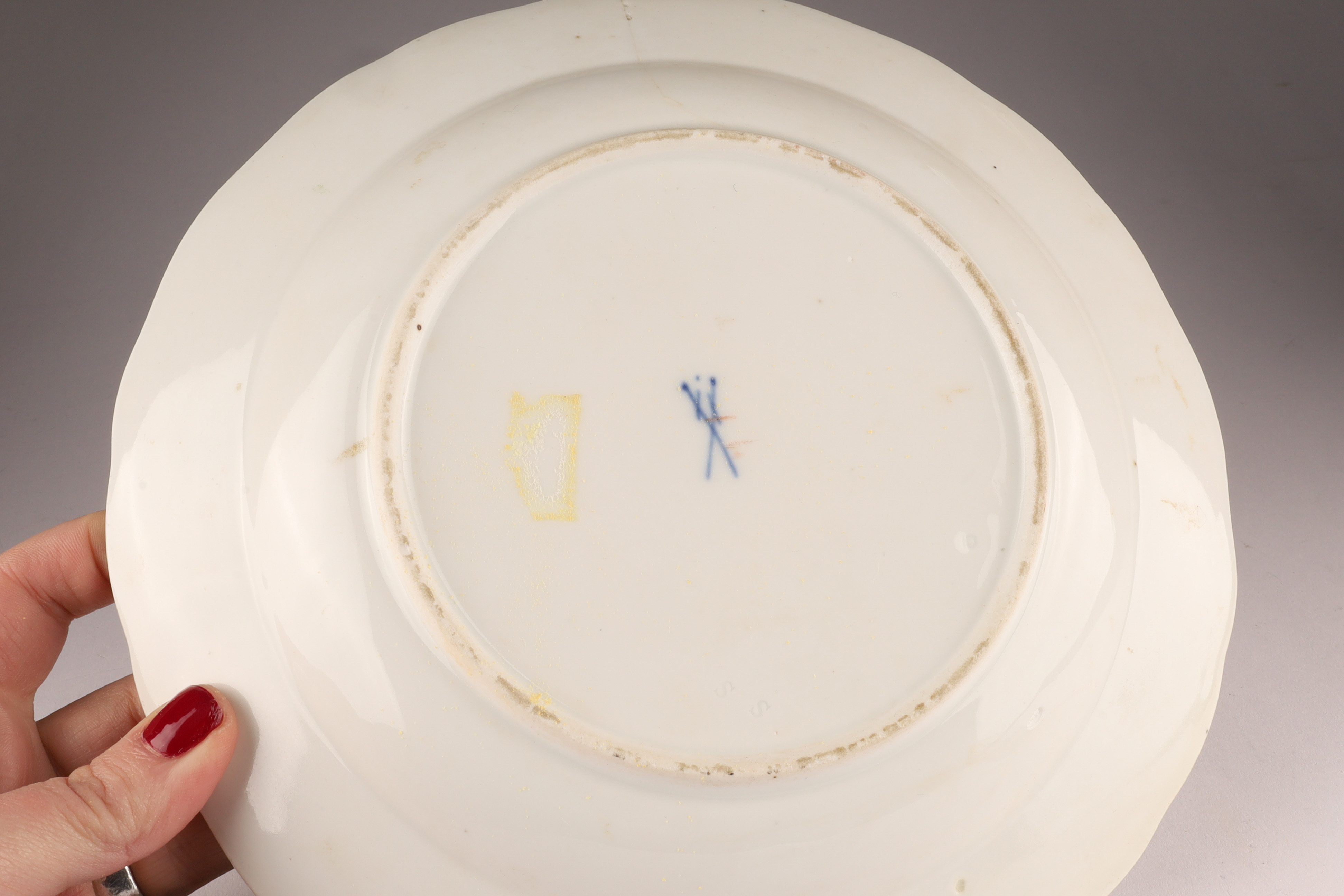 German Porcelain Plate Meissen, Late 19th Century, Marked with Crossed Swords