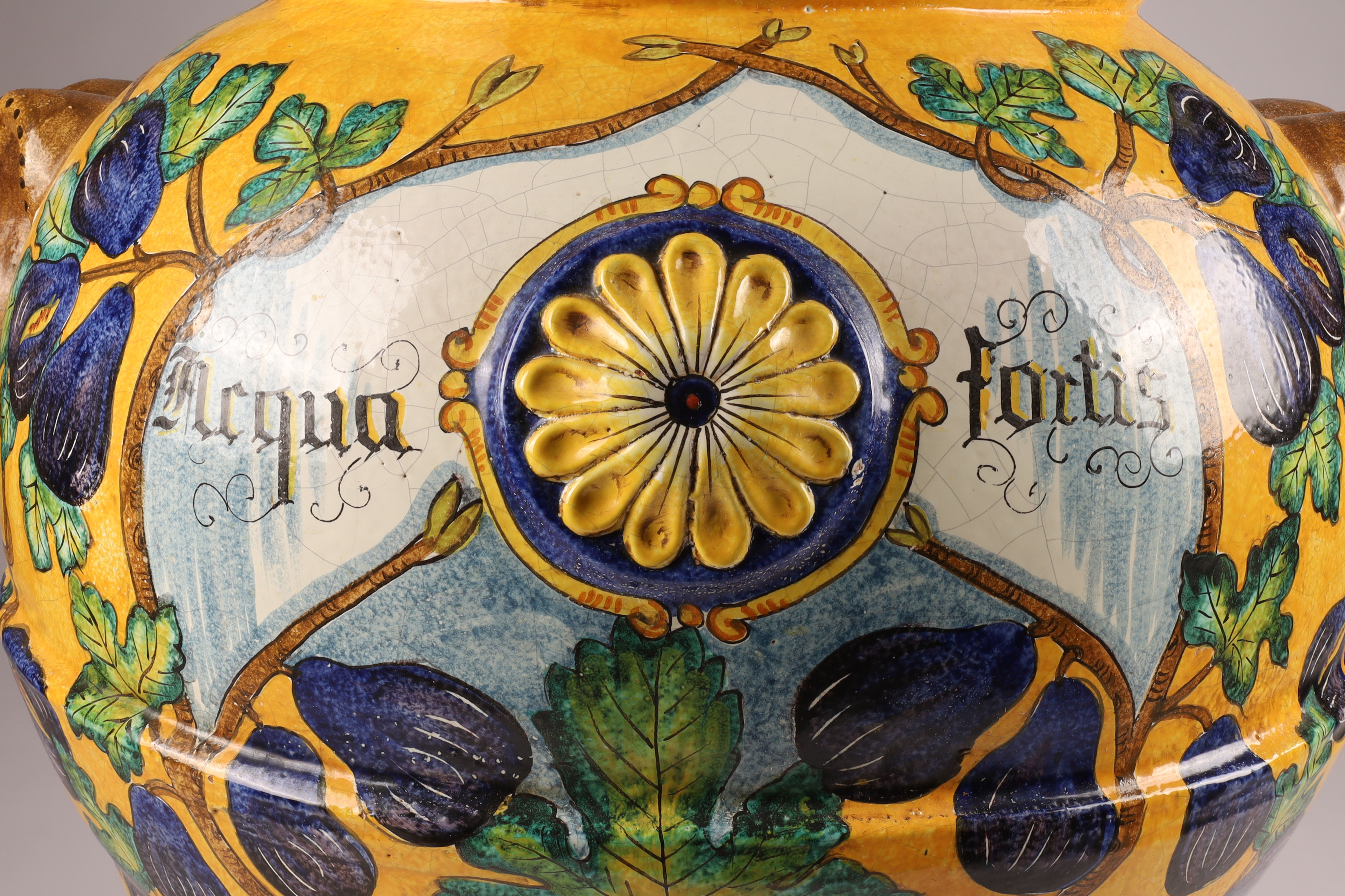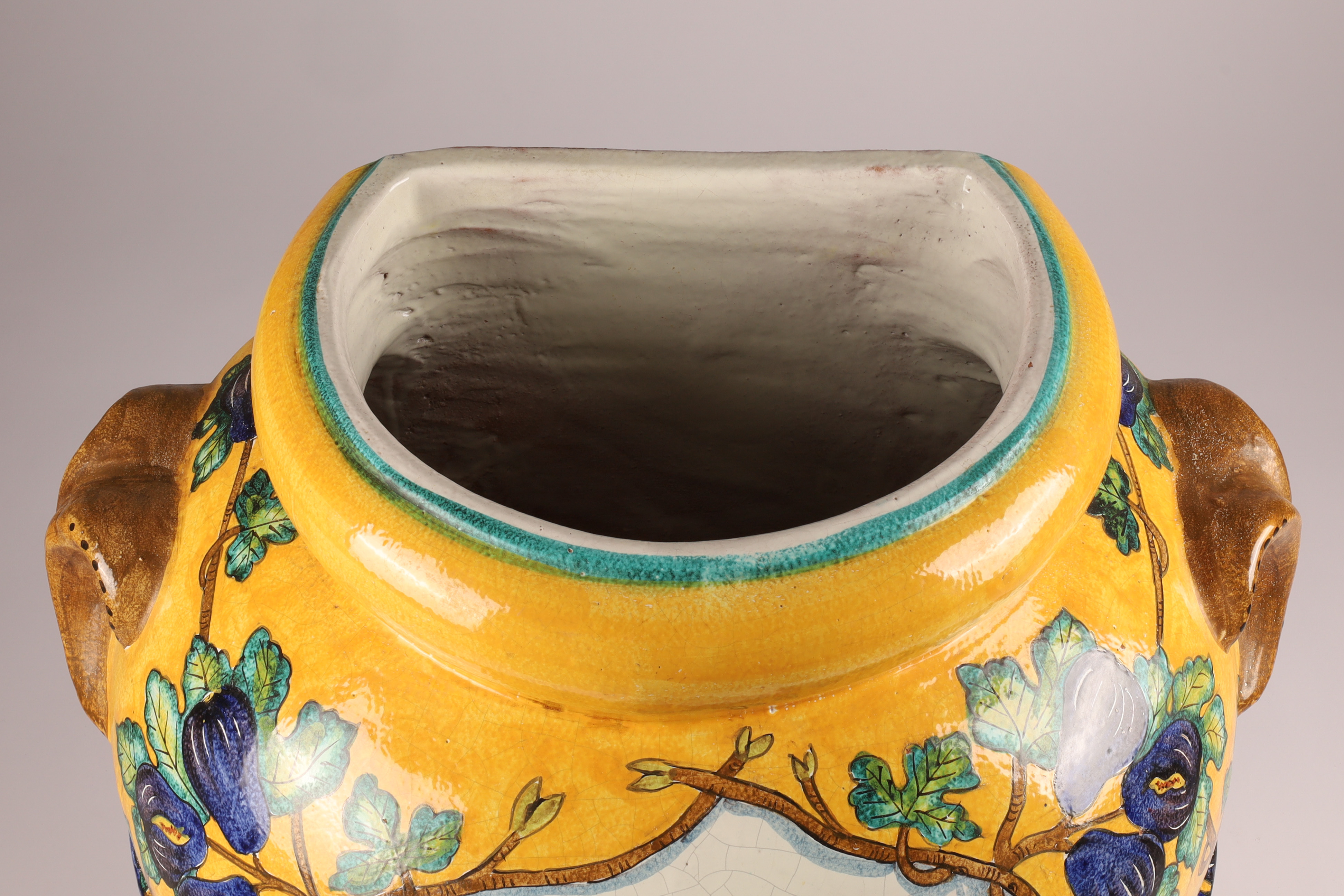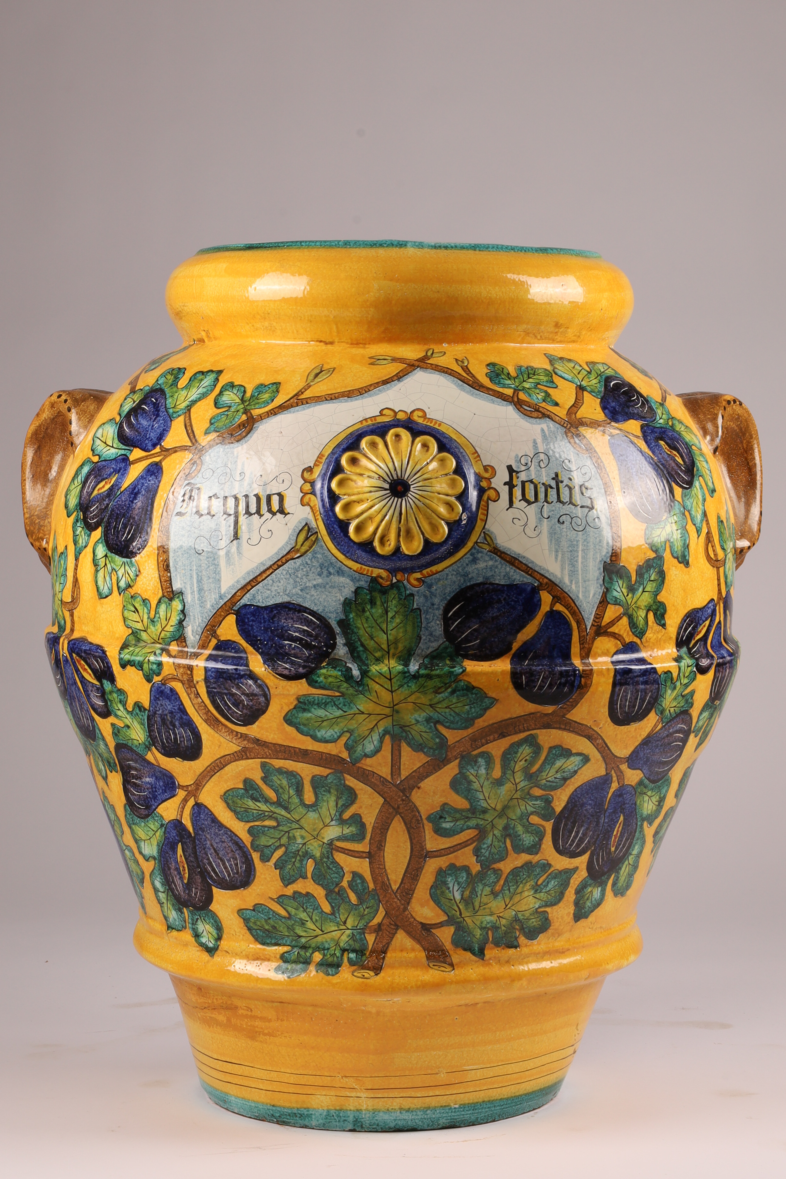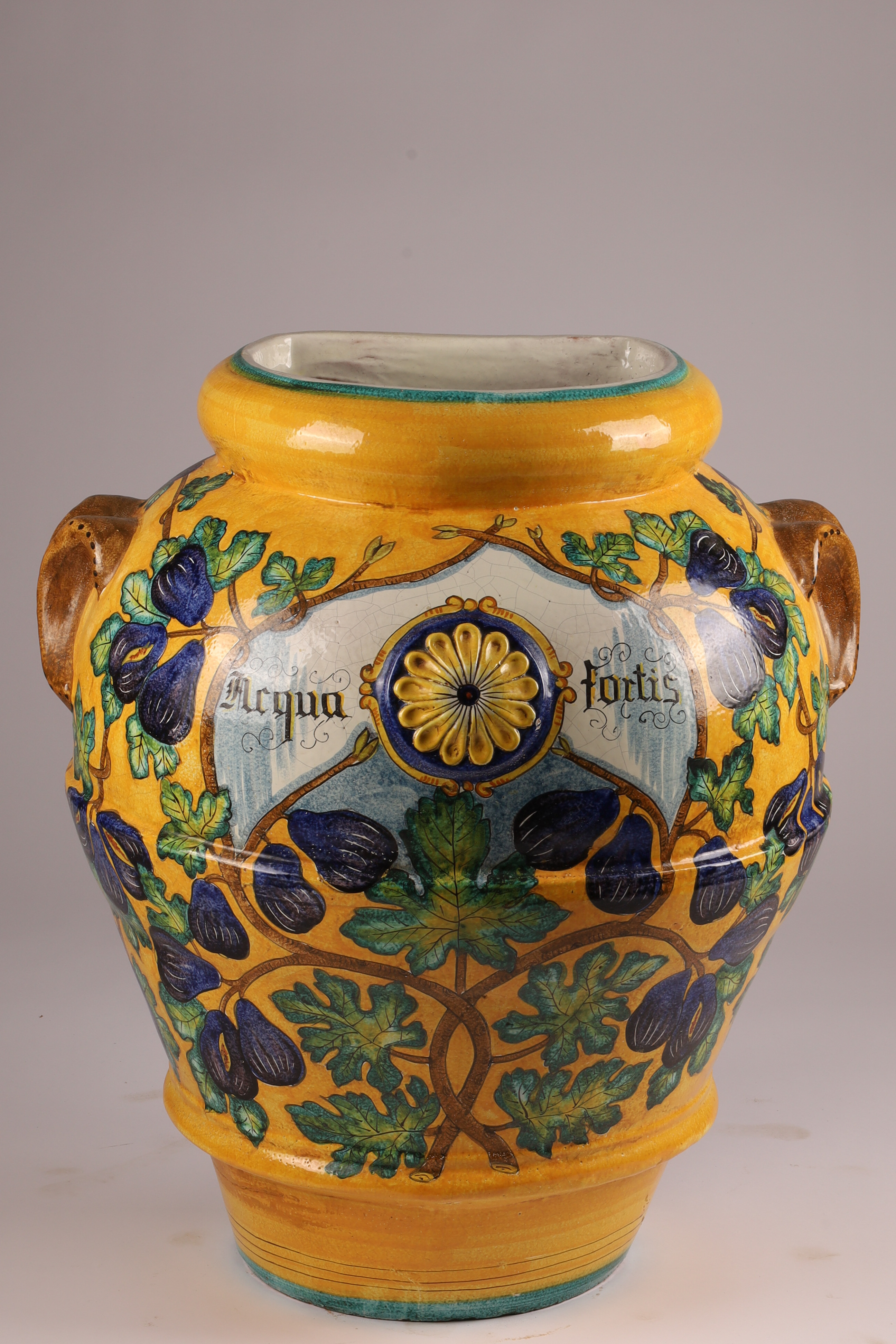 Large Italian Terracotta Majolica Glazed Acqua Fortis Jar Planter Urn