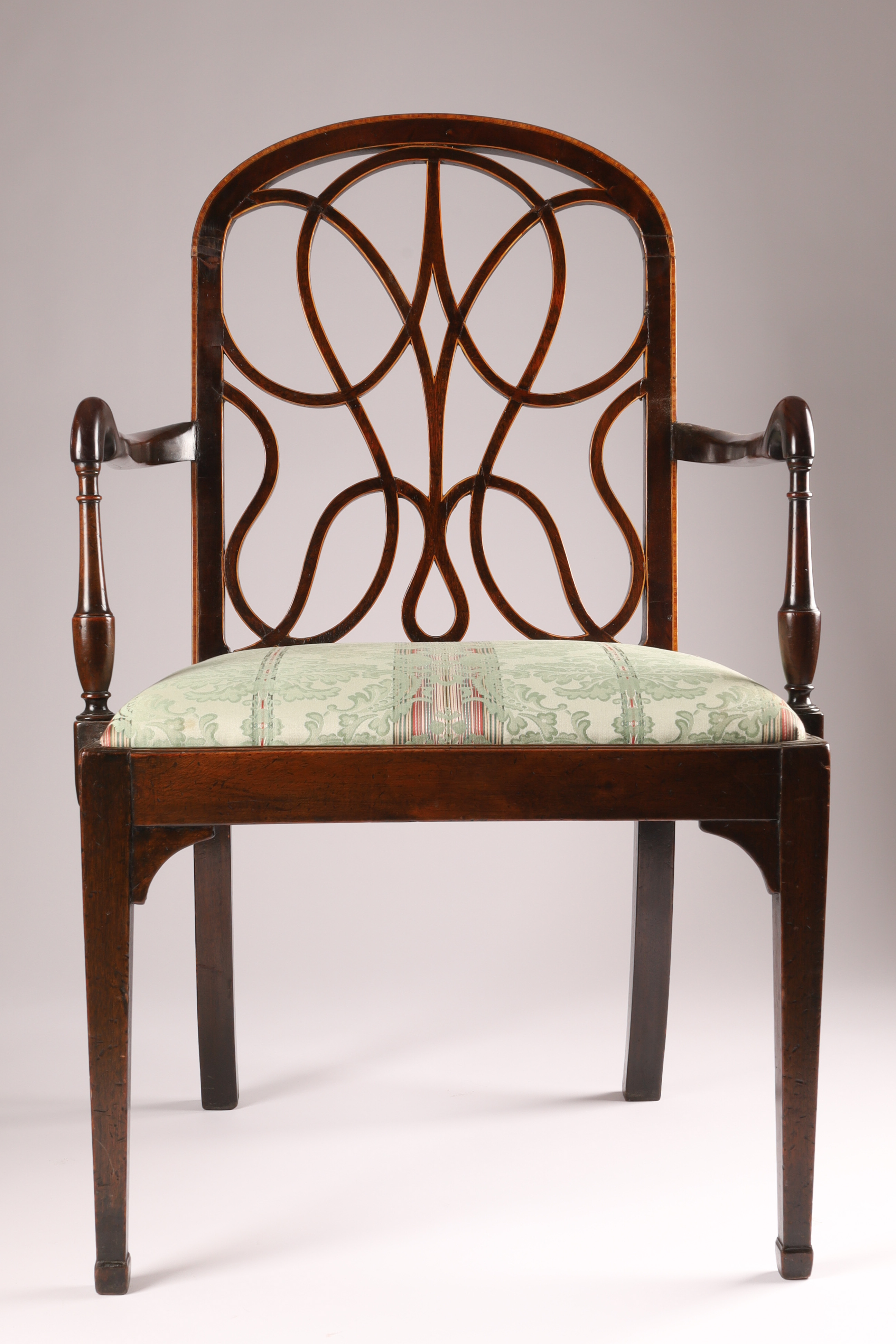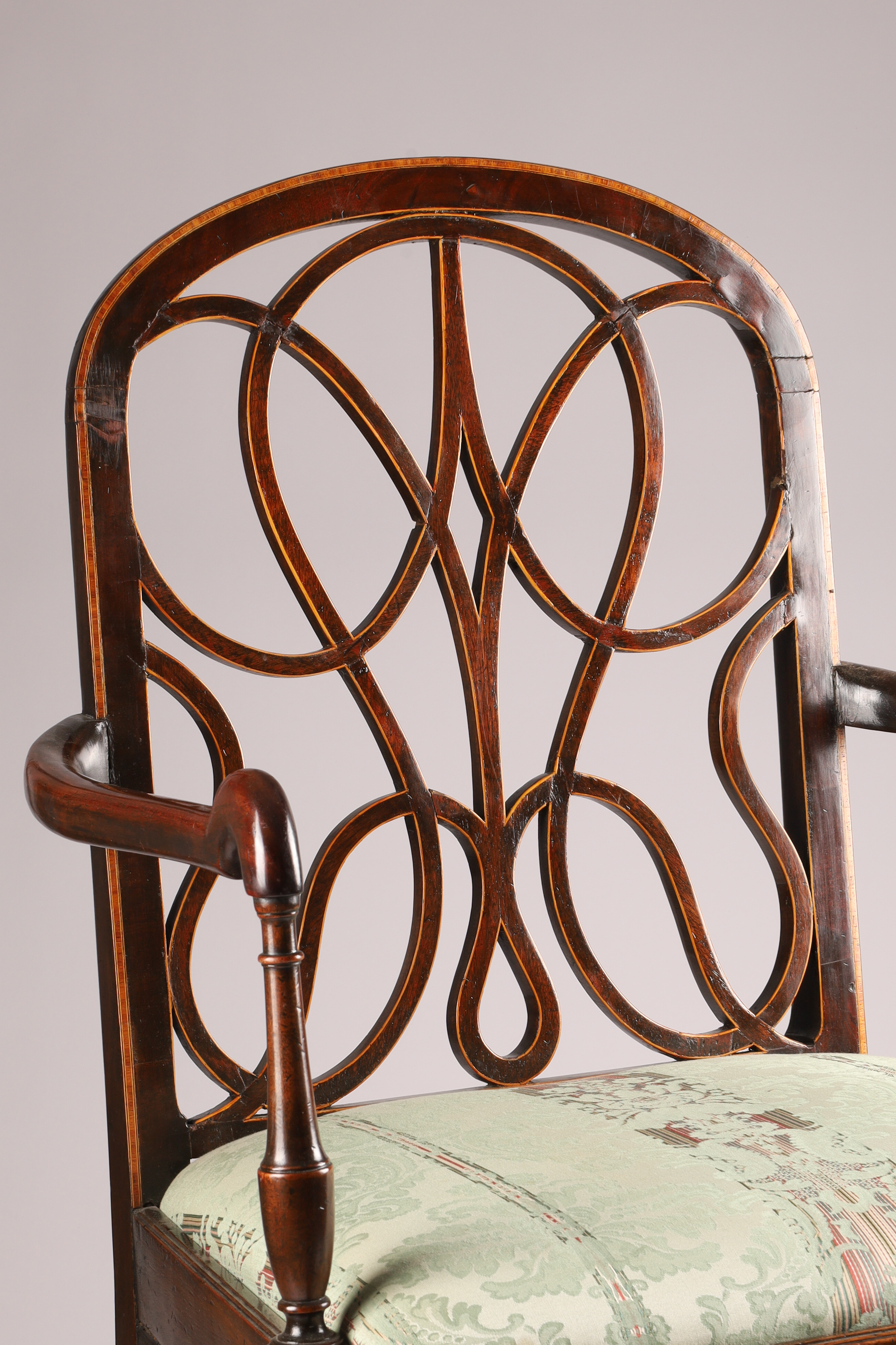 Antique Georgian Shepherd's Crook Armchair with Inlaid Splat