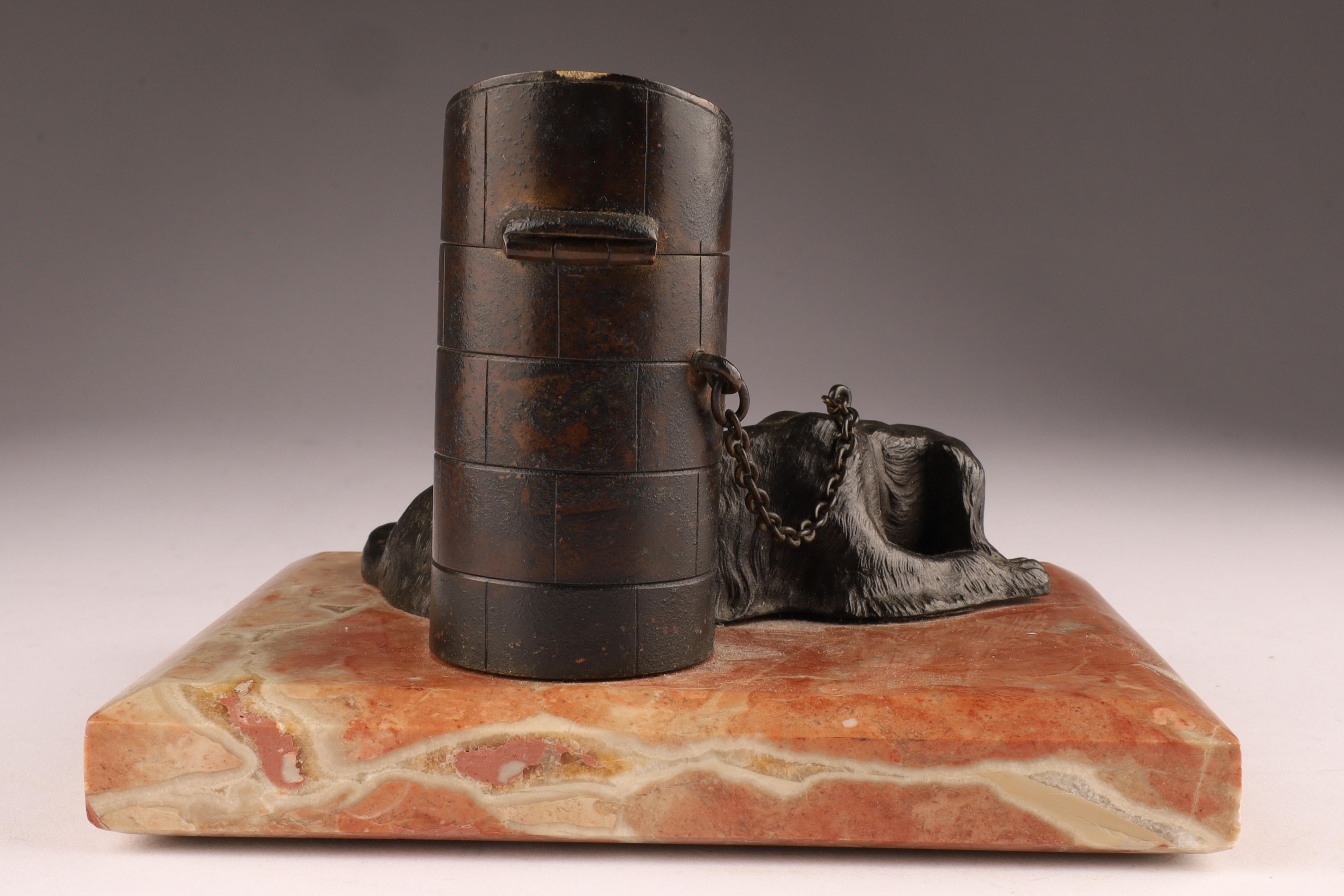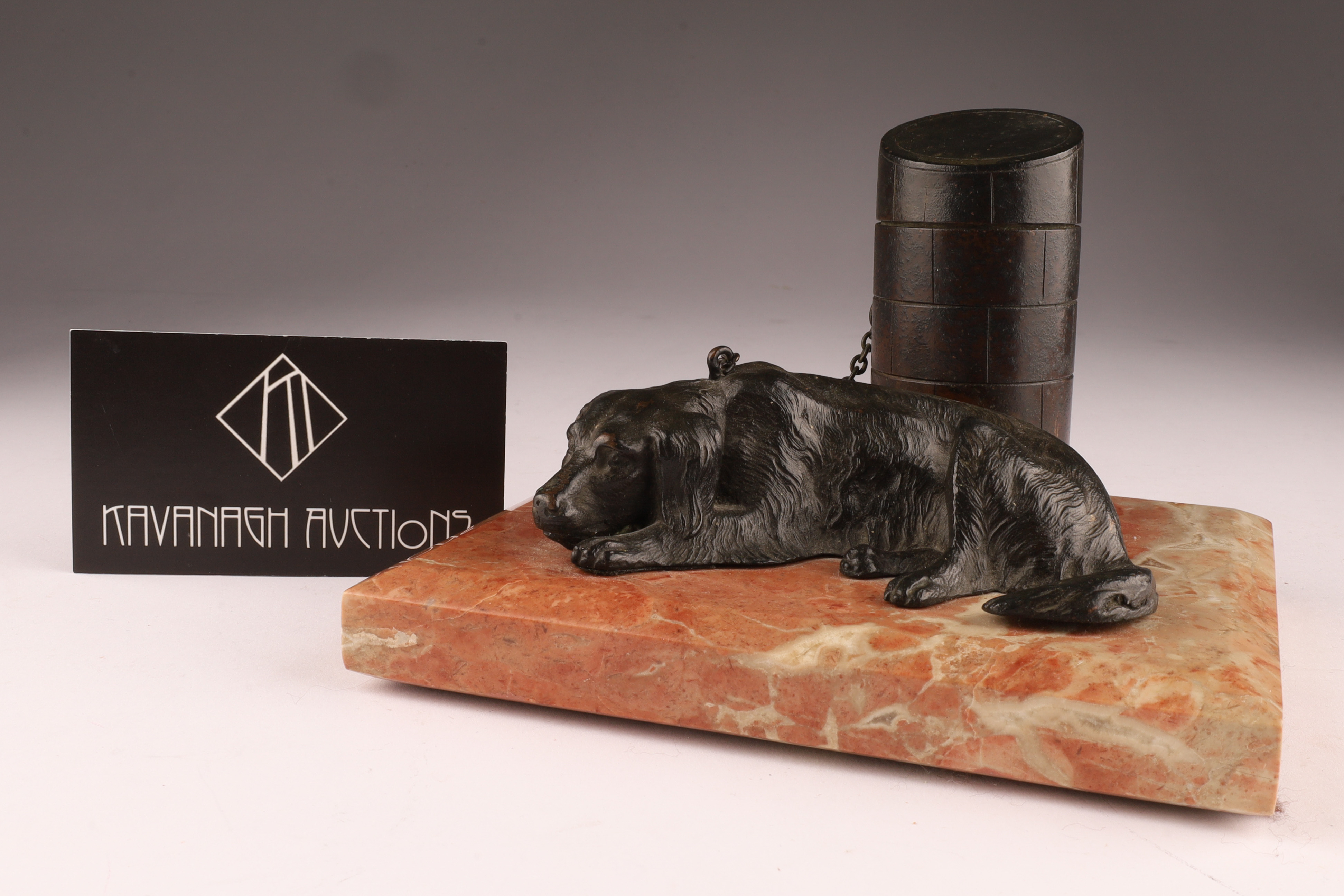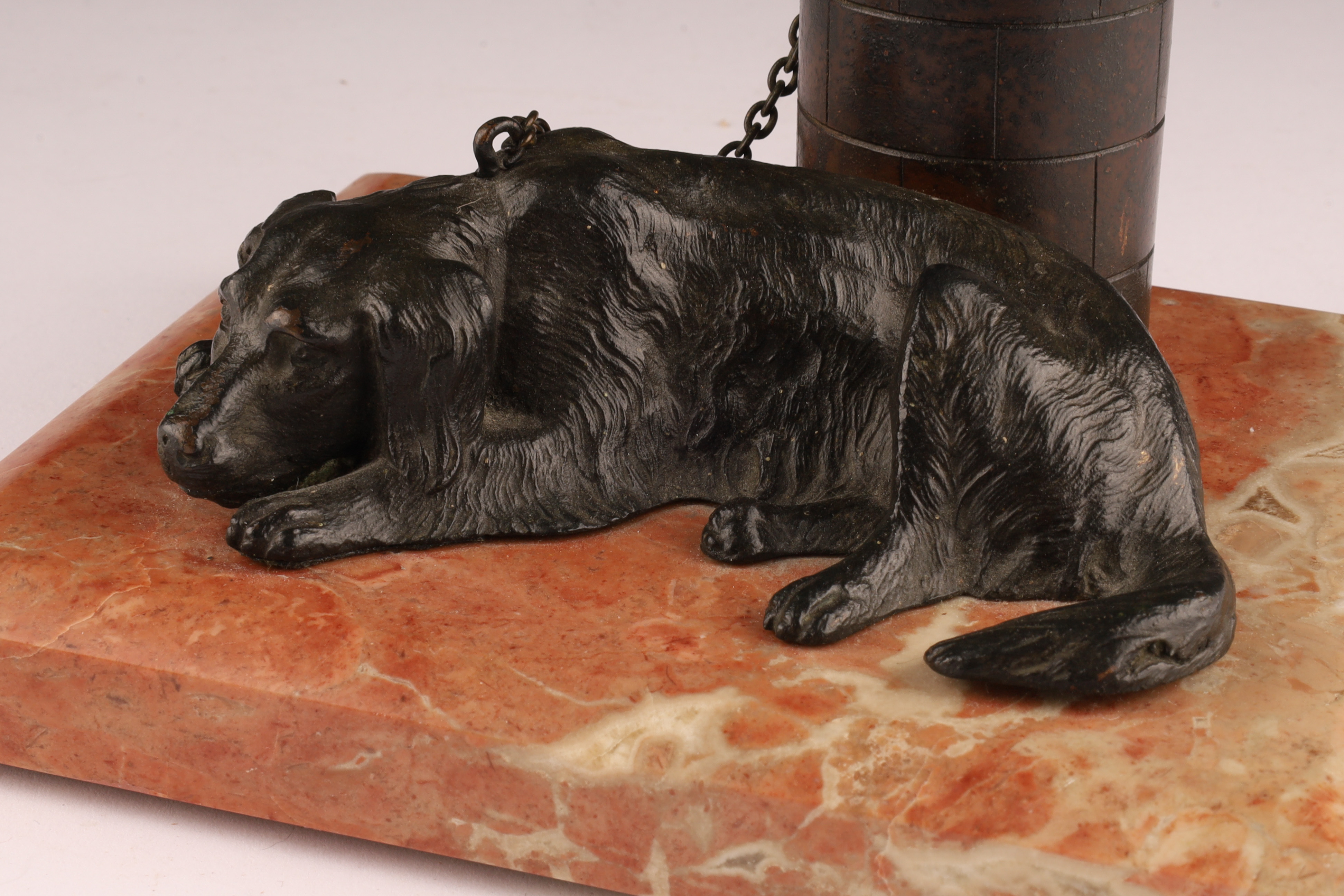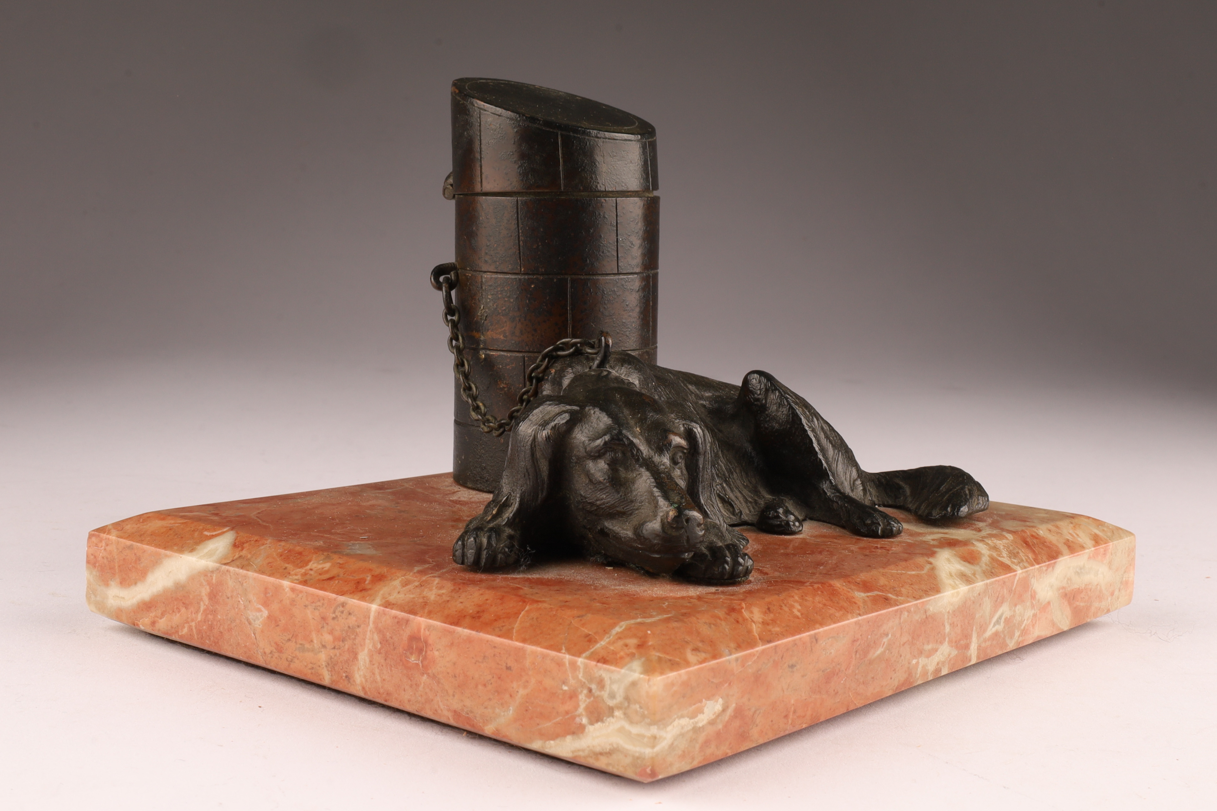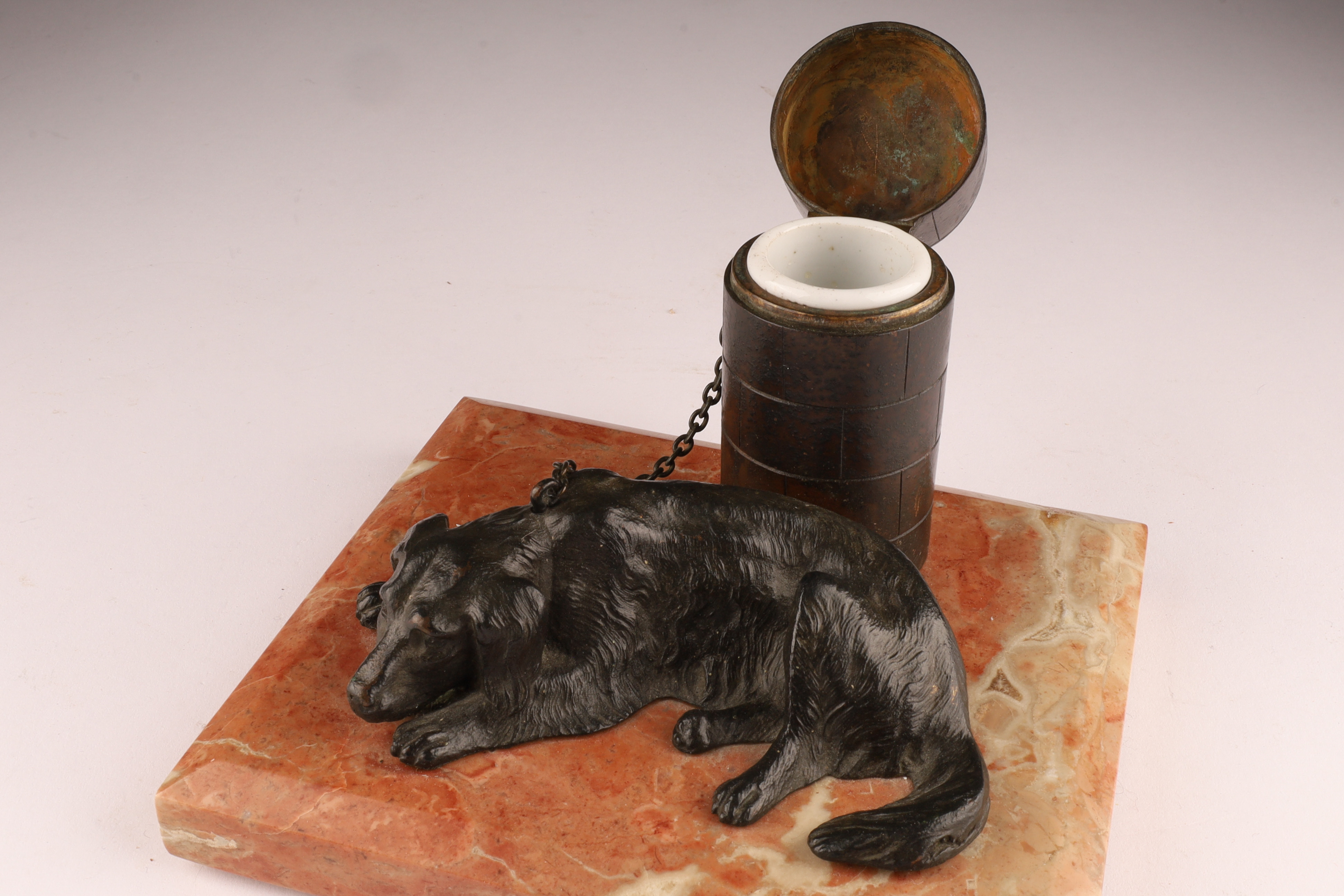 Bronze Inkwell Sculpture of a Dog on Marble Plinth