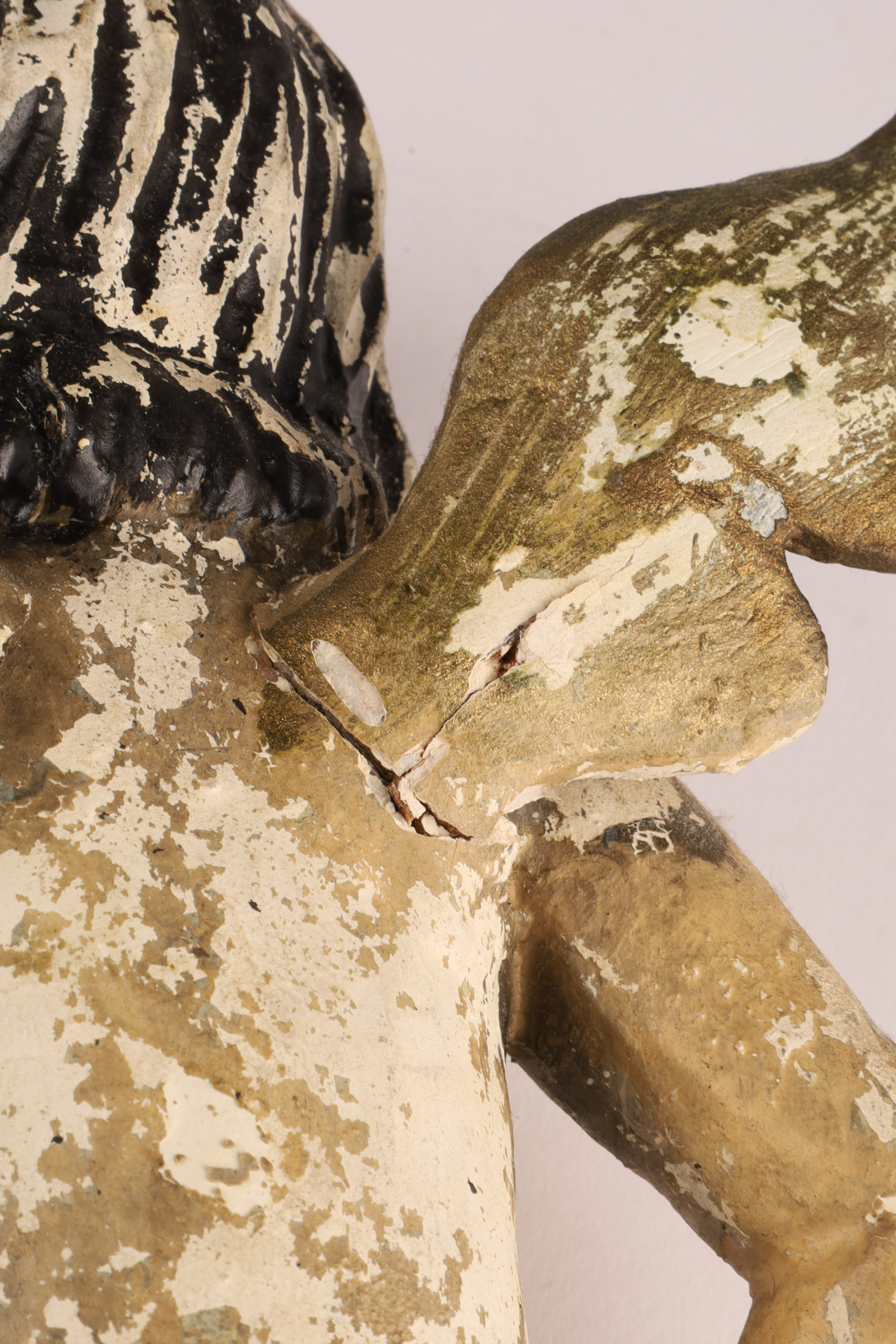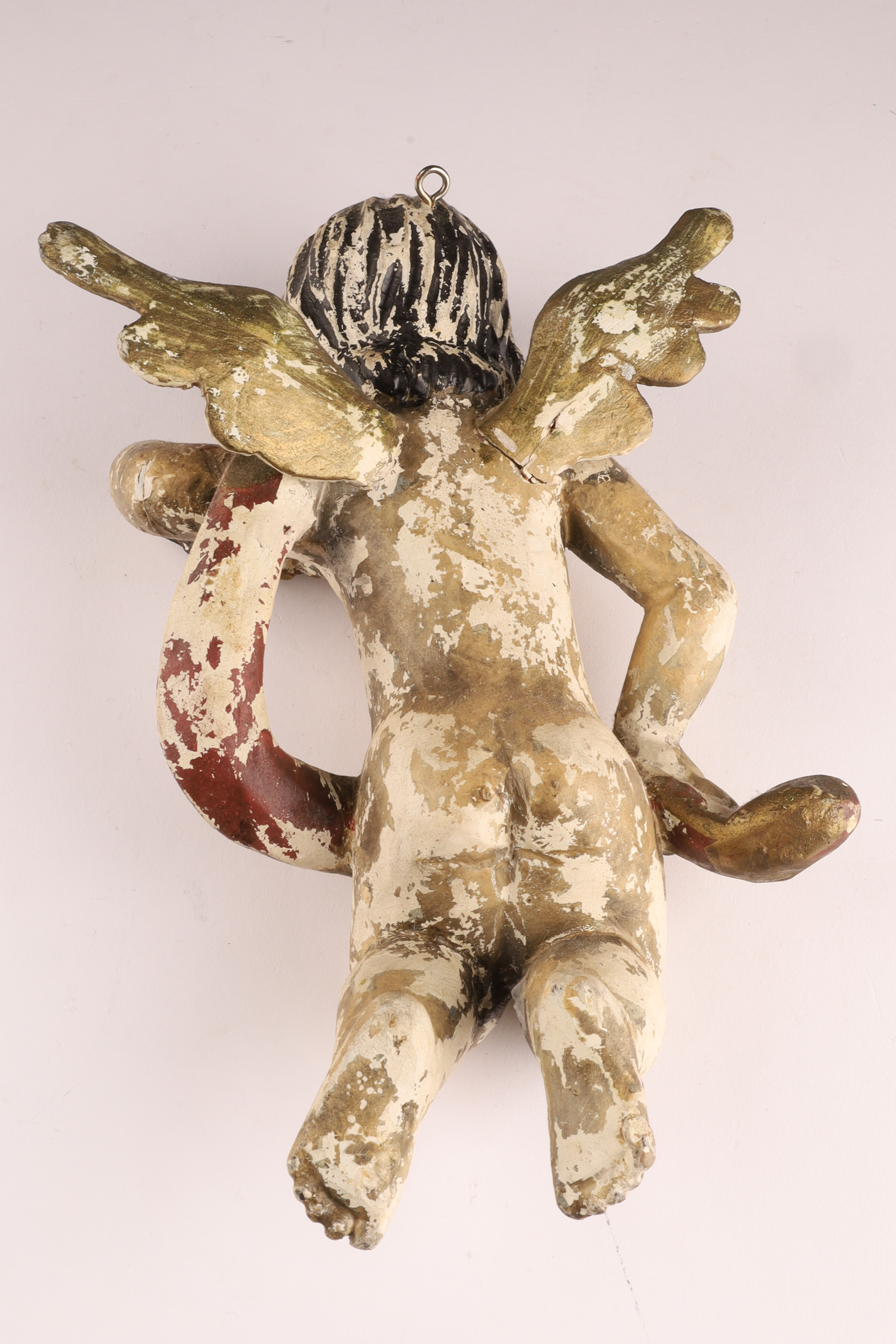 Antique Spanish Santos Wood Hand Carved Polychrome Putti