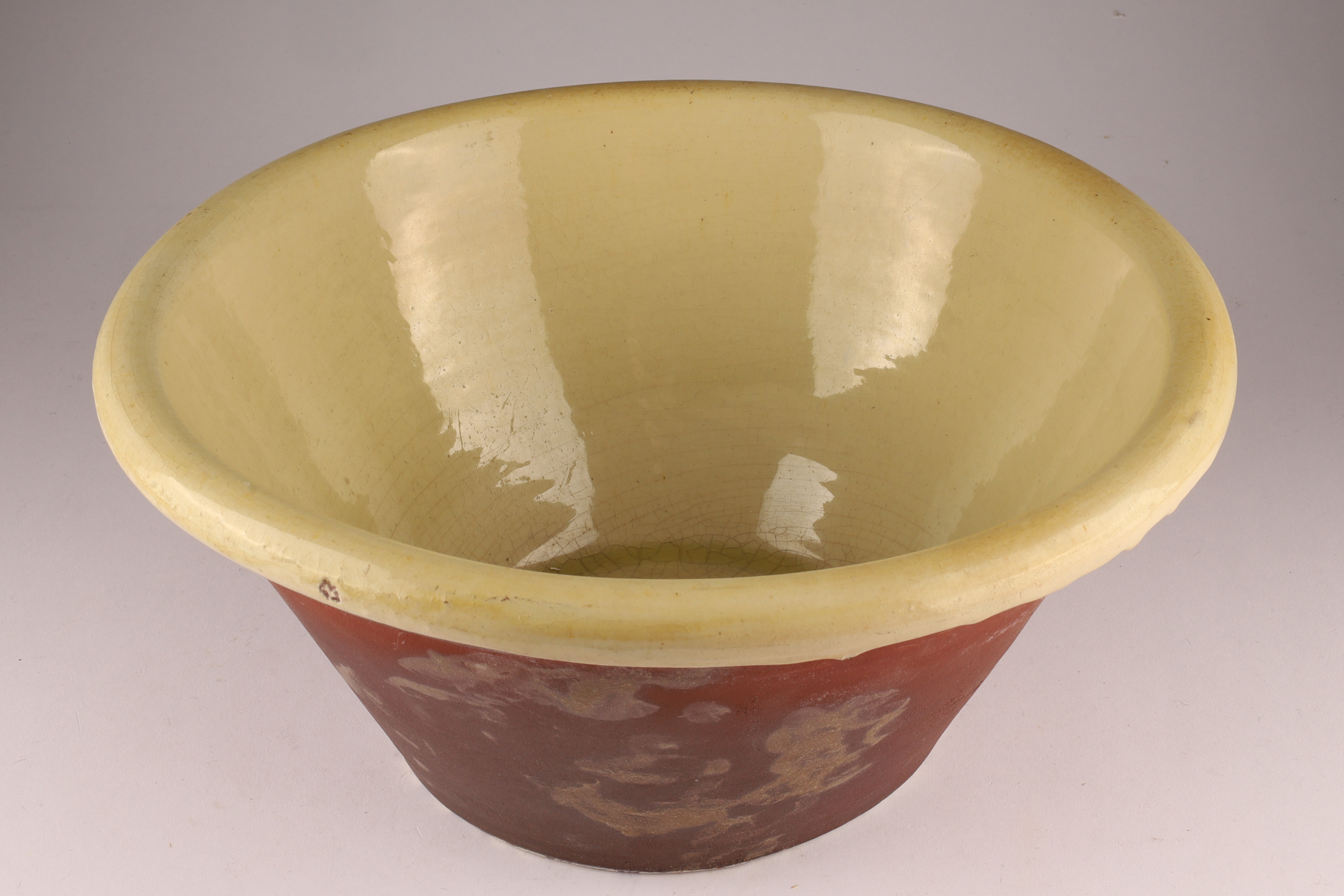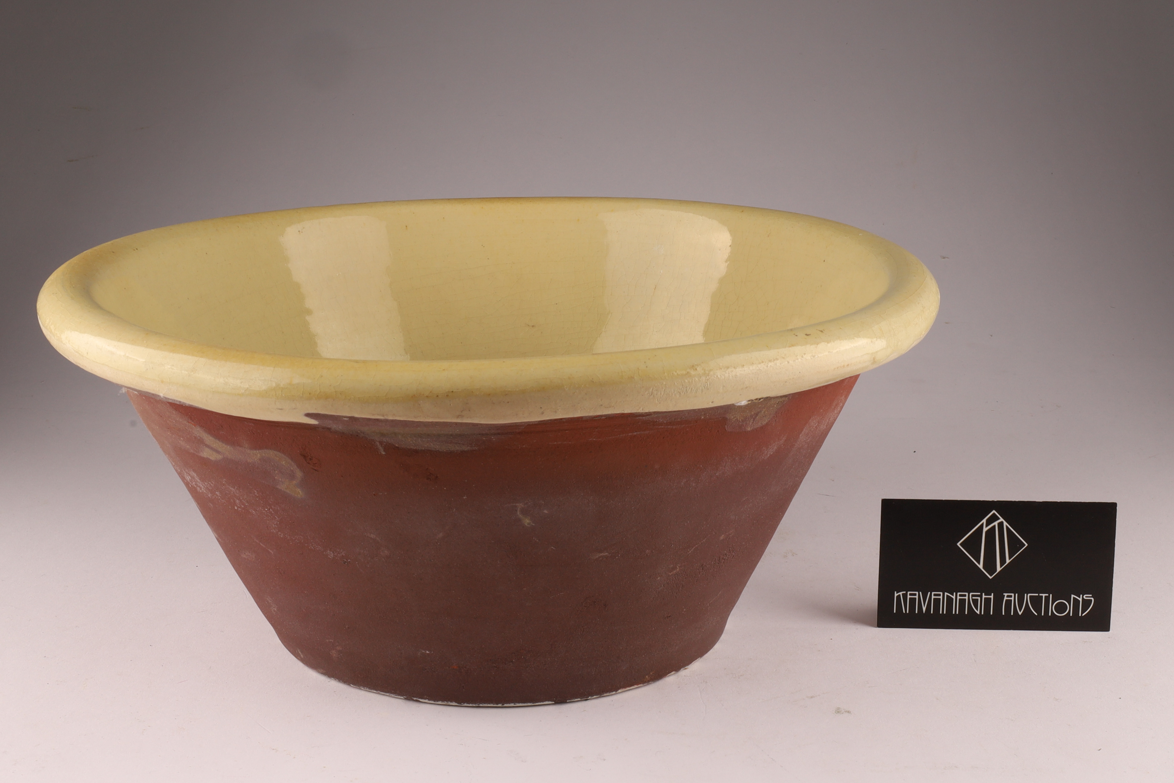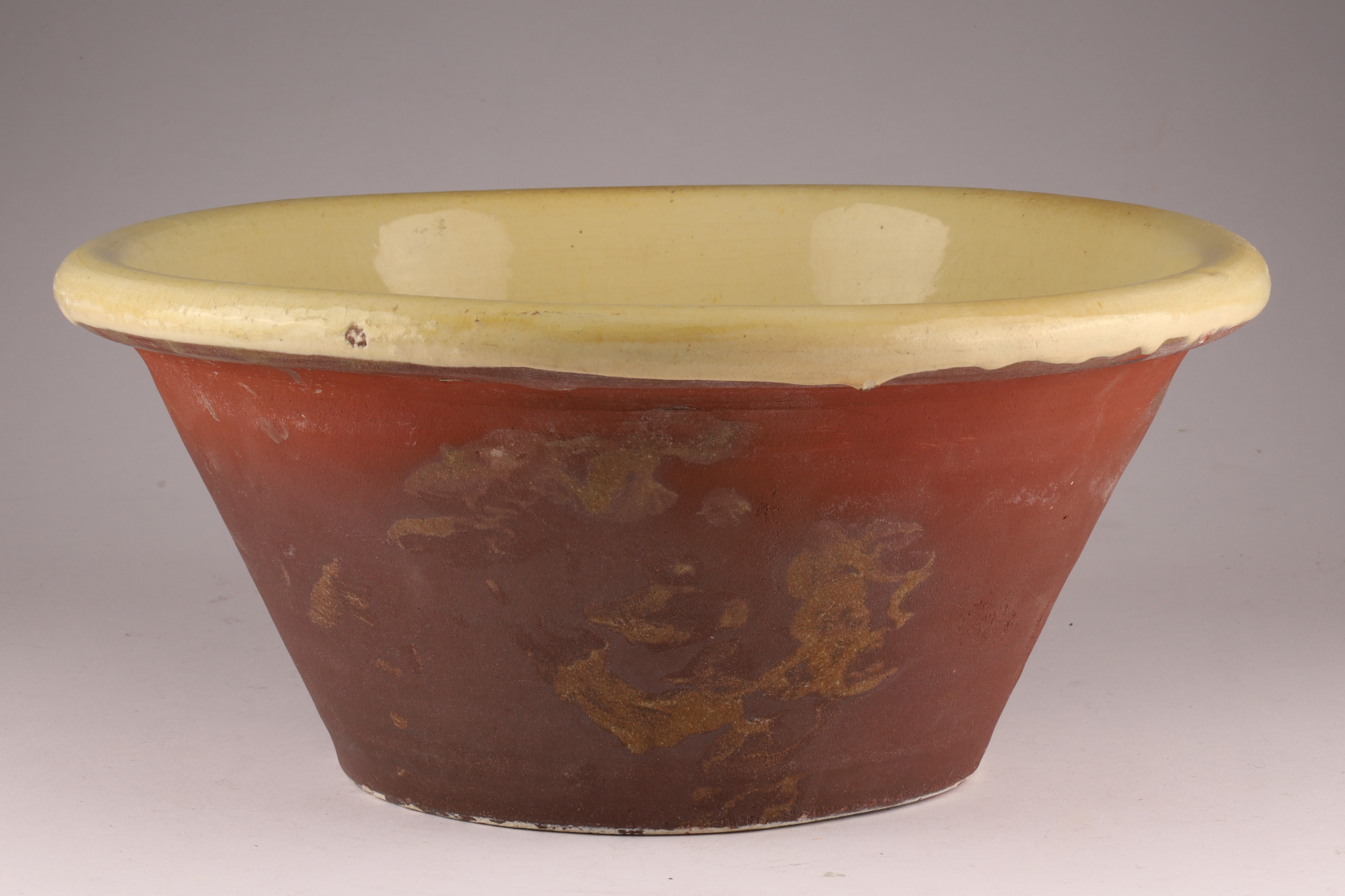 Antique 19th C. French Farmhouse Dairy Bowl, Terracotta with cream glazed interior. Measuring 6 inches H x 13 W.