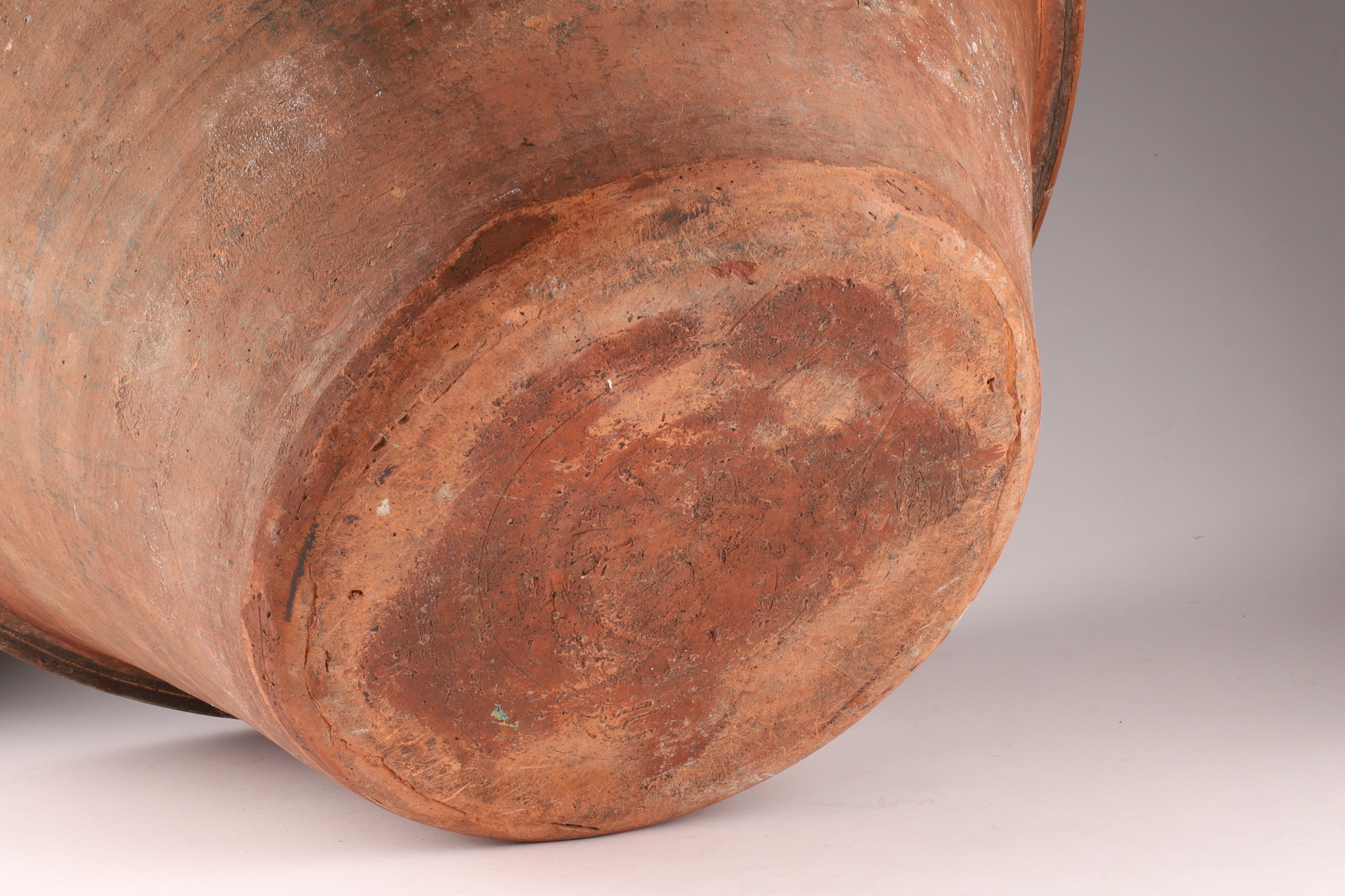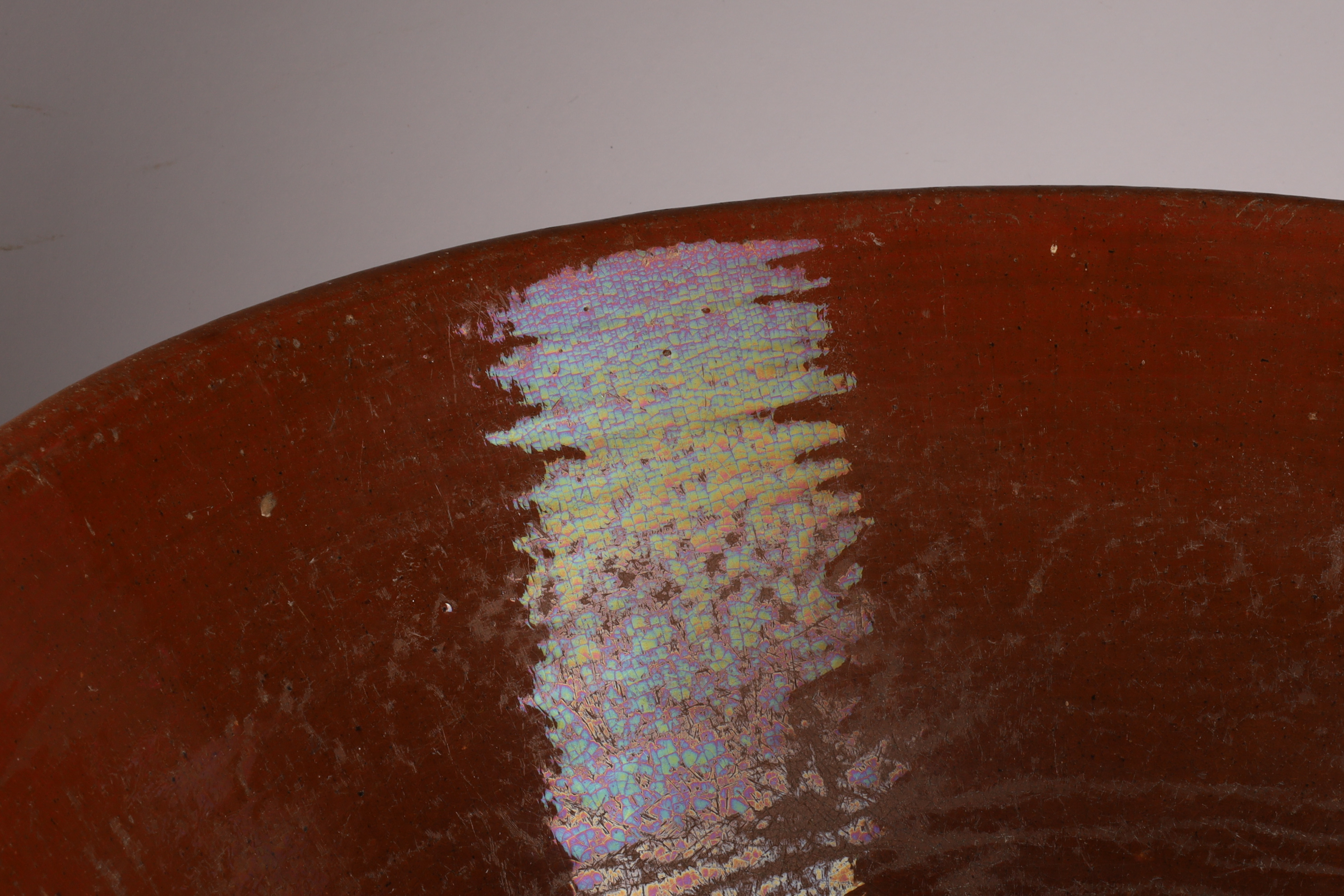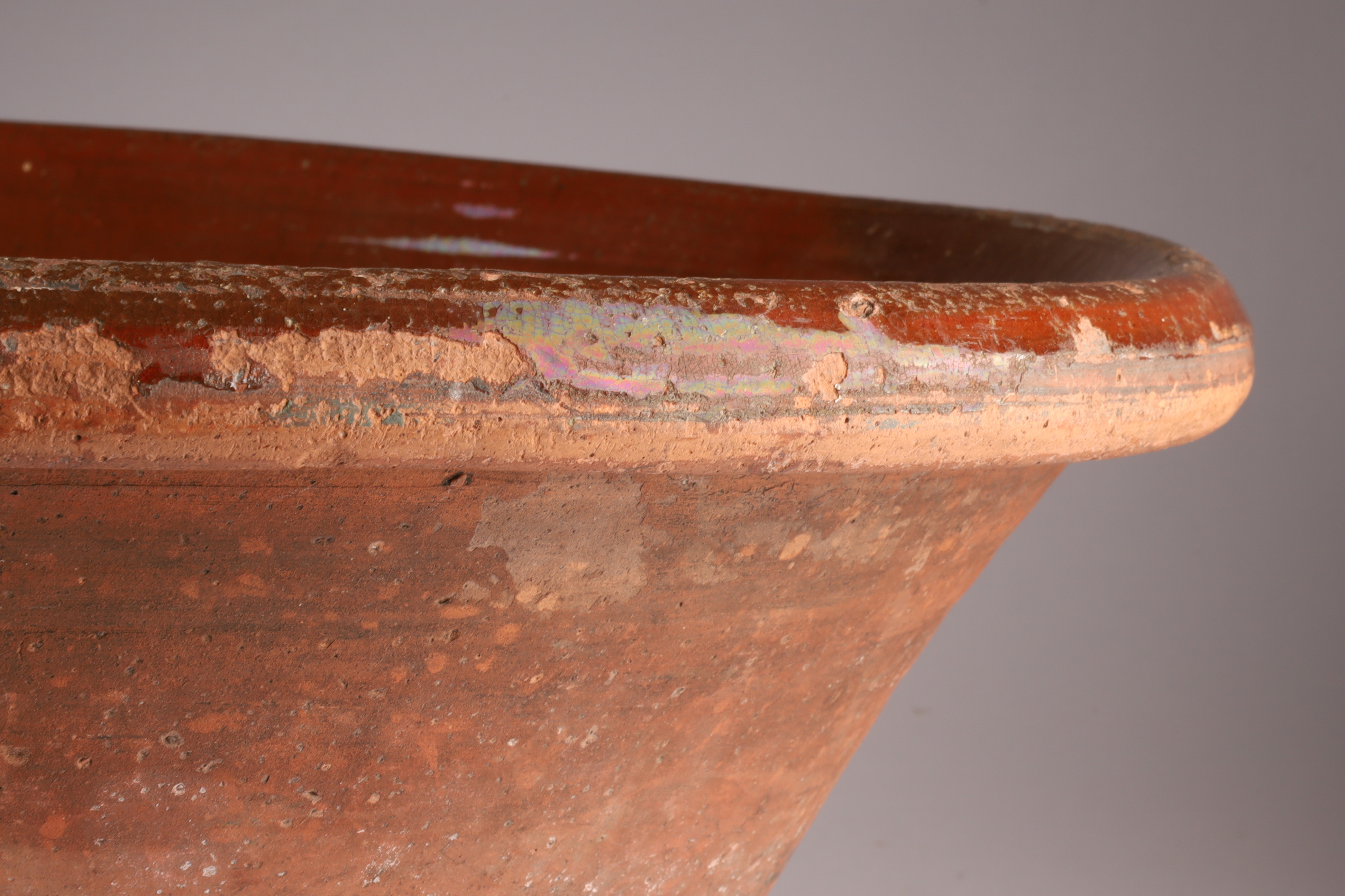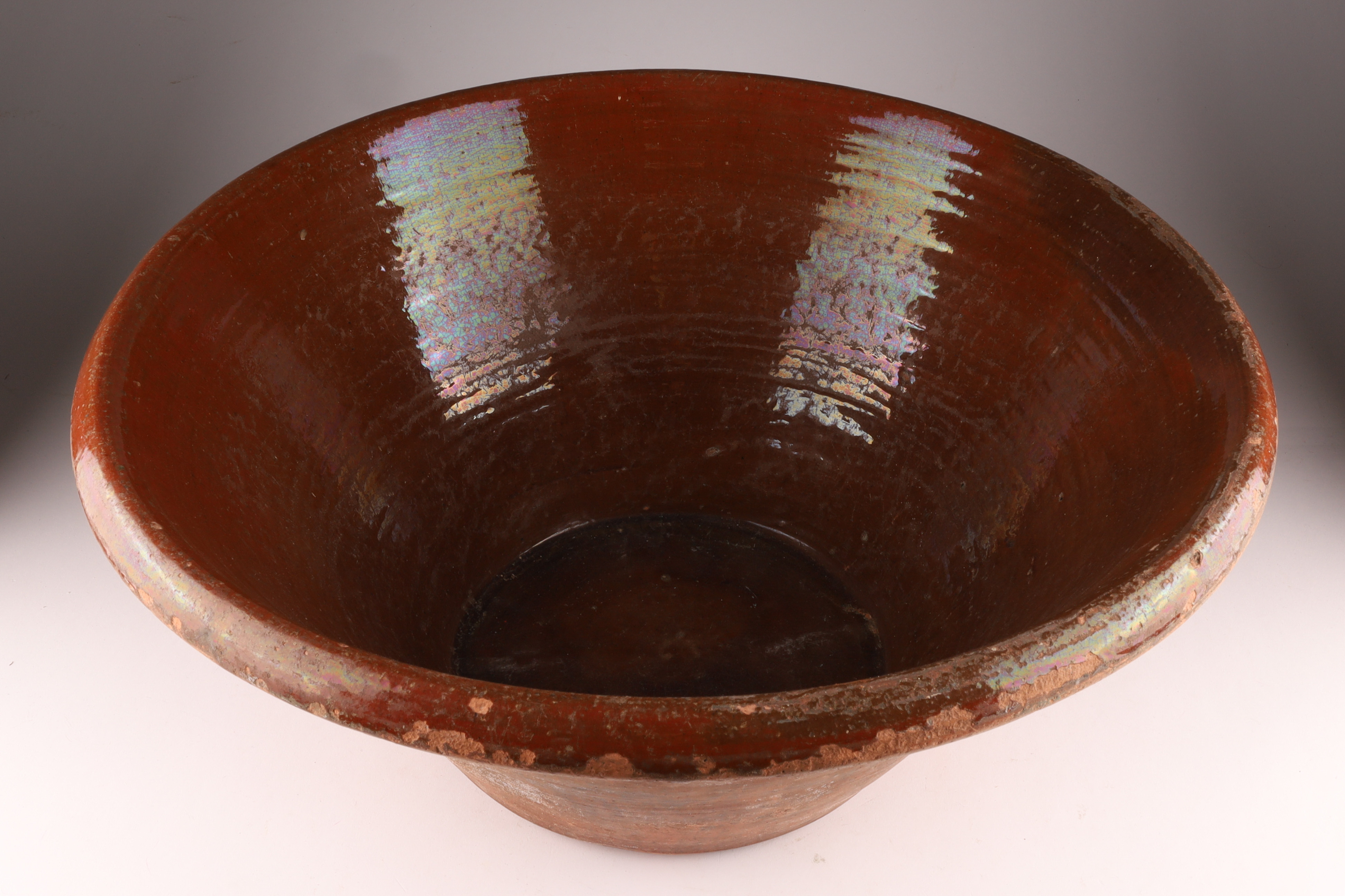 Monumental 19th C. French Glazed Terracotta Dairy Bowl, measuring 9 inches H x 21 W.
