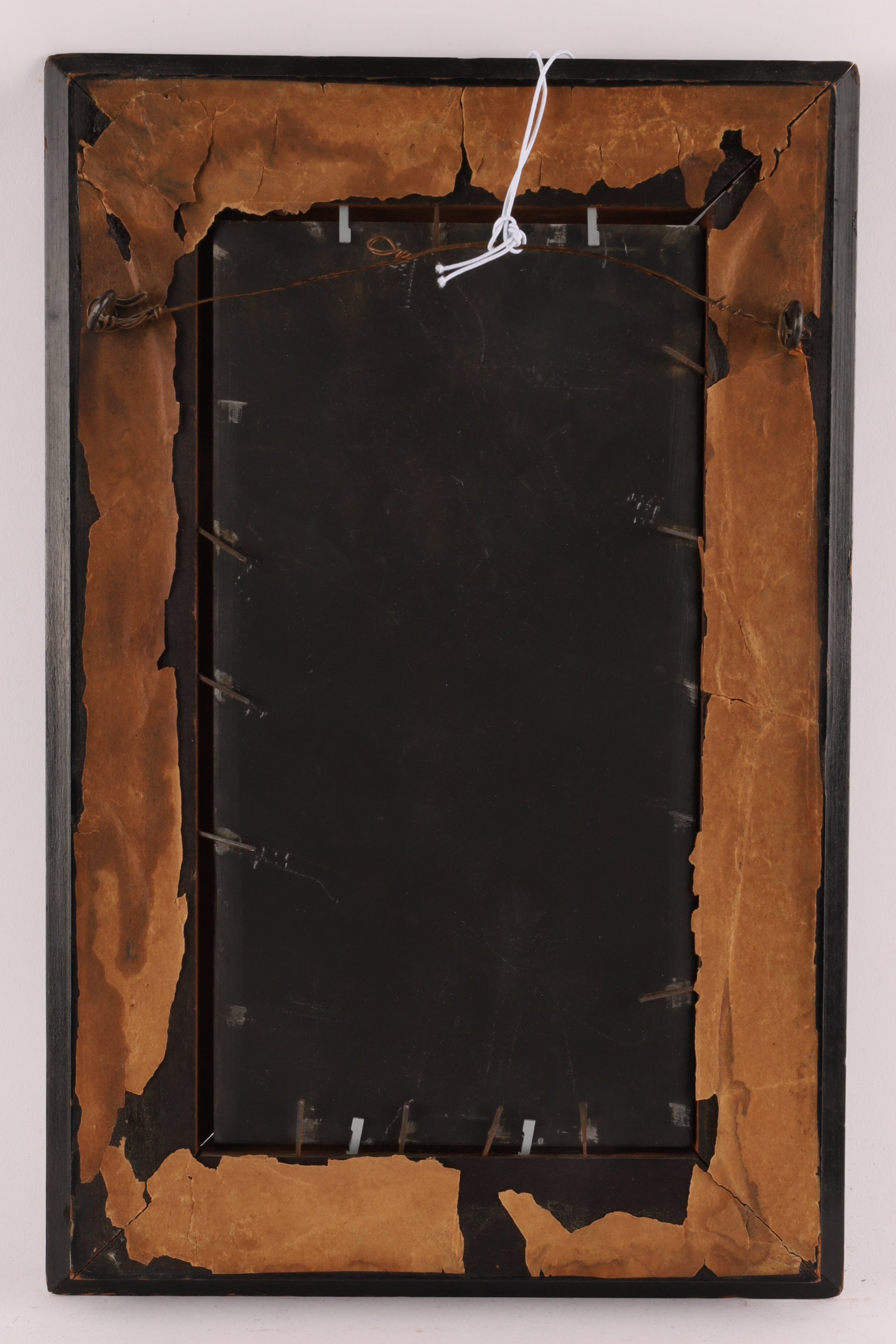 Pietra dura (hardstone and marble inlay) on black slate; mounted in a period ebonized frame. Loss to blue feather inlay; otherwise well preserved. Total framed size approx. 14 × 9 inches. Italian, Grand Tour period.